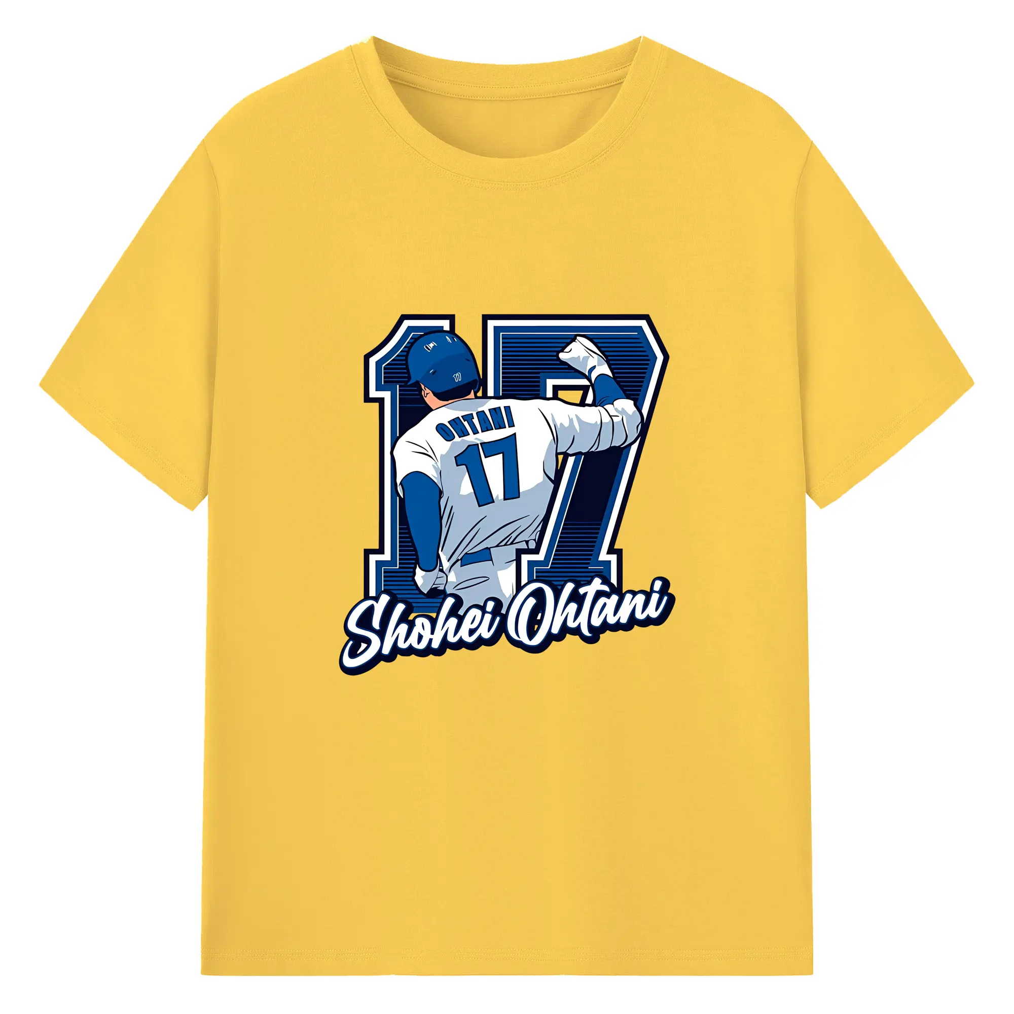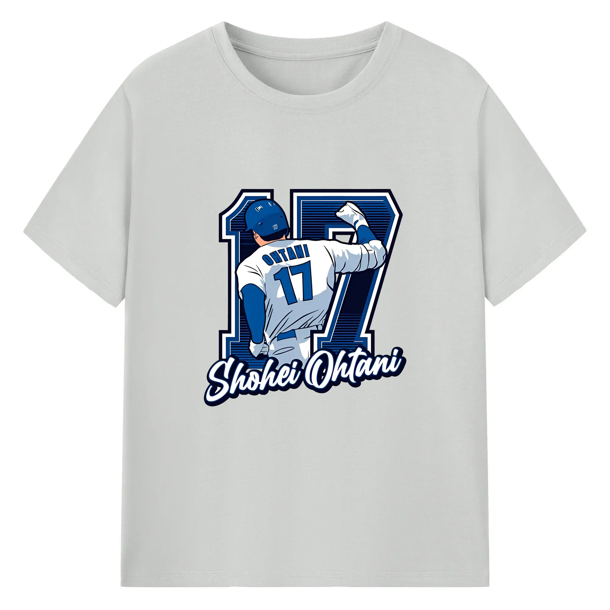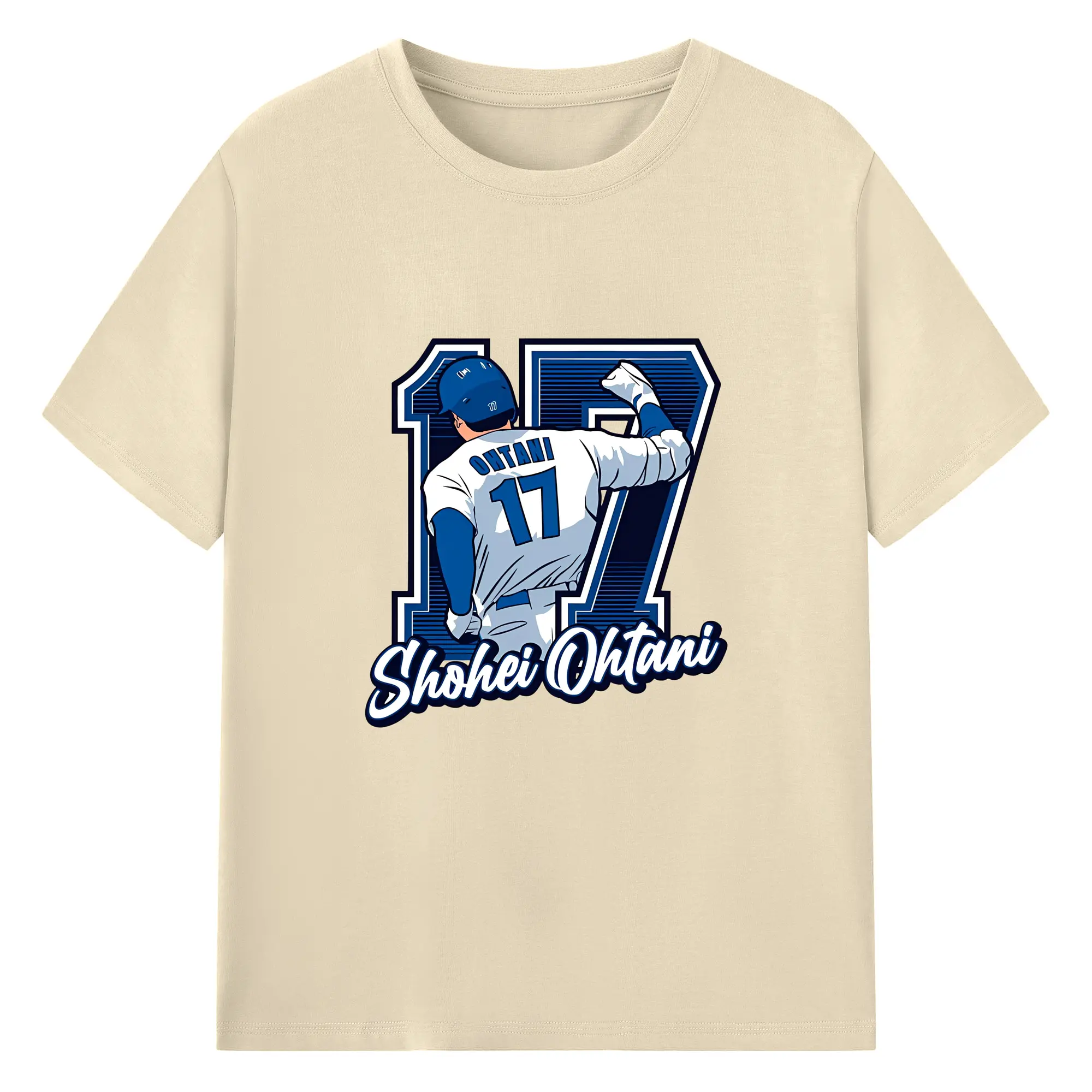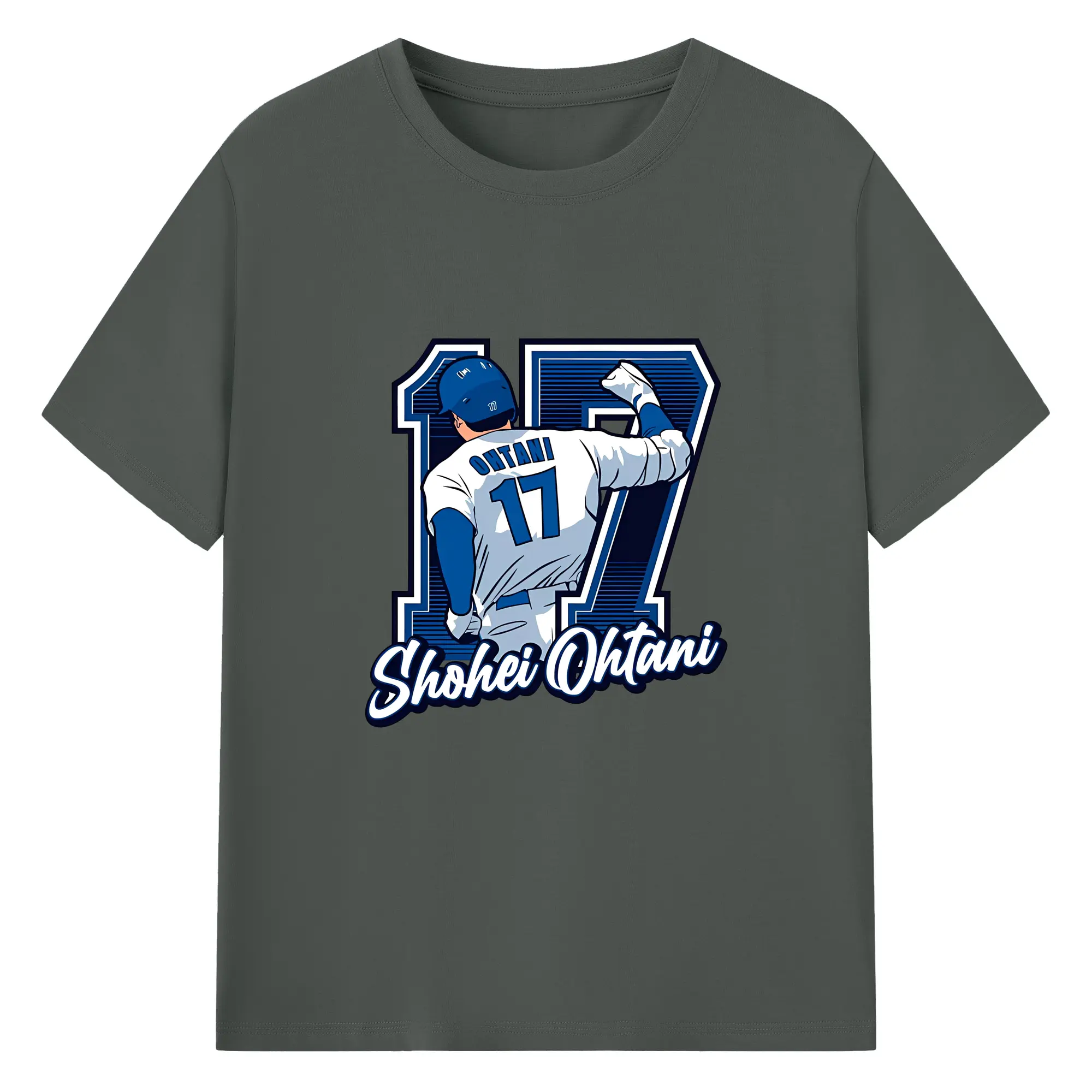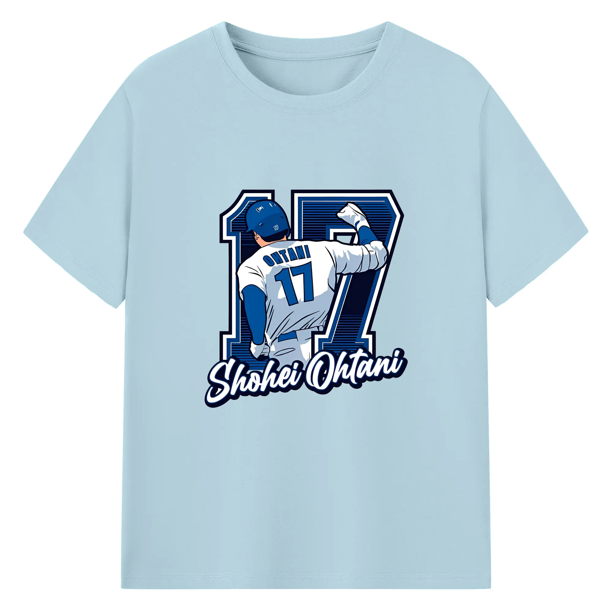大谷翔平 背番号17 コレクターズアイテム - 綿100% 半袖Tシャツ ・ フロントプリント ・ 快適 通気性 ・ 日常使い 散歩 スポーツ用