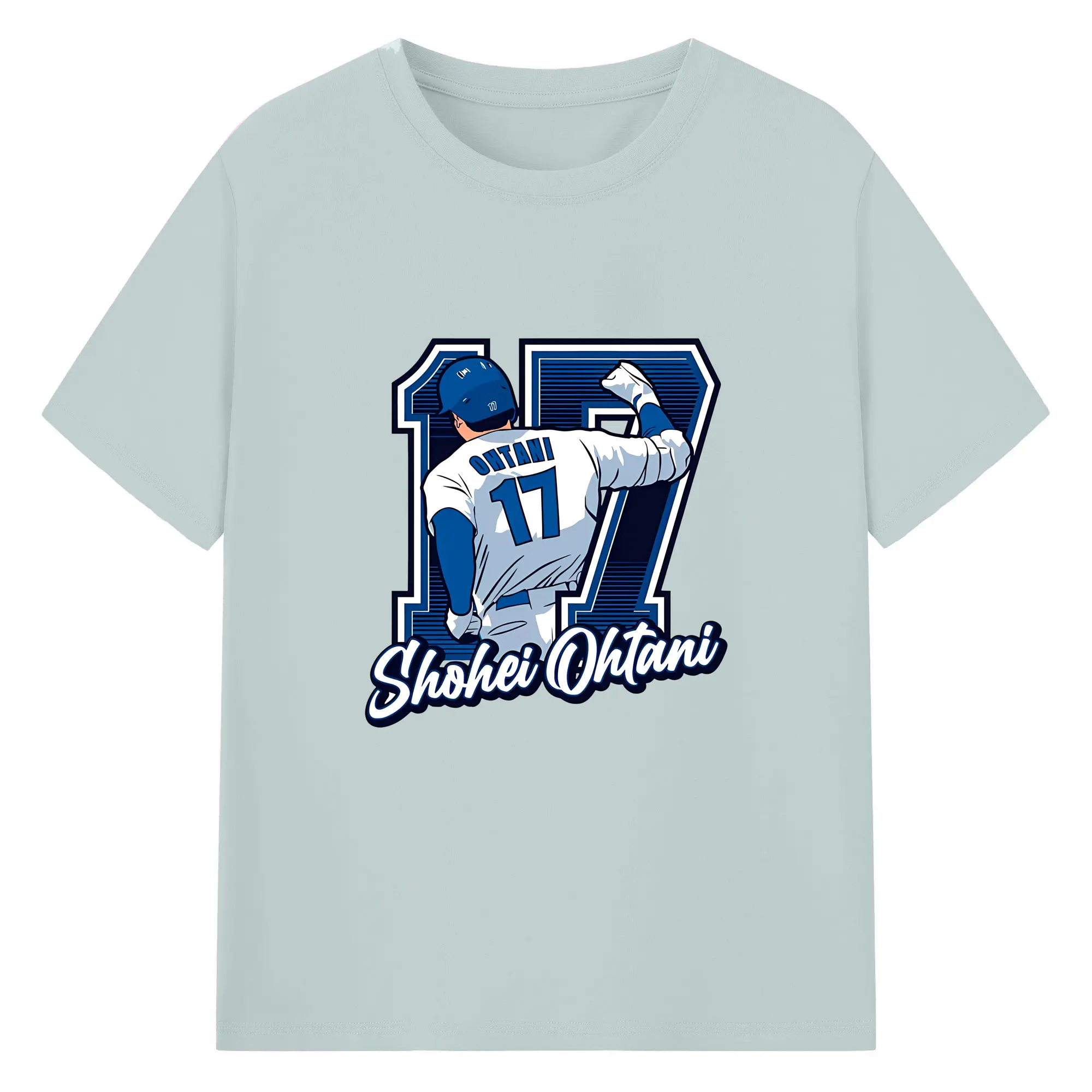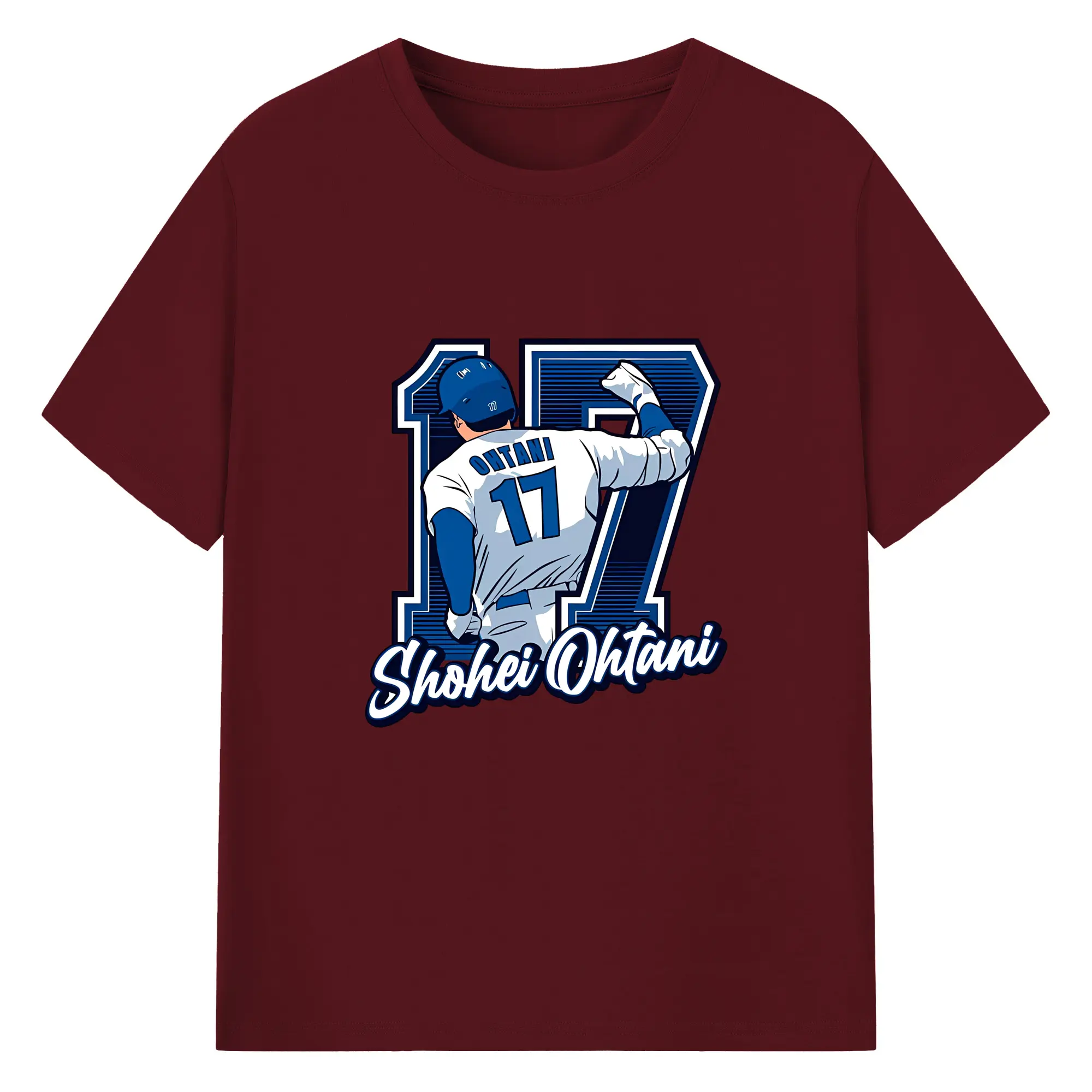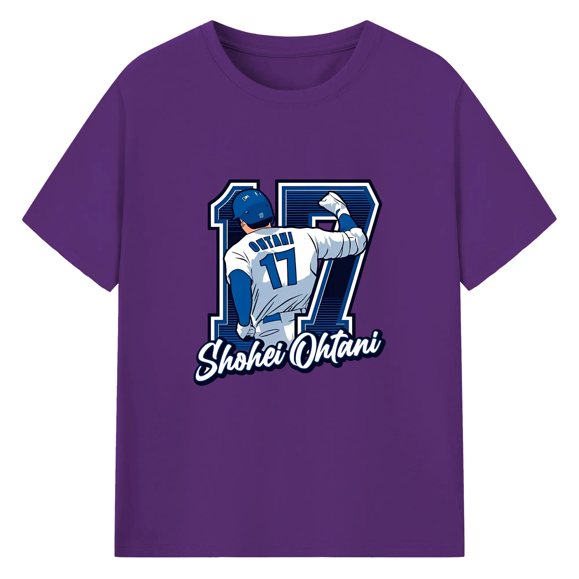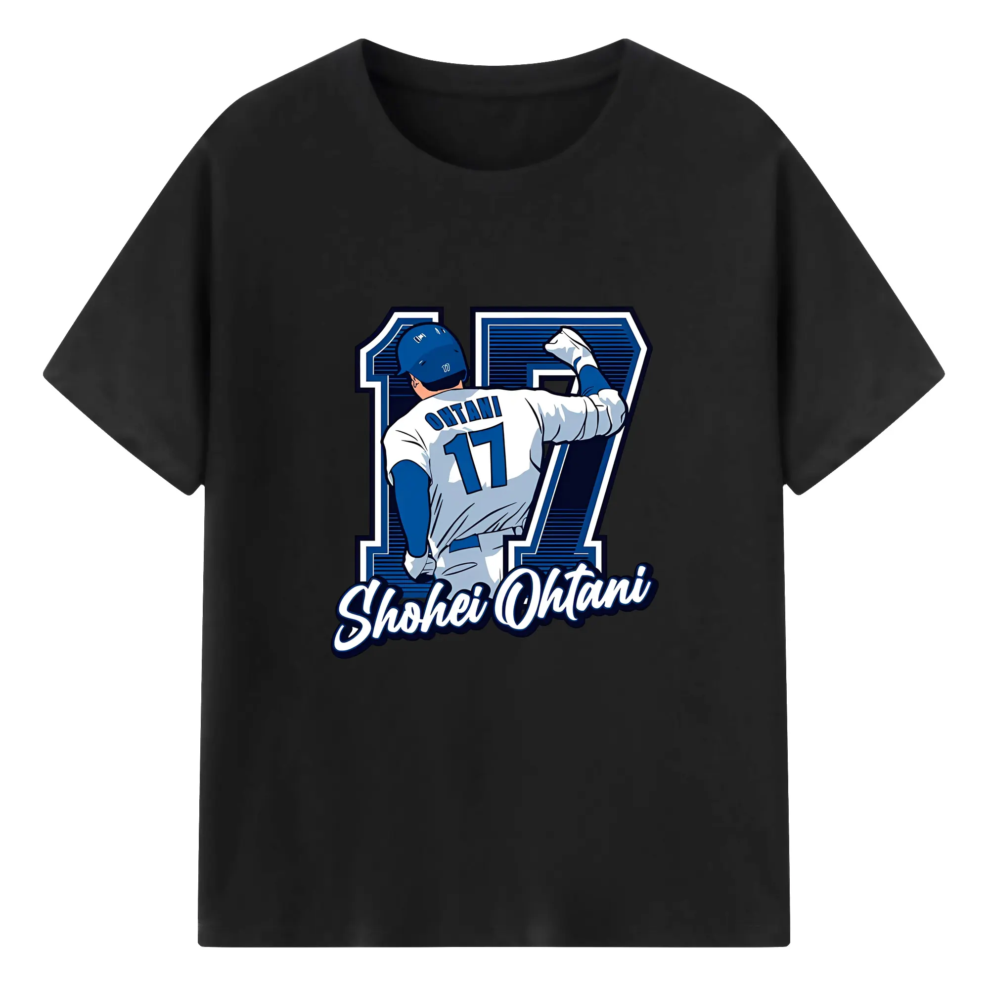 大谷翔平 背番号17 コレクターズアイテム - 綿100% 半袖Tシャツ ・ フロントプリント ・ 快適 通気性 ・ 日常使い 散歩 スポーツ用