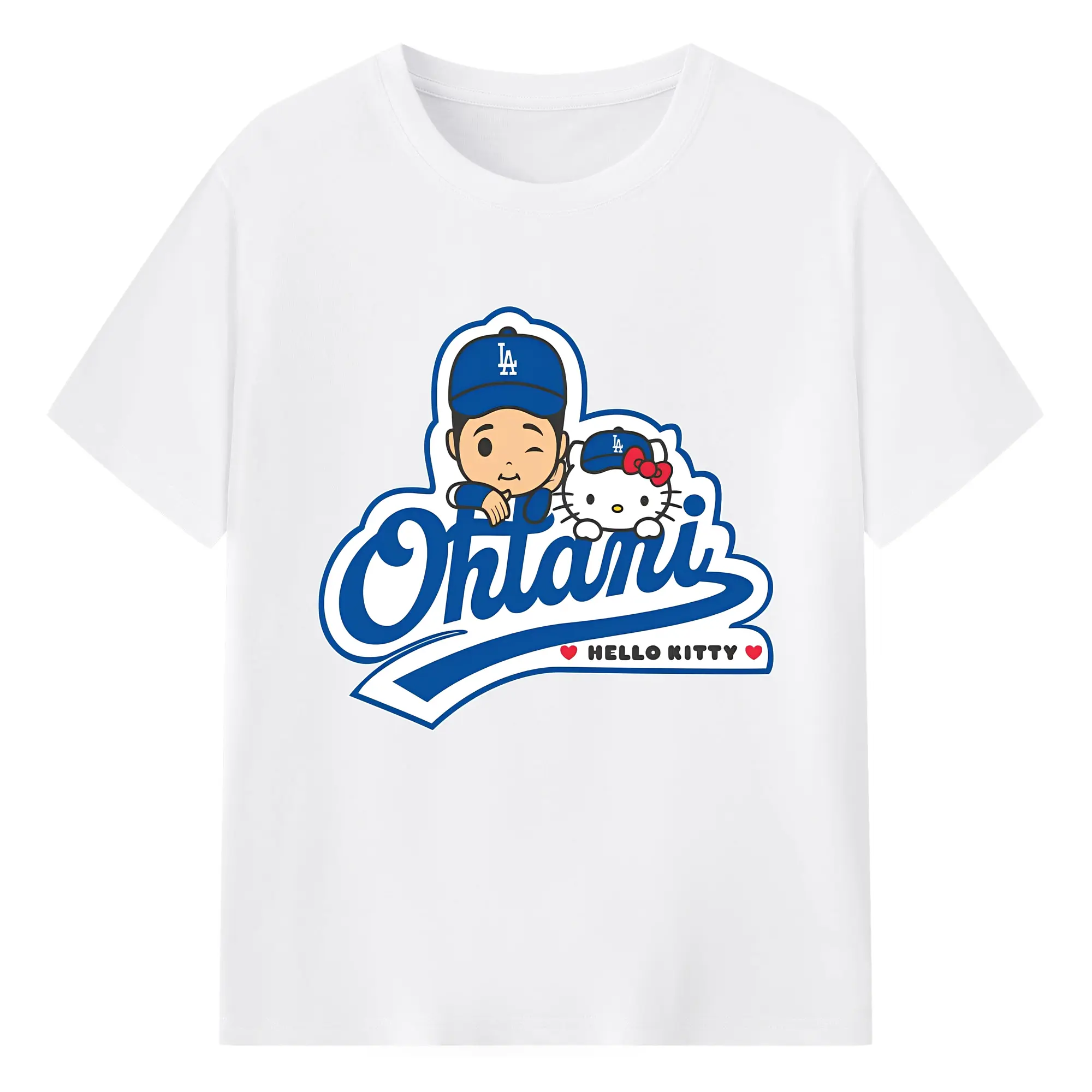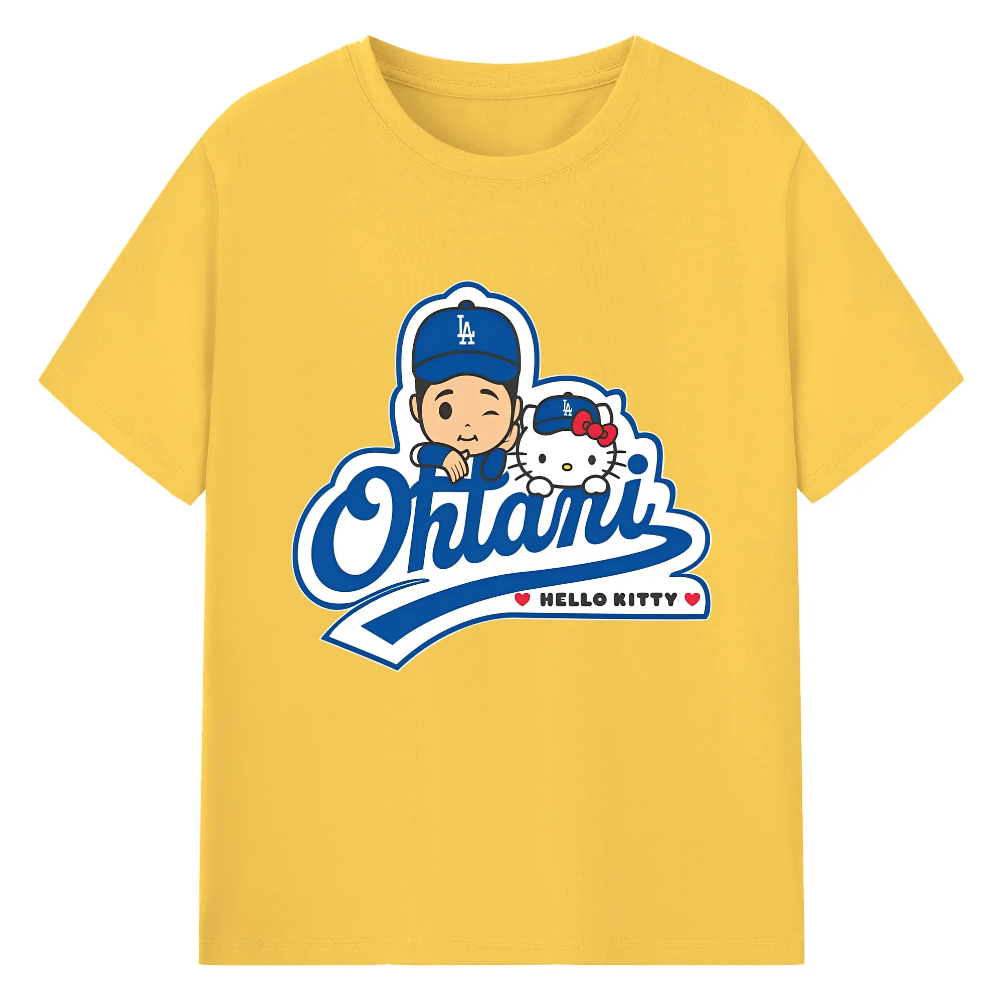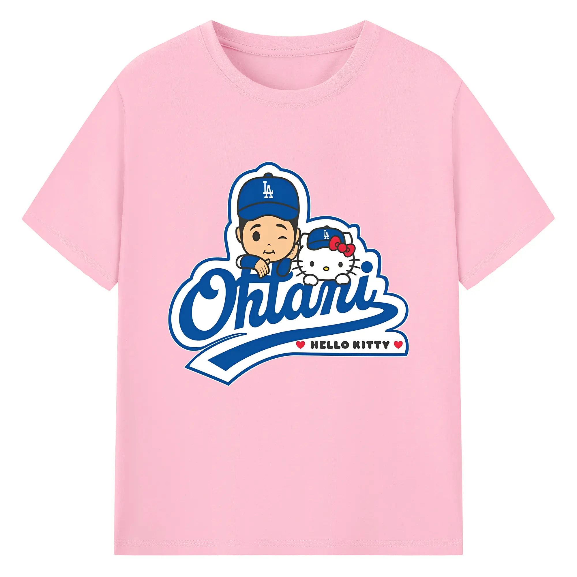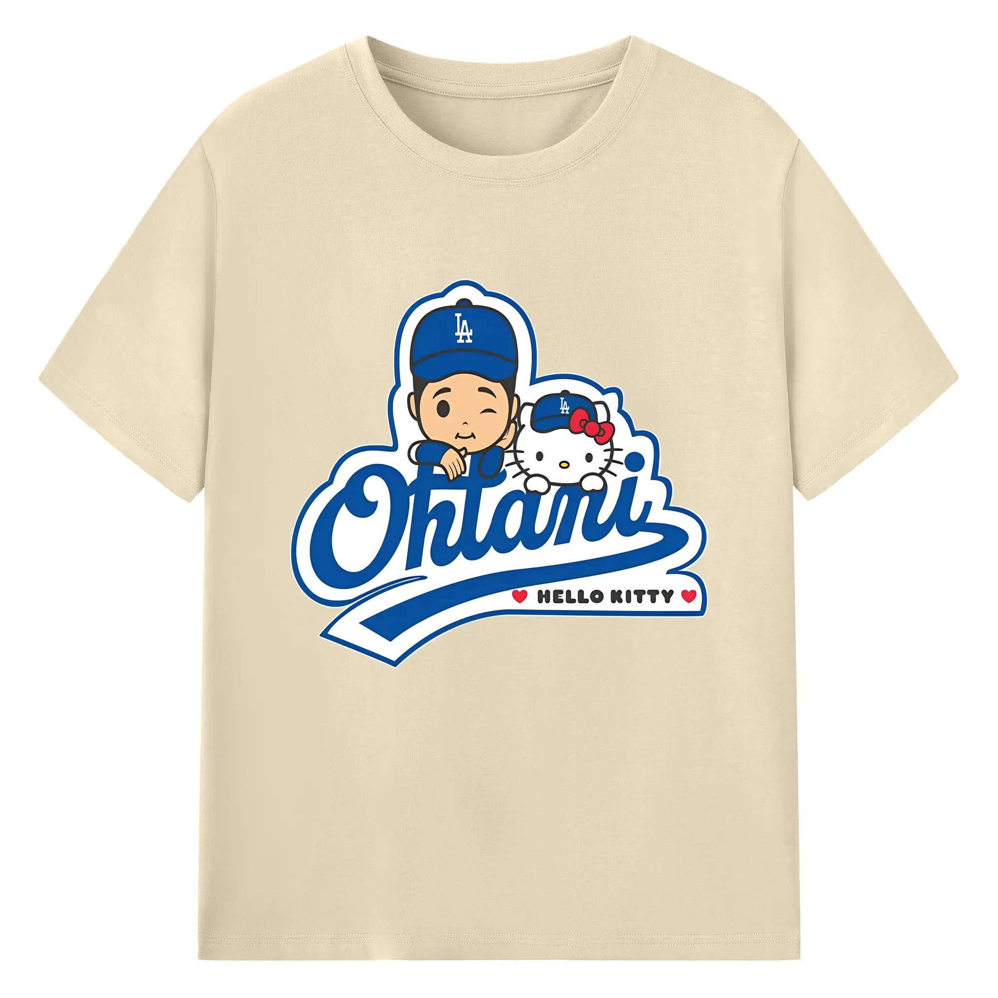 【数量限定】大谷翔平×ハローキティカジュアル - 綿100% ヴィンテージ風 半袖Tシャツ ・ フロントプリント ・ 柔らか肌触り ・ 通気性 快適 ・ スポーツ カジュアル 外出用