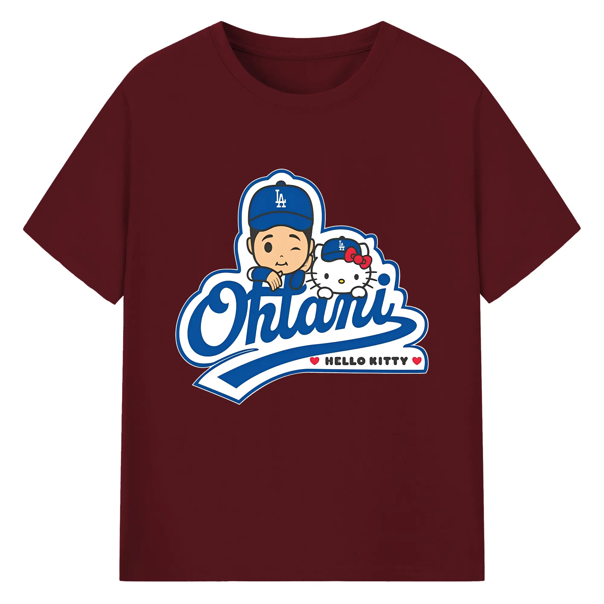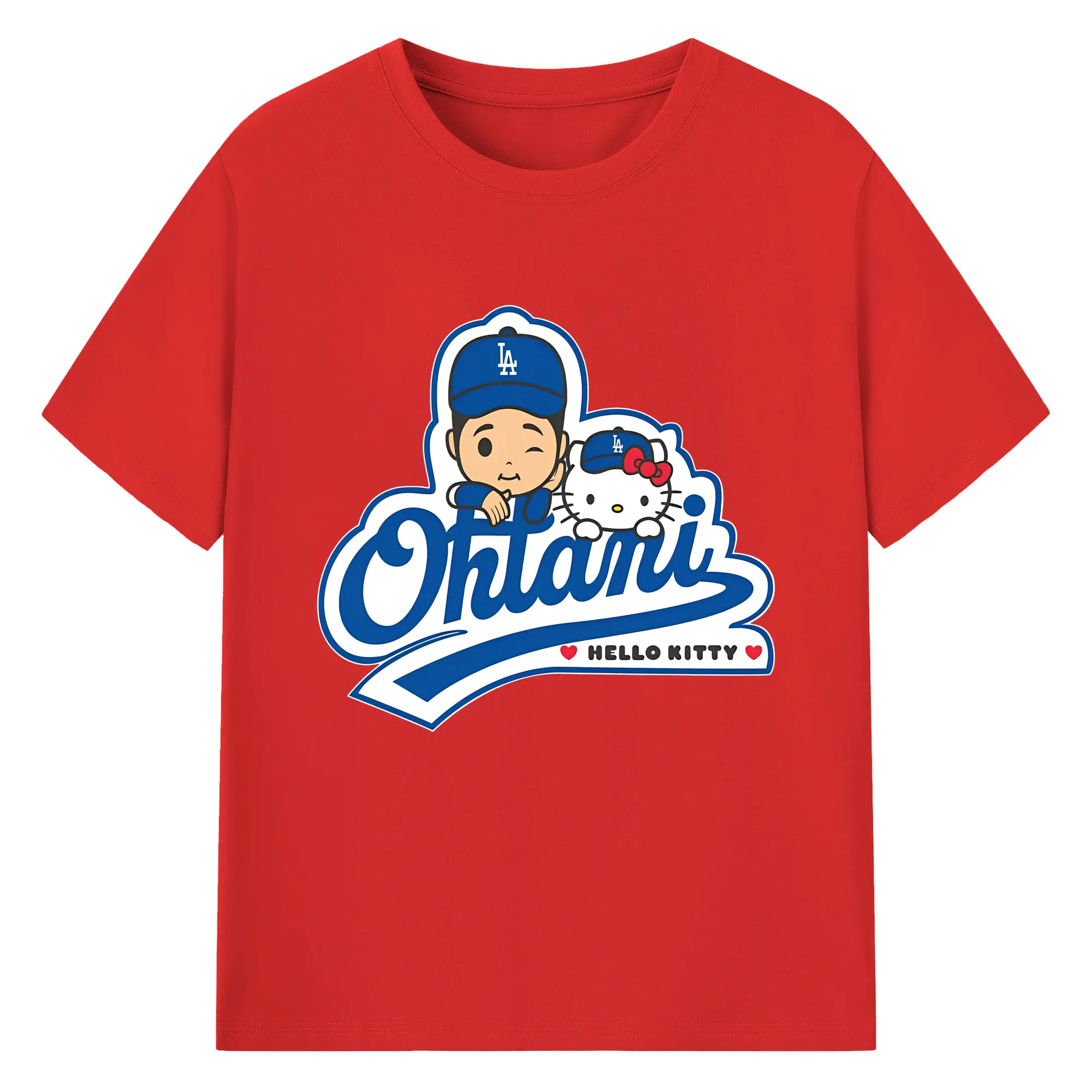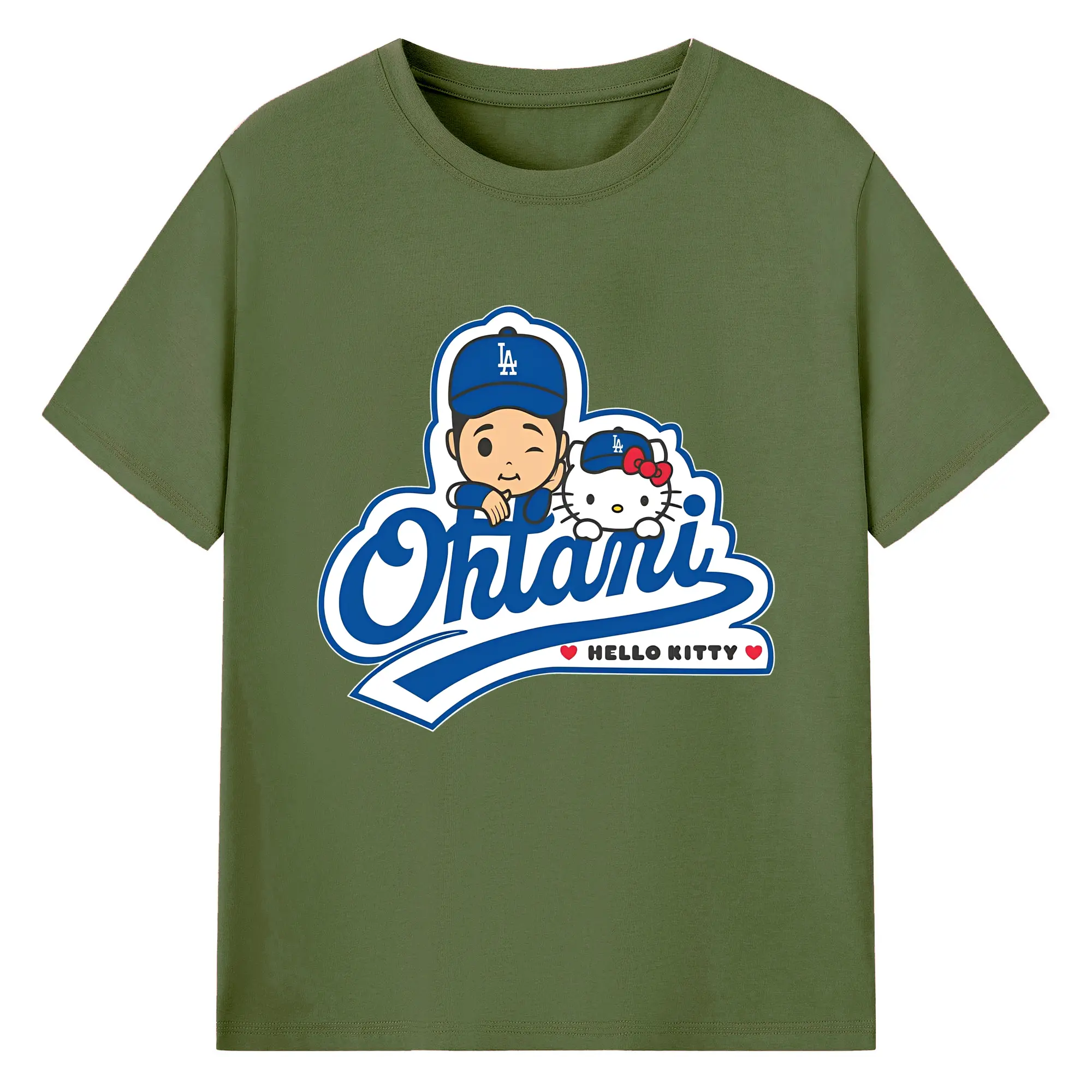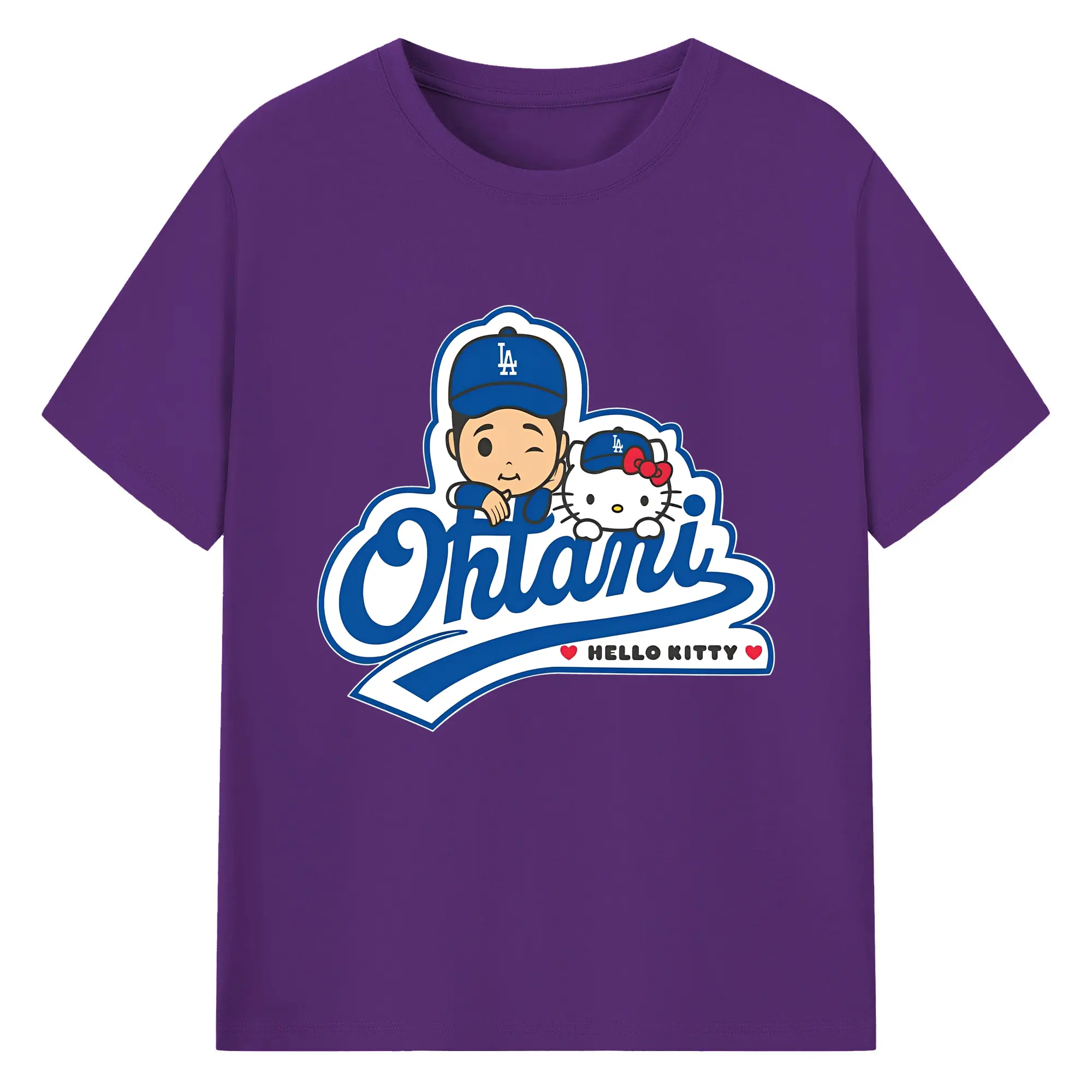 【数量限定】大谷翔平×ハローキティカジュアル - 綿100% ヴィンテージ風 半袖Tシャツ ・ フロントプリント ・ 柔らか肌触り ・ 通気性 快適 ・ スポーツ カジュアル 外出用