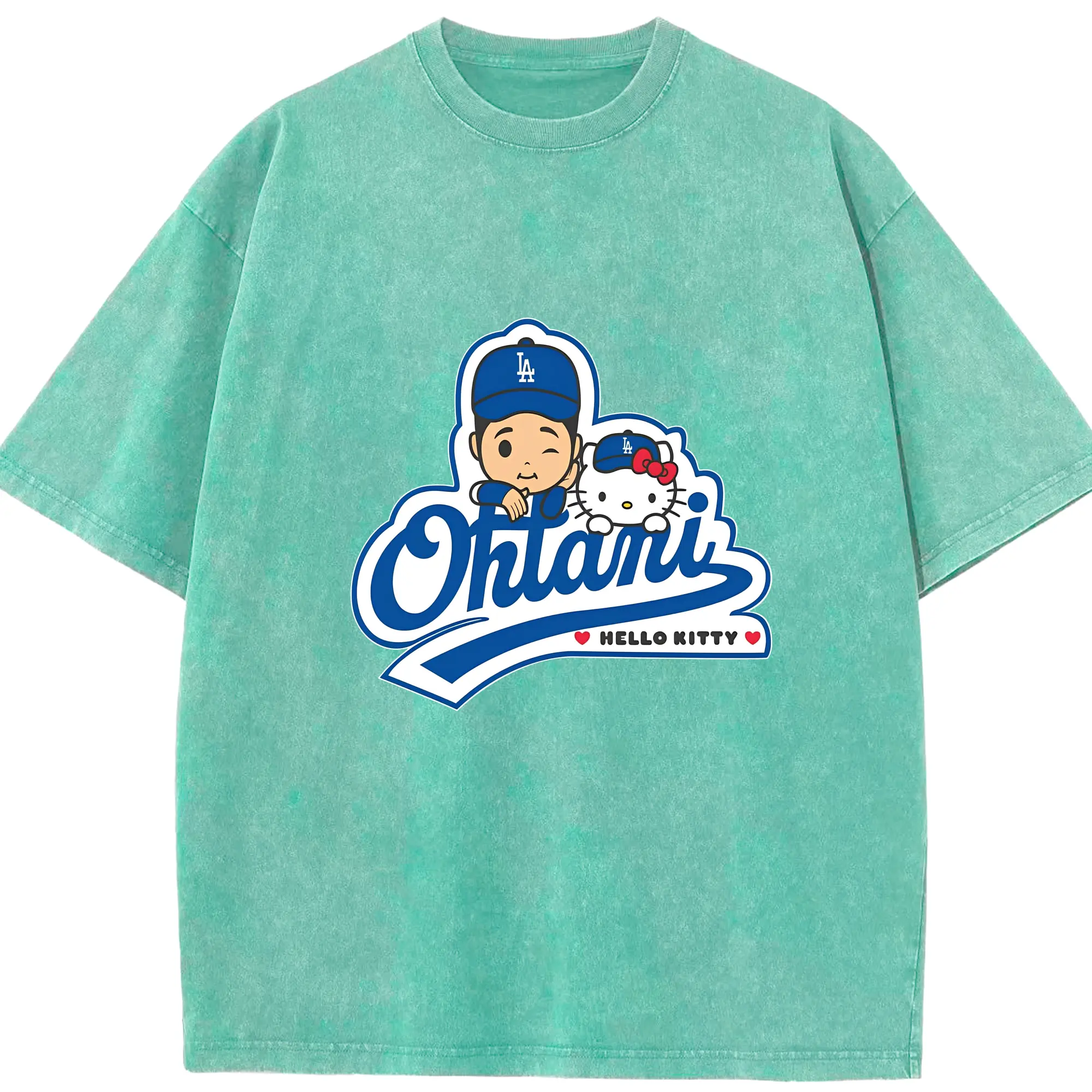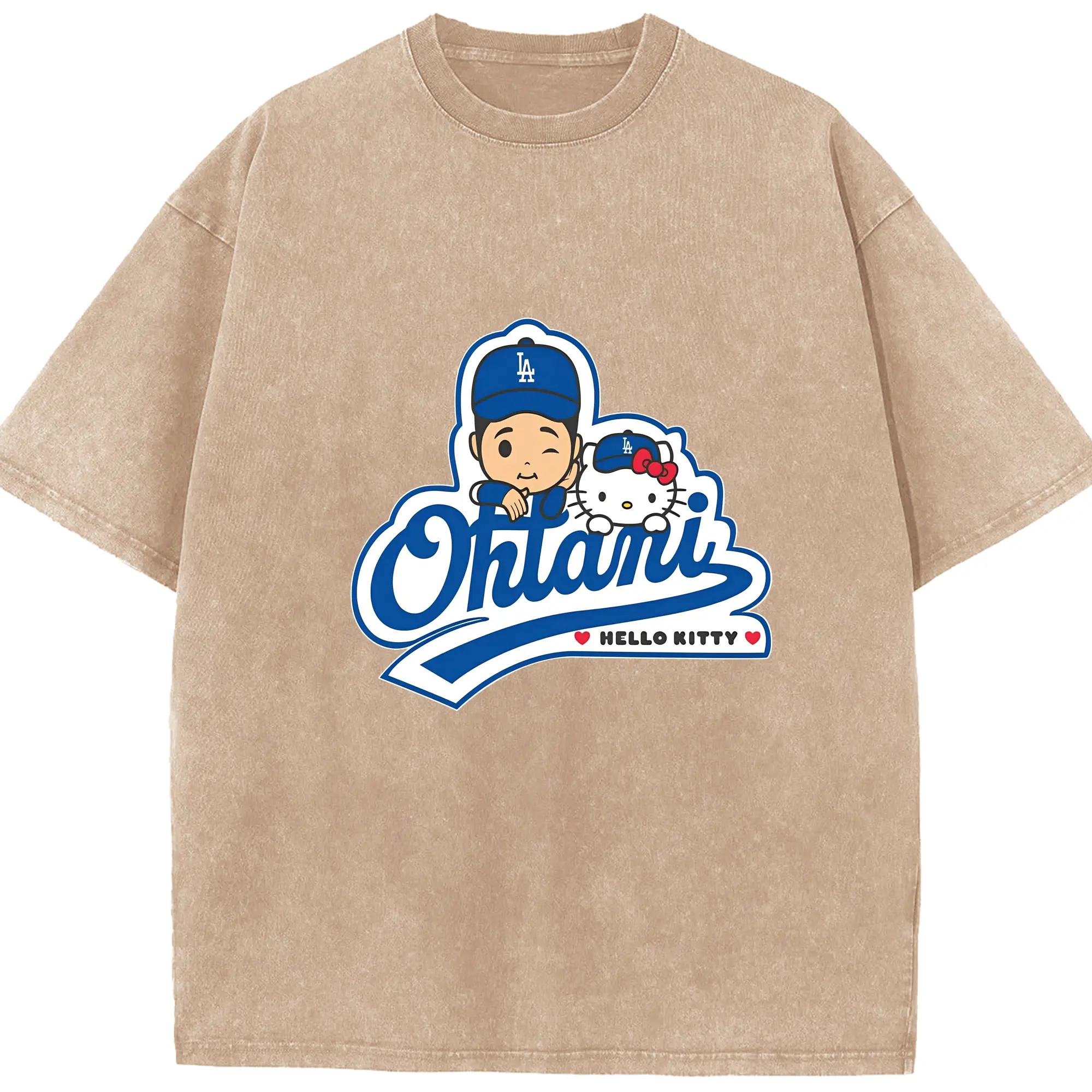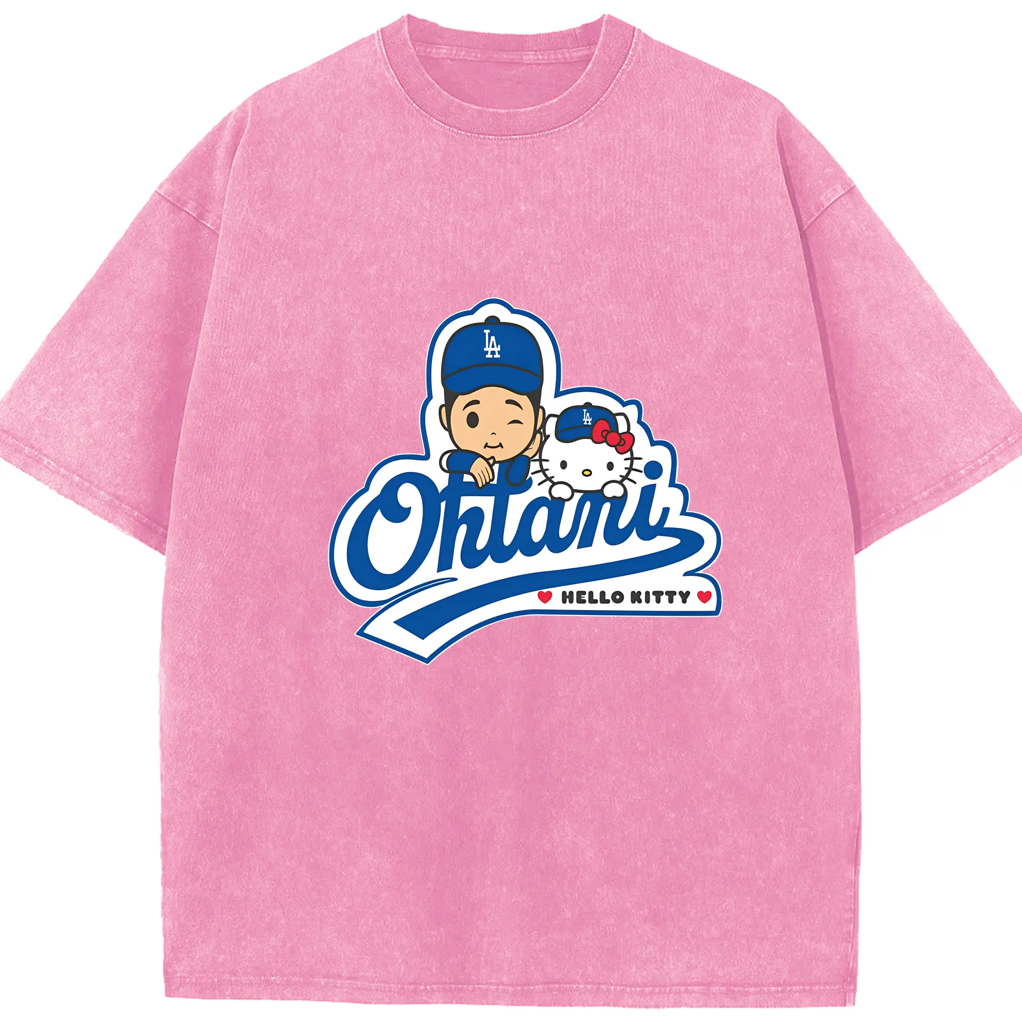 【数量限定】大谷翔平×ハローキティカジュアル - 綿100% 半袖Tシャツ ・ フロントプリント ・ 快適 通気性 ・ 日常使い 散歩 スポーツ用