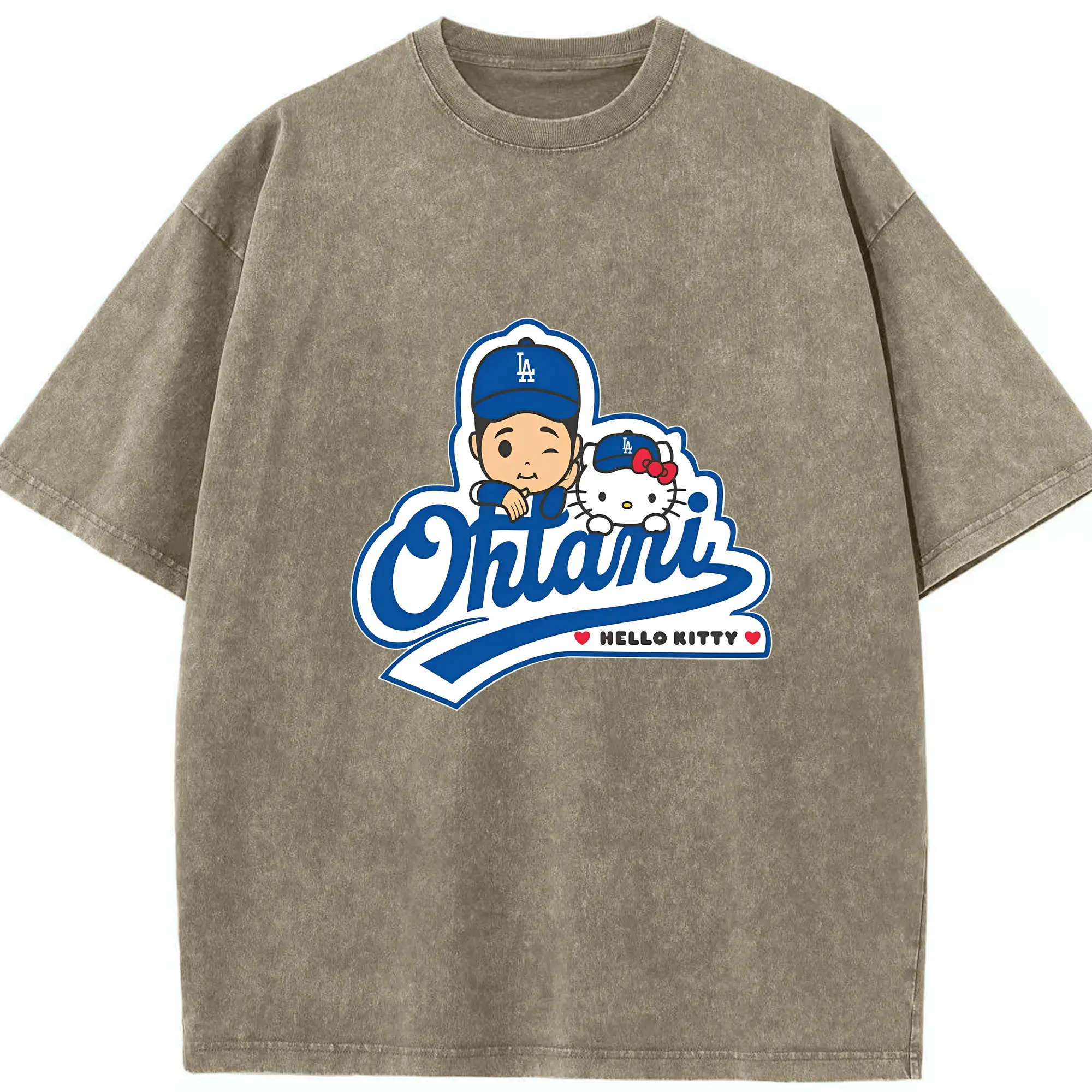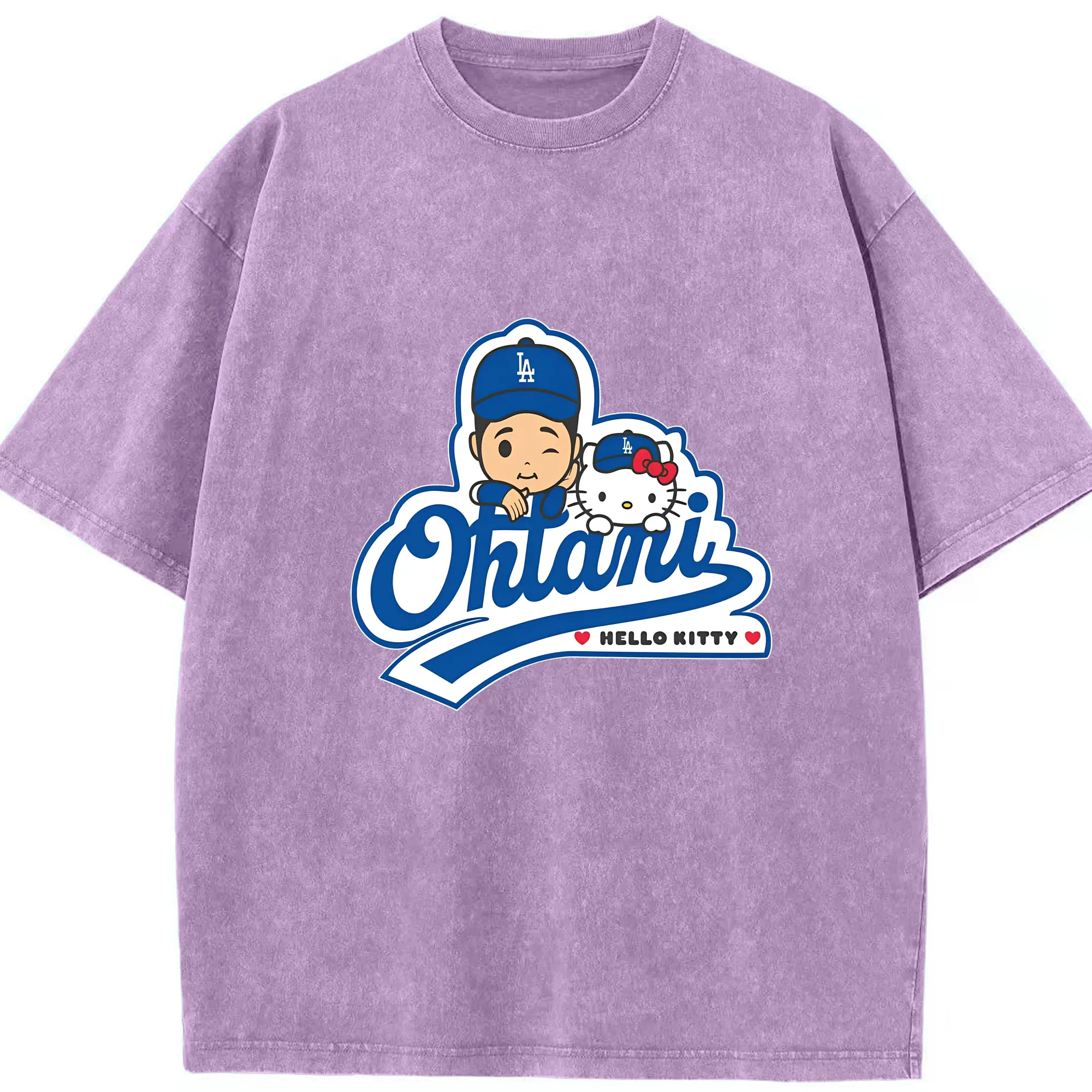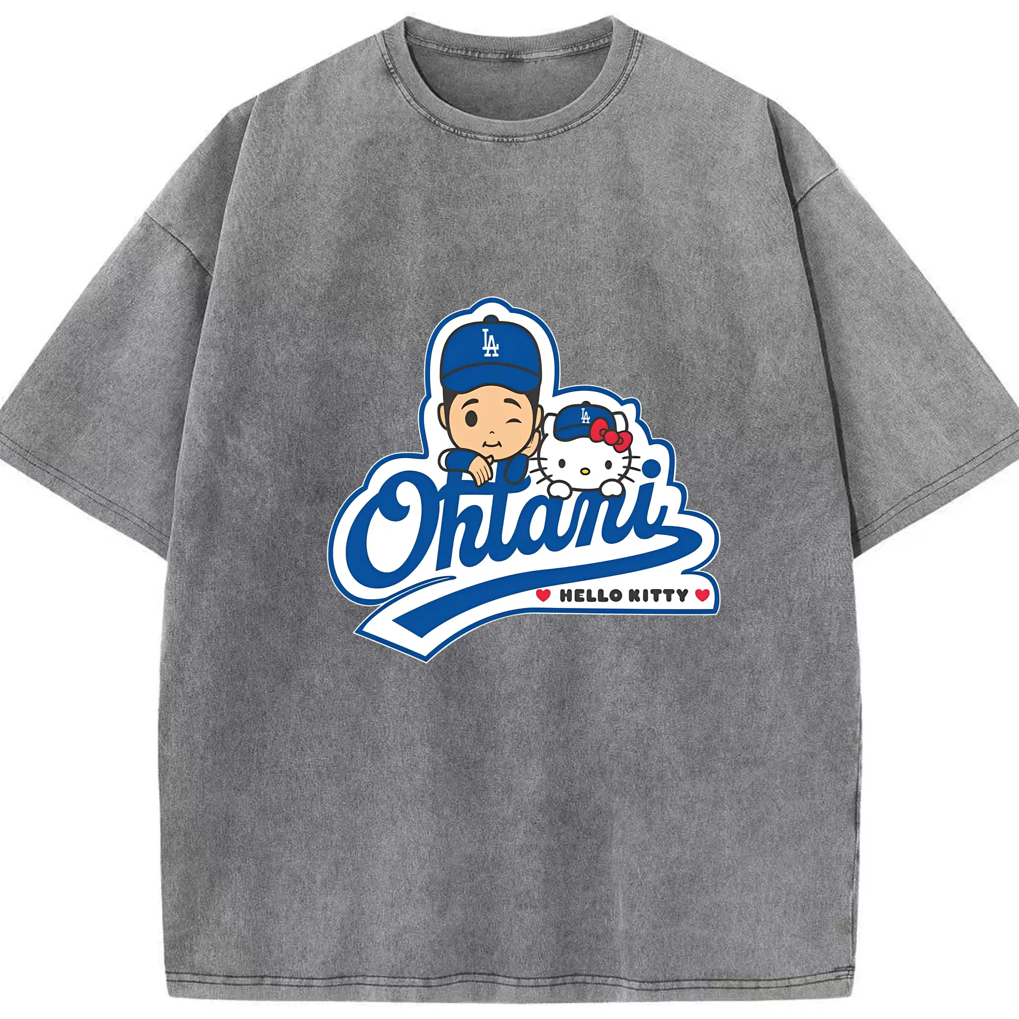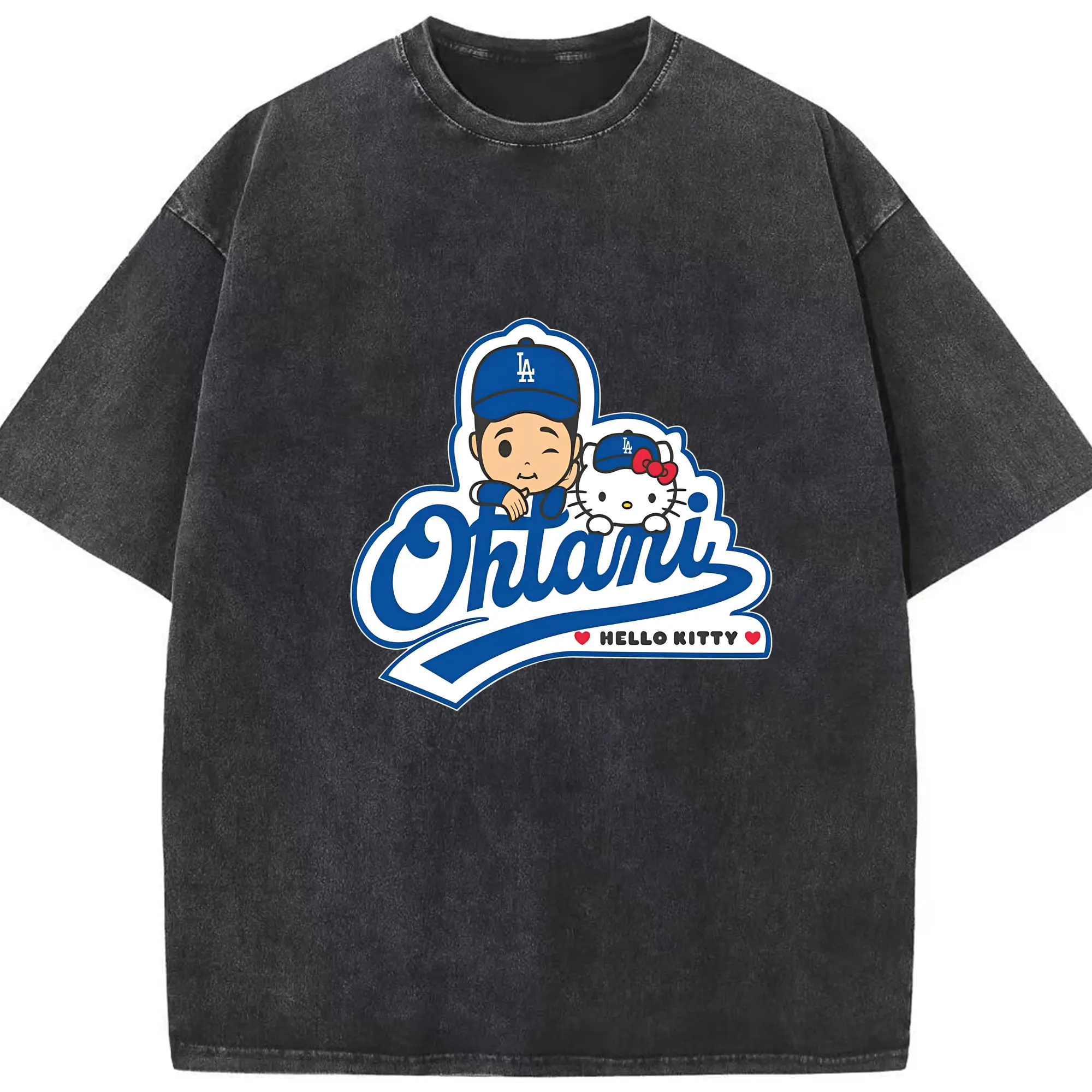 【数量限定】大谷翔平×ハローキティカジュアル - 綿100% 半袖Tシャツ ・ フロントプリント ・ 快適 通気性 ・ 日常使い 散歩 スポーツ用