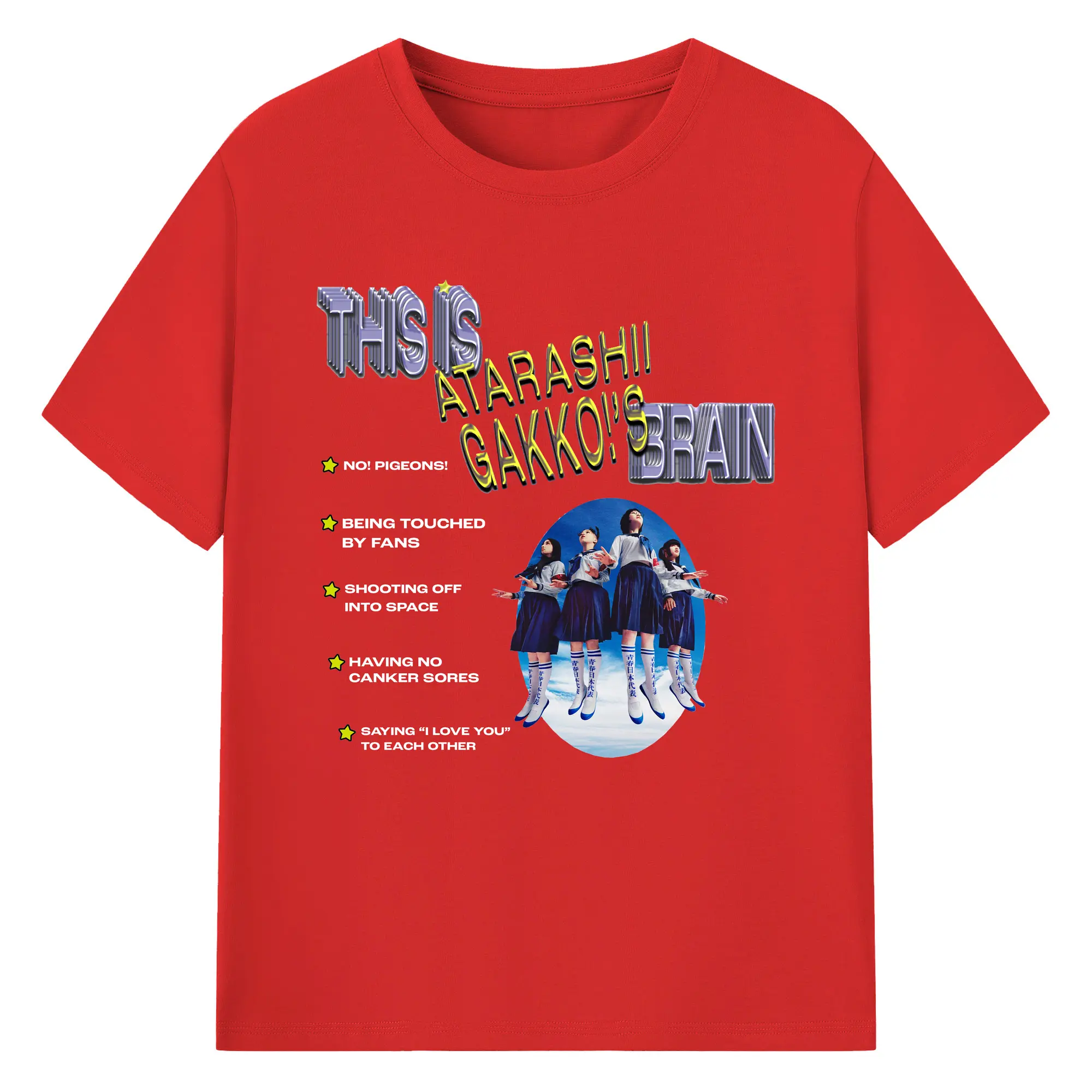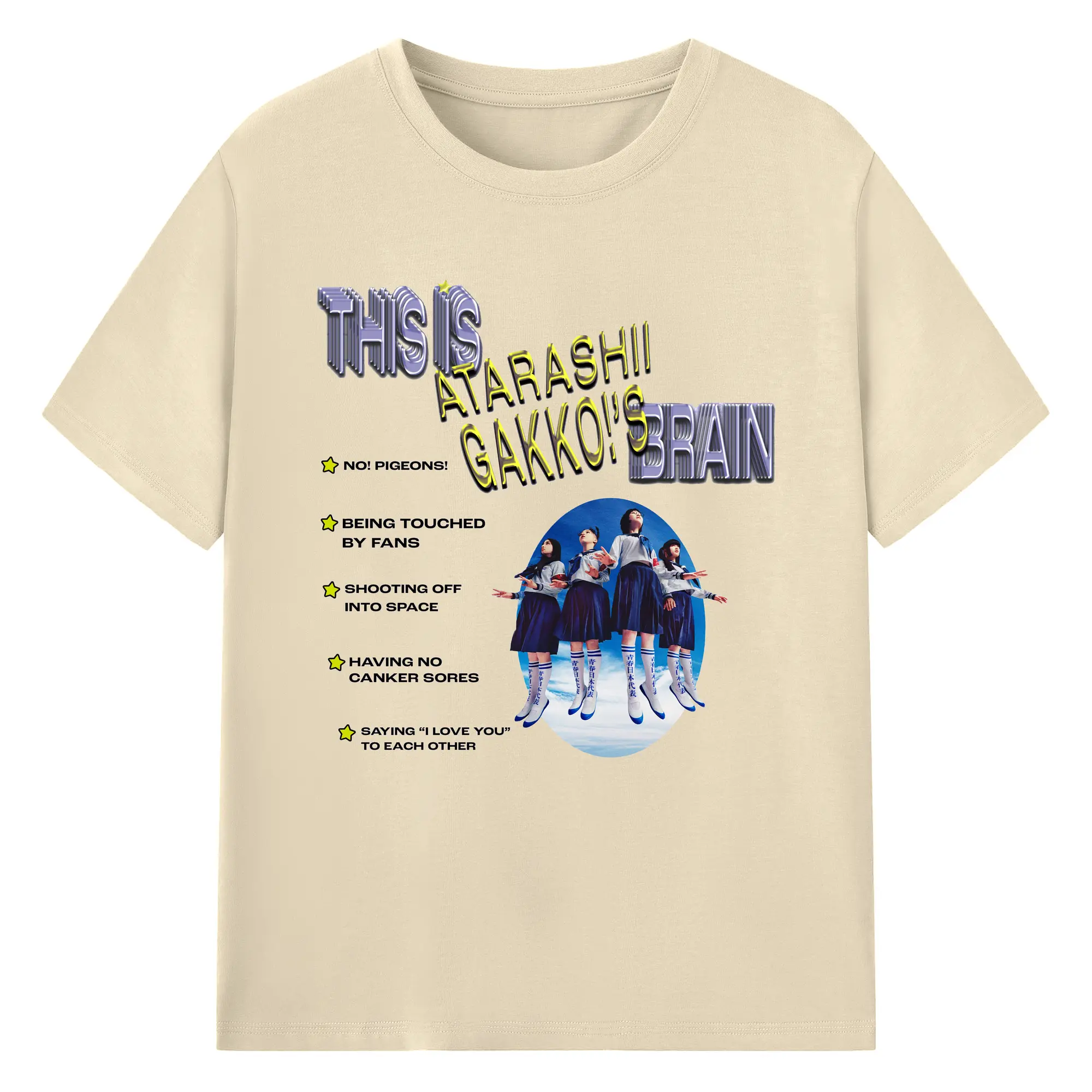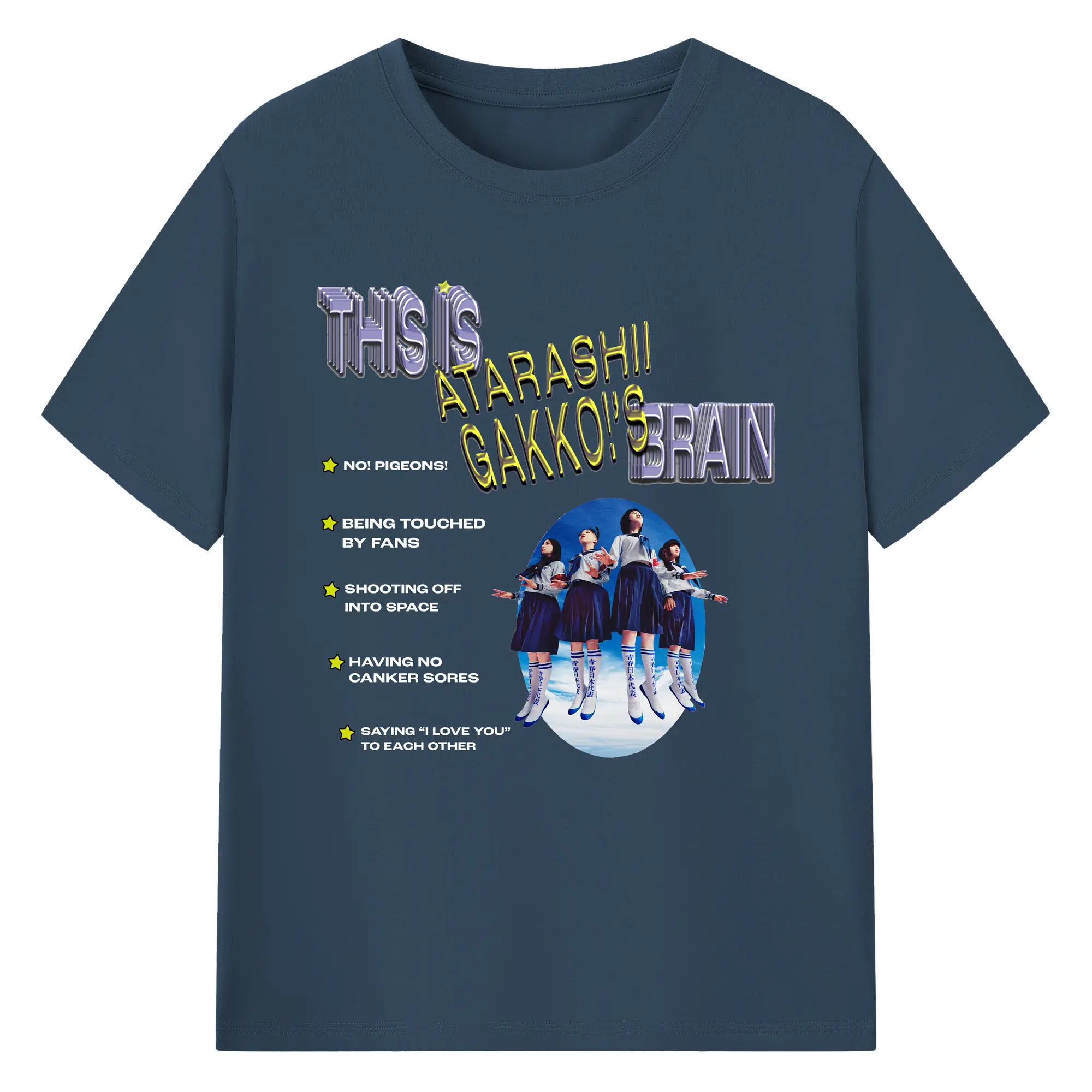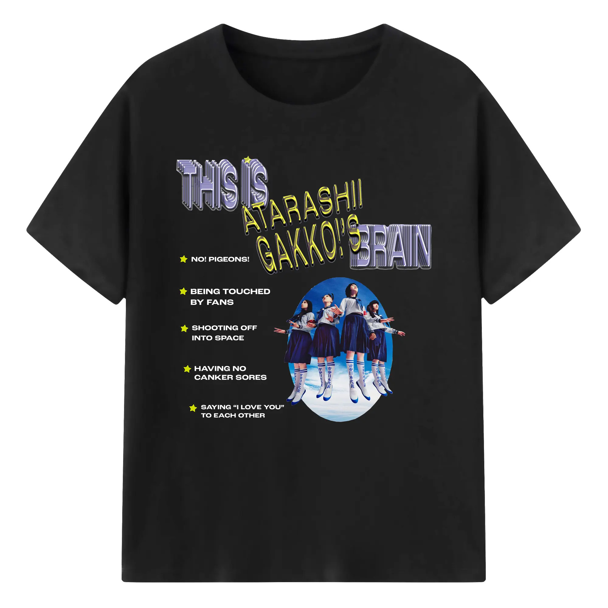 新しい学校のリーダーズAtarashii Gakko! - 綿100% ヴィンテージ風 半袖Tシャツ ・ フロントプリント ・ 柔らか肌触り ・ 通気性 快適 ・ スポーツ カジュアル 外出用