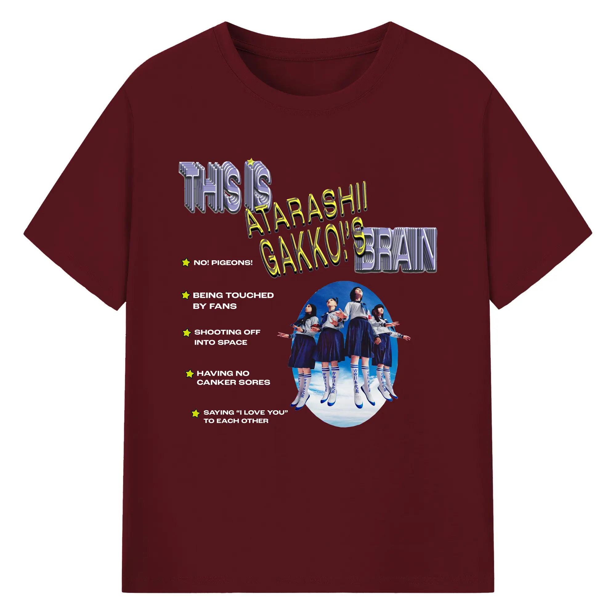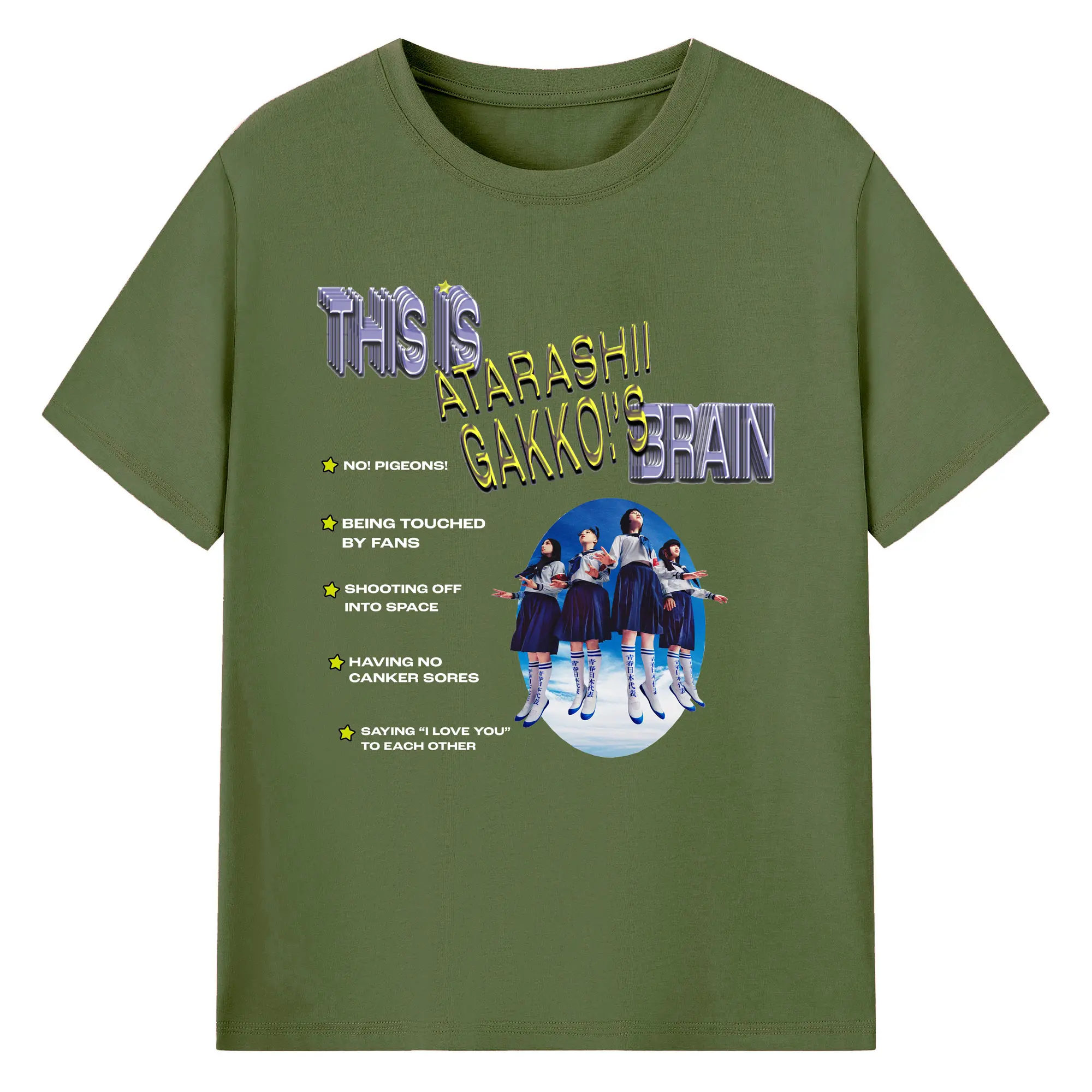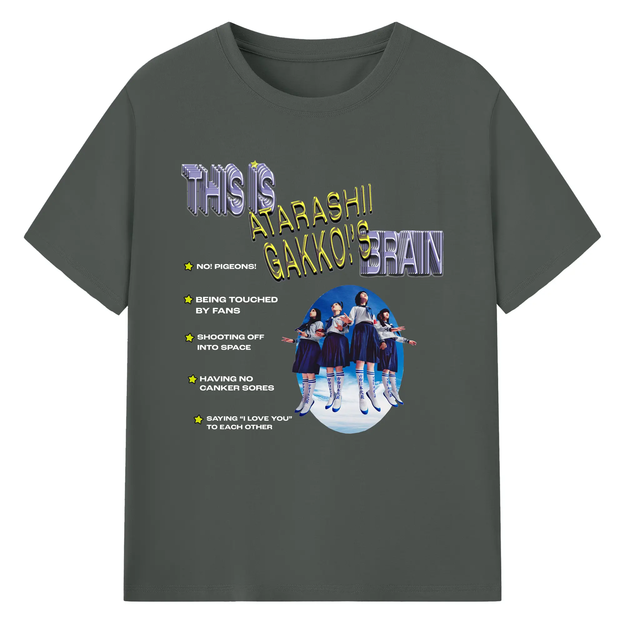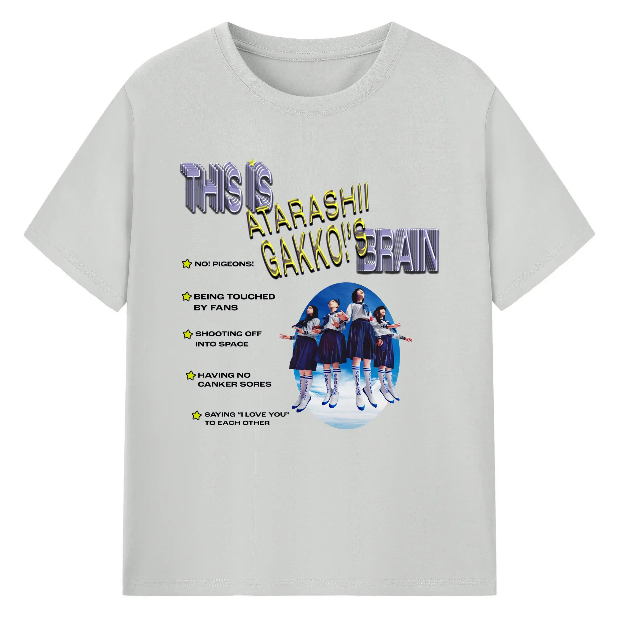 新しい学校のリーダーズAtarashii Gakko! - 綿100% ヴィンテージ風 半袖Tシャツ ・ フロントプリント ・ 柔らか肌触り ・ 通気性 快適 ・ スポーツ カジュアル 外出用