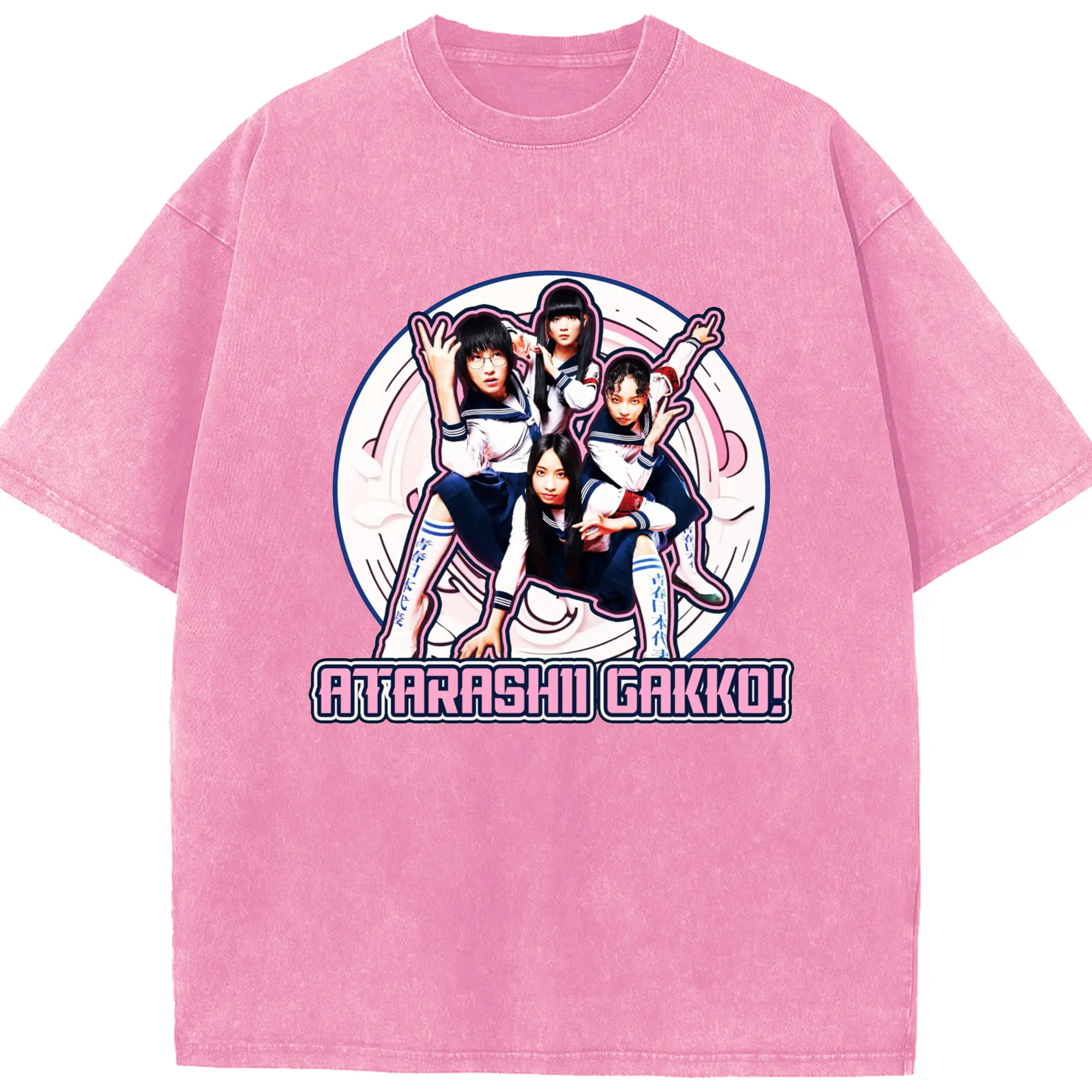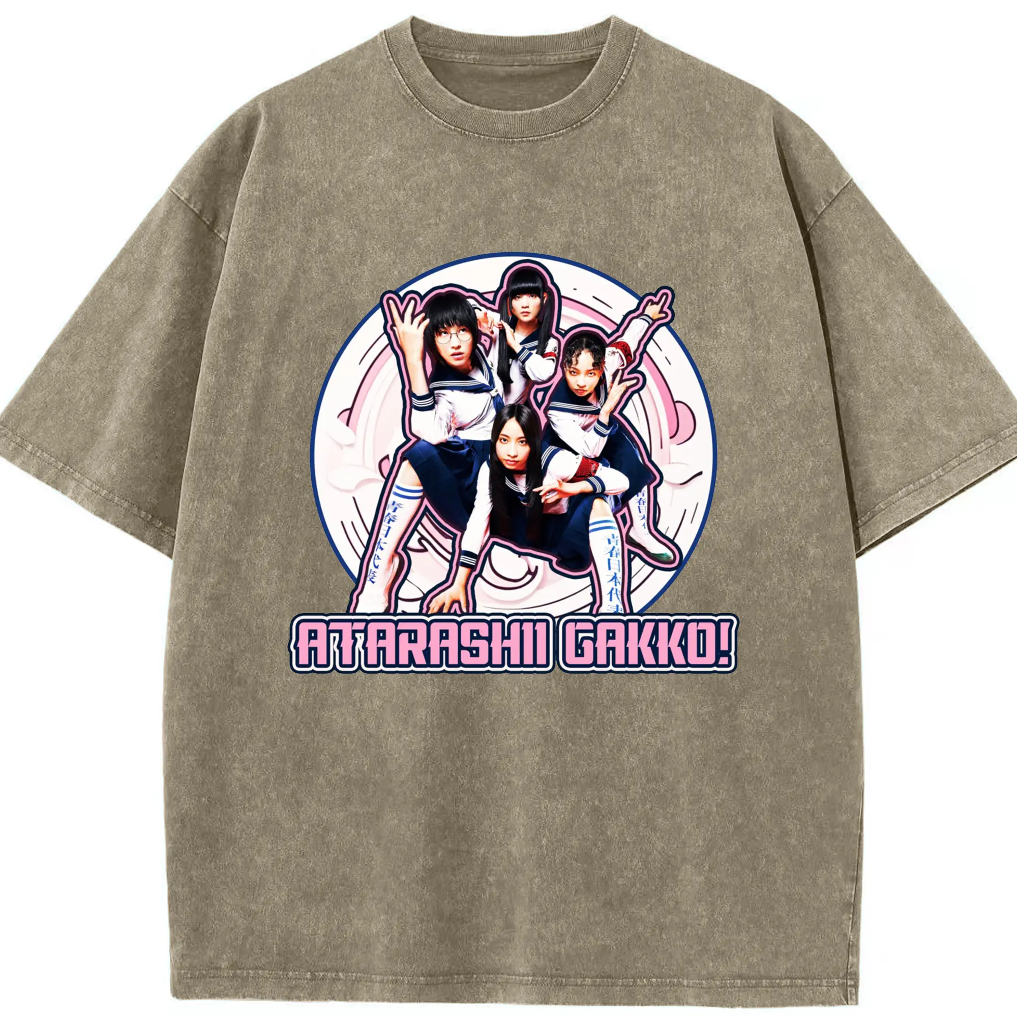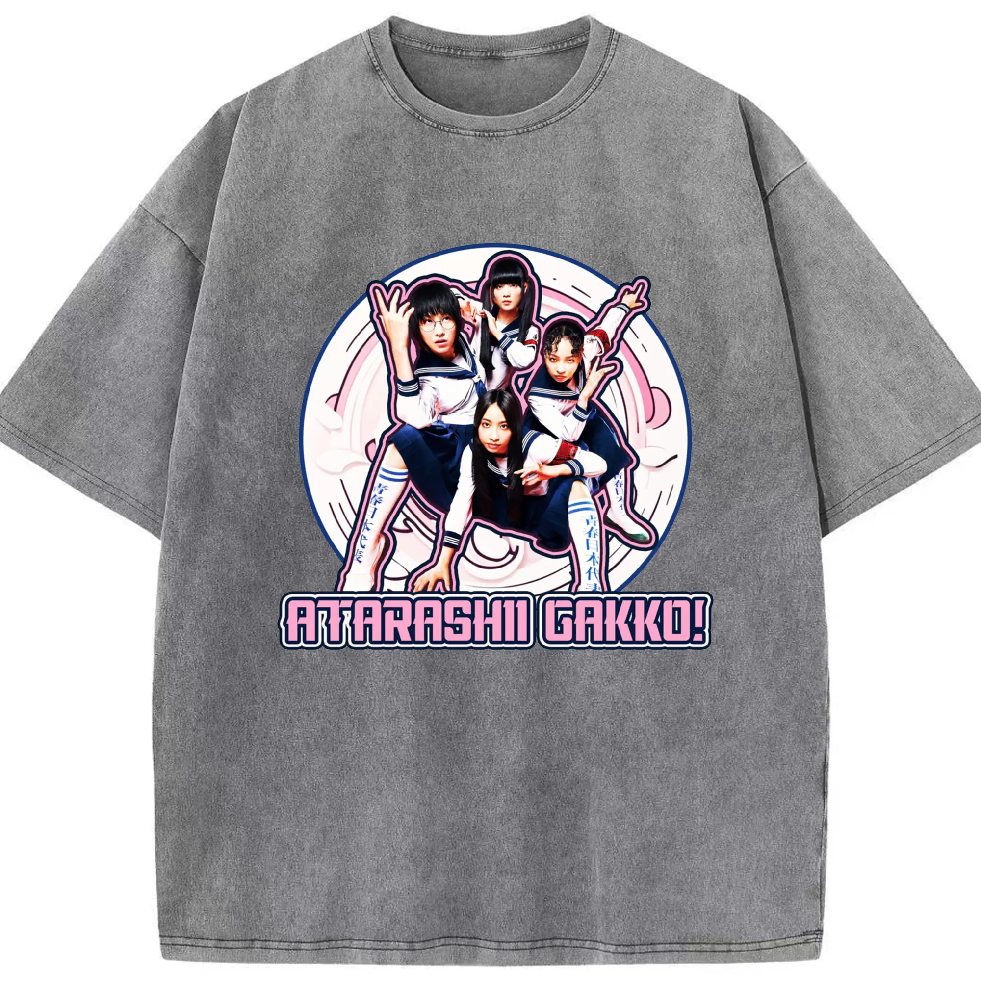 新しい学校のリーダーズAtarashii Gakko!AG!漫画風 - 綿100% ヴィンテージ風 半袖Tシャツ ・ フロントプリント ・ 柔らか肌触り ・ 通気性 快適 ・ スポーツ カジュアル 外出用