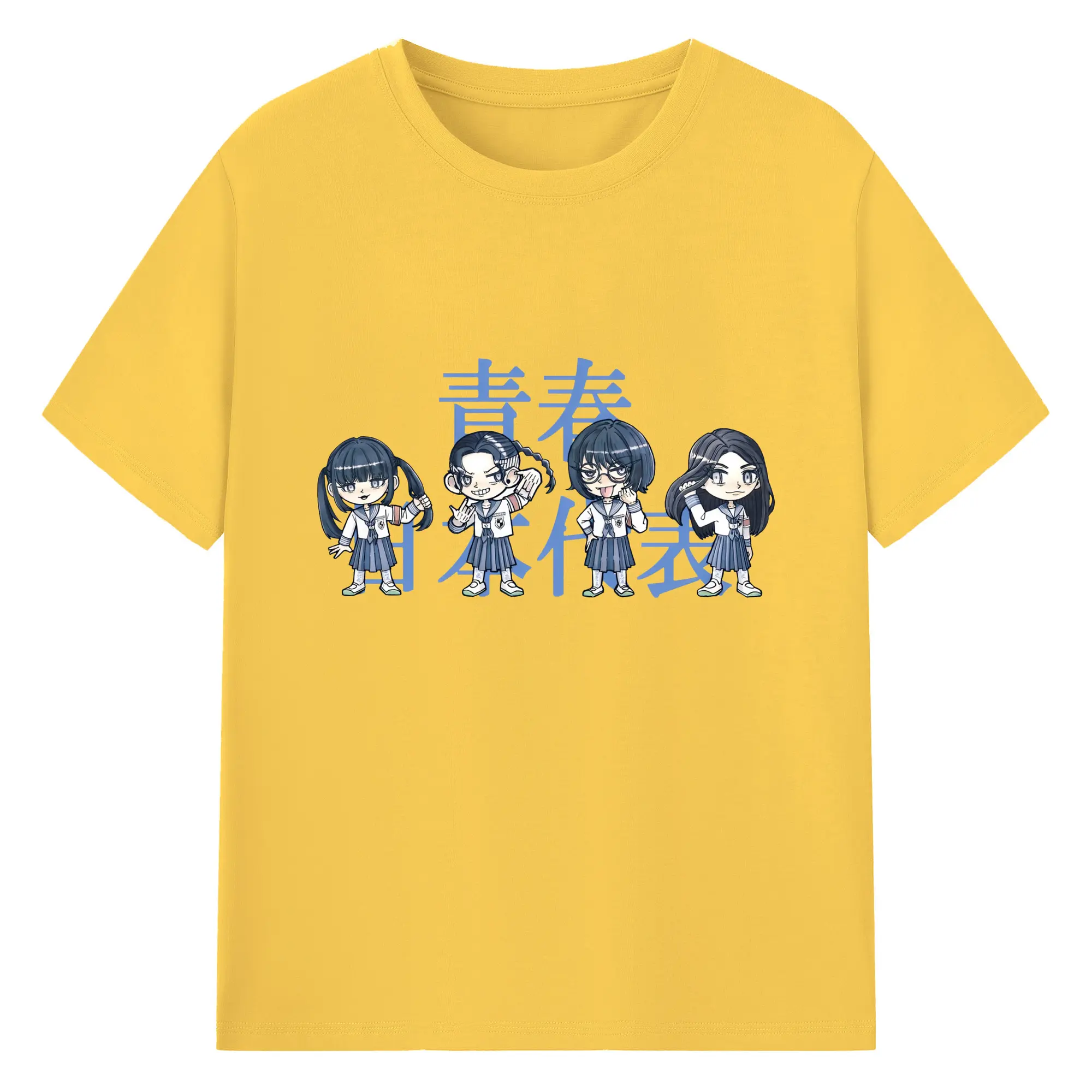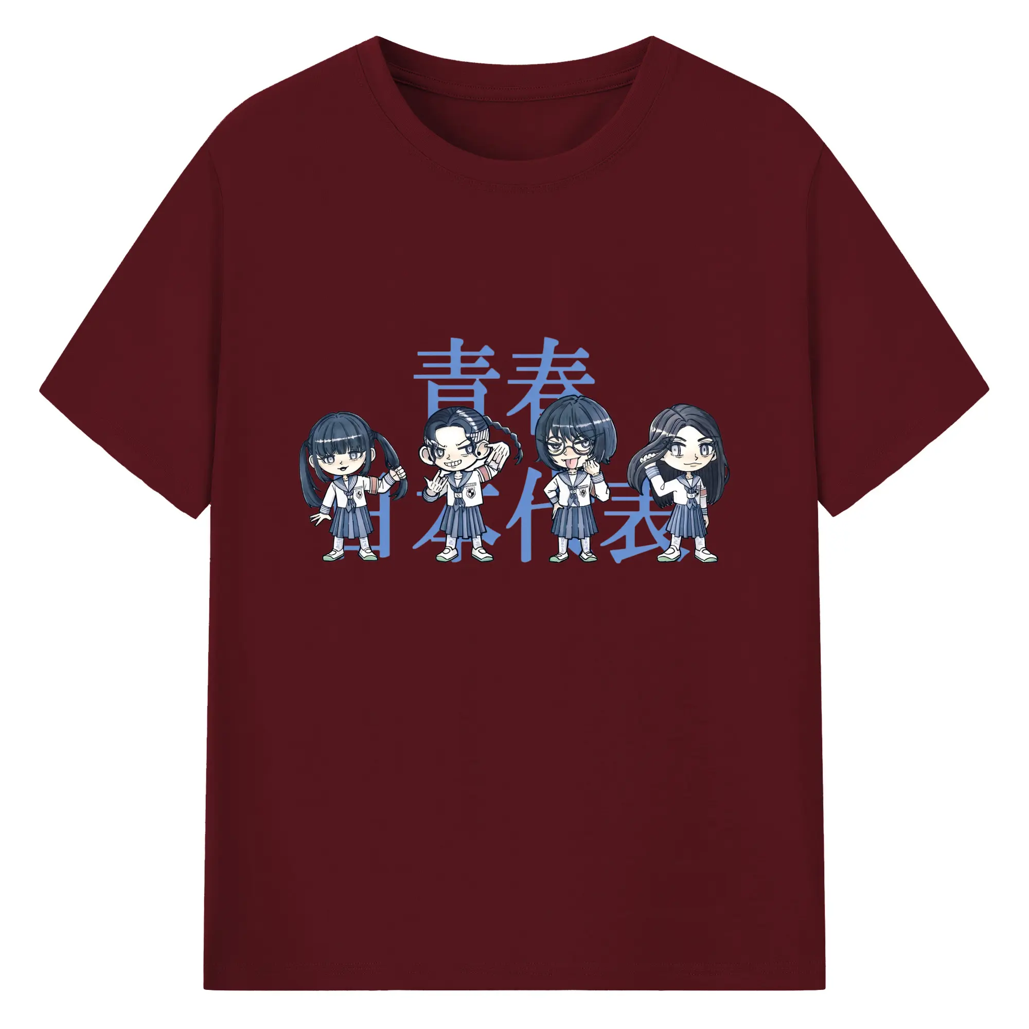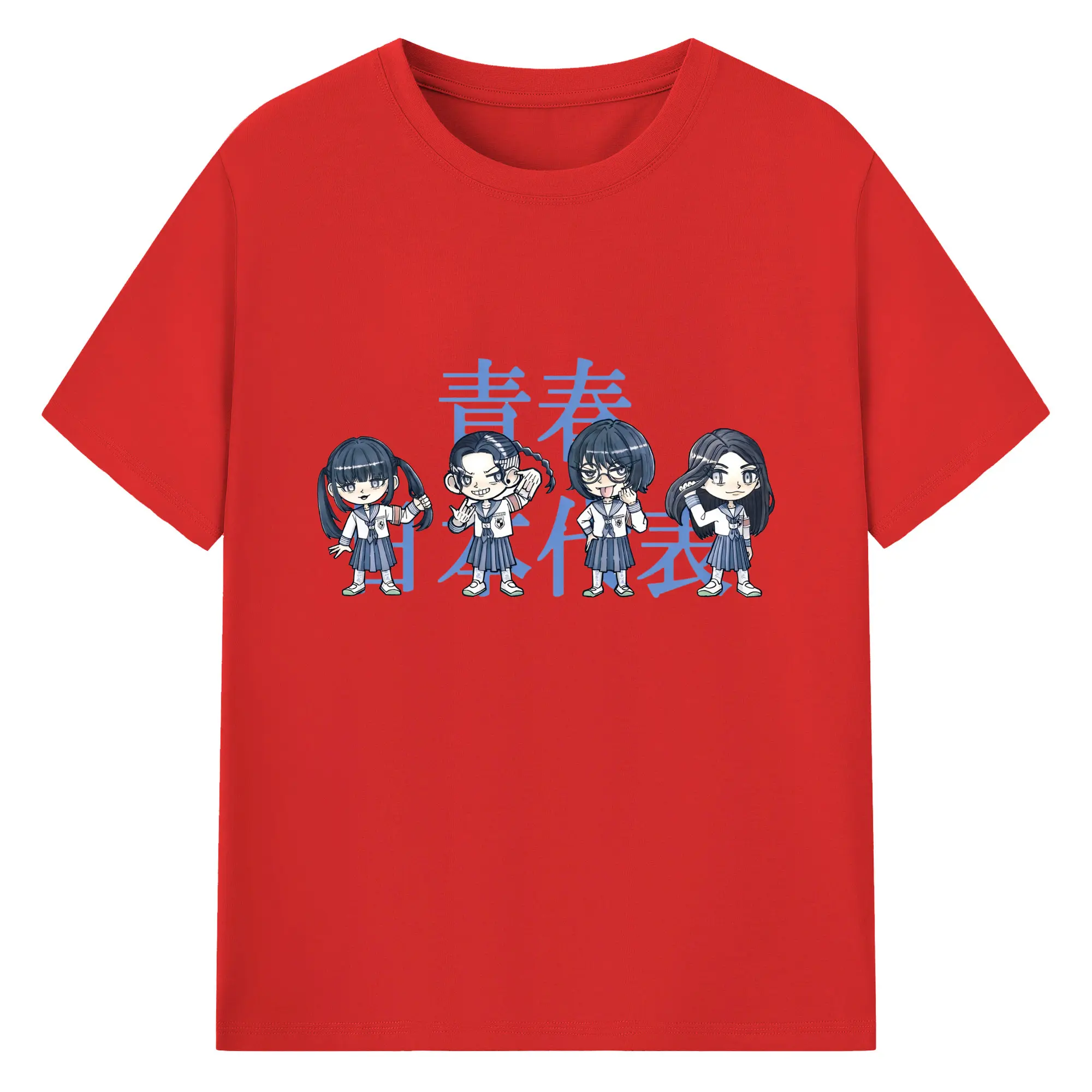 新しい学校のリーダーズAtarashii Gakko! 青春日本代表 - 綿100% ヴィンテージ風 半袖Tシャツ ・ フロントプリント ・ 柔らか肌触り ・ 通気性 快適 ・ スポーツ カジュアル 外出用