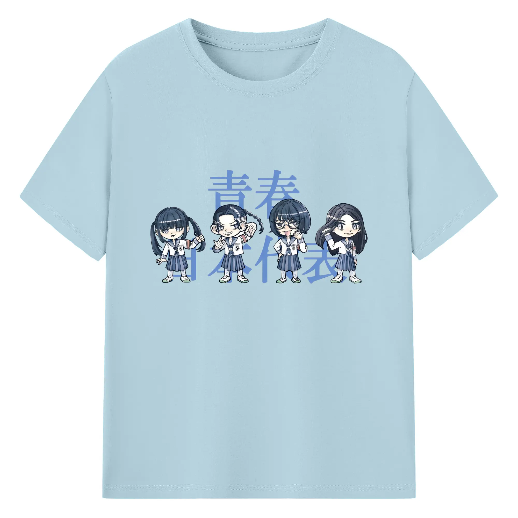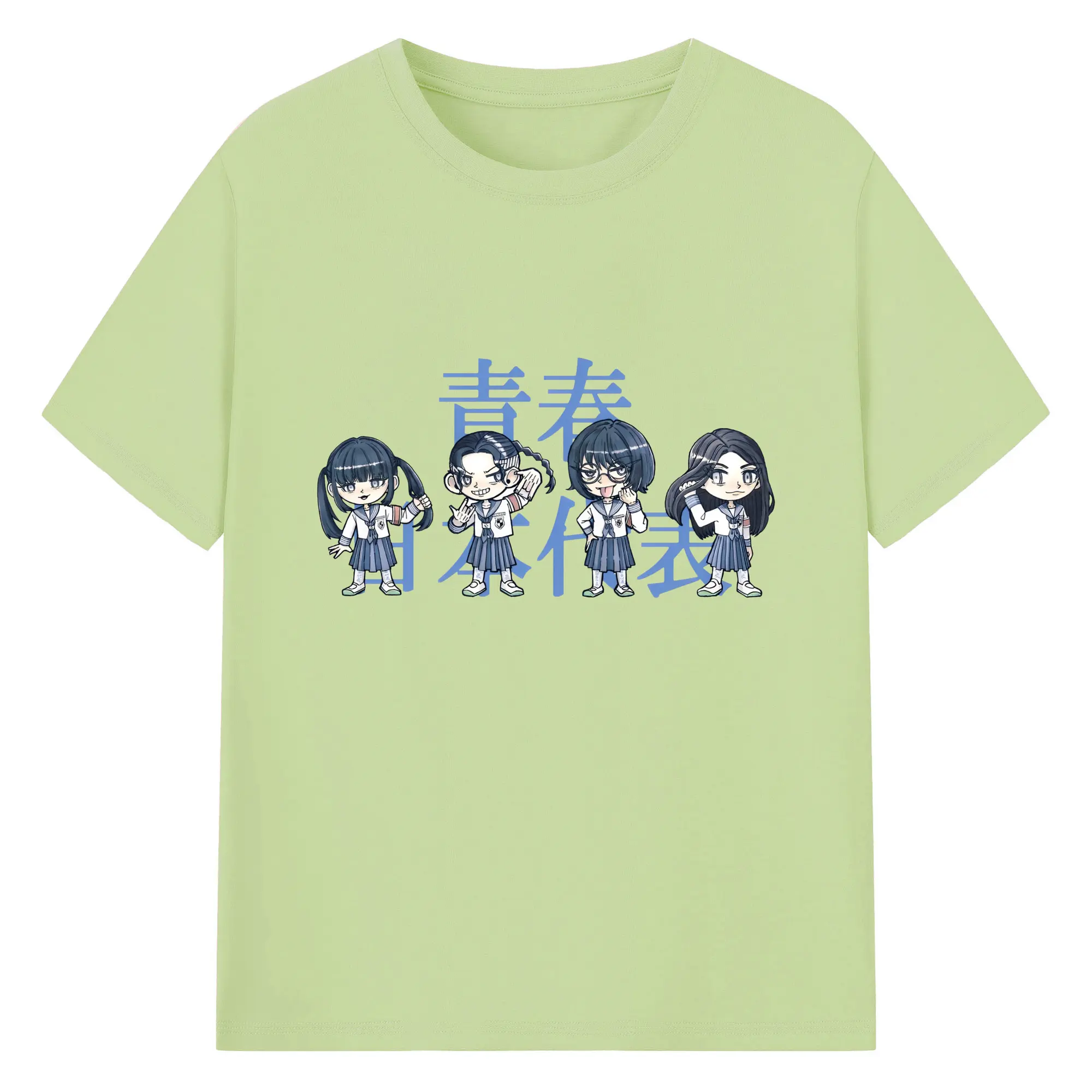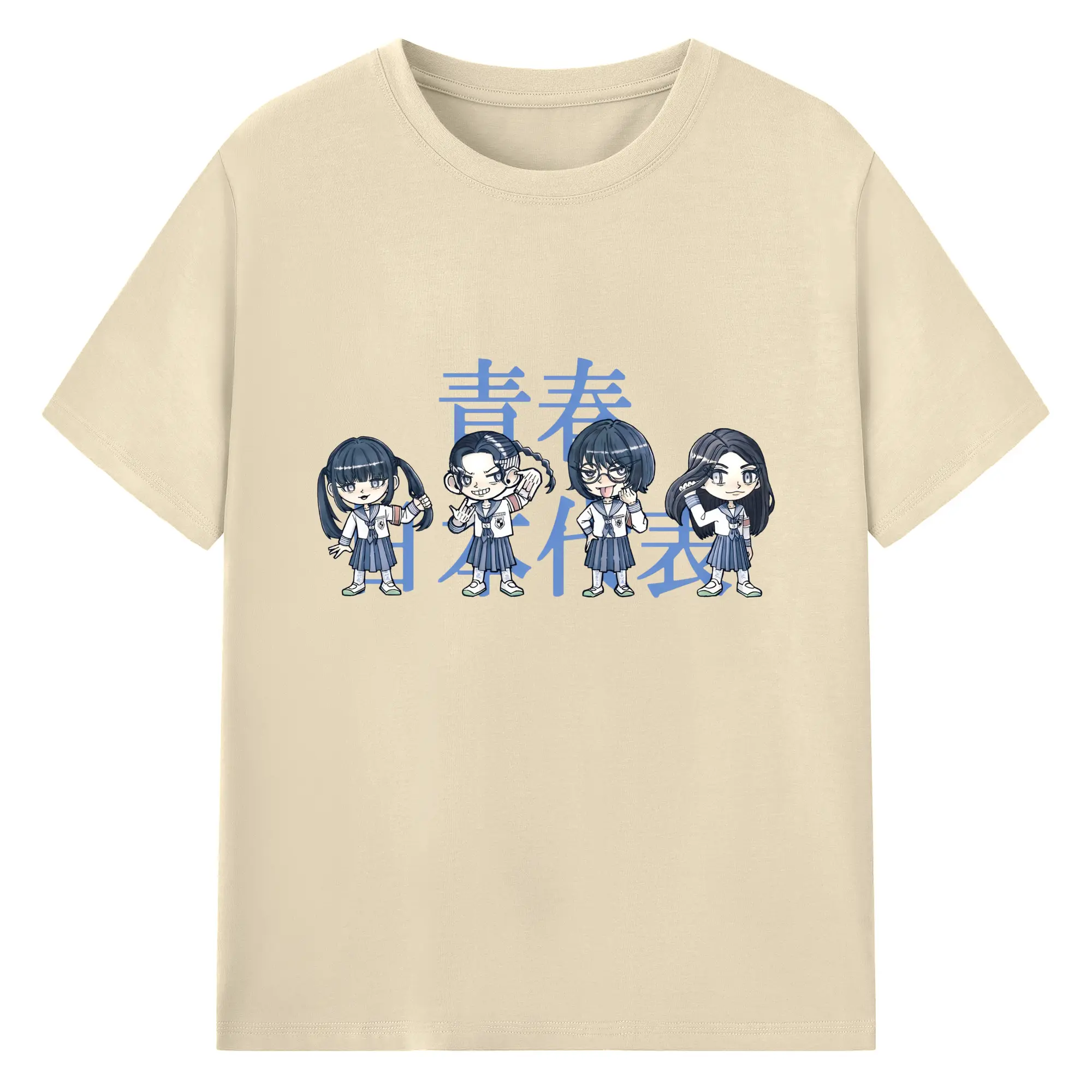 新しい学校のリーダーズAtarashii Gakko! 青春日本代表 - 綿100% ヴィンテージ風 半袖Tシャツ ・ フロントプリント ・ 柔らか肌触り ・ 通気性 快適 ・ スポーツ カジュアル 外出用