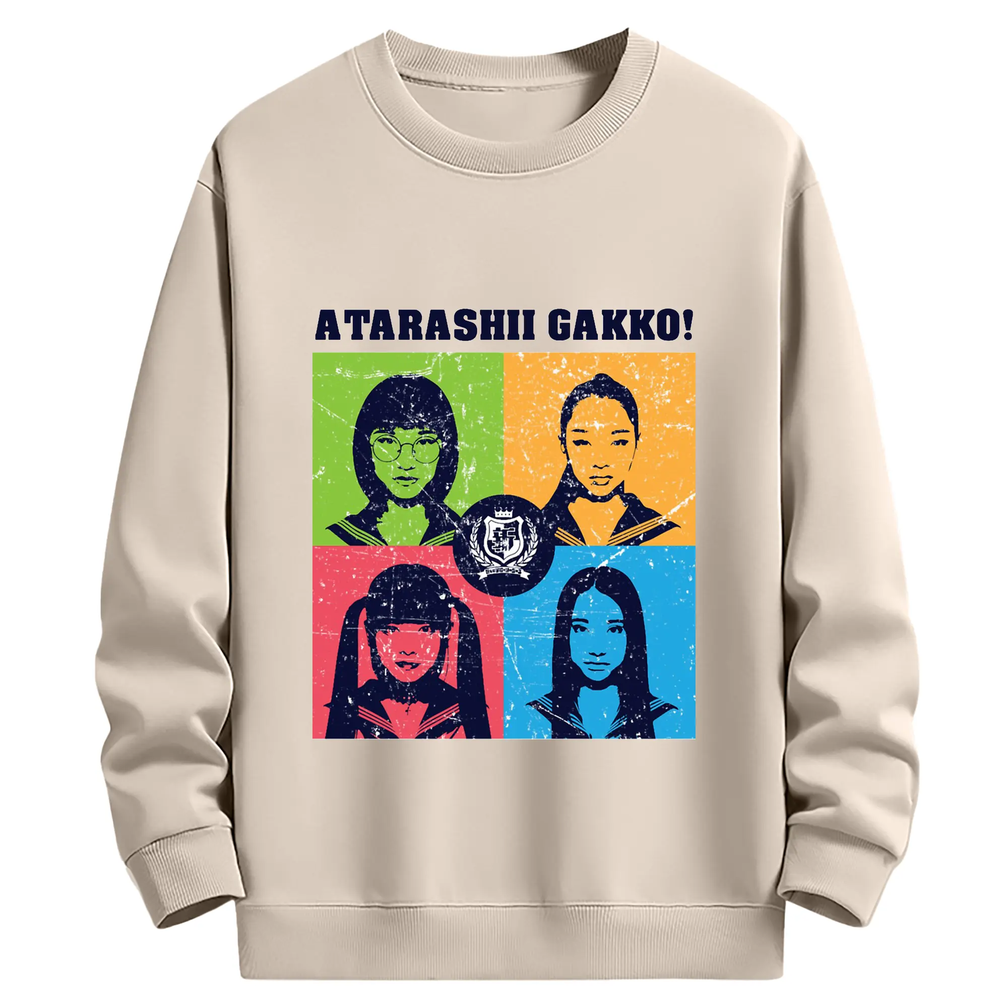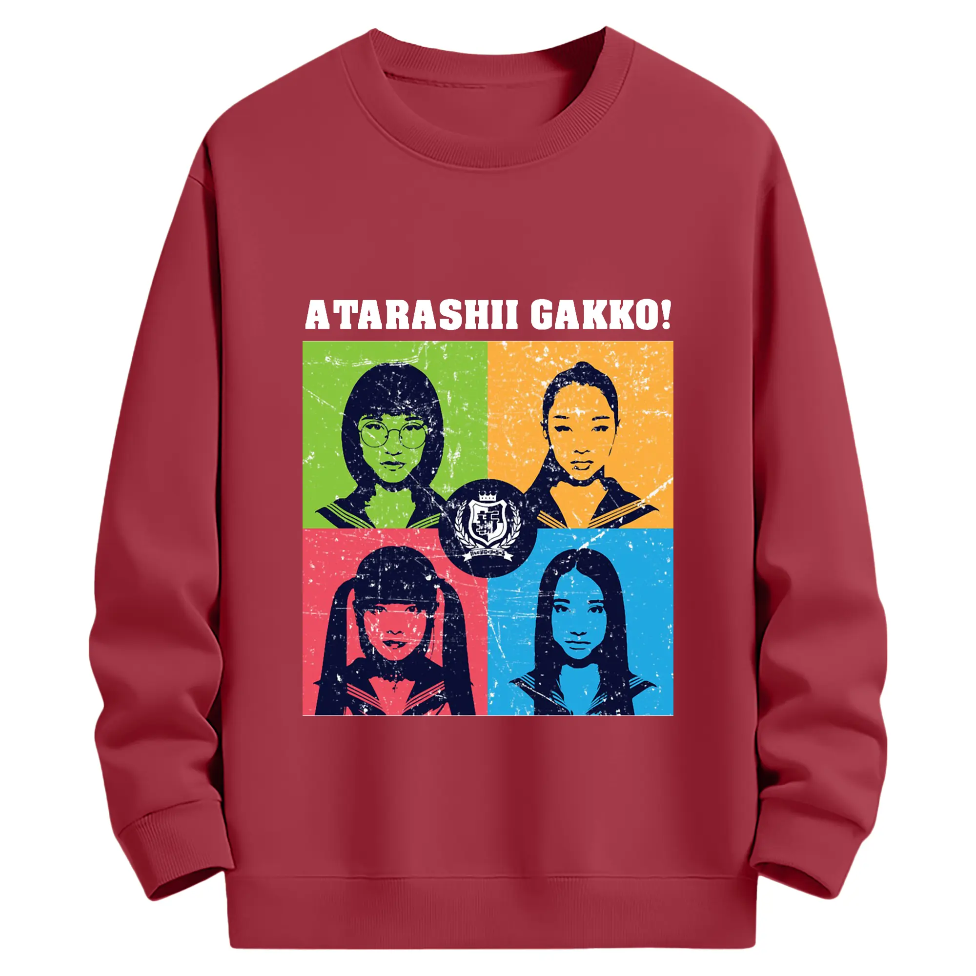 新しい学校のリーダーズAtarashii Gakko!プリクラ - 綿100% ヴィンテージ風 半袖Tシャツ ・ フロントプリント ・ 柔らか肌触り ・ 通気性 快適 ・ スポーツ カジュアル 外出用