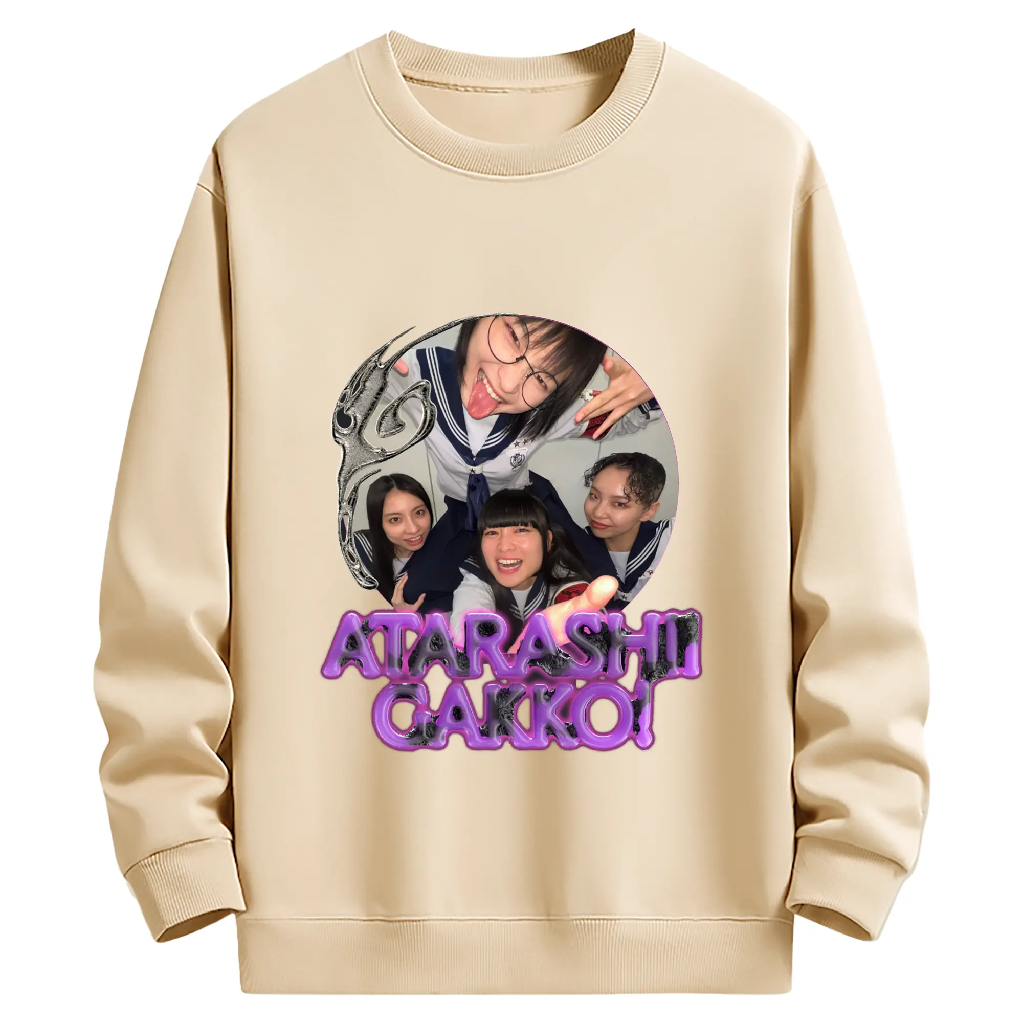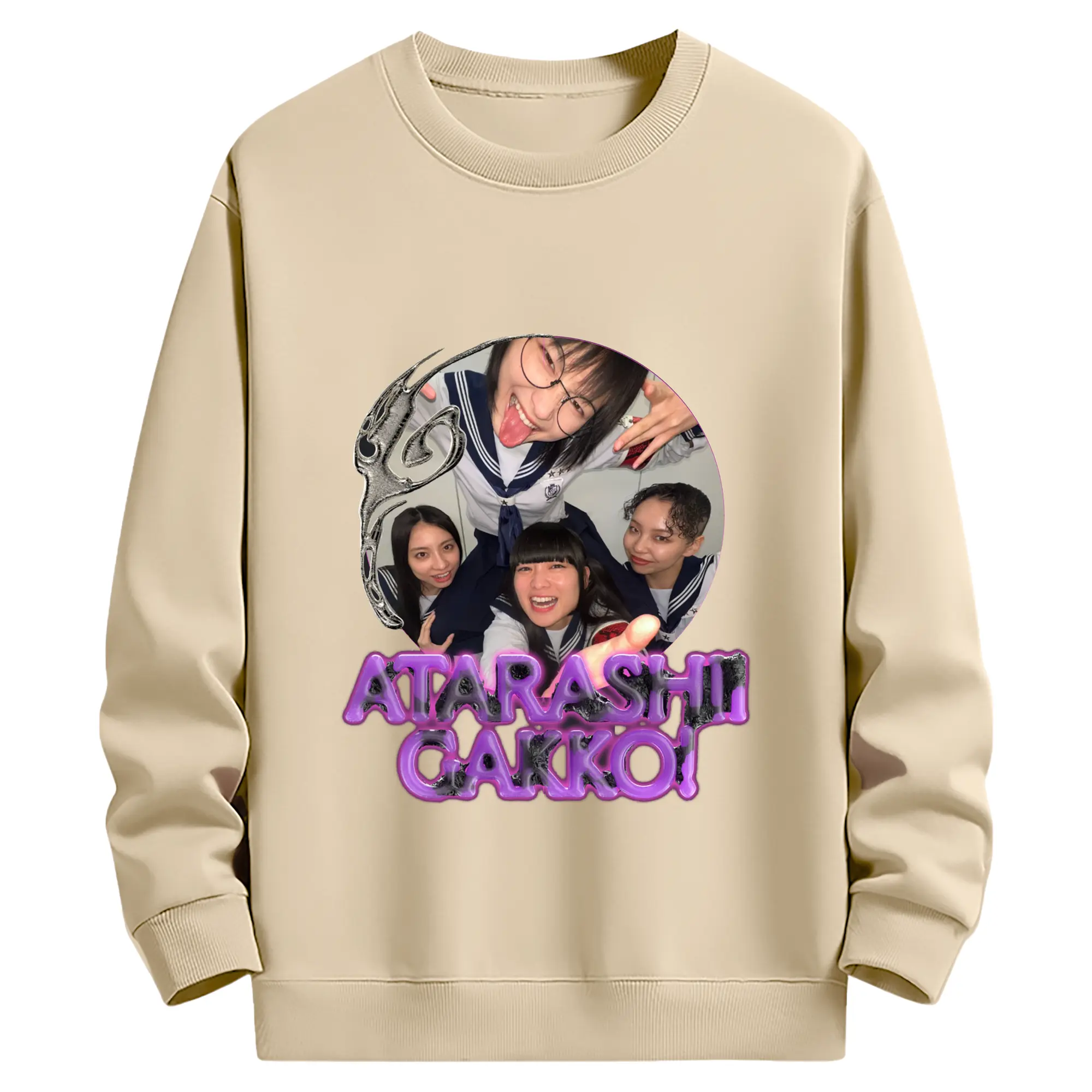 新しい学校のリーダーズAtarashii Gakko!宣材写真 - 綿100% ヴィンテージ風 半袖Tシャツ ・ フロントプリント ・ 柔らか肌触り ・ 通気性 快適 ・ スポーツ カジュアル 外出用