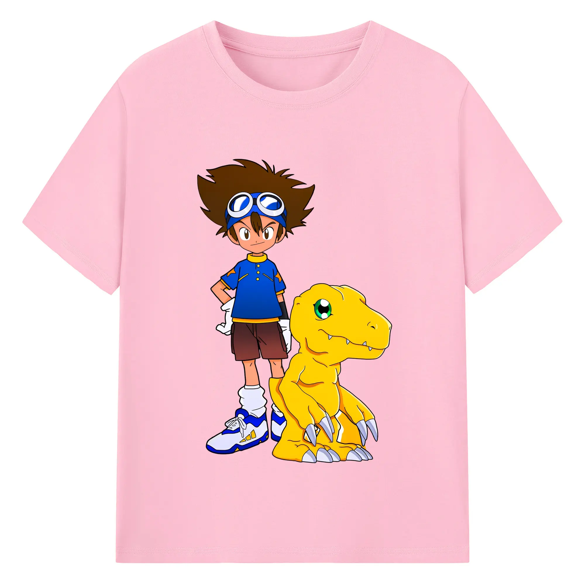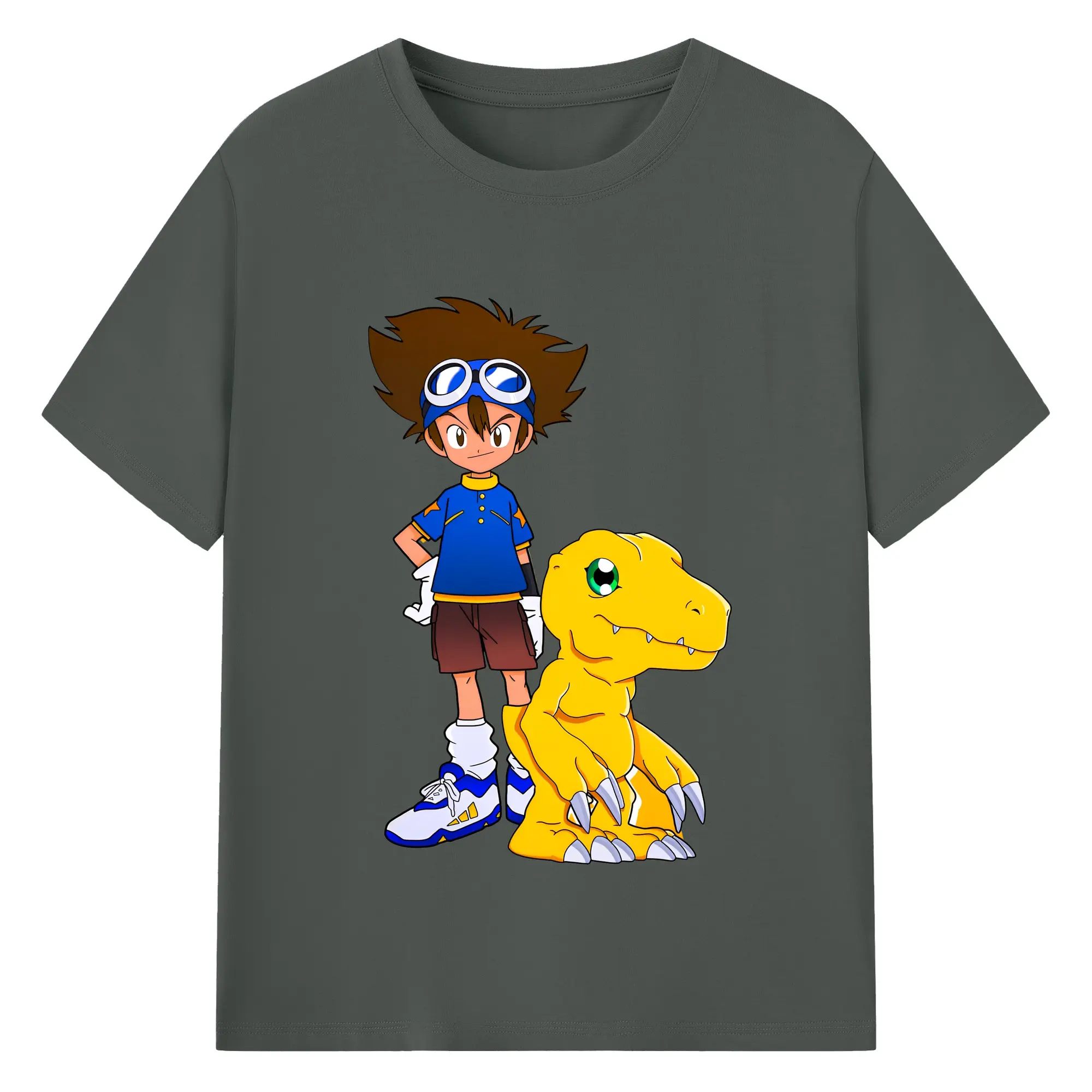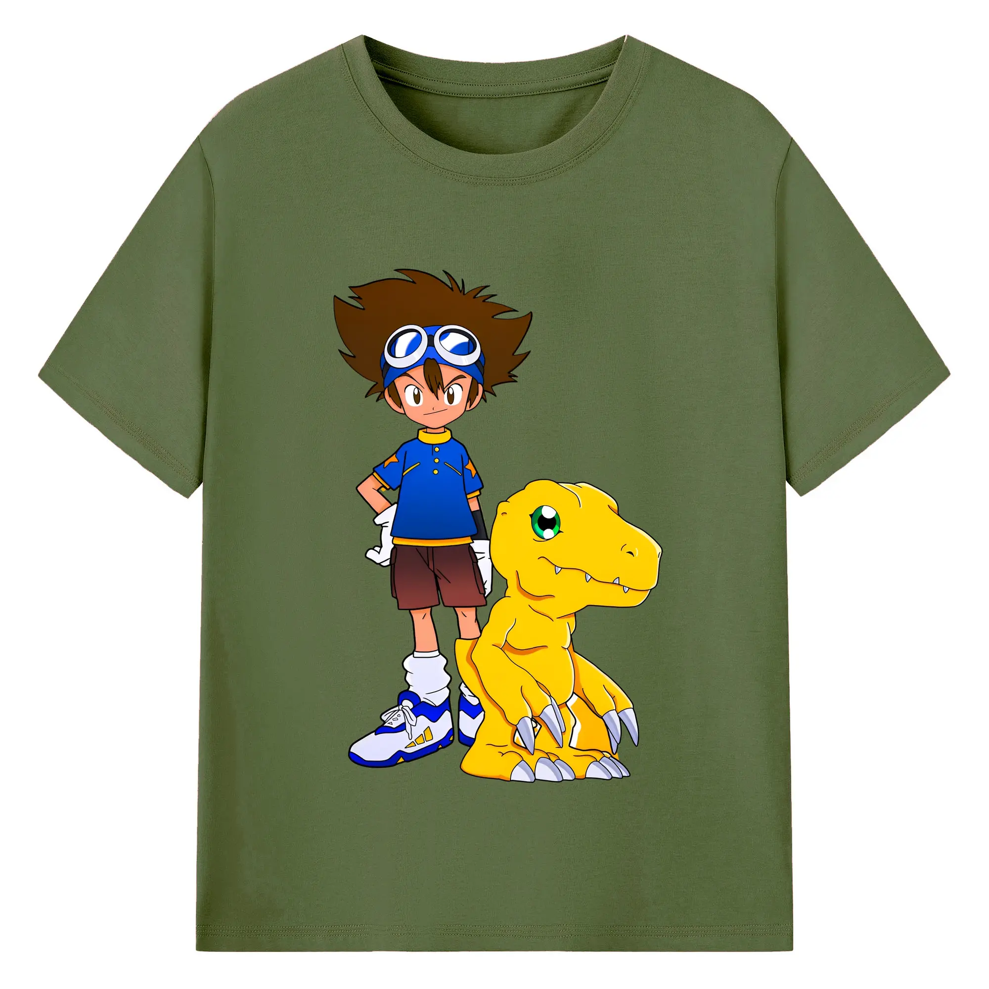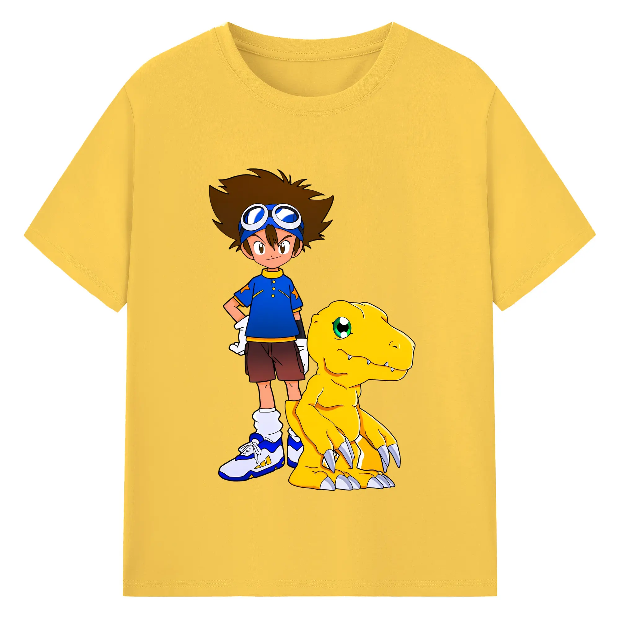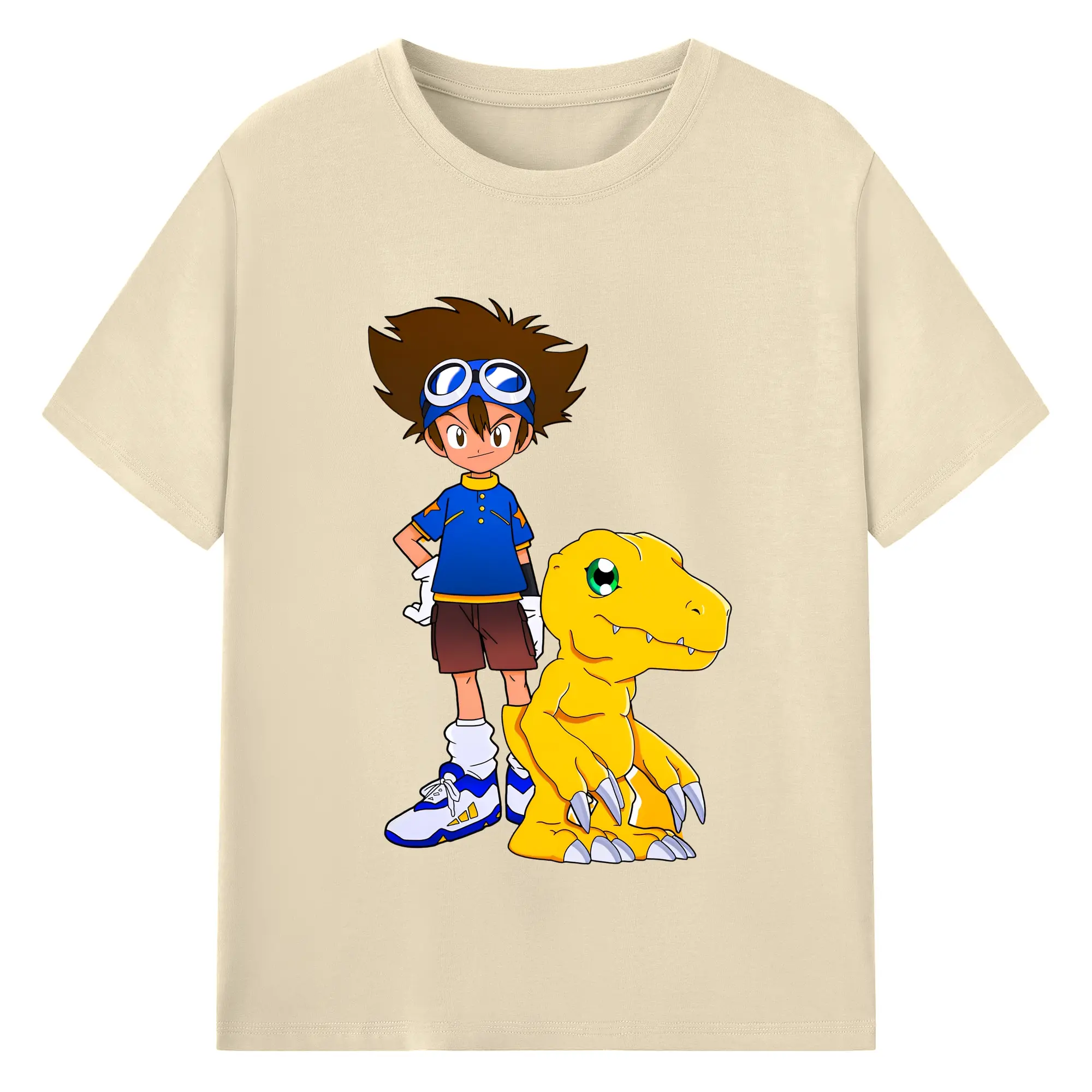 新作アグモン八神 太一 - 綿100% ヴィンテージ風 半袖Tシャツ ・ フロントプリント ・ 柔らか肌触り ・ 通気性 快適 ・ スポーツ カジュアル 外出用