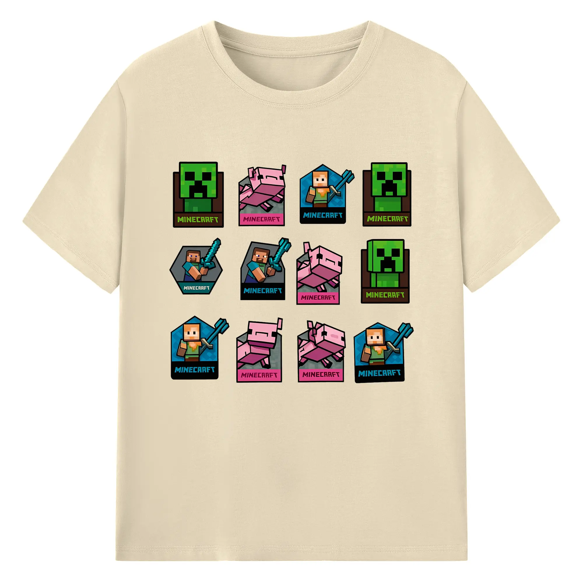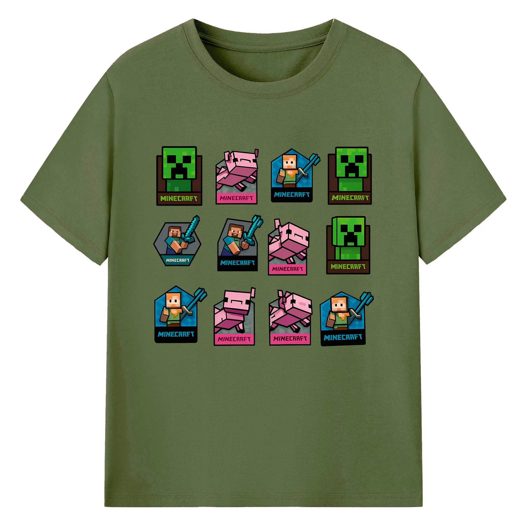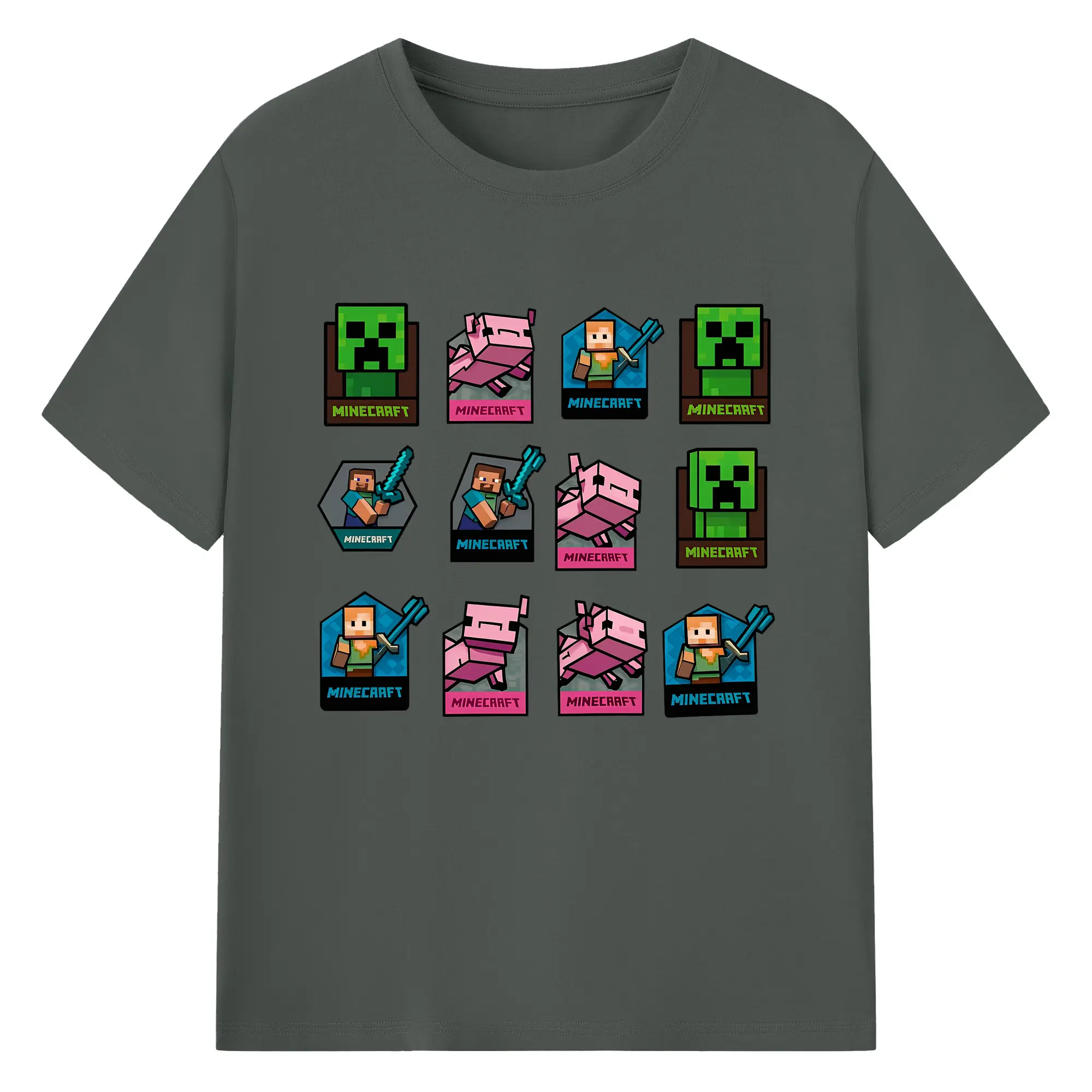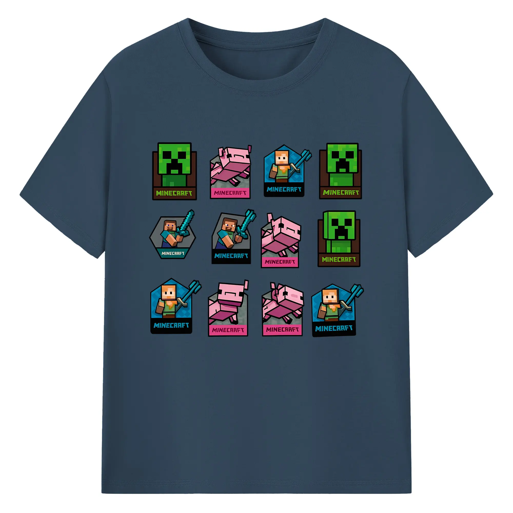 【新作】マインクラフト ファン必見 - 綿100% ヴィンテージ風 半袖Tシャツ ・ フロントプリント ・ 柔らか肌触り ・ 通気性 快適 ・ スポーツ カジュアル 外出用