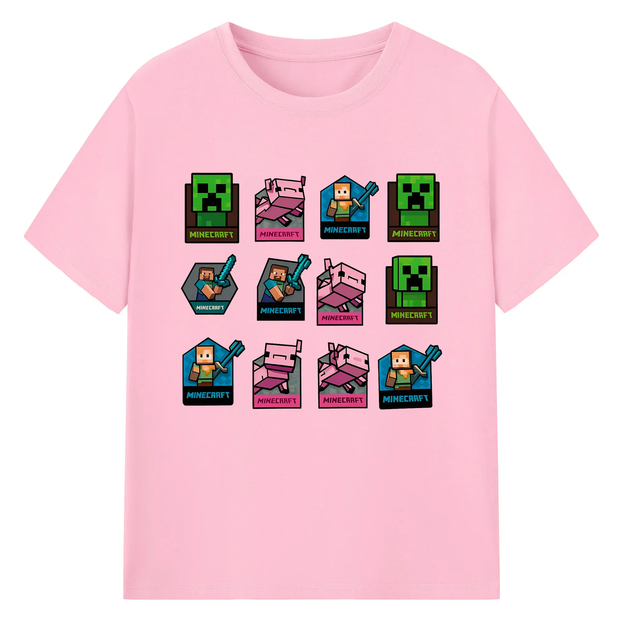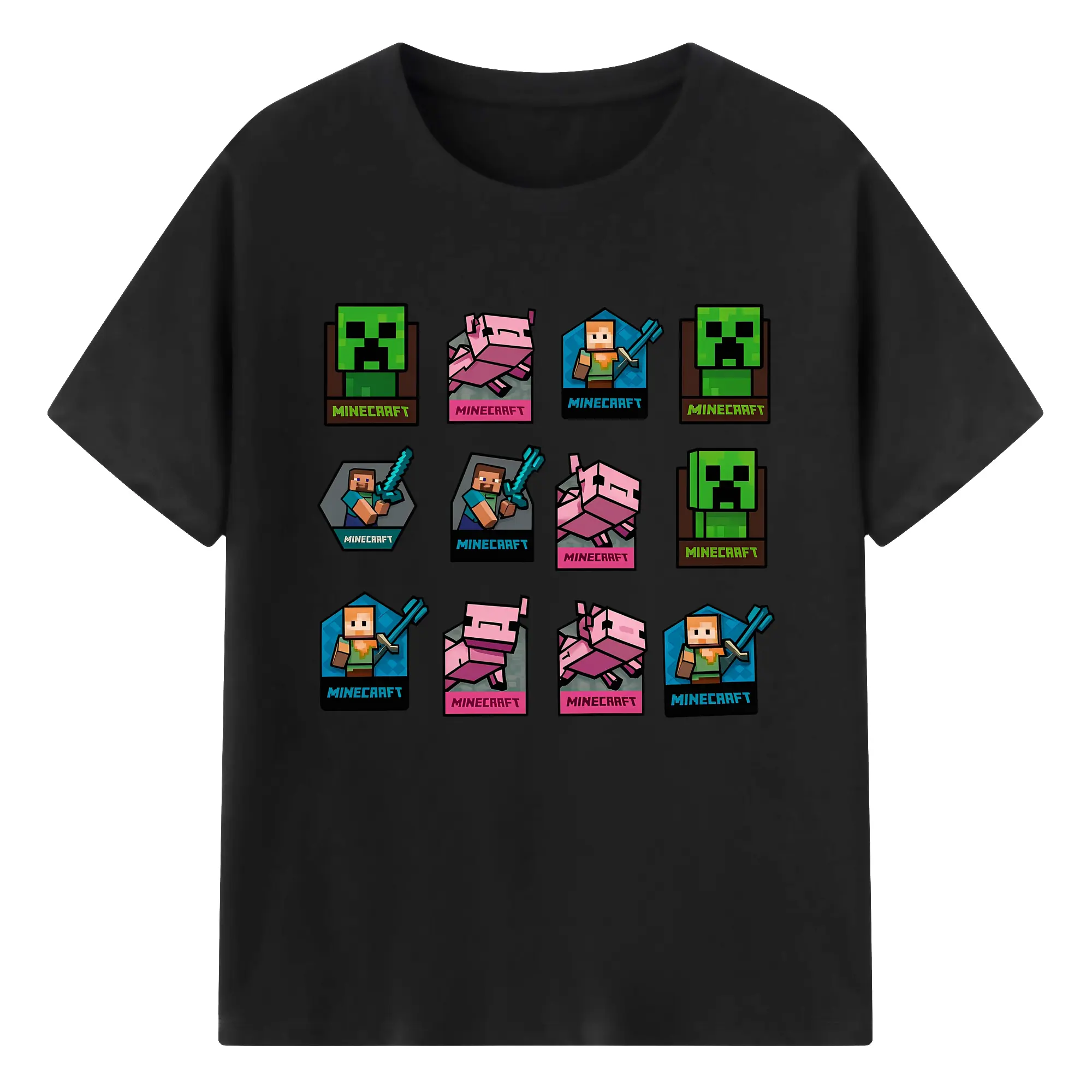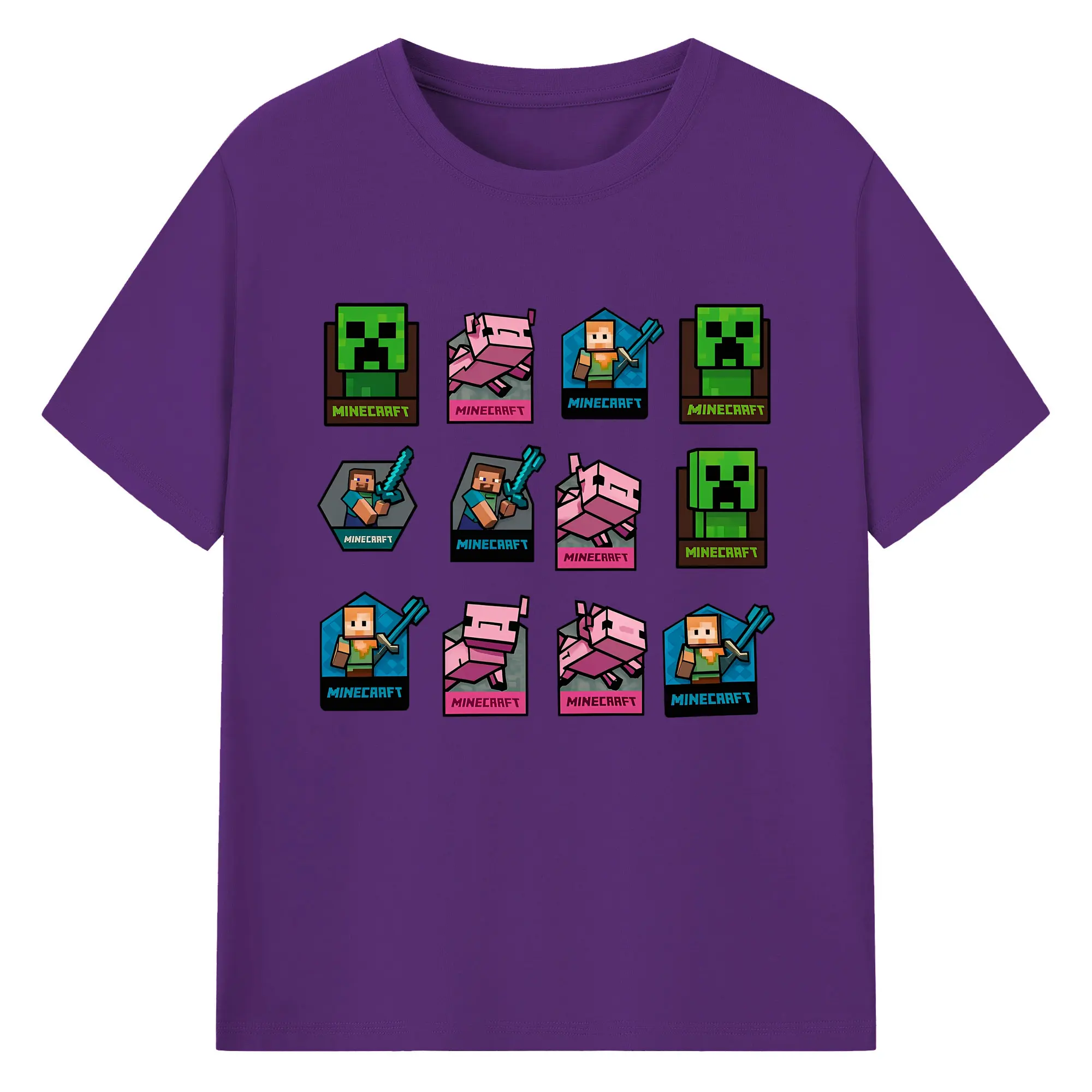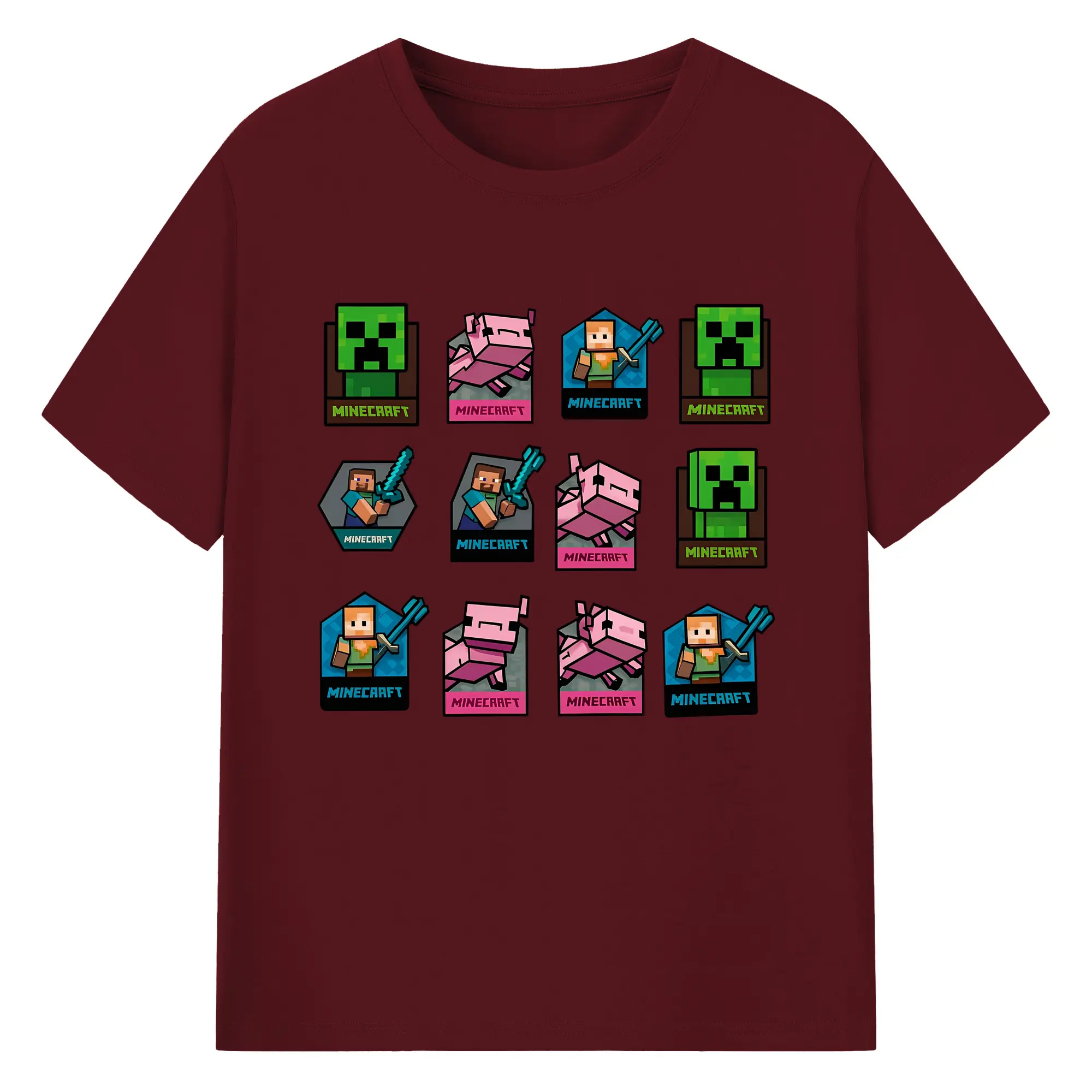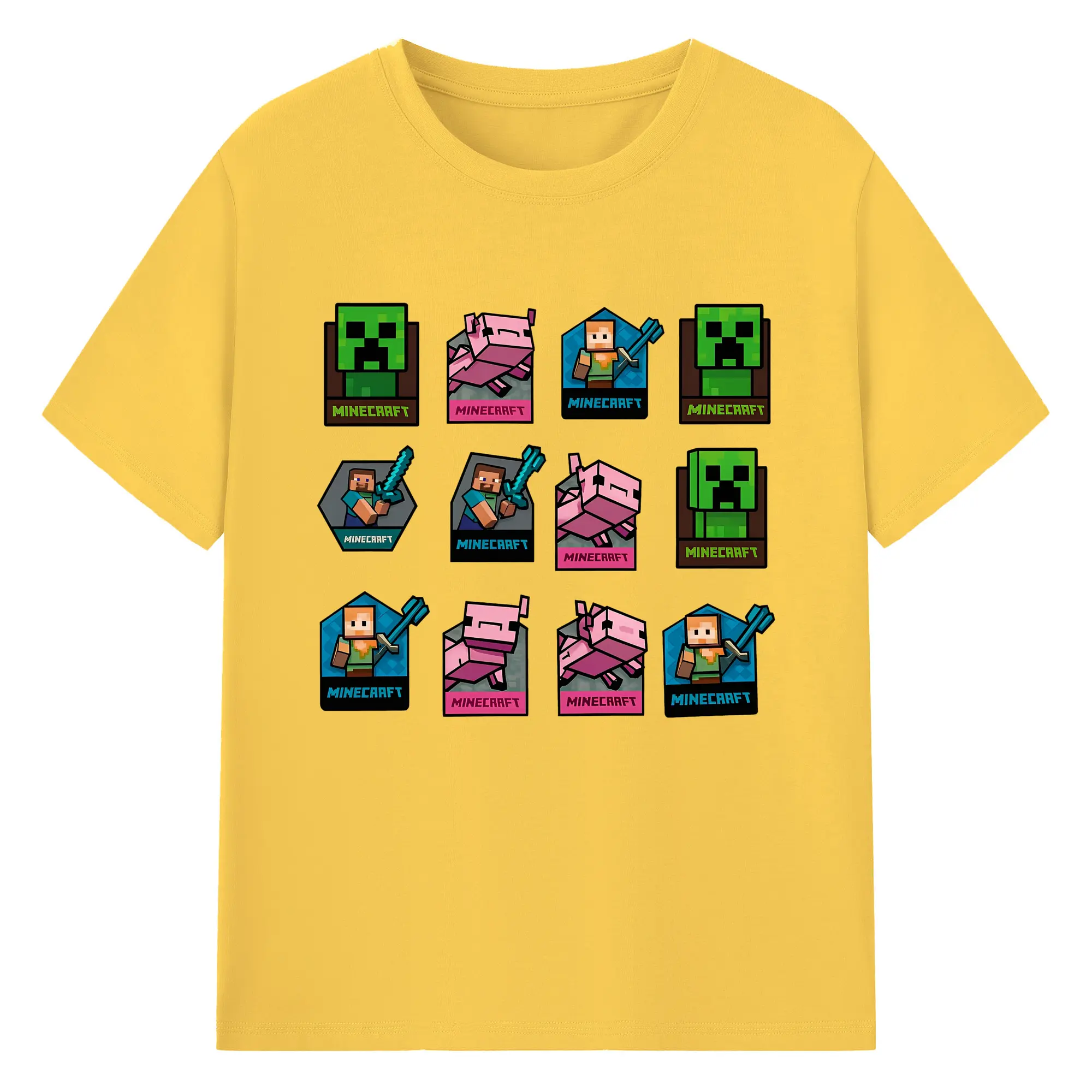 【新作】マインクラフト ファン必見 - 綿100% ヴィンテージ風 半袖Tシャツ ・ フロントプリント ・ 柔らか肌触り ・ 通気性 快適 ・ スポーツ カジュアル 外出用
