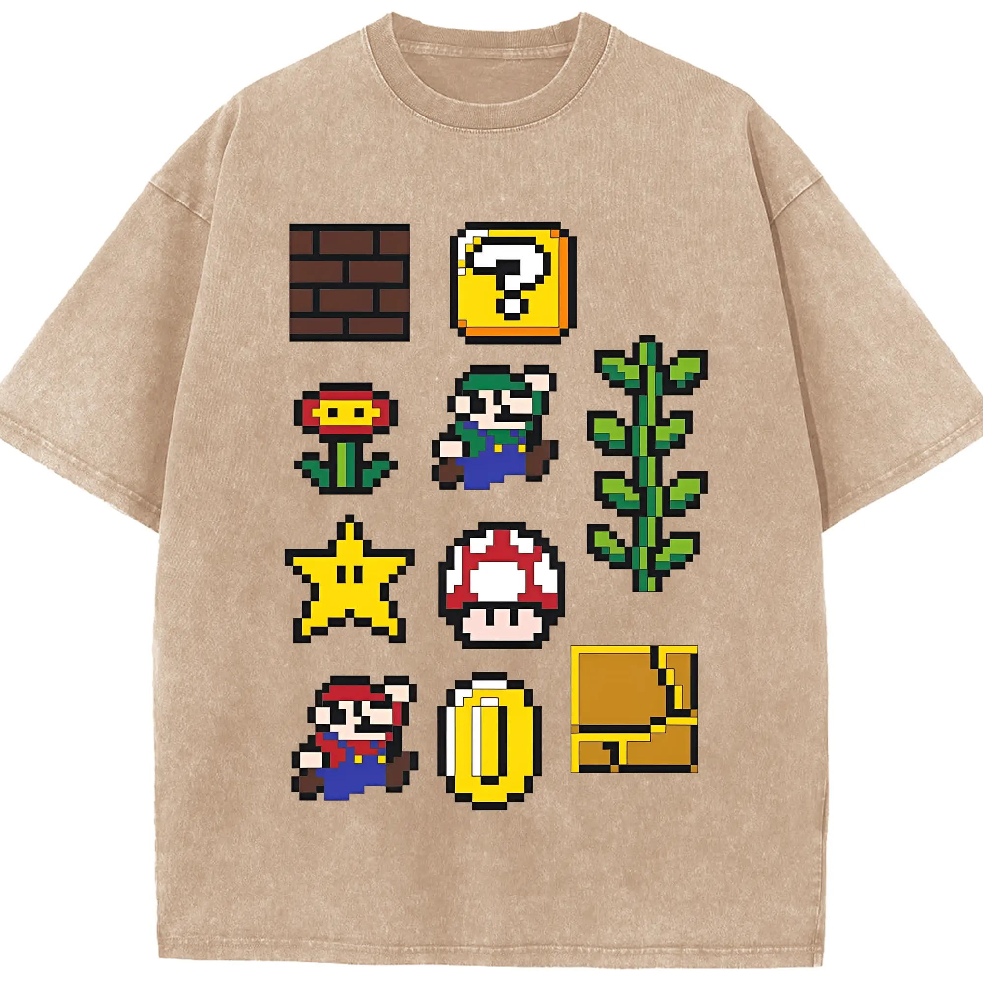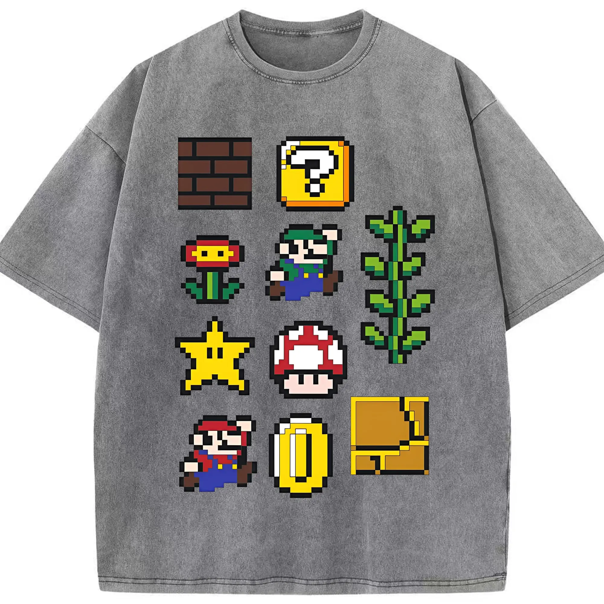 【新作】マリオ キャラクターズ コレクション - 綿100% 半袖Tシャツ ・ フロントプリント ・ 快適 通気性 ・ 日常使い 散歩 スポーツ用