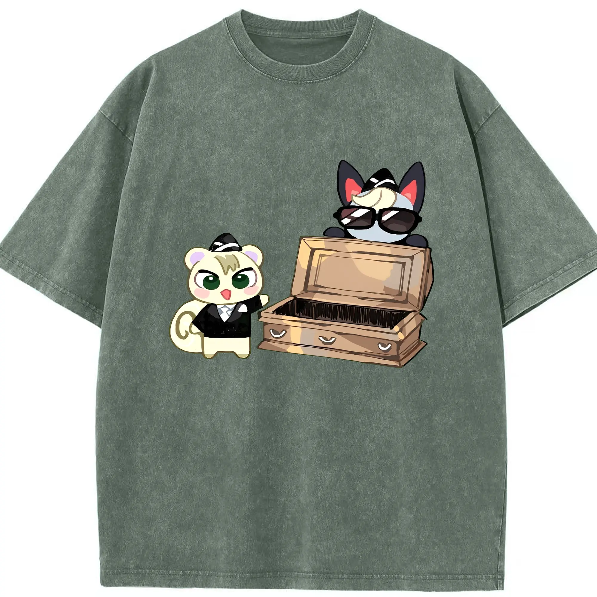エンジェルブルーナカムラ君グッズ - 綿100% ヴィンテージ風 半袖Tシャツ ・ フロントプリント ・ 柔らか肌触り ・ 通気性 快適 ・ スポーツ カジュアル 外出用