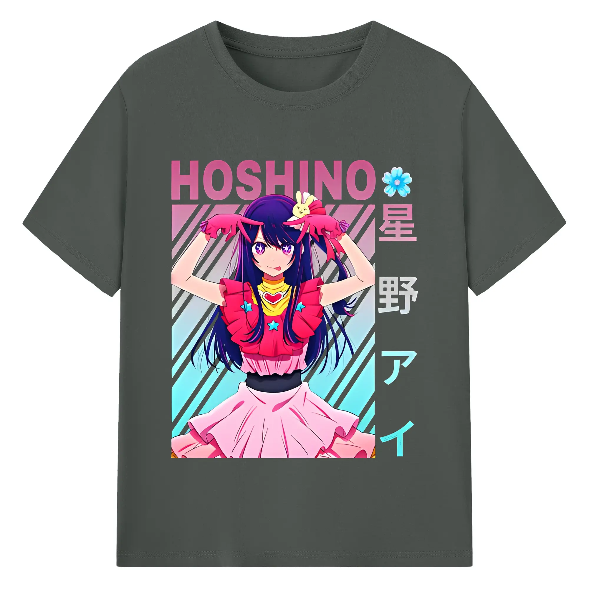 新作推しの子星野アイカジュアル - 綿100% ヴィンテージ風 半袖Tシャツ ・ フロントプリント ・ 柔らか肌触り ・ 通気性 快適 ・ スポーツ カジュアル 外出用