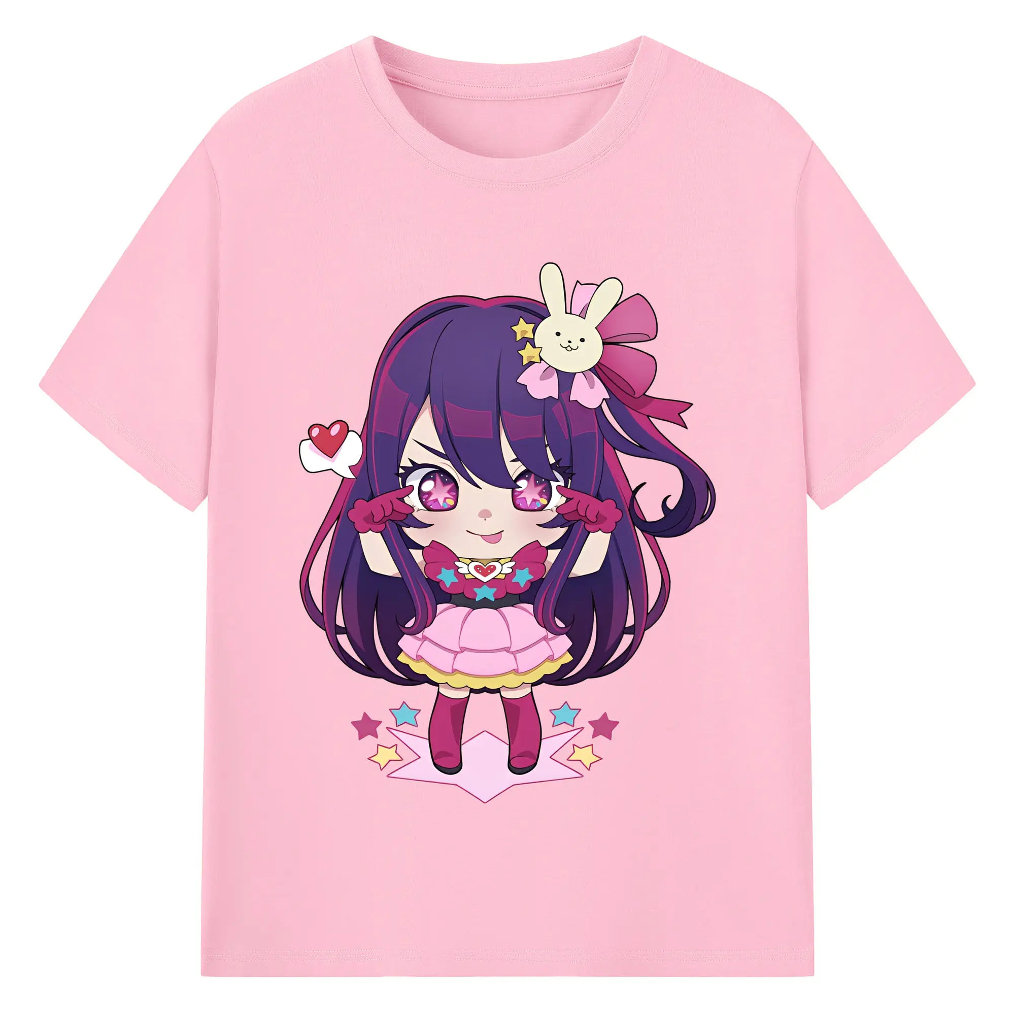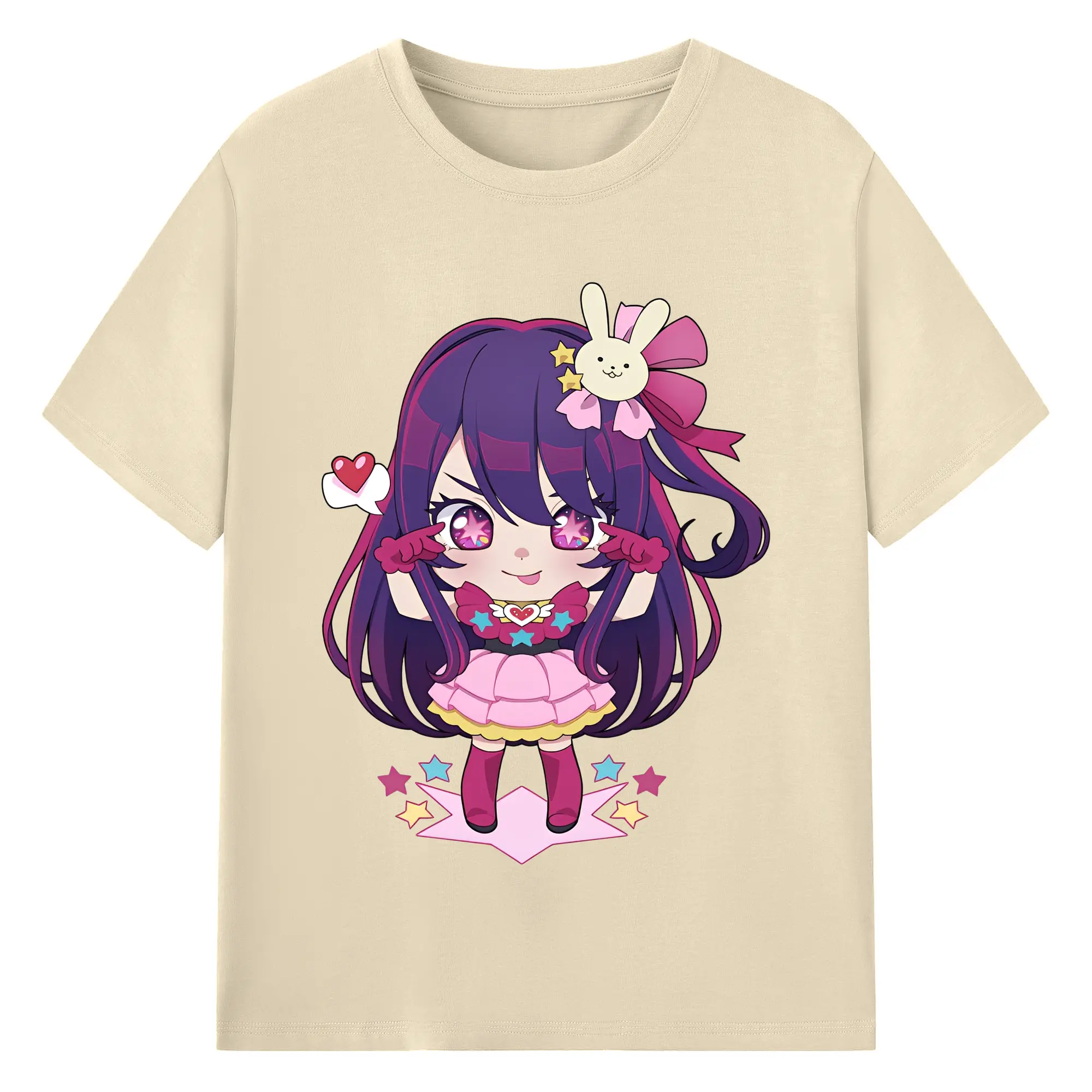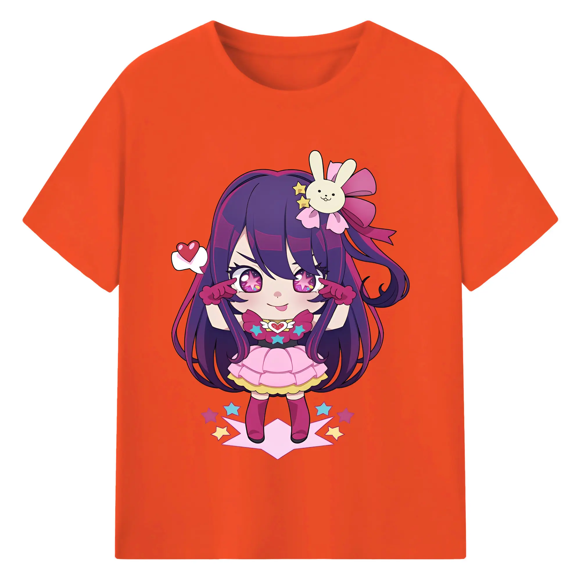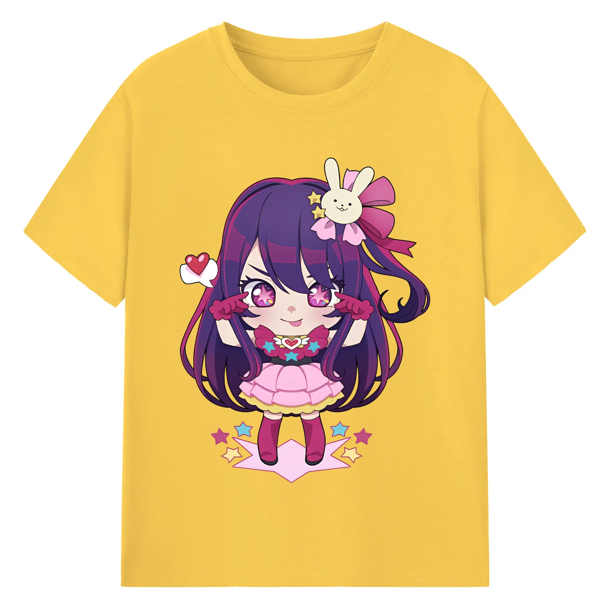 新作推しの子星野アイキャラクター ちびキャラ - 綿100% ヴィンテージ風 半袖Tシャツ ・ フロントプリント ・ 柔らか肌触り ・ 通気性 快適 ・ スポーツ カジュアル 外出用