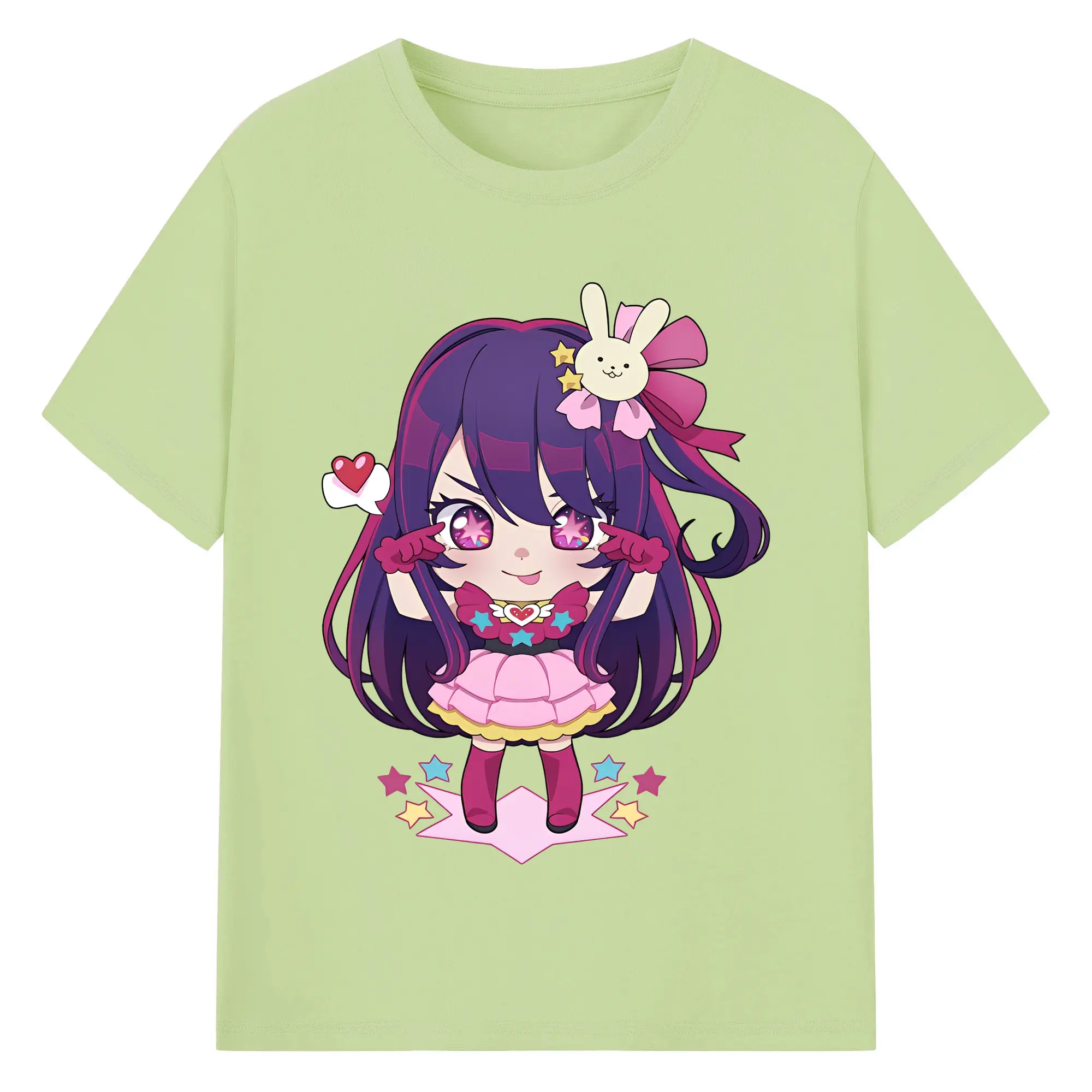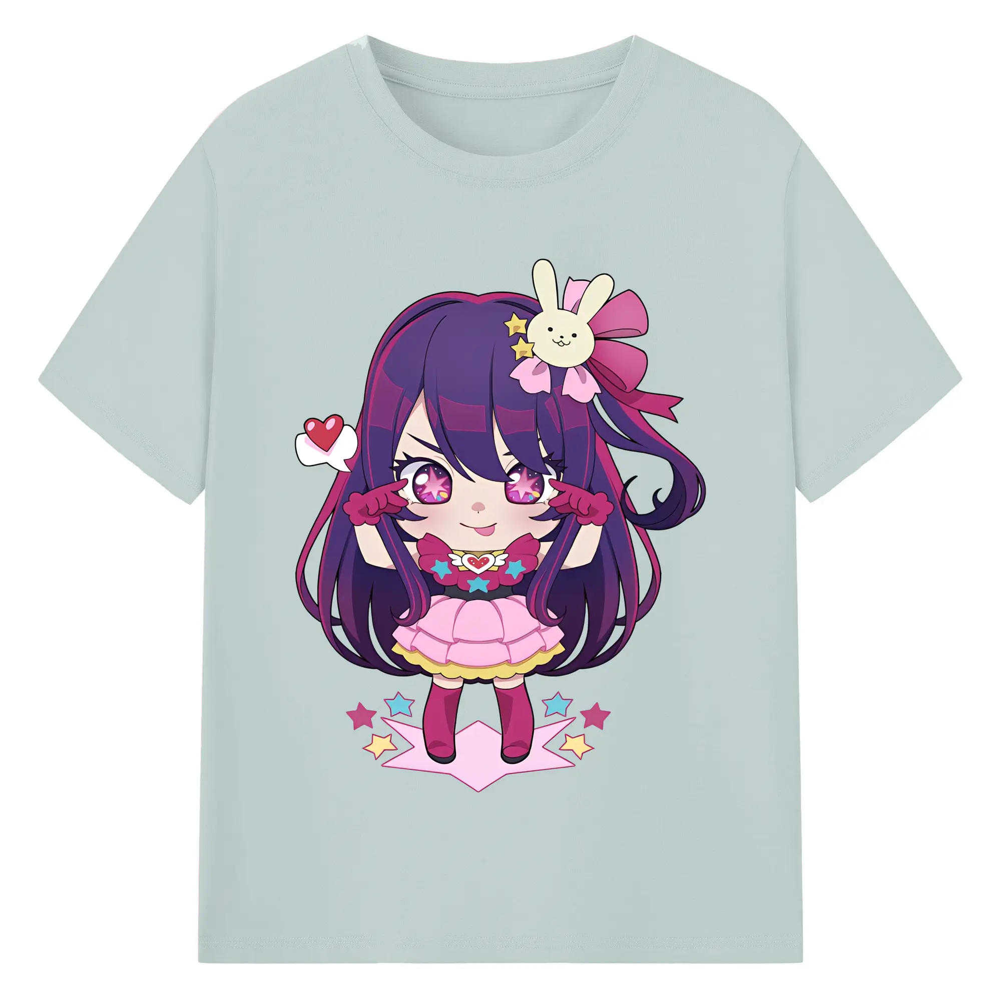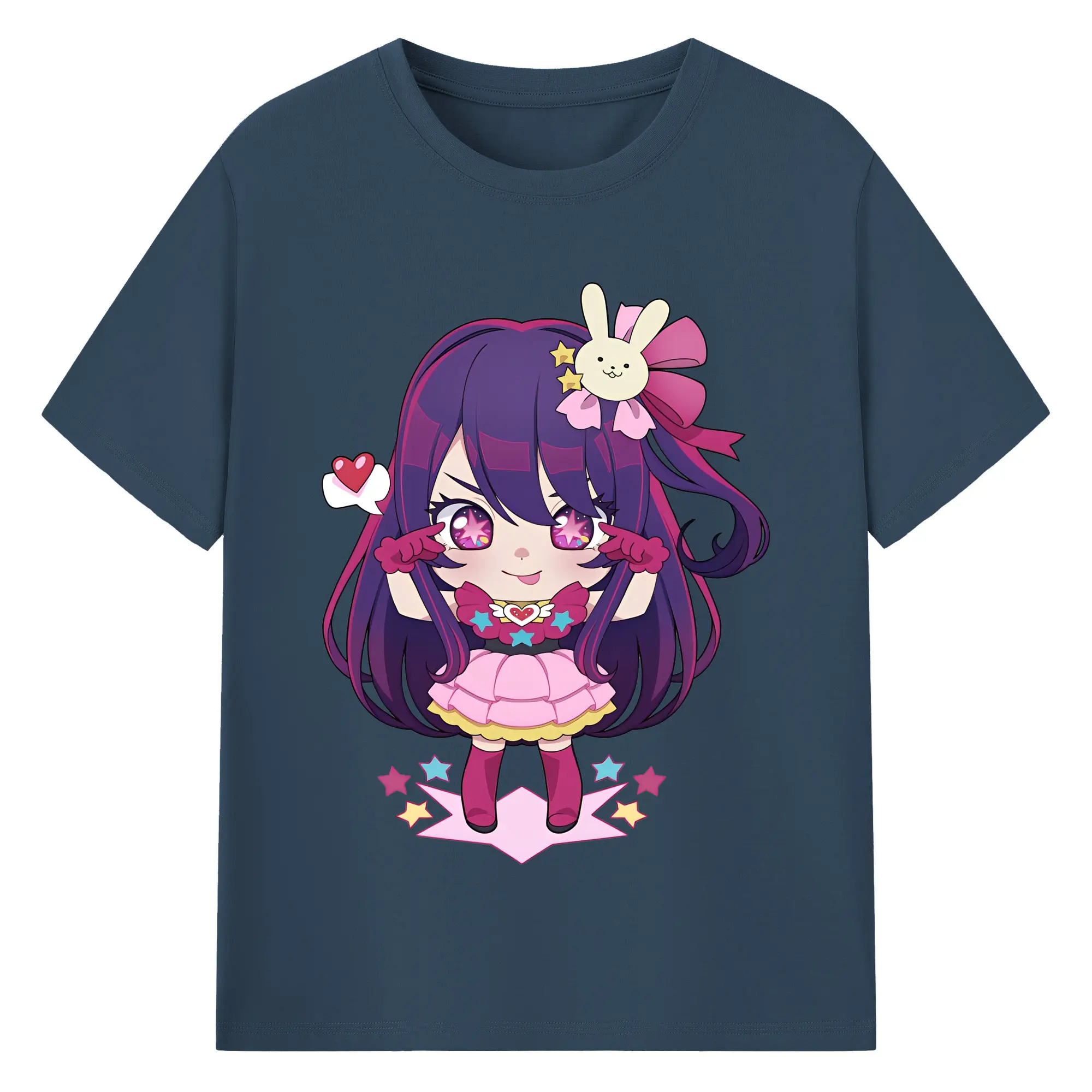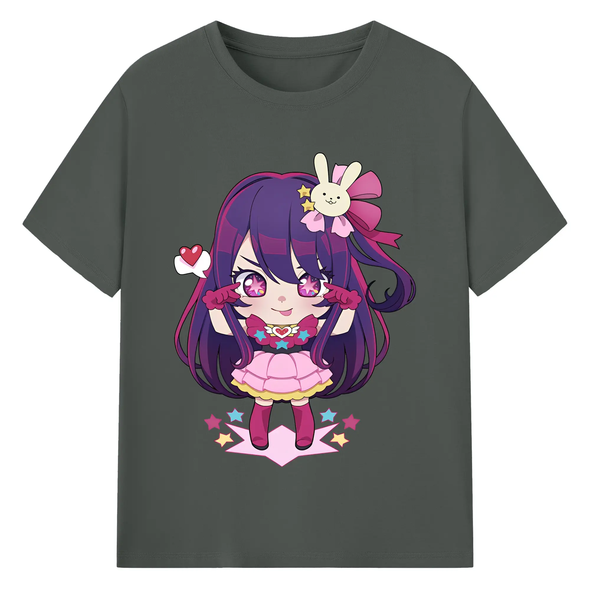 新作推しの子星野アイキャラクター ちびキャラ - 綿100% ヴィンテージ風 半袖Tシャツ ・ フロントプリント ・ 柔らか肌触り ・ 通気性 快適 ・ スポーツ カジュアル 外出用