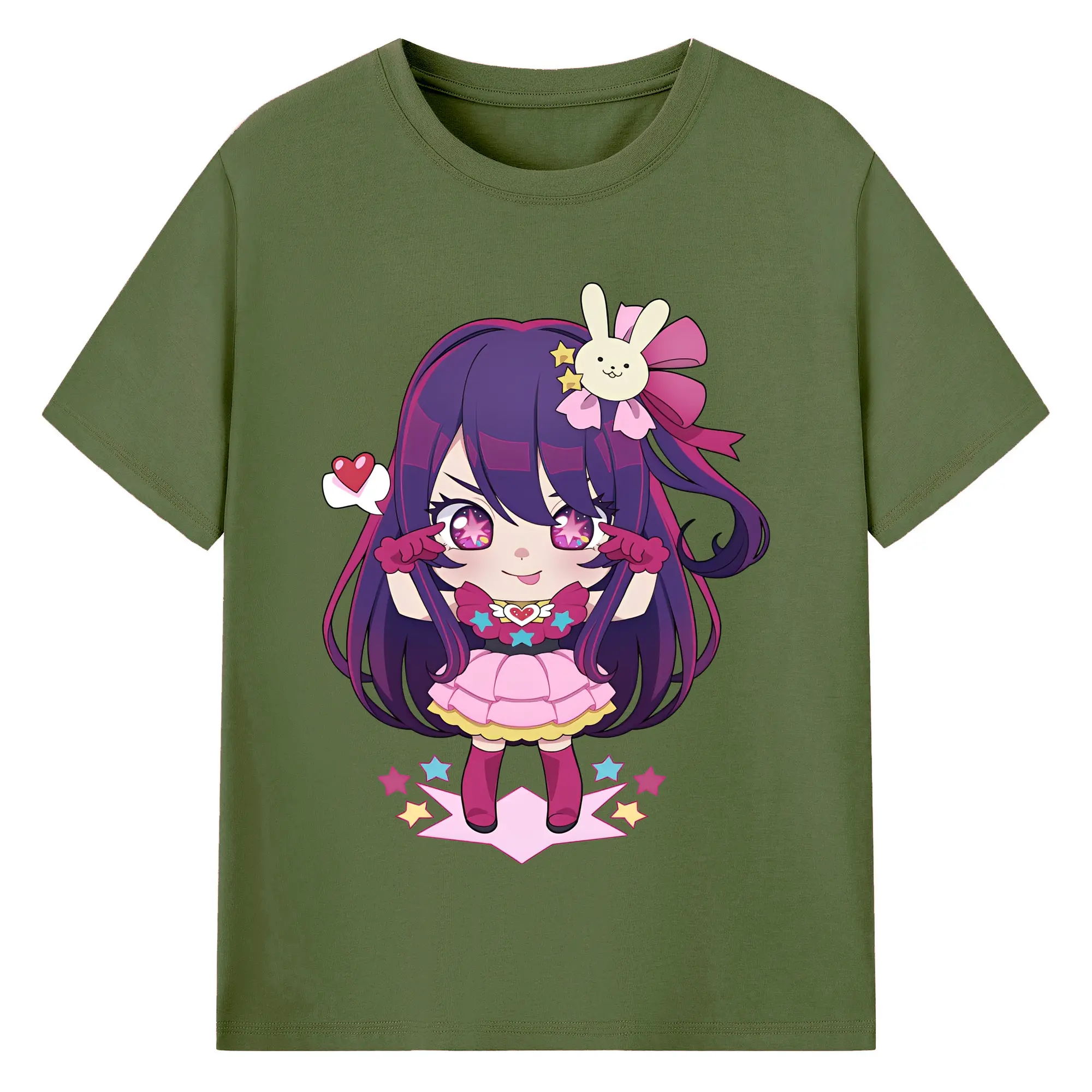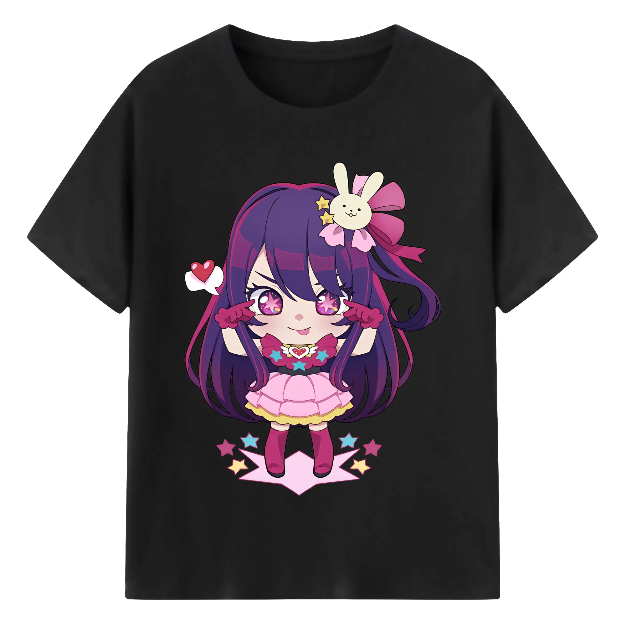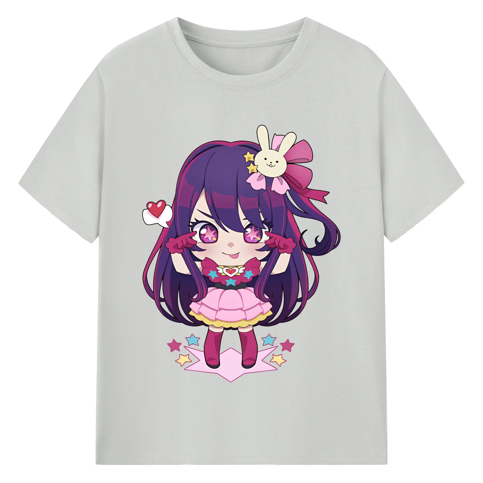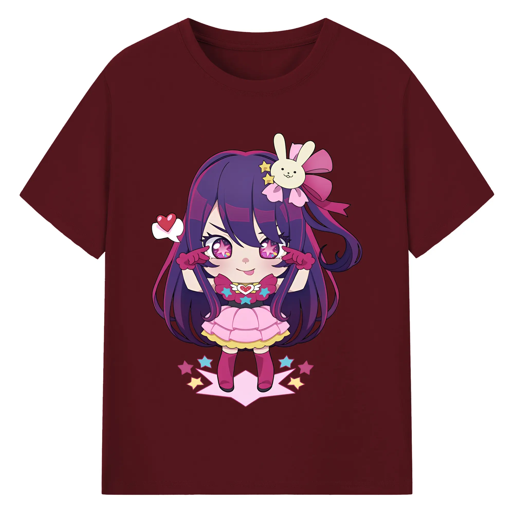 新作推しの子星野アイキャラクター ちびキャラ - 綿100% ヴィンテージ風 半袖Tシャツ ・ フロントプリント ・ 柔らか肌触り ・ 通気性 快適 ・ スポーツ カジュアル 外出用
