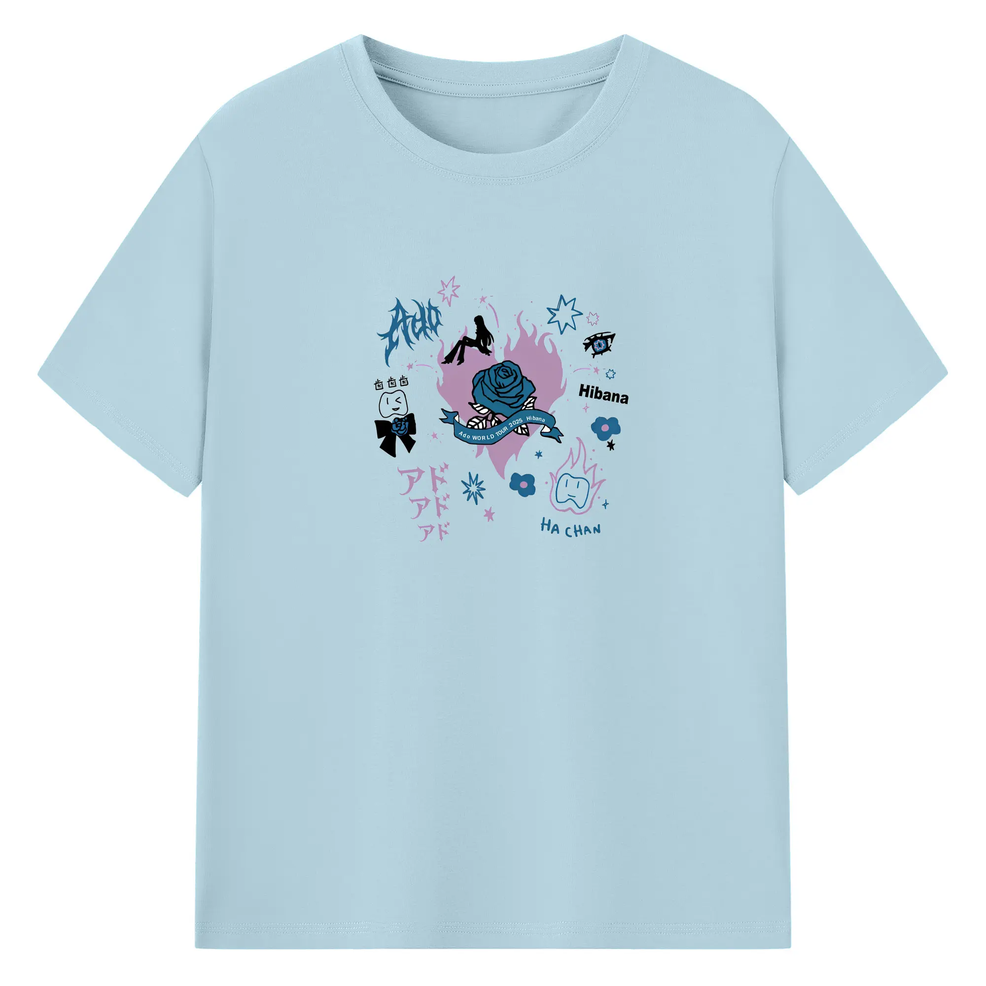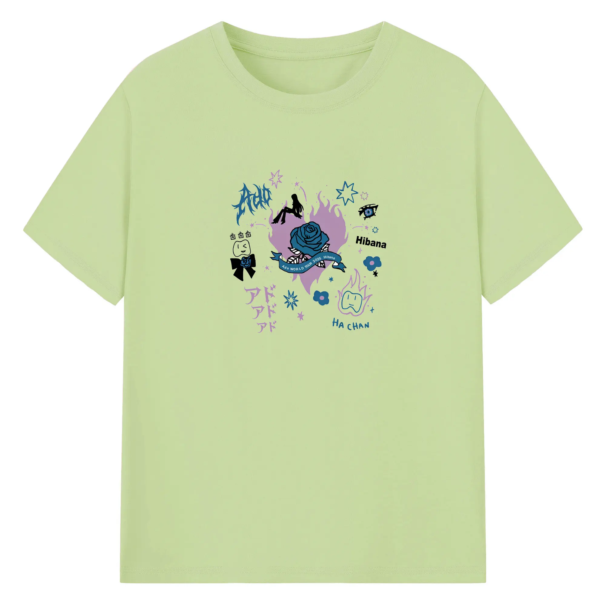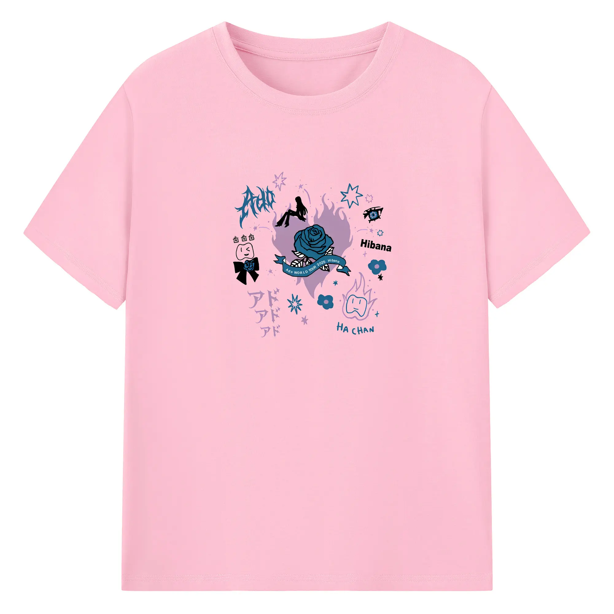 新しい学校のリーダーズAtarashii Gakko!AG!漫画風 - 綿100% 半袖Tシャツ ・ フロントプリント ・ 快適 通気性 ・ 日常使い 散歩 スポーツ用