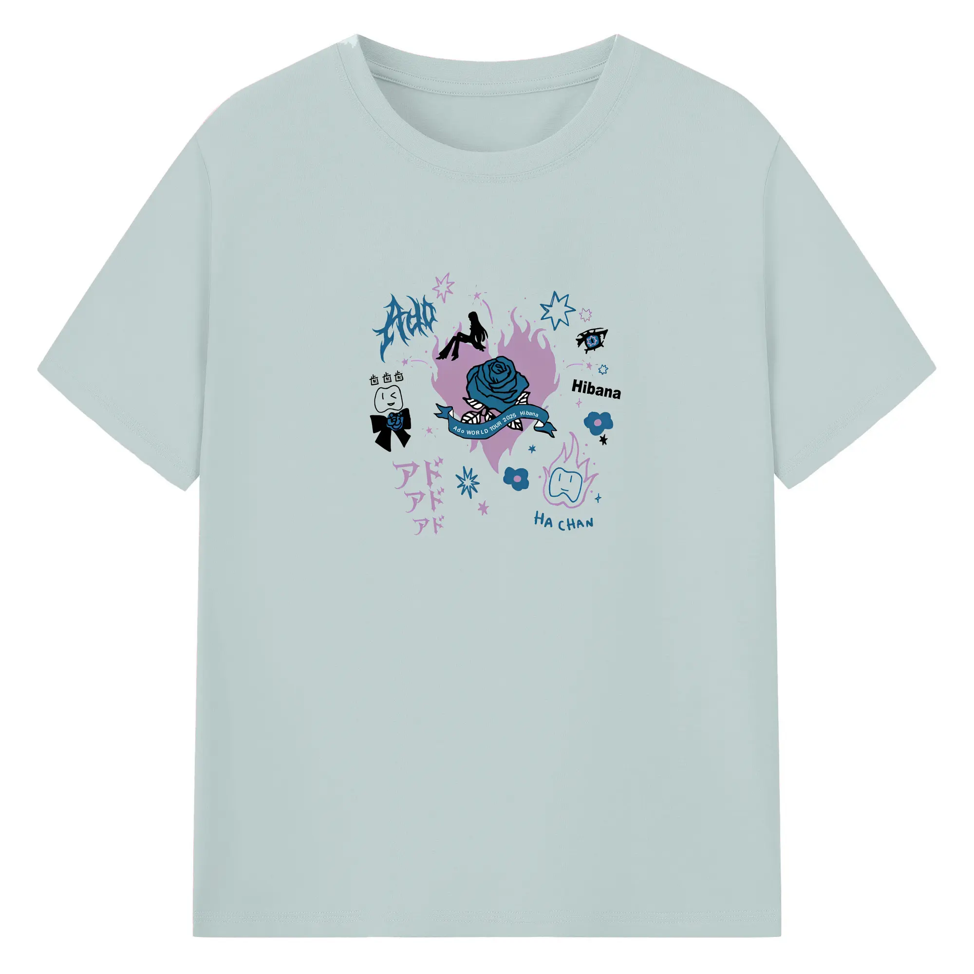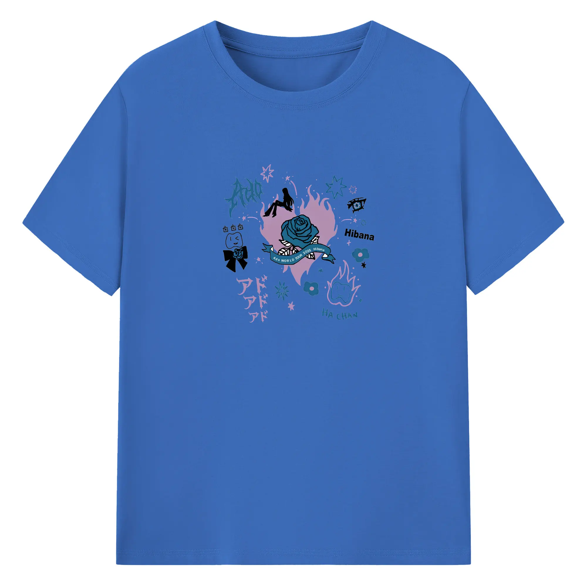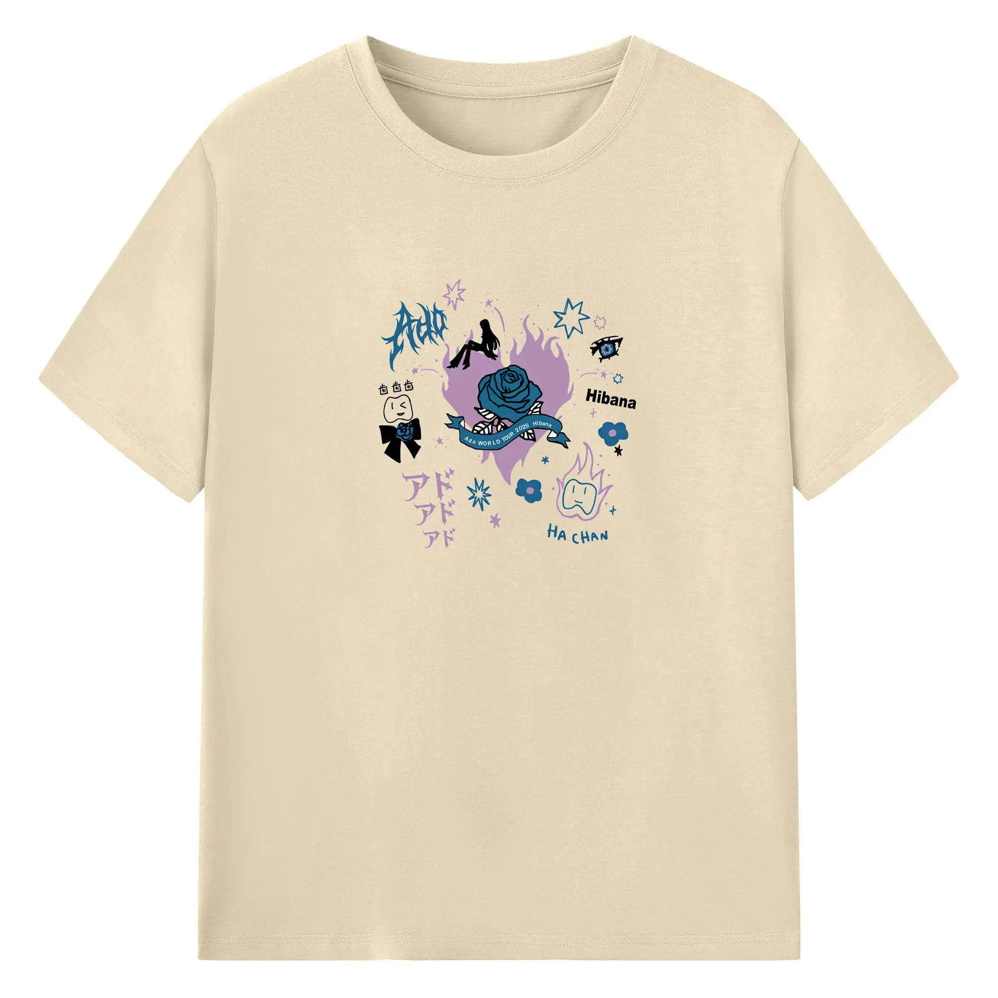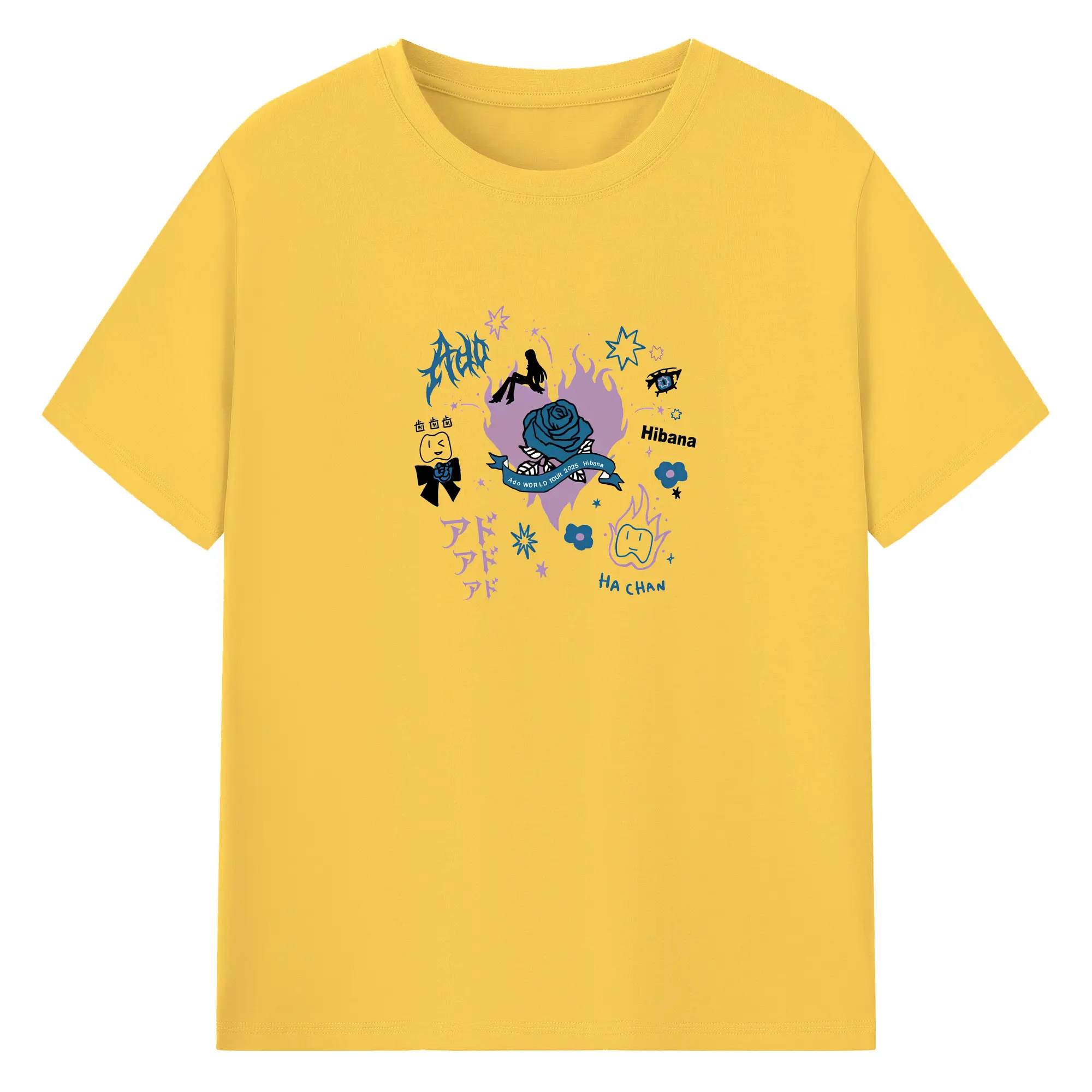 新しい学校のリーダーズAtarashii Gakko!AG!漫画風 - 綿100% 半袖Tシャツ ・ フロントプリント ・ 快適 通気性 ・ 日常使い 散歩 スポーツ用