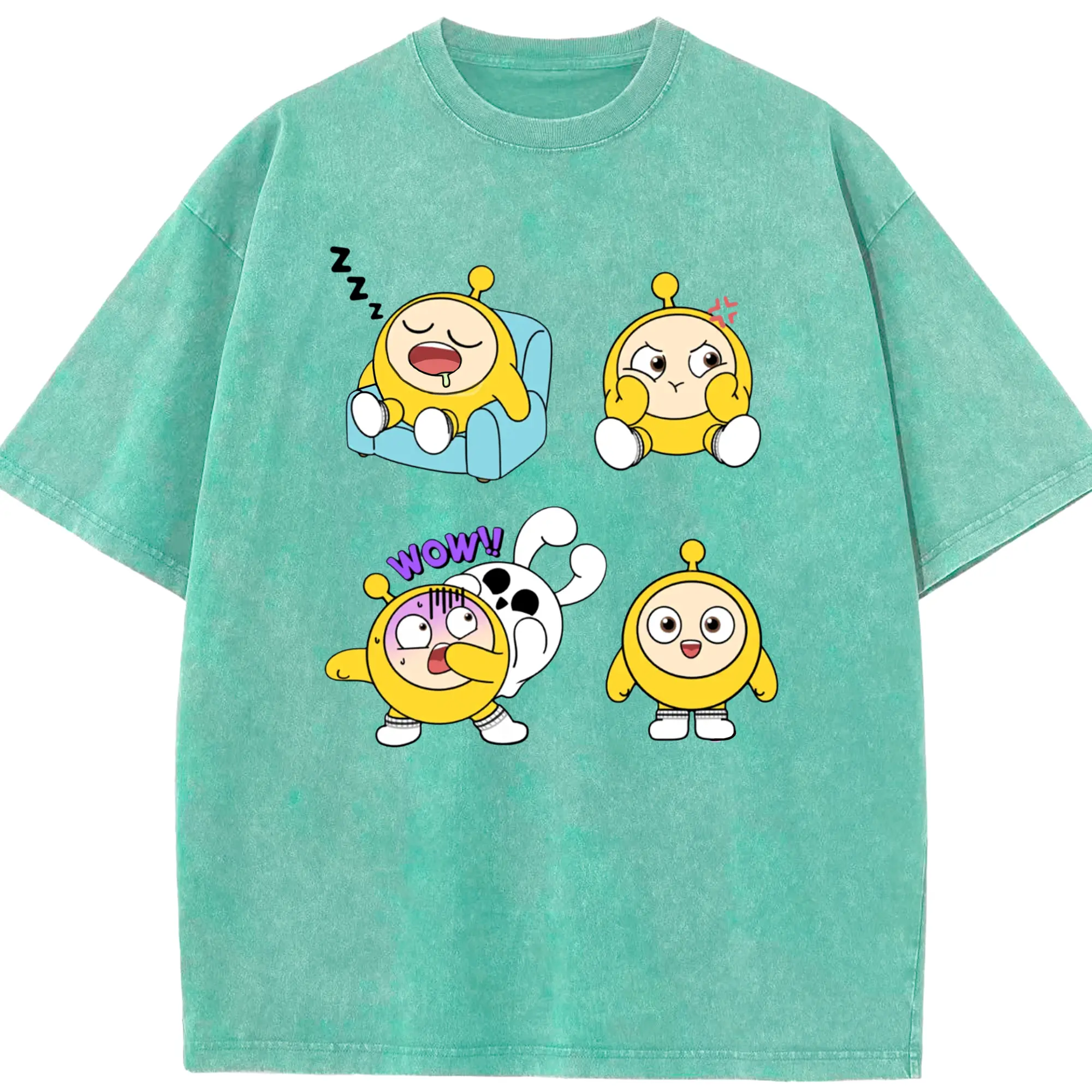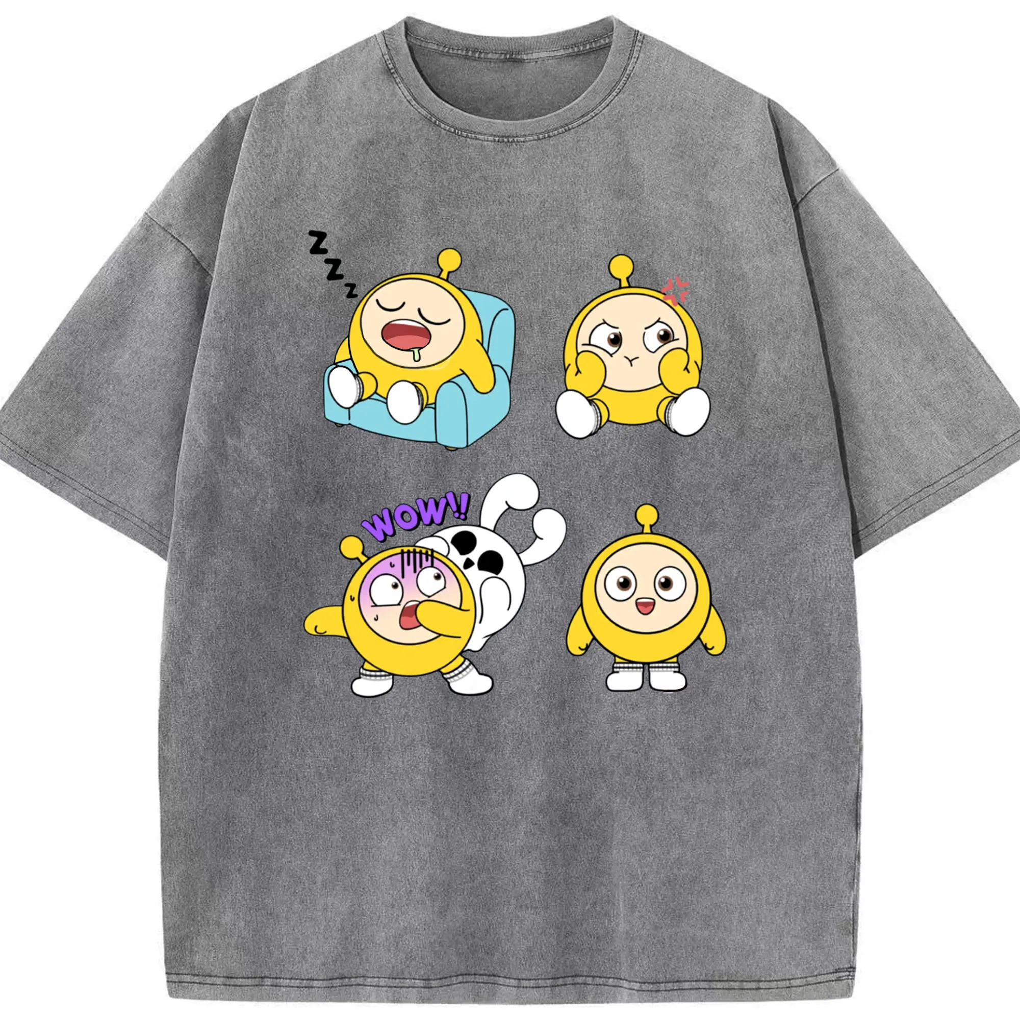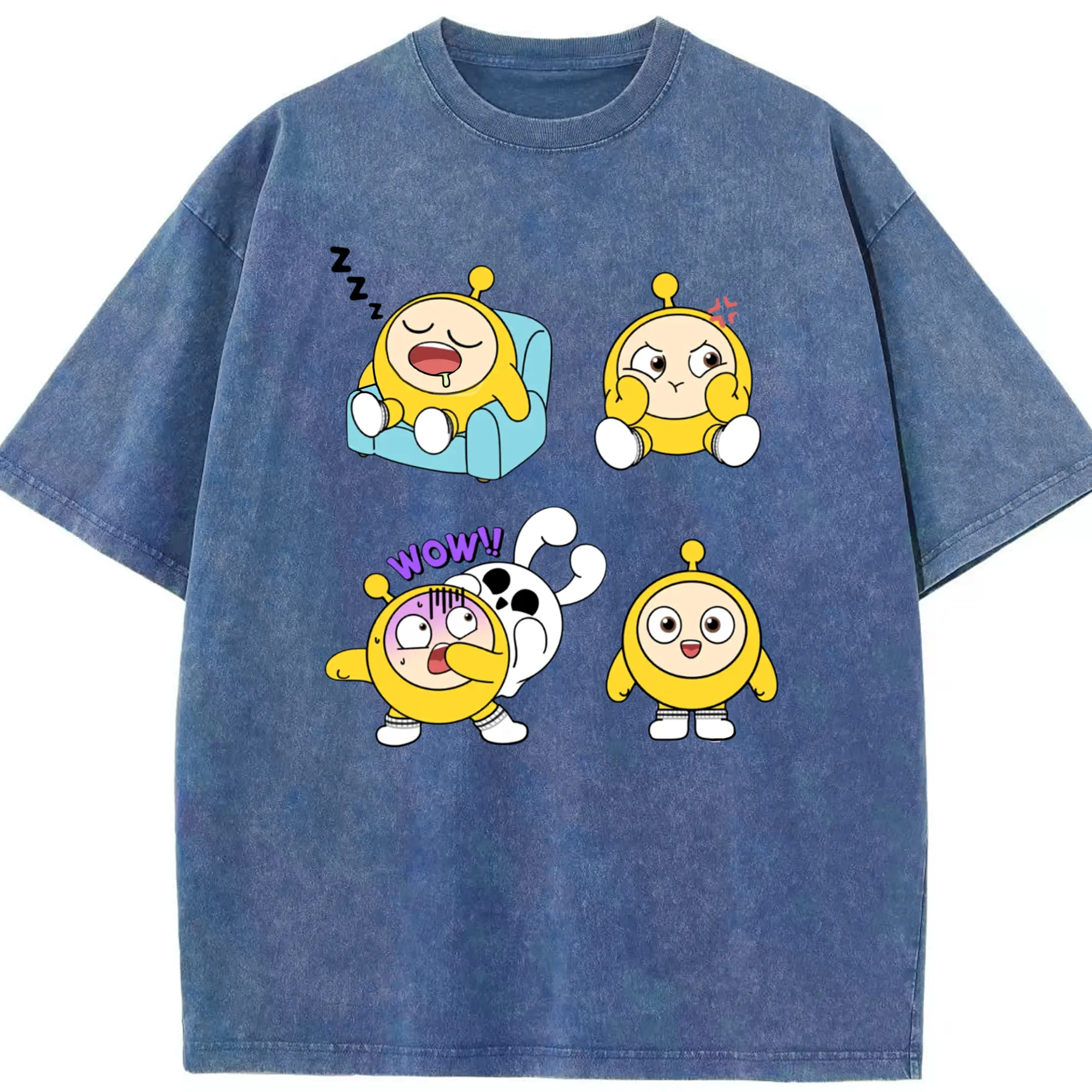 蛋仔パーティー 蛋小粉 キャラクター 可愛いゲームファン向けアイテム - 綿100% ヴィンテージ風 半袖Tシャツ ・ フロントプリント ・ 柔らか肌触り ・ 通気性 快適 ・ スポーツ カジュアル 外出用