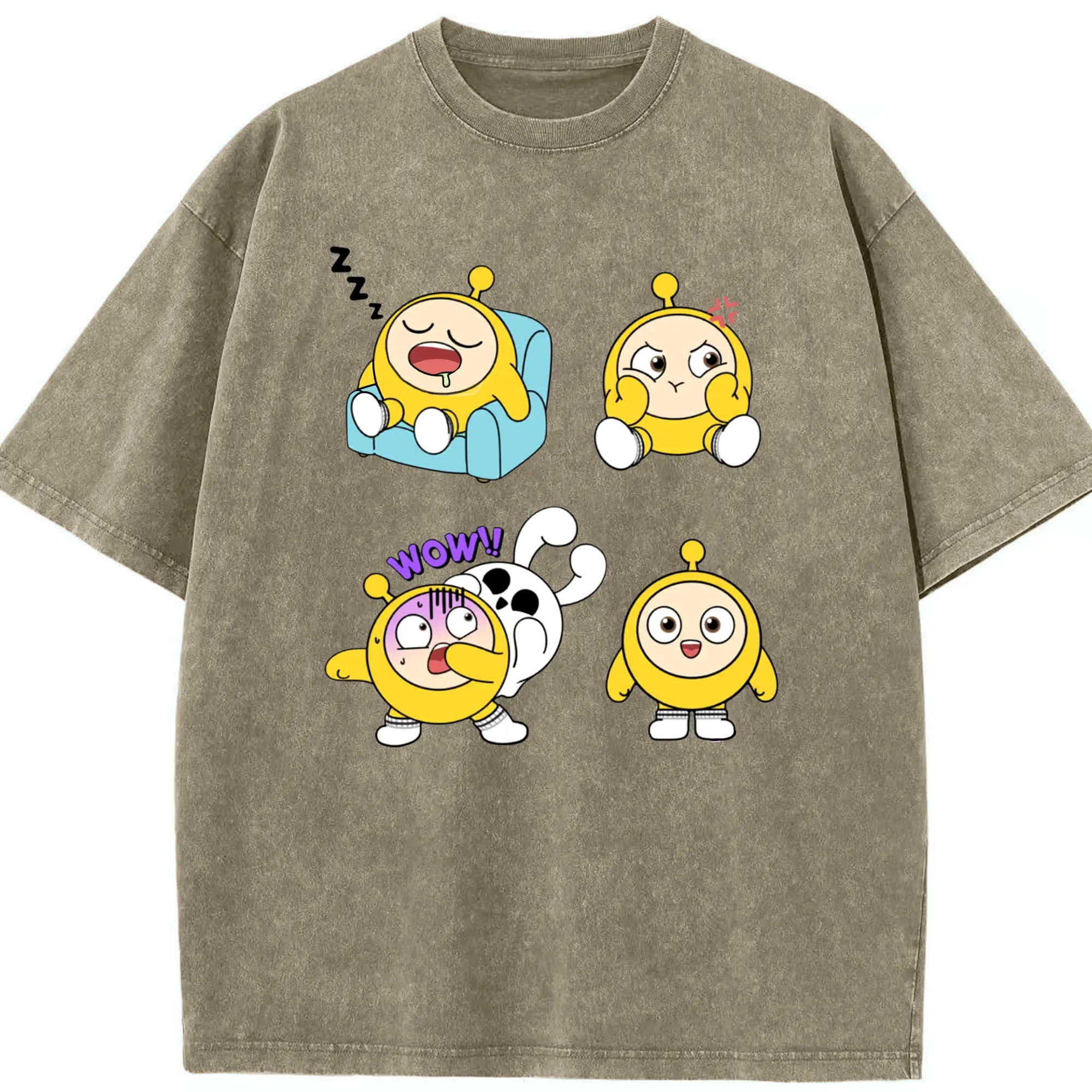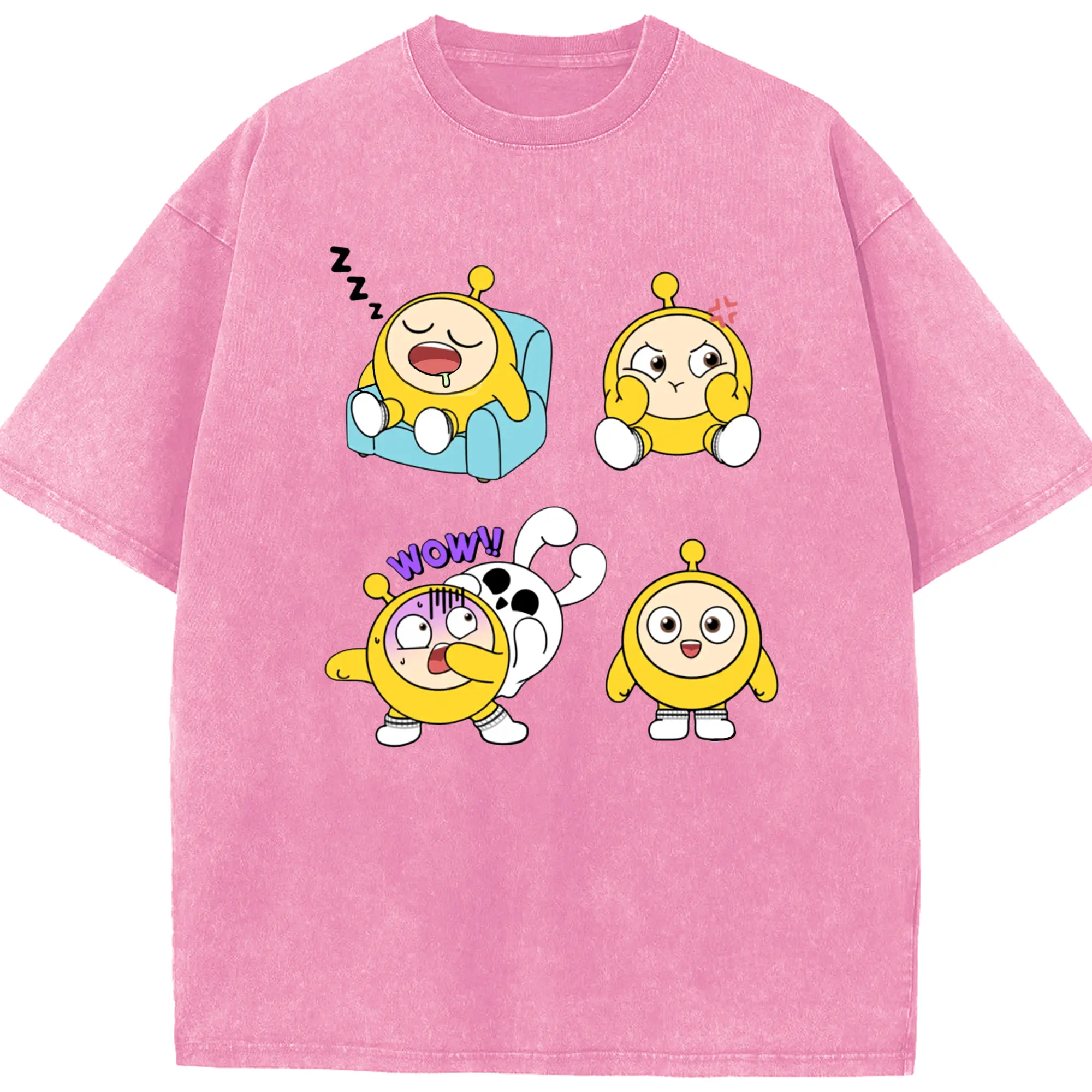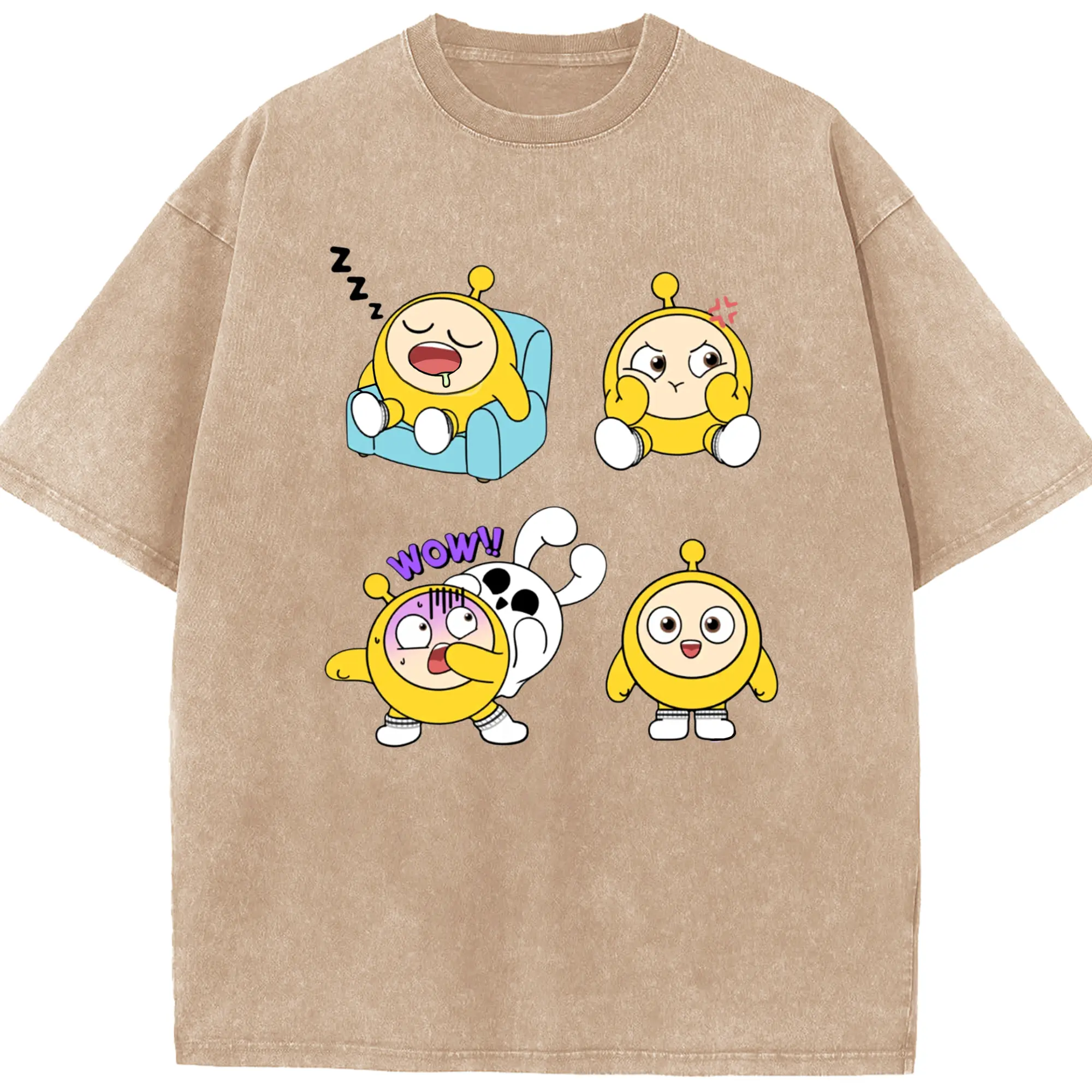 蛋仔パーティー 蛋小粉 キャラクター 可愛いゲームファン向けアイテム - 綿100% ヴィンテージ風 半袖Tシャツ ・ フロントプリント ・ 柔らか肌触り ・ 通気性 快適 ・ スポーツ カジュアル 外出用