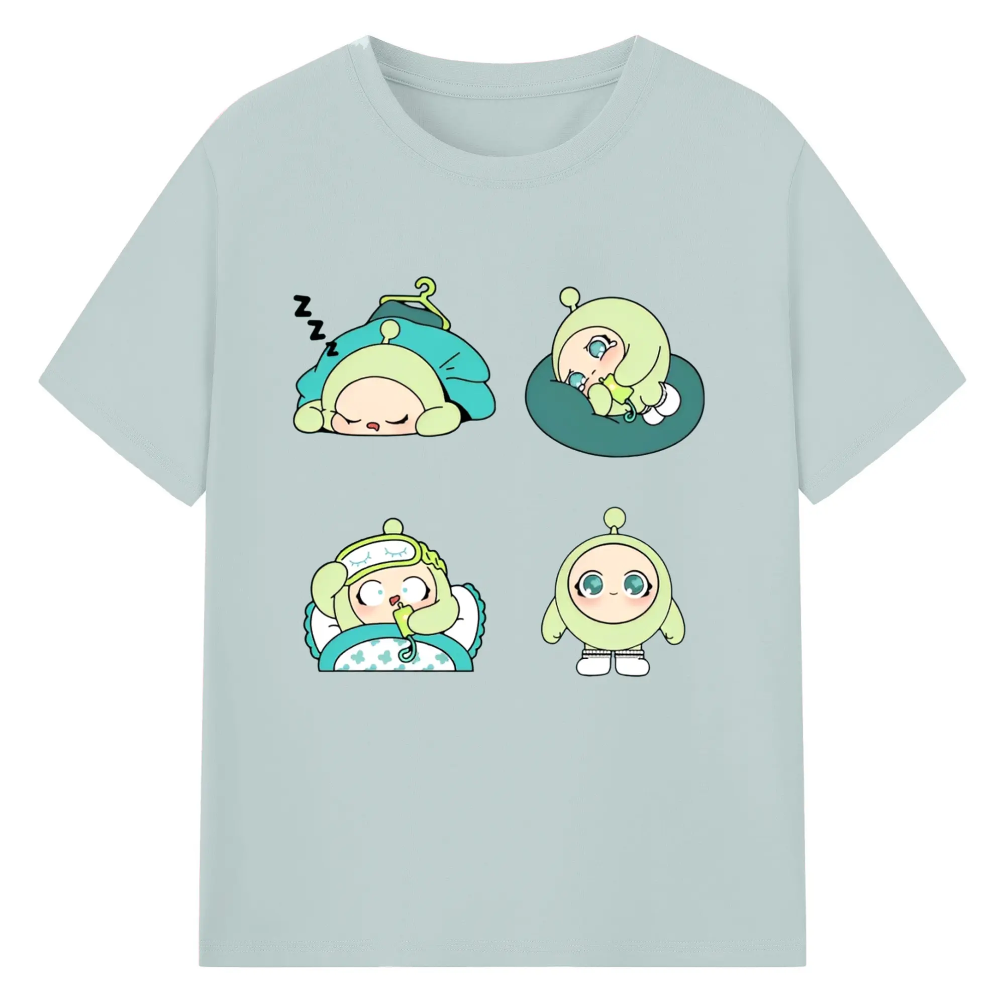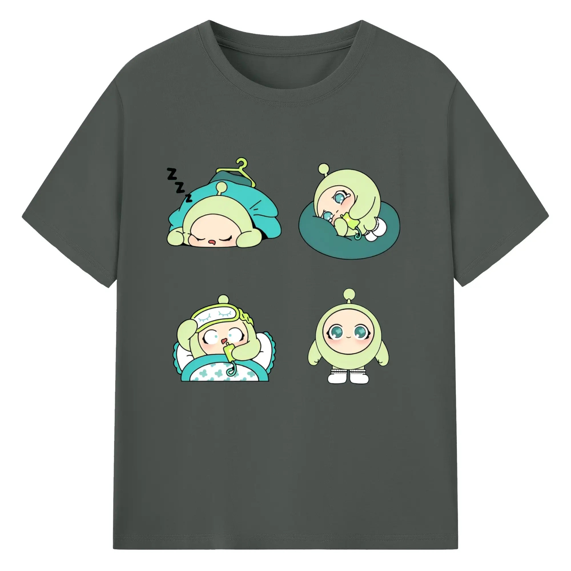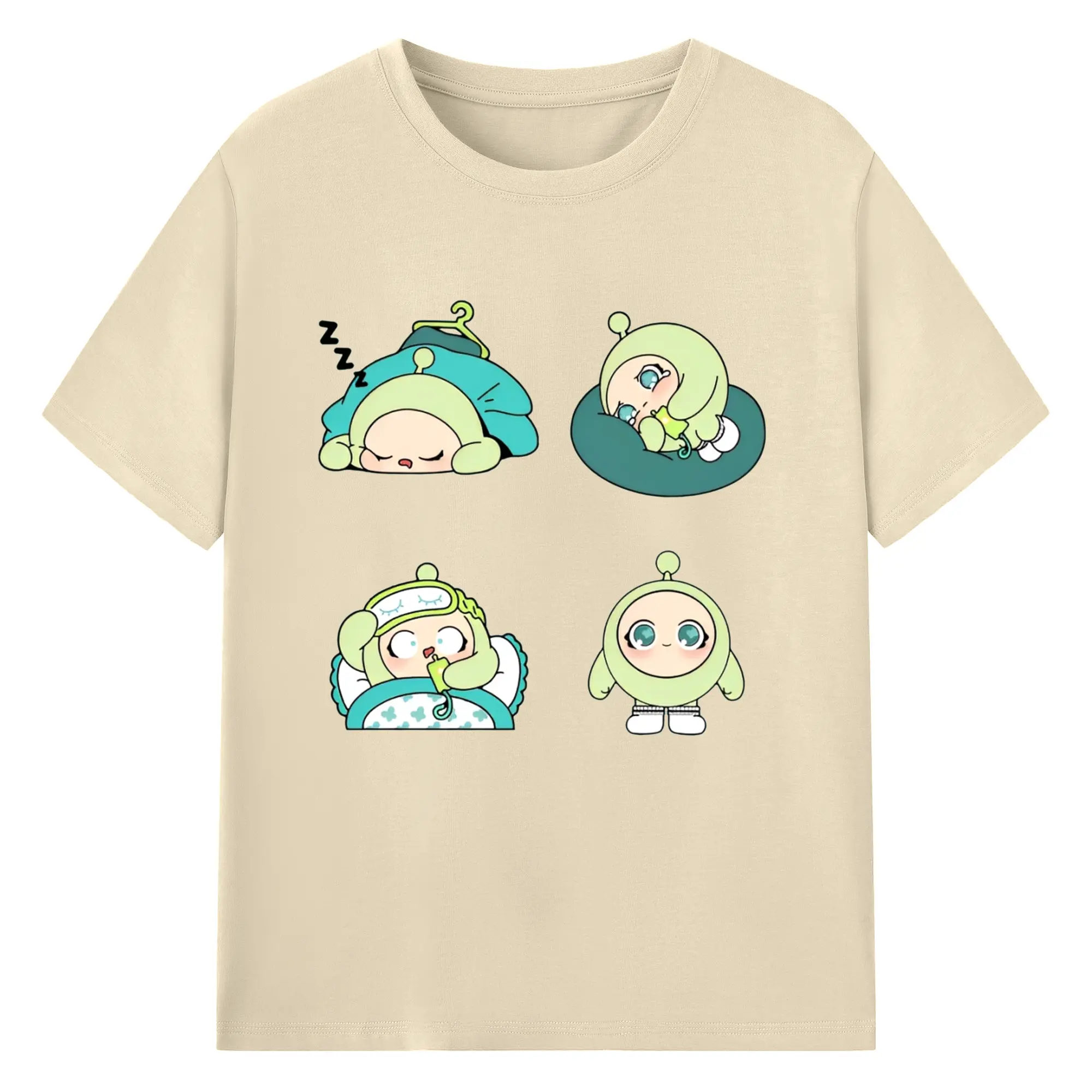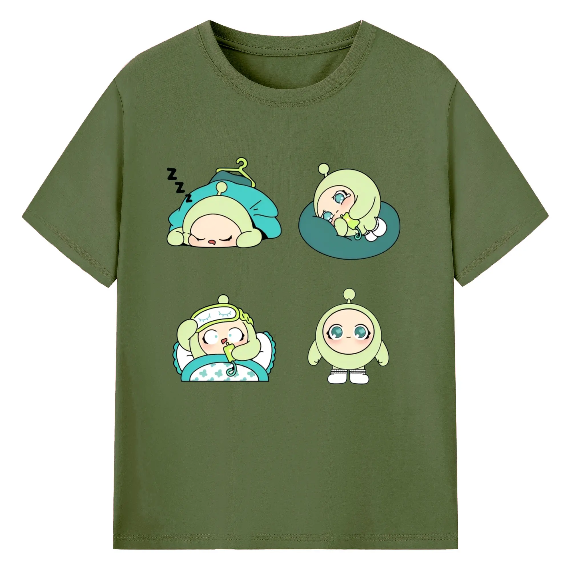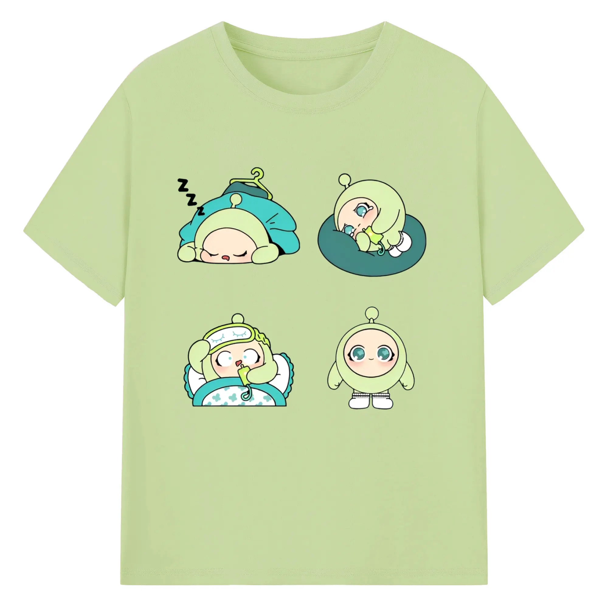 爽やかグリーン💚 蛋小緑 ナチュラル可愛いデザイン - 綿100% ヴィンテージ風 半袖Tシャツ ・ フロントプリント ・ 柔らか肌触り ・ 通気性 快適 ・ スポーツ カジュアル 外出用