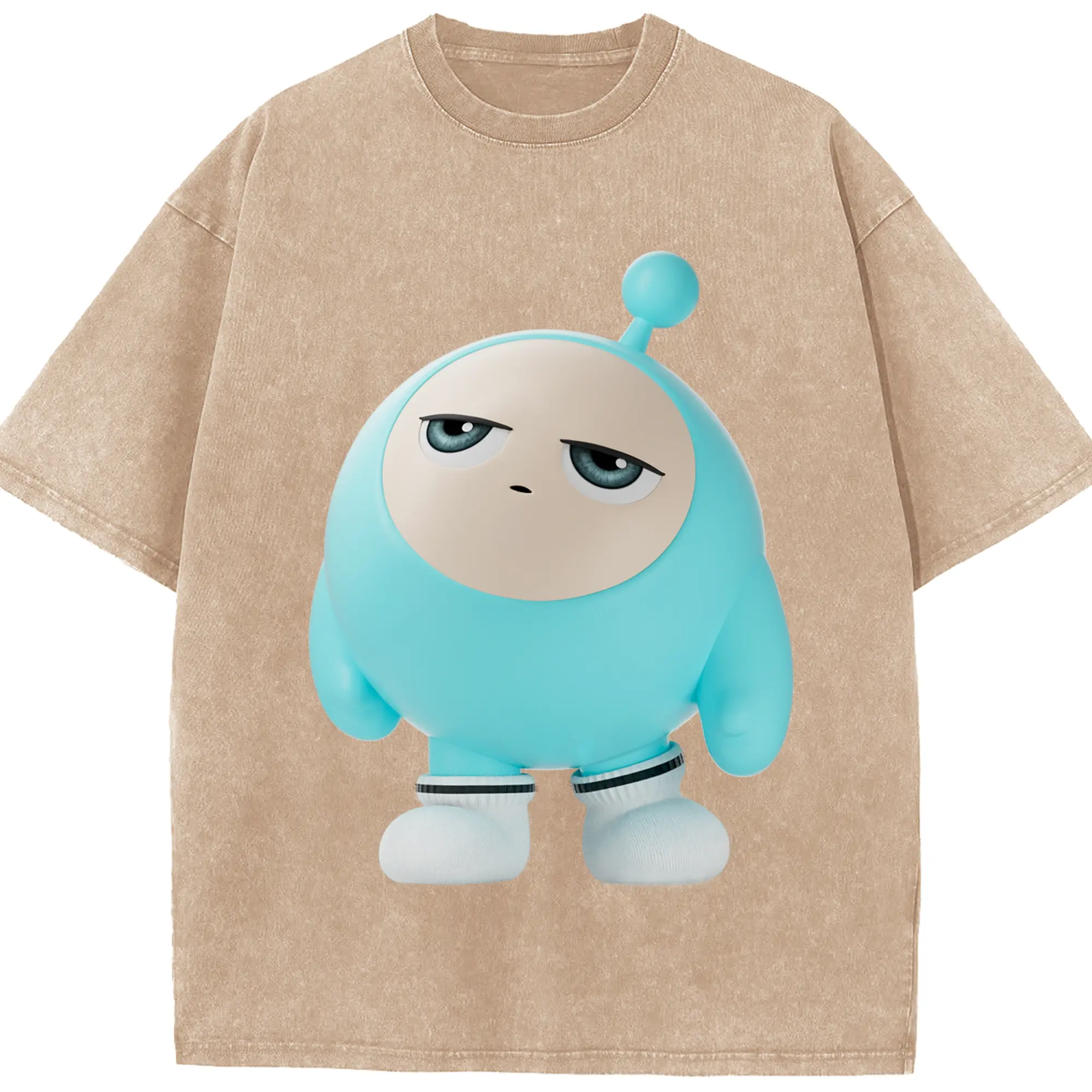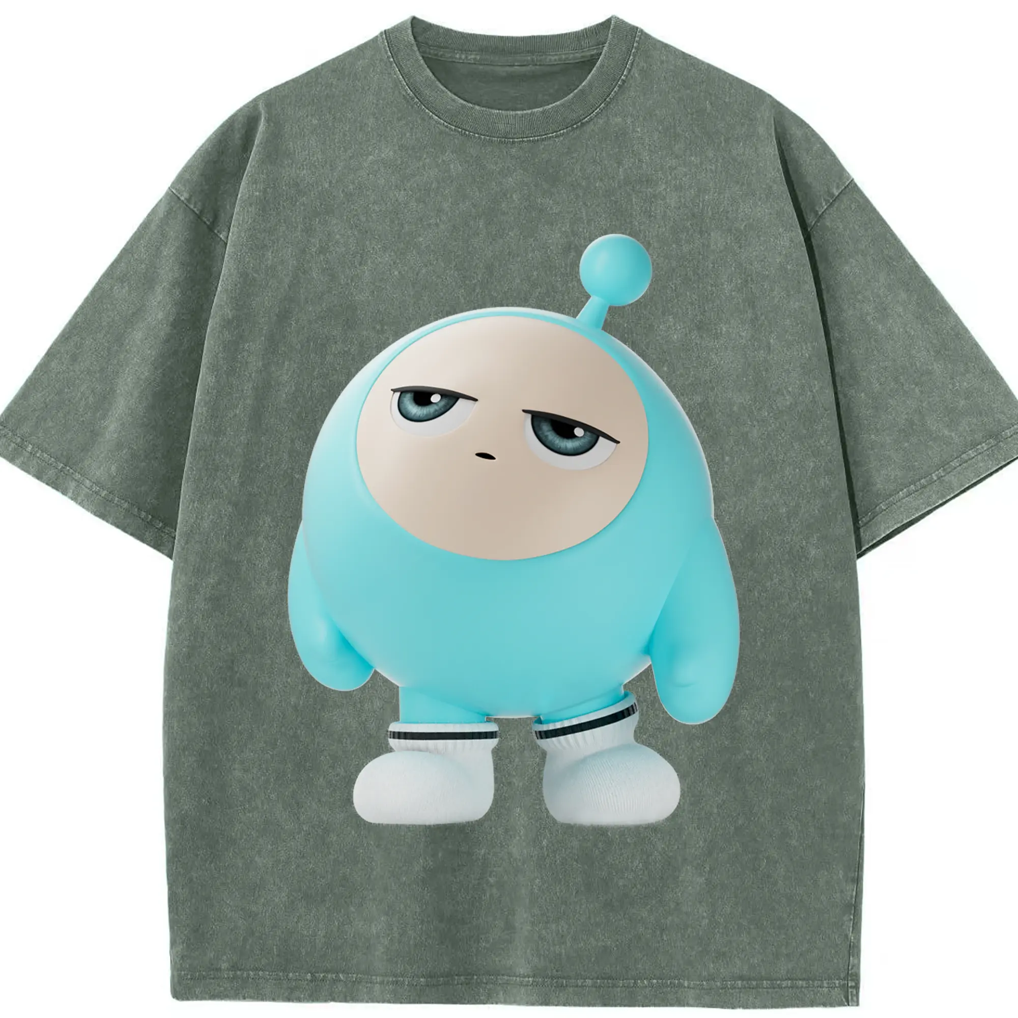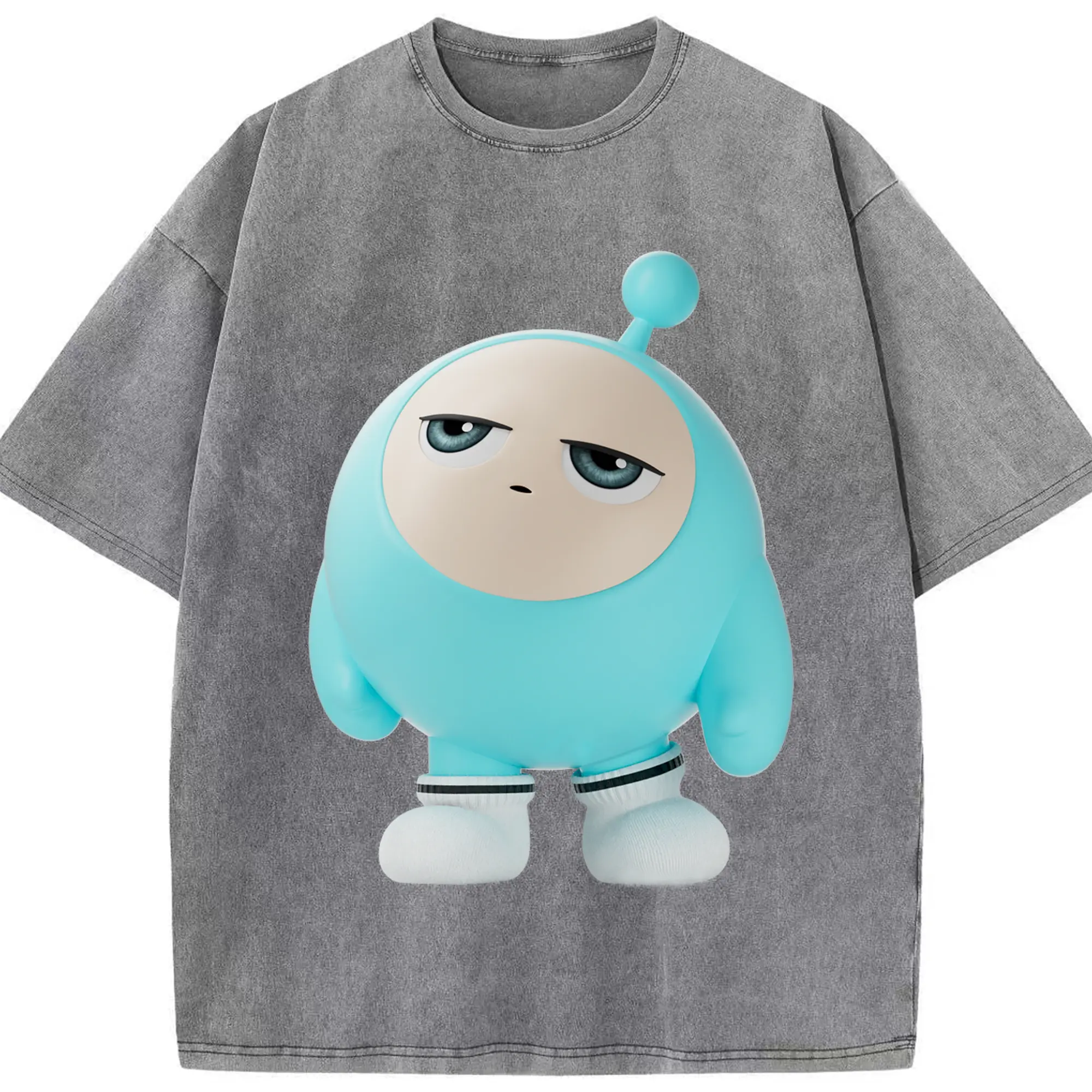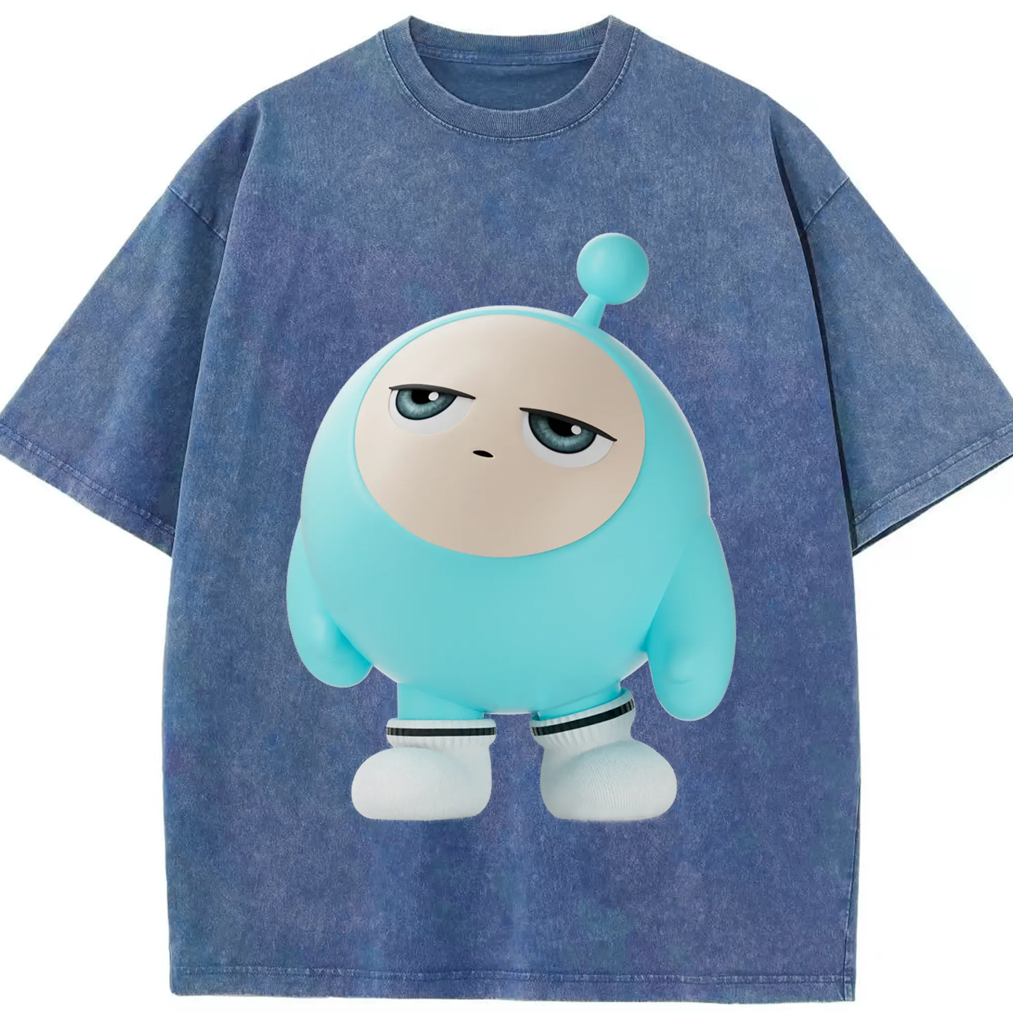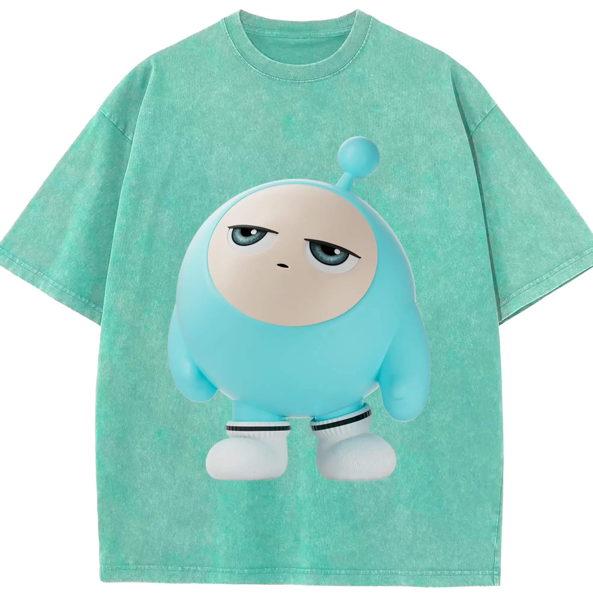 「癒し系エッグ 蛋小藍!ゲームファン必見の限定デザイン - 綿100% 半袖Tシャツ ・ フロントプリント ・ 快適 通気性 ・ 日常使い 散歩 スポーツ用