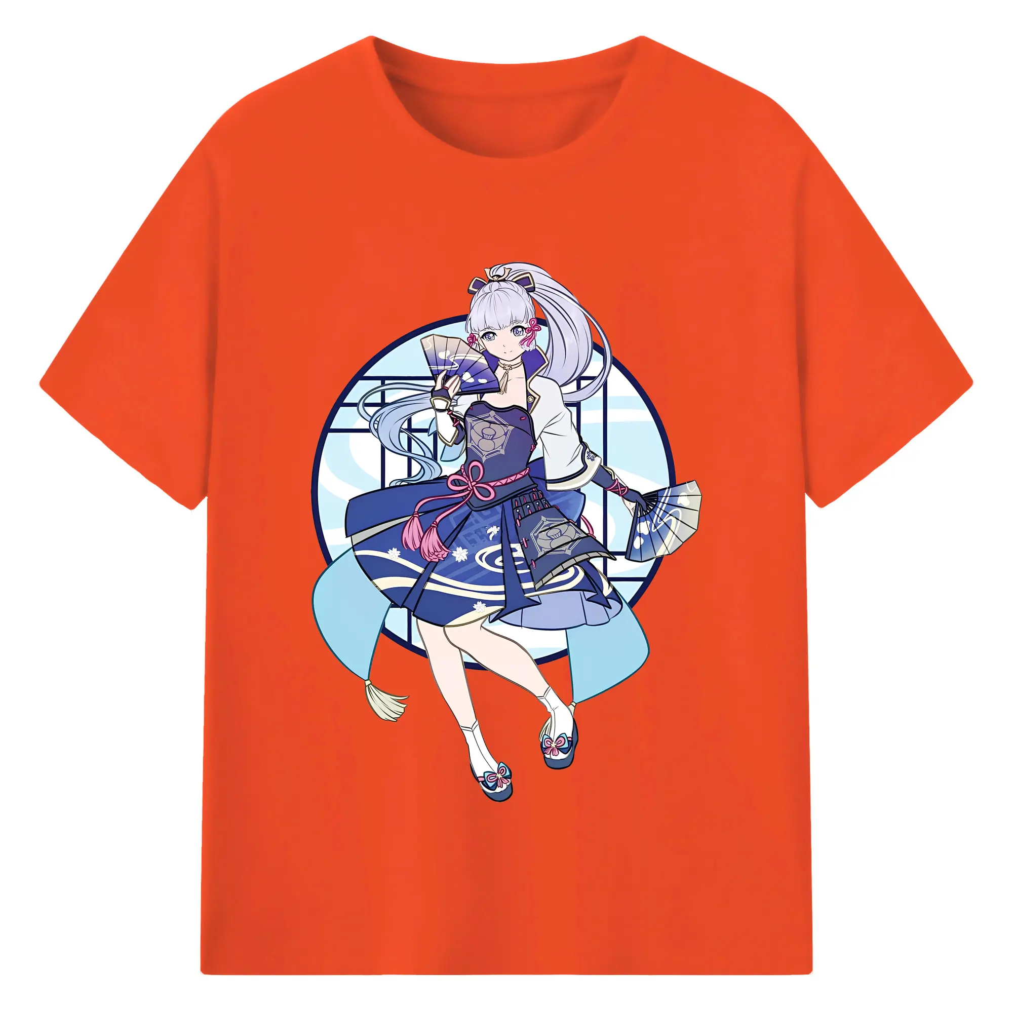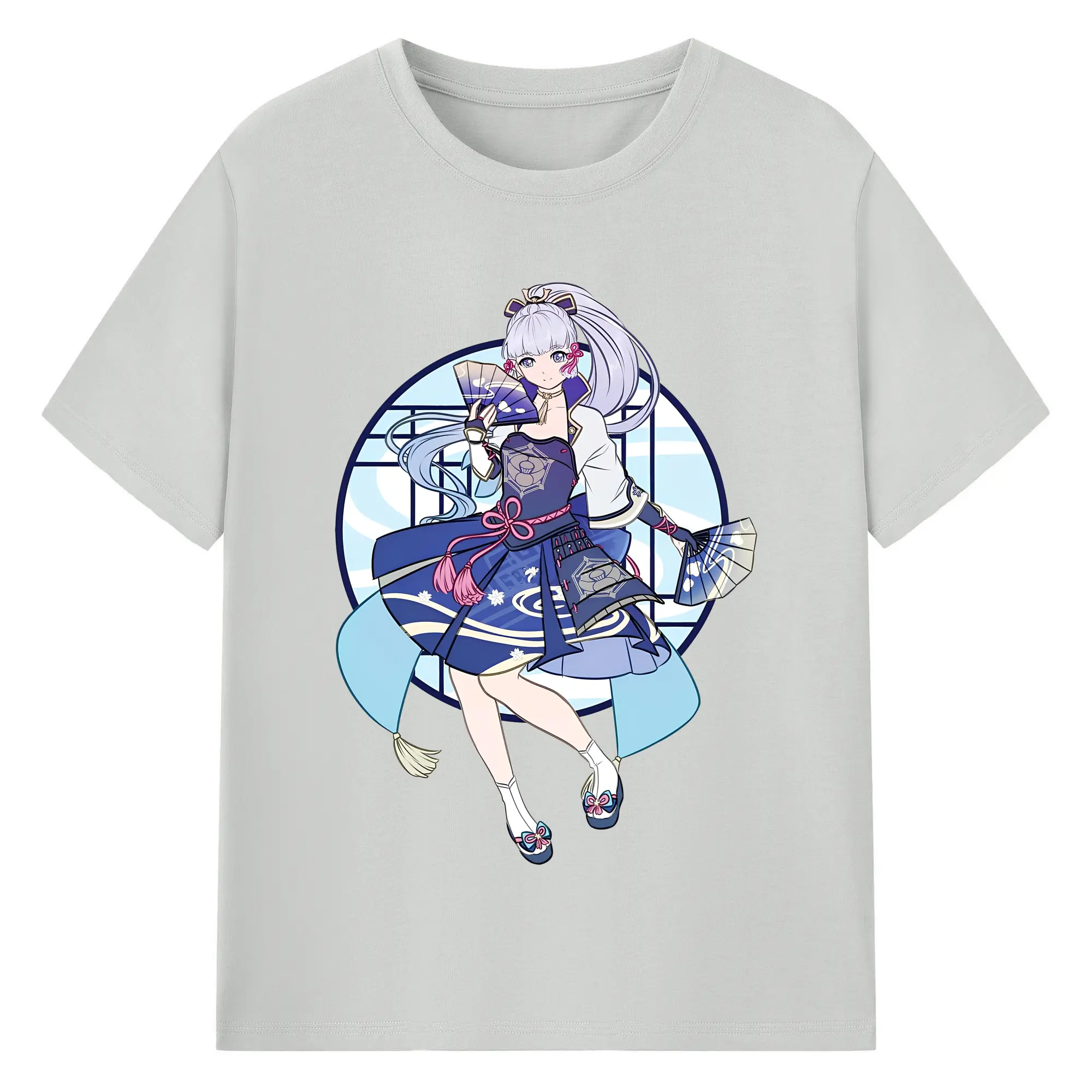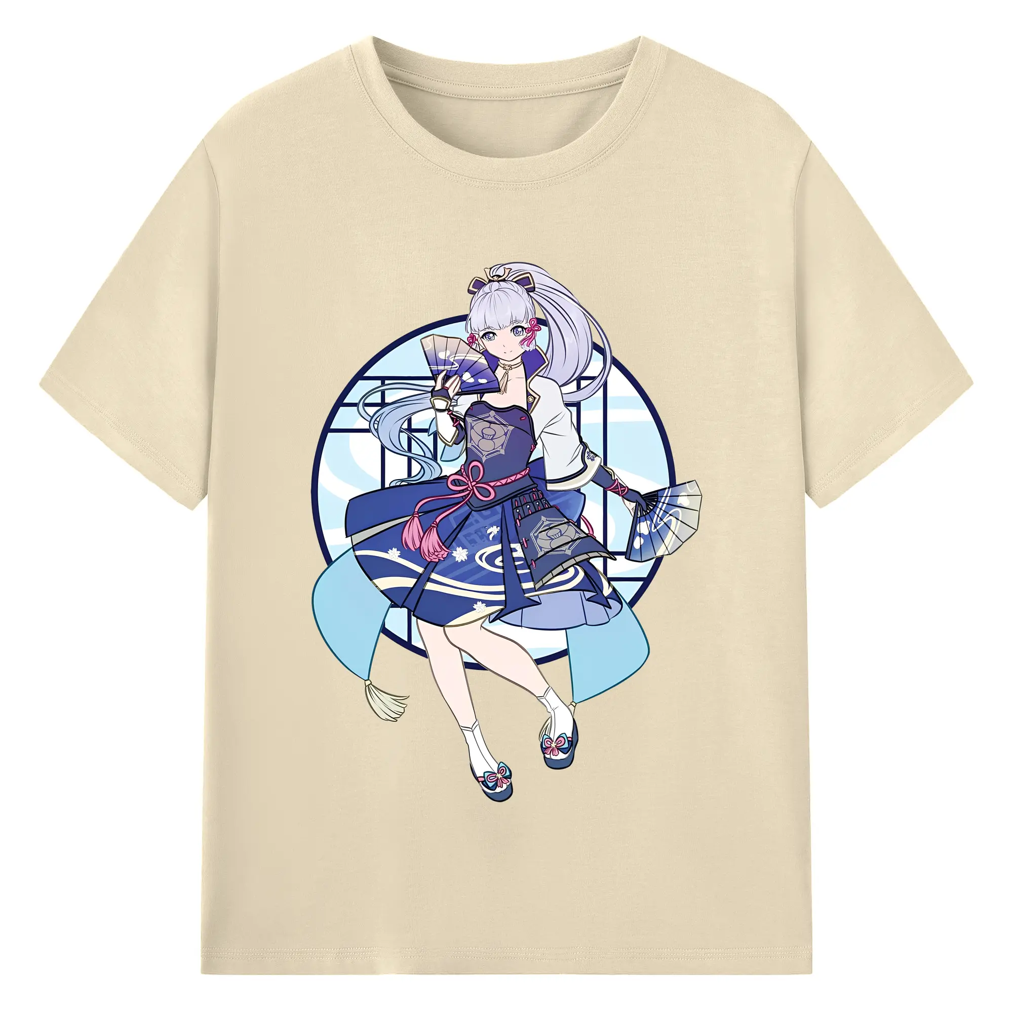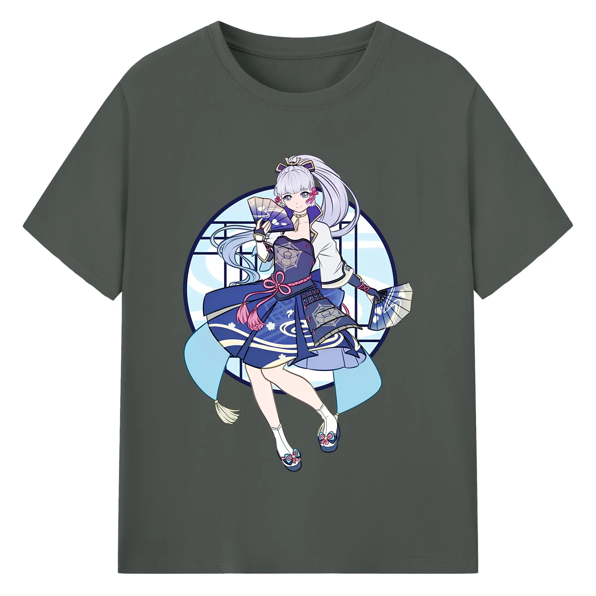 神里綾華 アニメ風デザイン ユニセックス おしゃれ - 綿100% ヴィンテージ風 半袖Tシャツ ・ フロントプリント ・ 柔らか肌触り ・ 通気性 快適 ・ スポーツ カジュアル 外出用