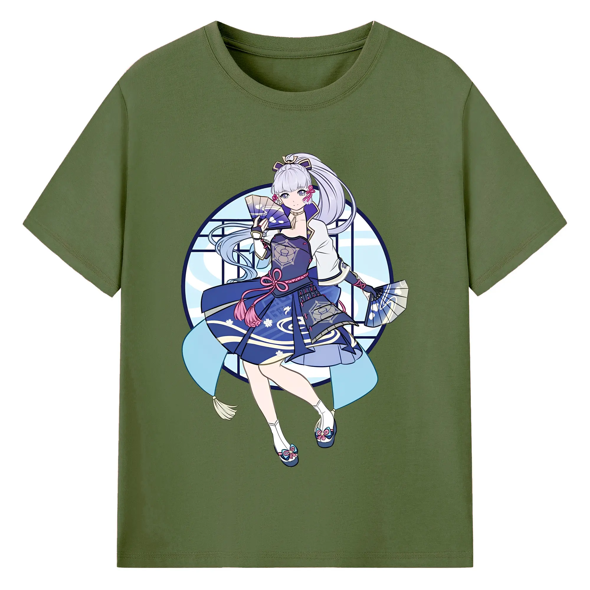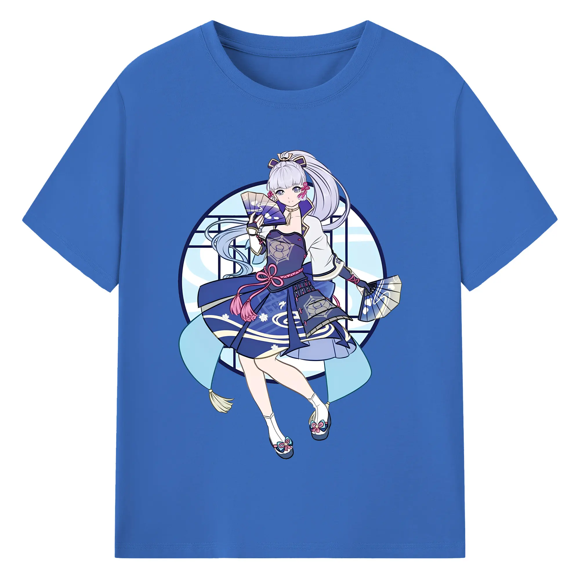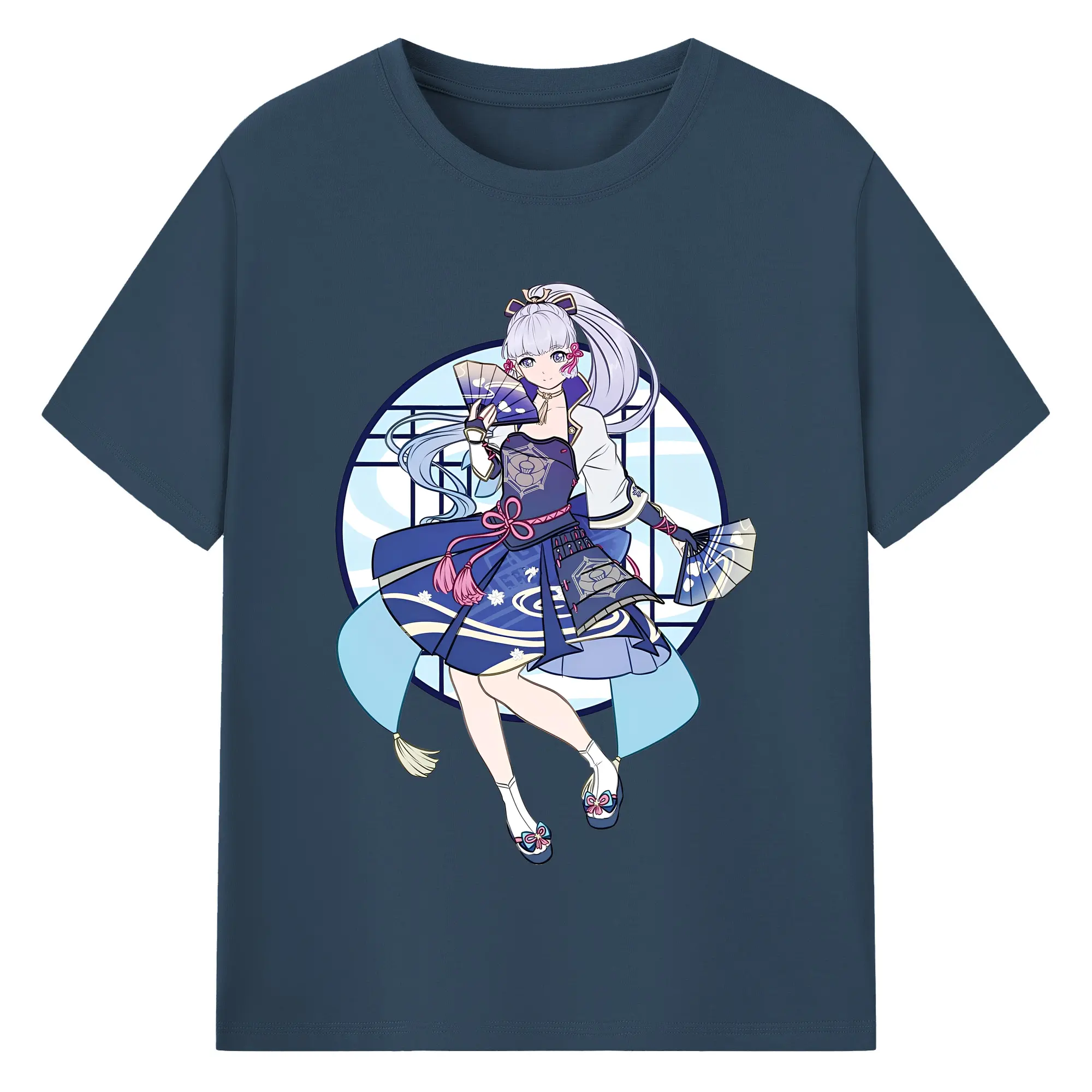 神里綾華 アニメ風デザイン ユニセックス おしゃれ - 綿100% ヴィンテージ風 半袖Tシャツ ・ フロントプリント ・ 柔らか肌触り ・ 通気性 快適 ・ スポーツ カジュアル 外出用