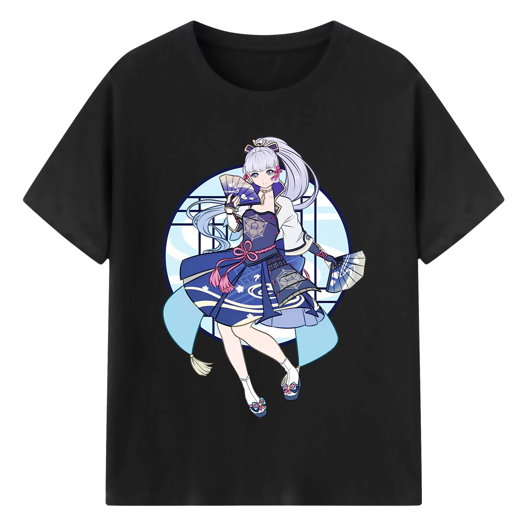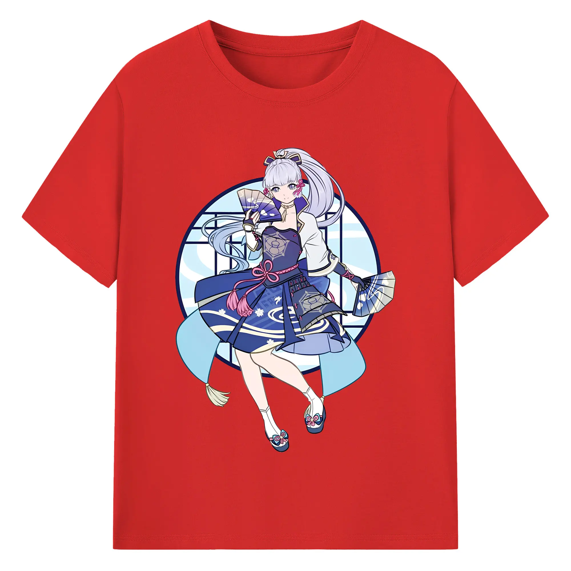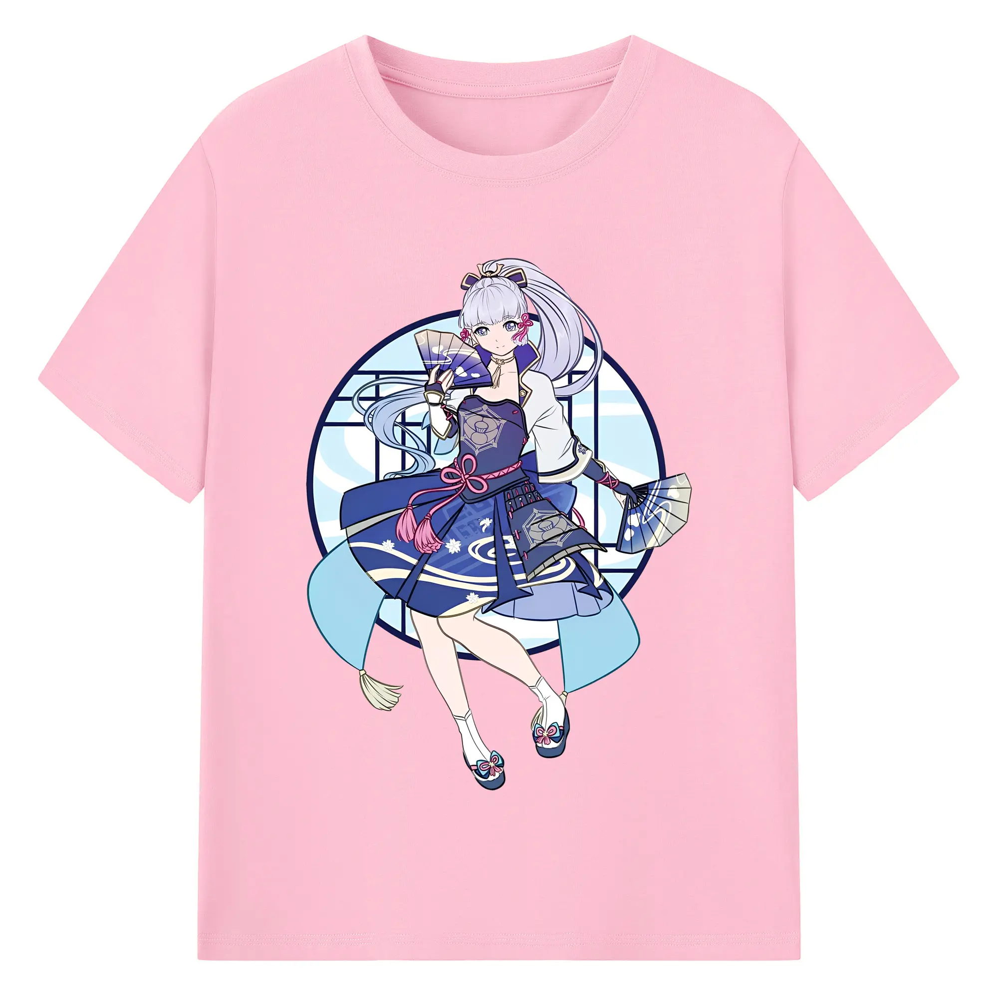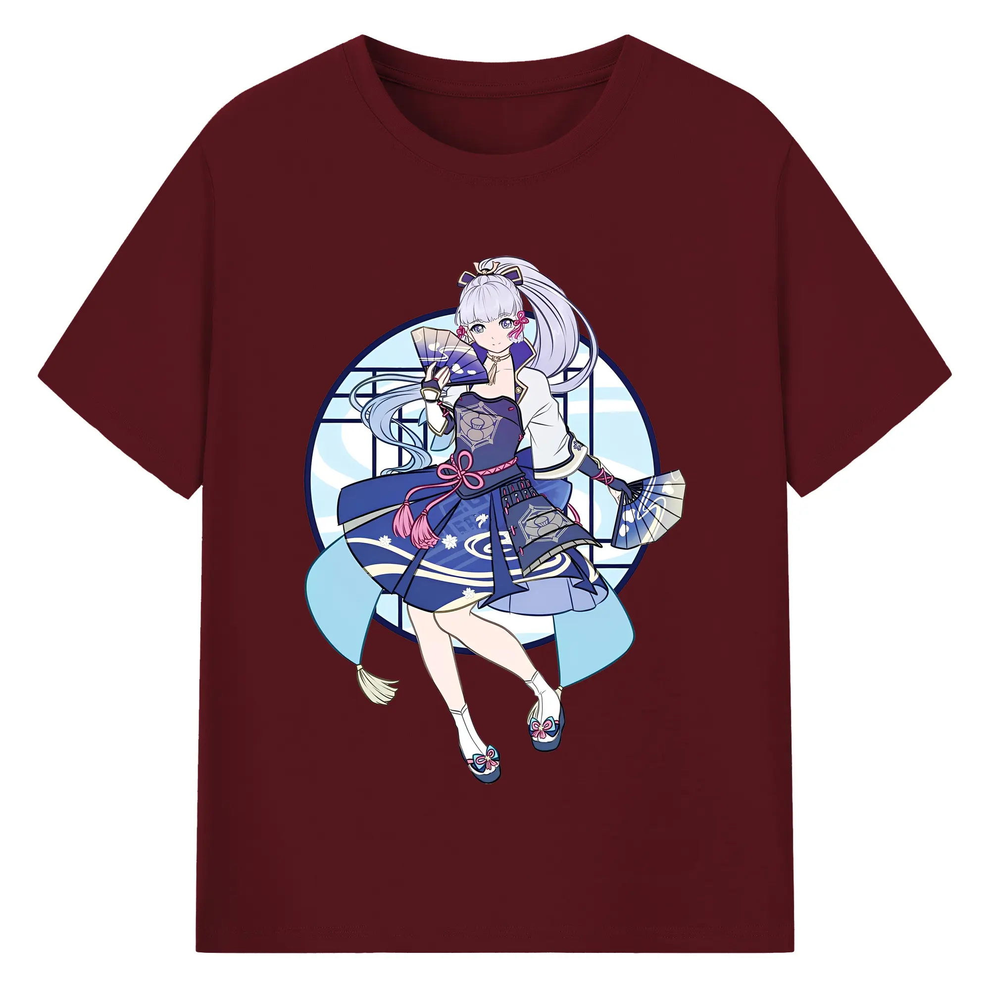 神里綾華 アニメ風デザイン ユニセックス おしゃれ - 綿100% ヴィンテージ風 半袖Tシャツ ・ フロントプリント ・ 柔らか肌触り ・ 通気性 快適 ・ スポーツ カジュアル 外出用