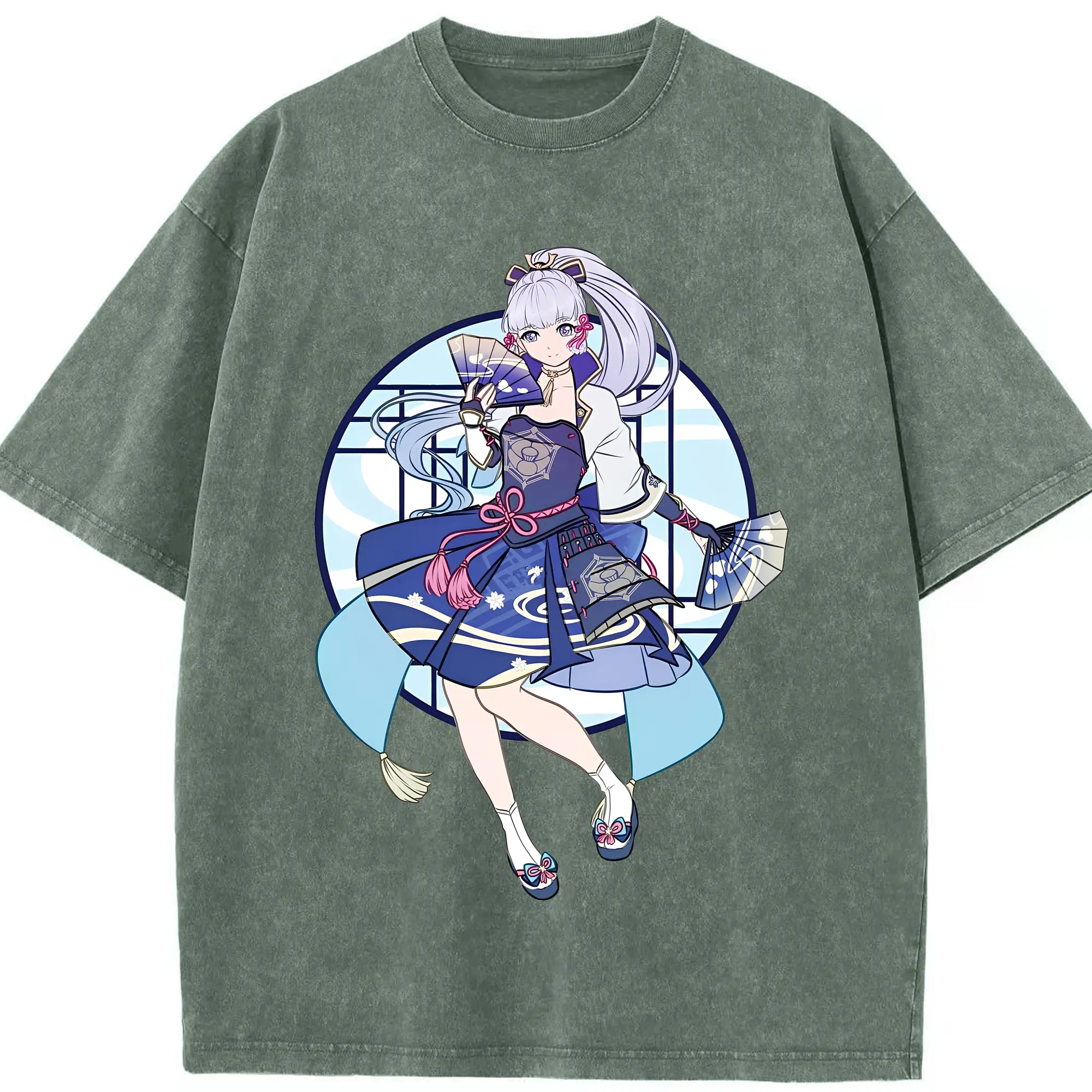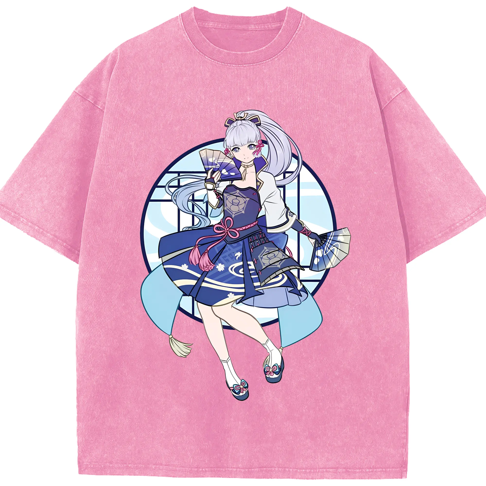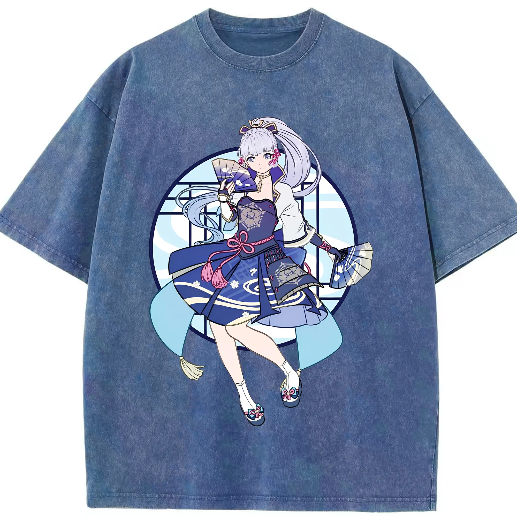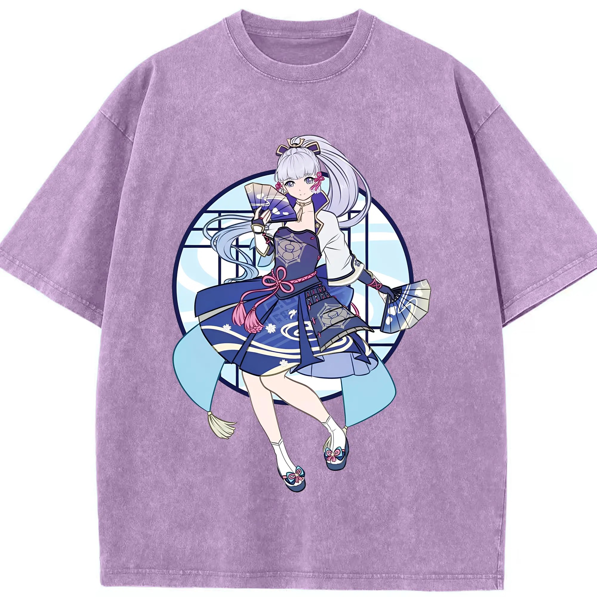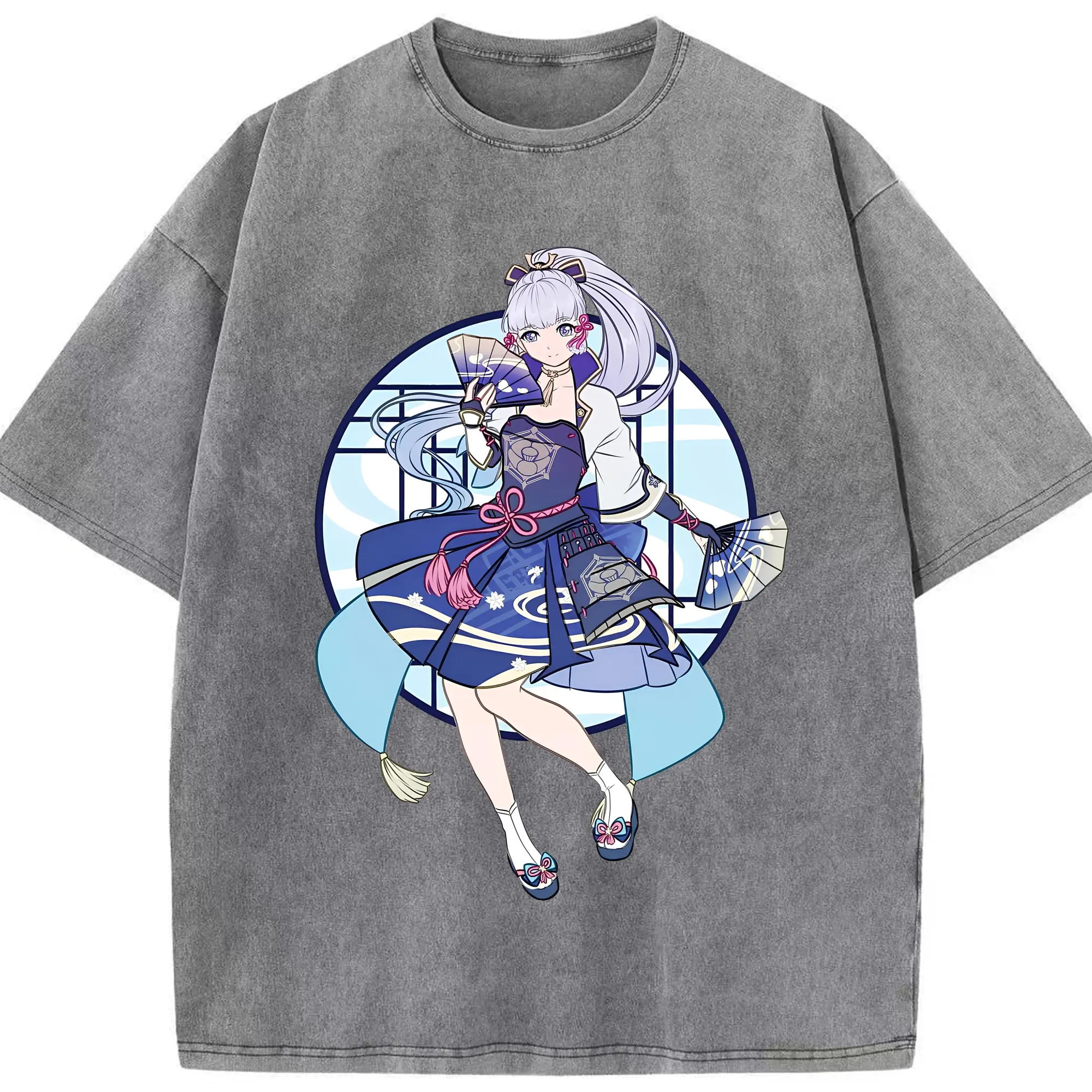 神里綾華 アニメ風デザイン ユニセックス おしゃれ - 綿100% 半袖Tシャツ ・ フロントプリント ・ 快適 通気性 ・ 日常使い 散歩 スポーツ用