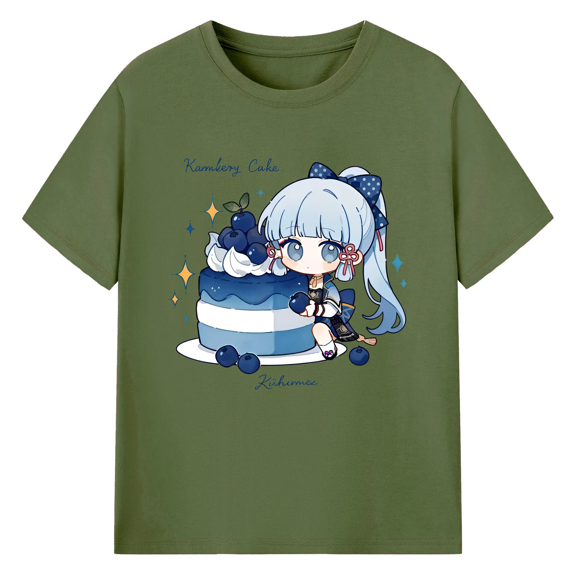 神里綾華 原宿系スタイル おしゃれデザイン ファッション - 綿100% ヴィンテージ風 半袖Tシャツ ・ フロントプリント ・ 柔らか肌触り ・ 通気性 快適 ・ スポーツ カジュアル 外出用