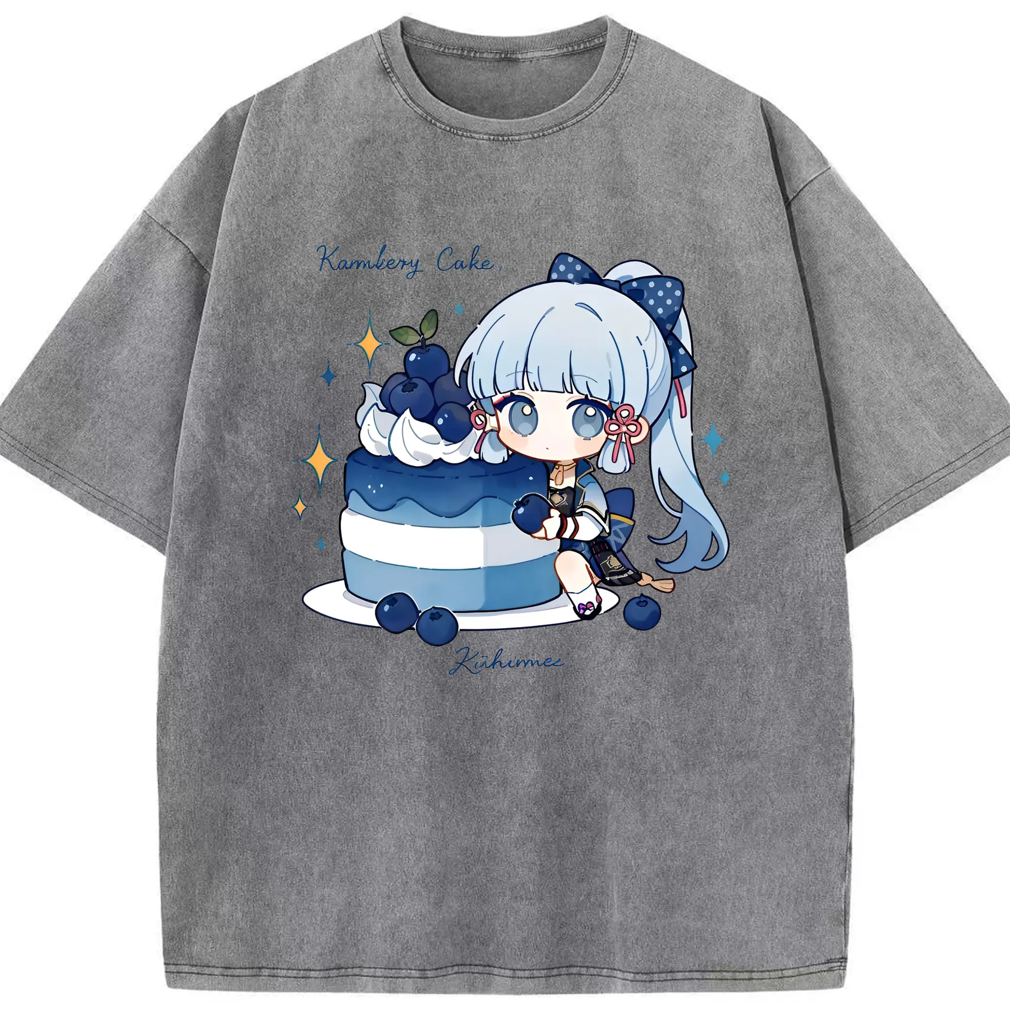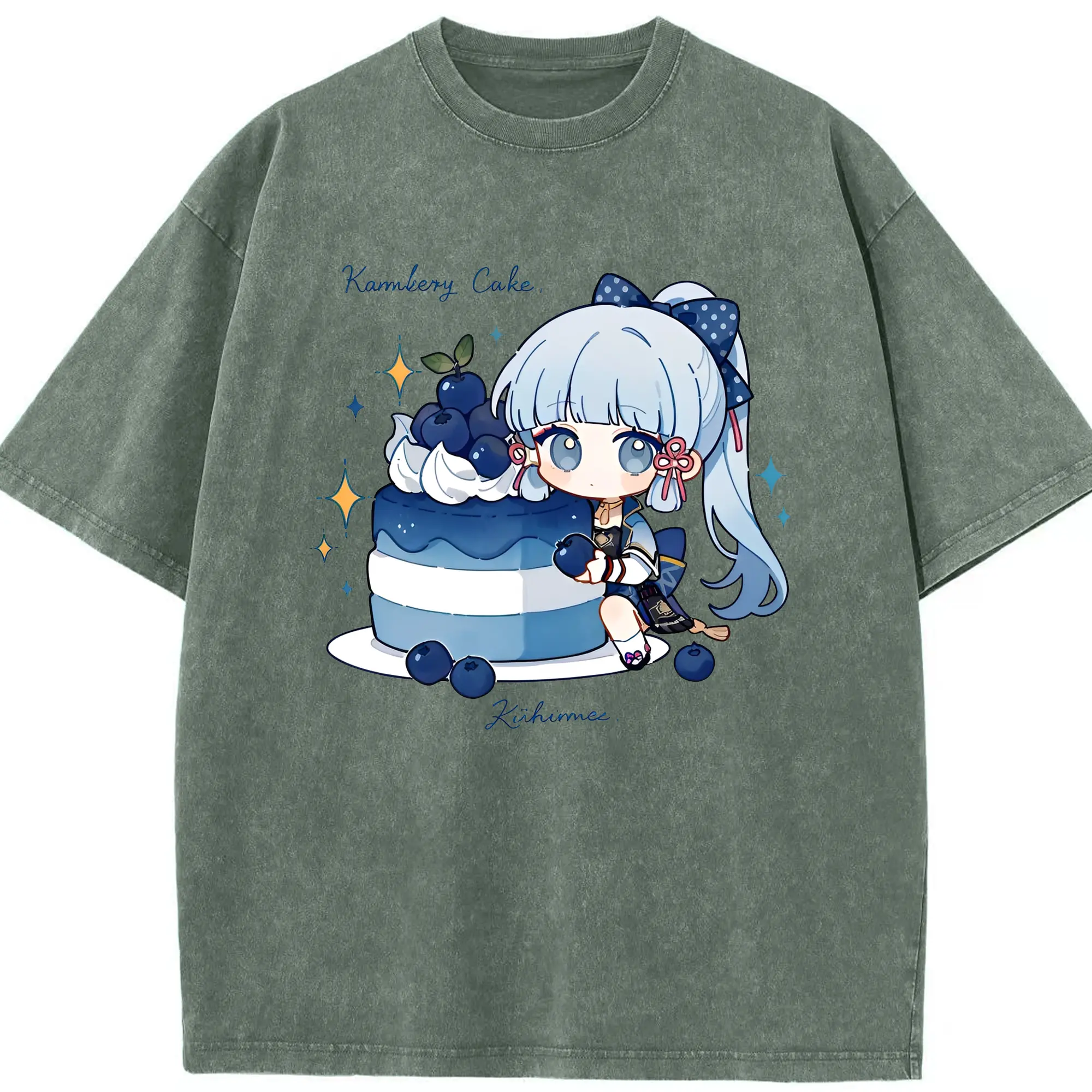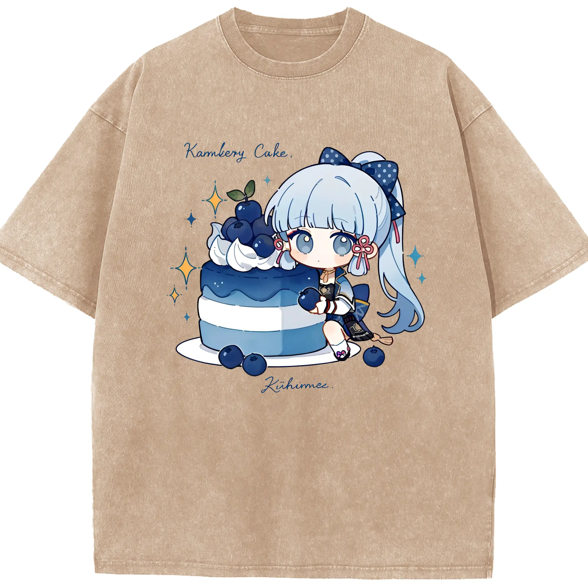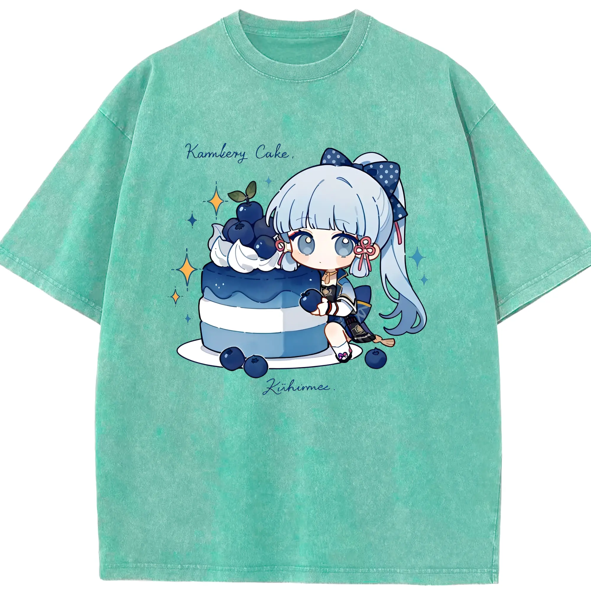Genshin Impact 甘雨 キャラクターグッズ ファン必見 - 綿100% ヴィンテージ風 半袖Tシャツ ・ フロントプリント ・ 柔らか肌触り ・ 通気性 快適 ・ スポーツ カジュアル 外出用