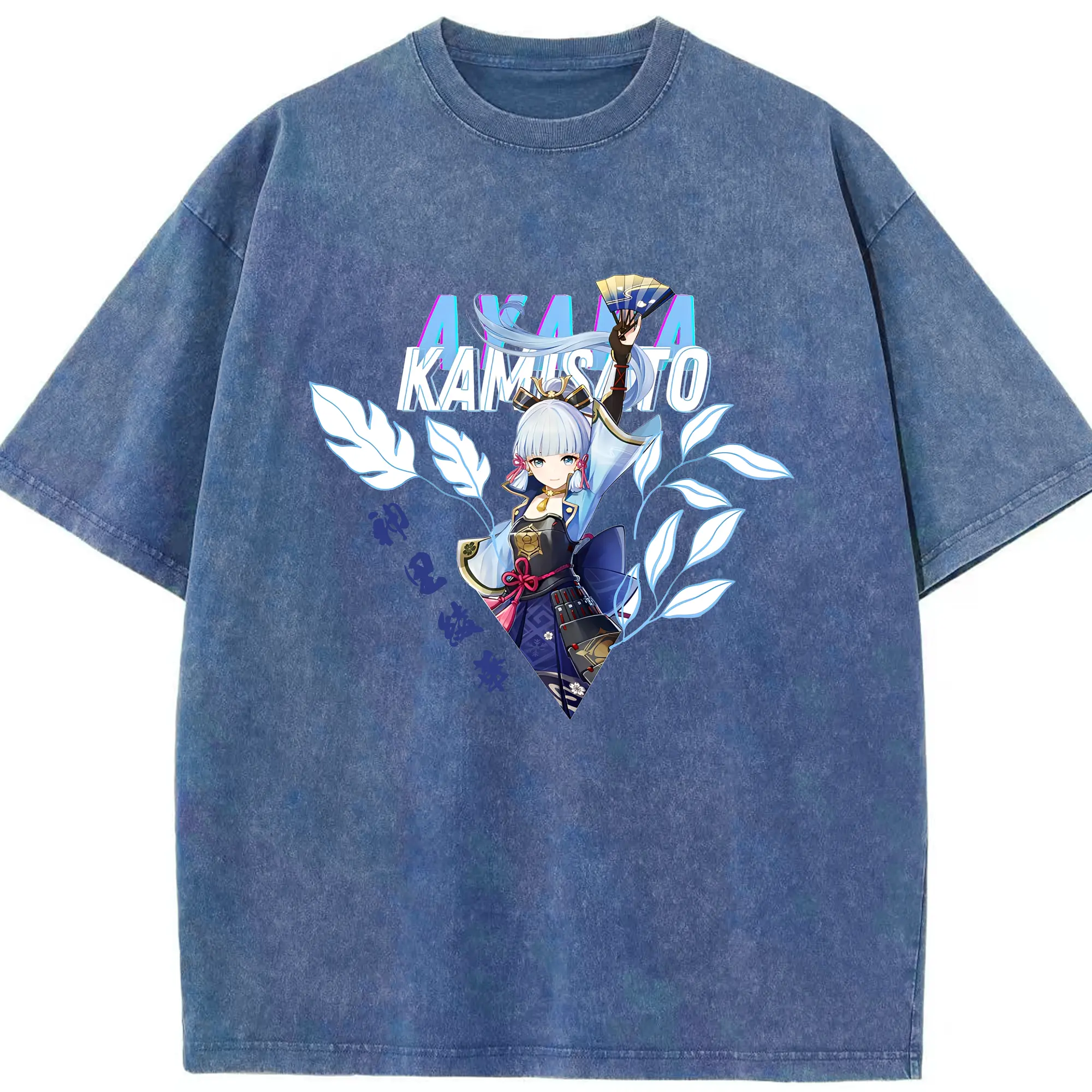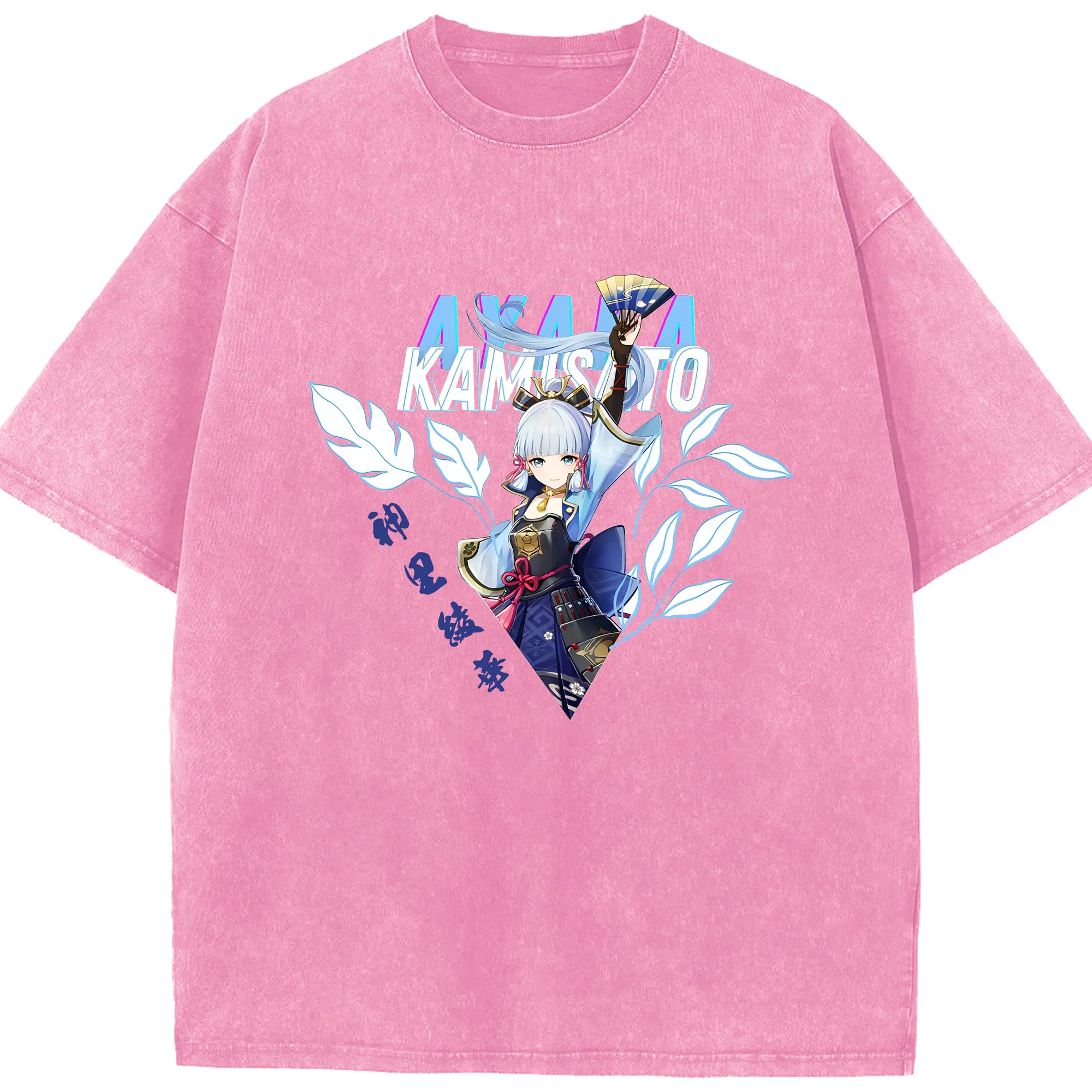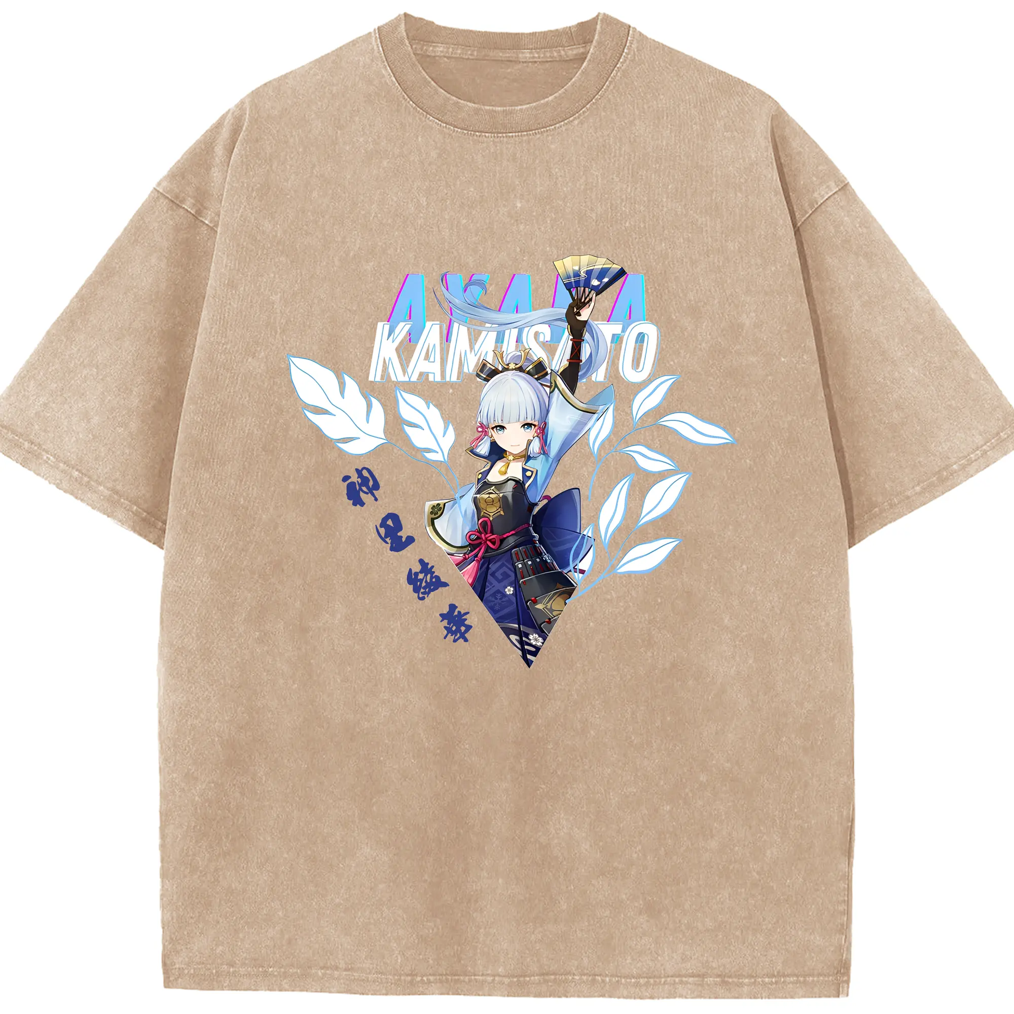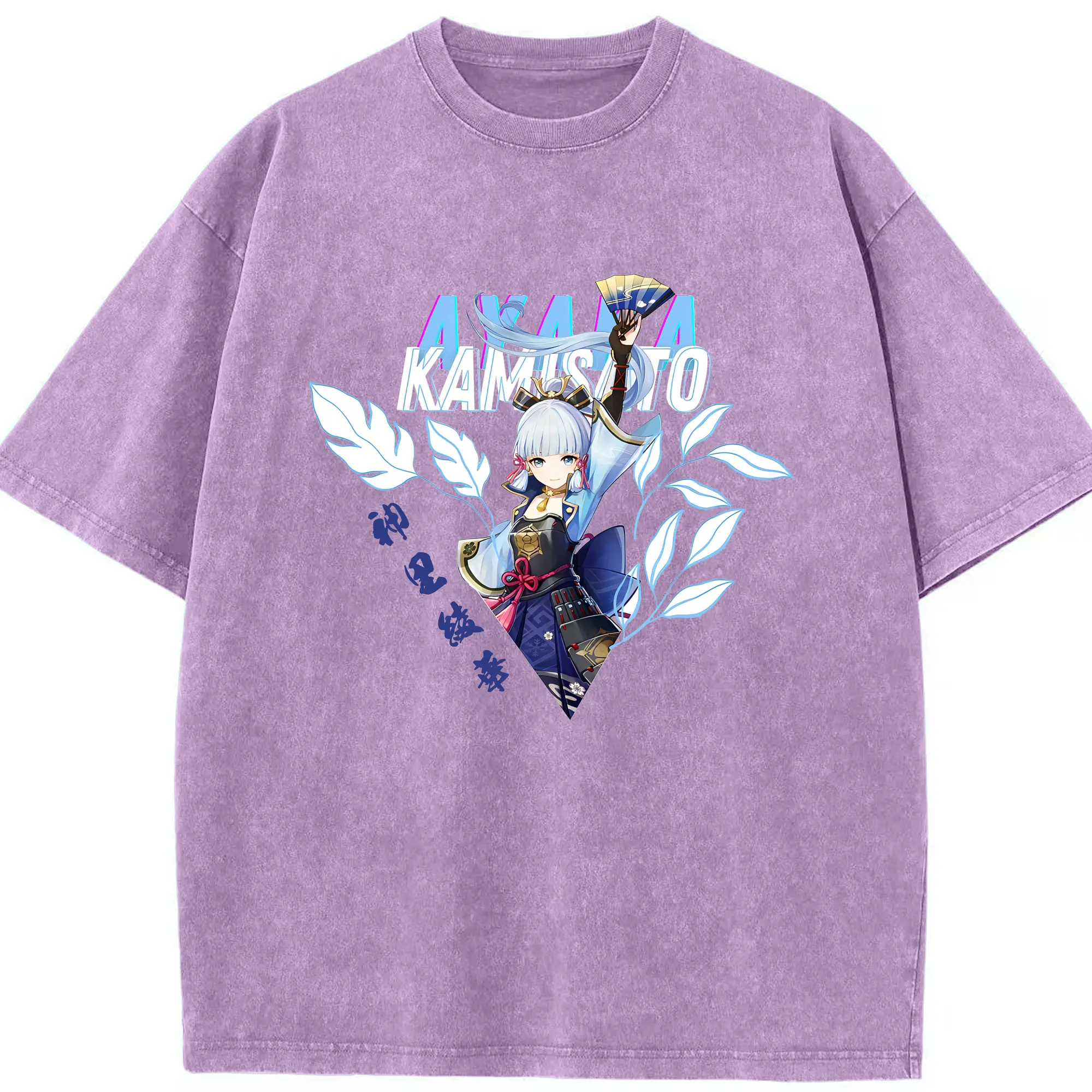 神里綾華 原神 限定デザイン ファングッズ 人気キャラ - 綿100% 半袖Tシャツ ・ フロントプリント ・ 快適 通気性 ・ 日常使い 散歩 スポーツ用