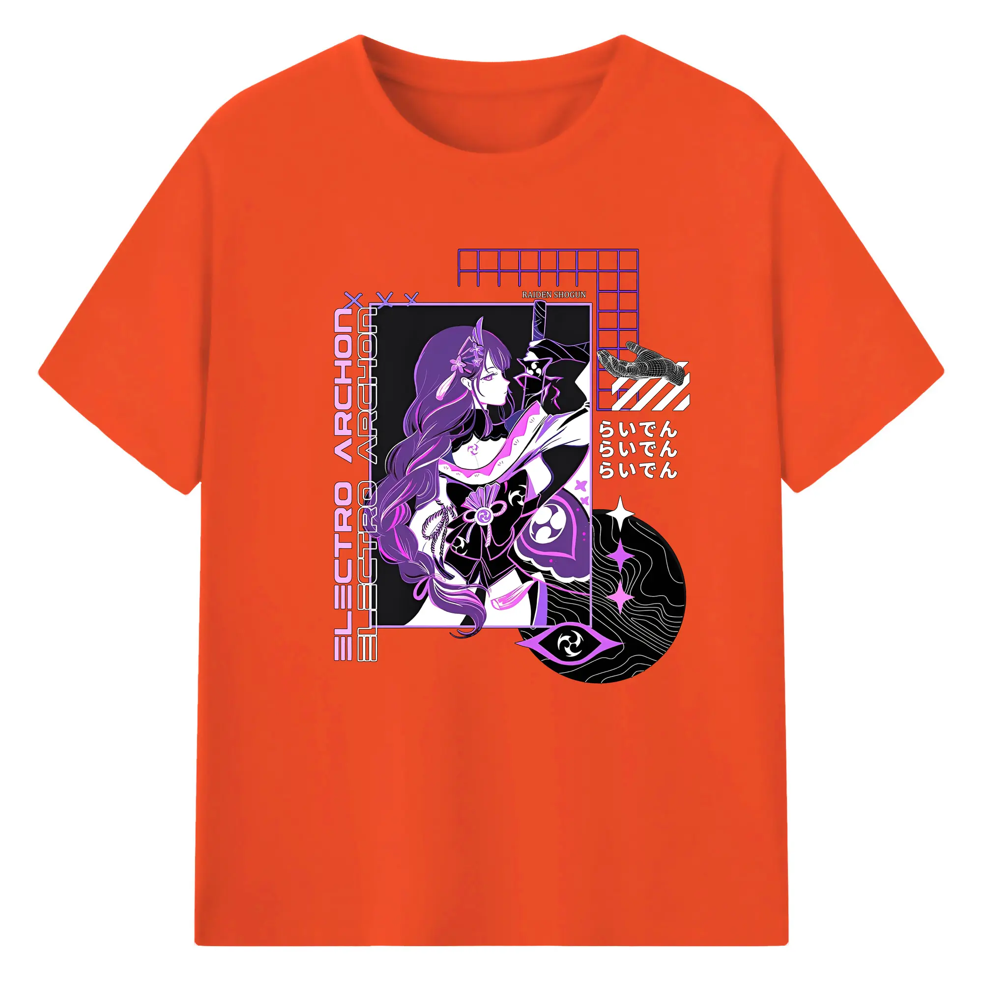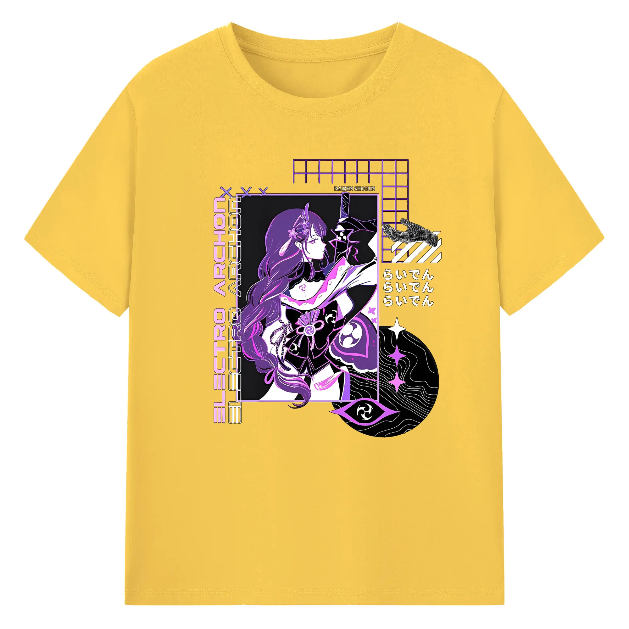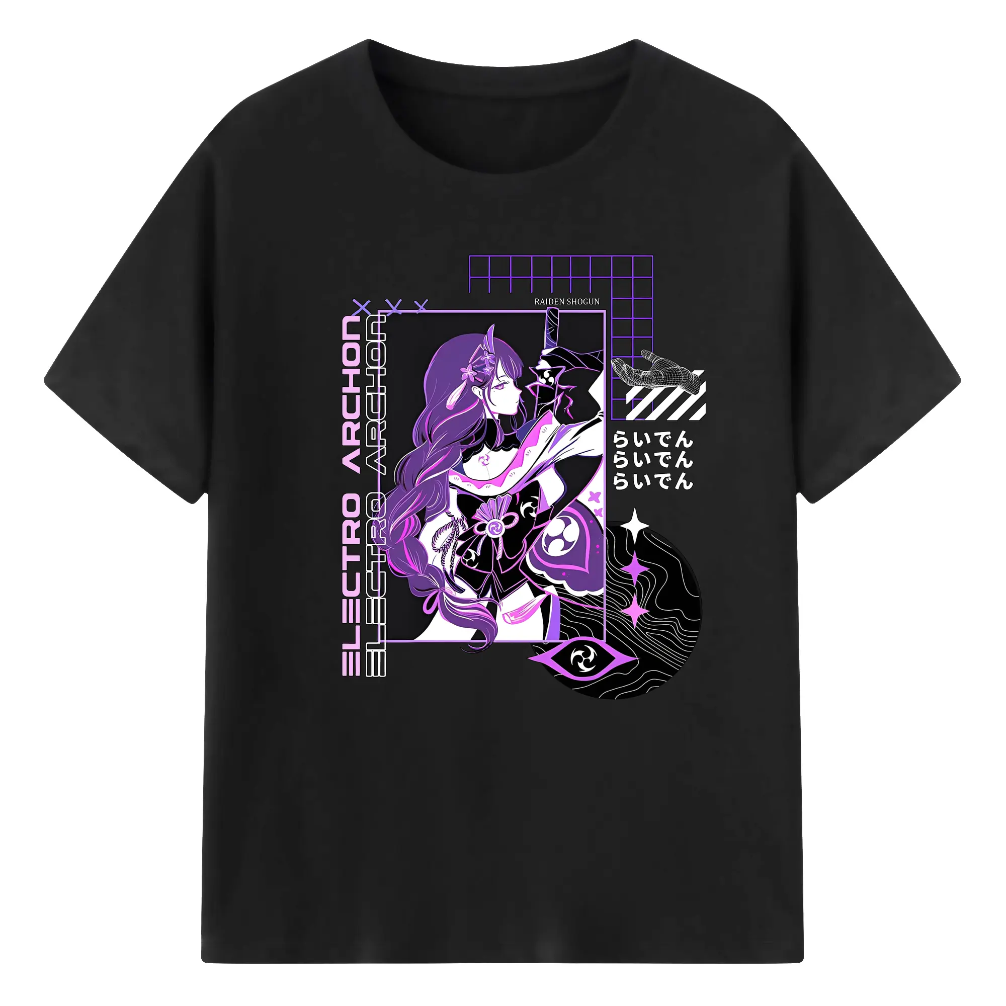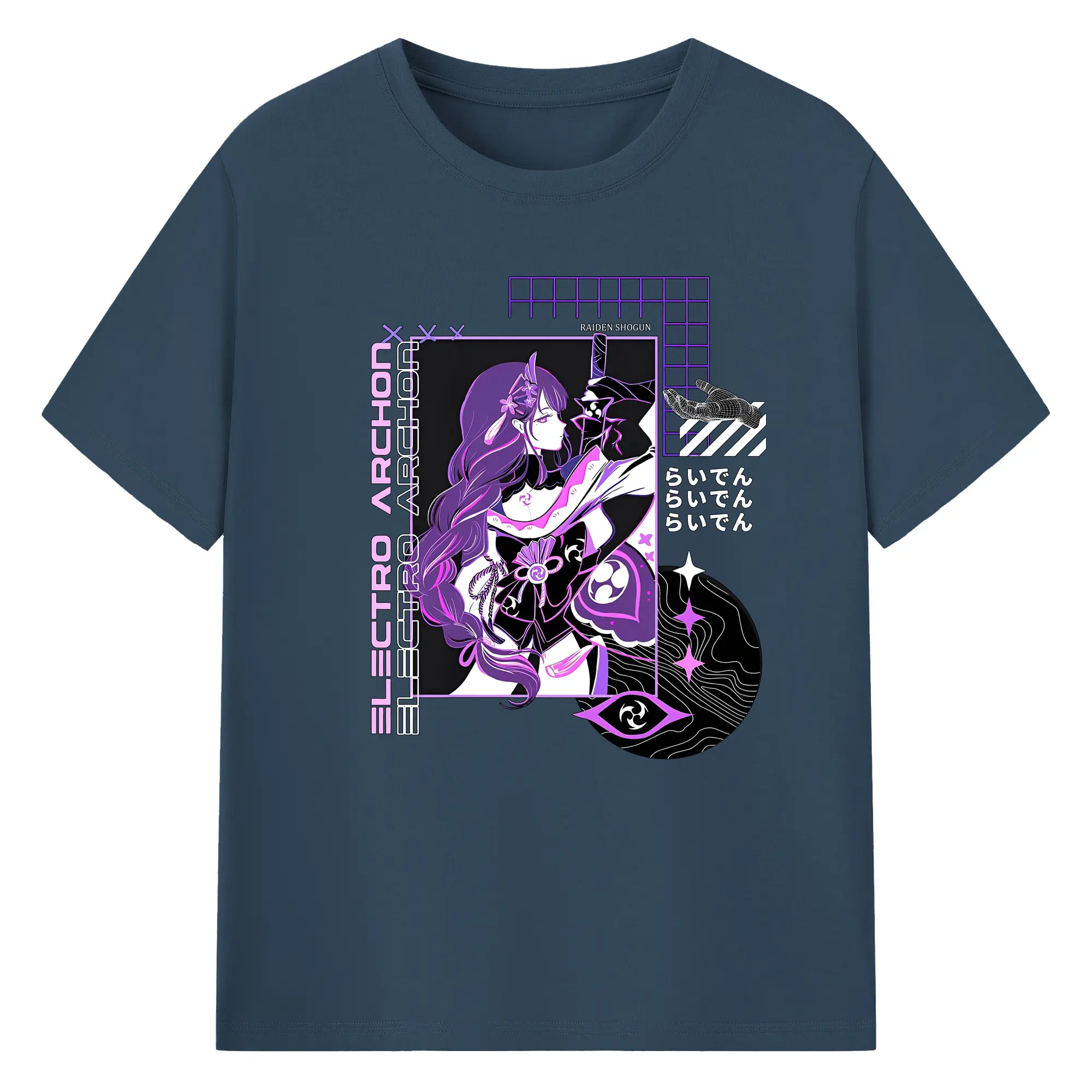 神 Raiden Shogun ファン必見!カッコいいデザイン - 綿100% ヴィンテージ風 半袖Tシャツ ・ フロントプリント ・ 柔らか肌触り ・ 通気性 快適 ・ スポーツ カジュアル 外出用