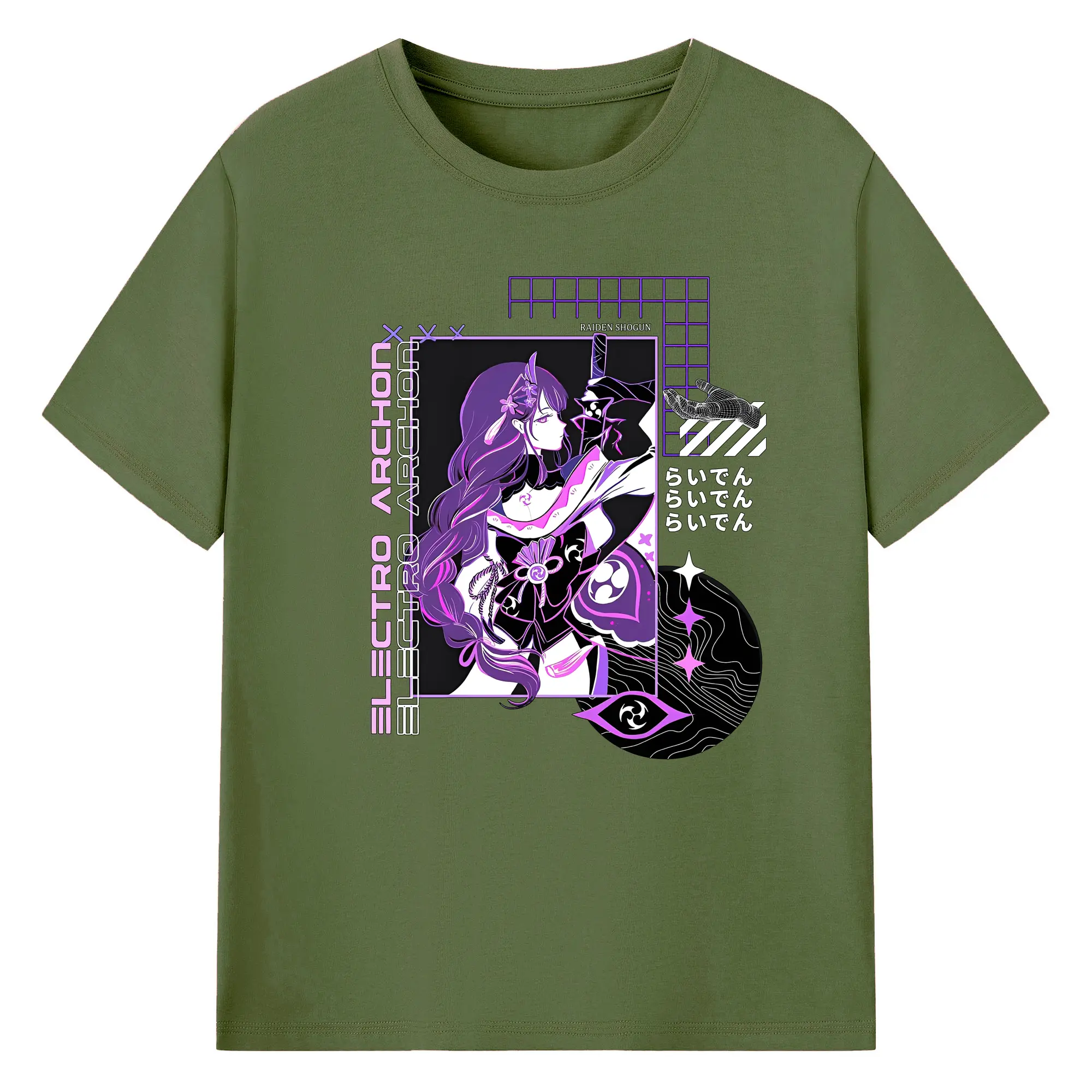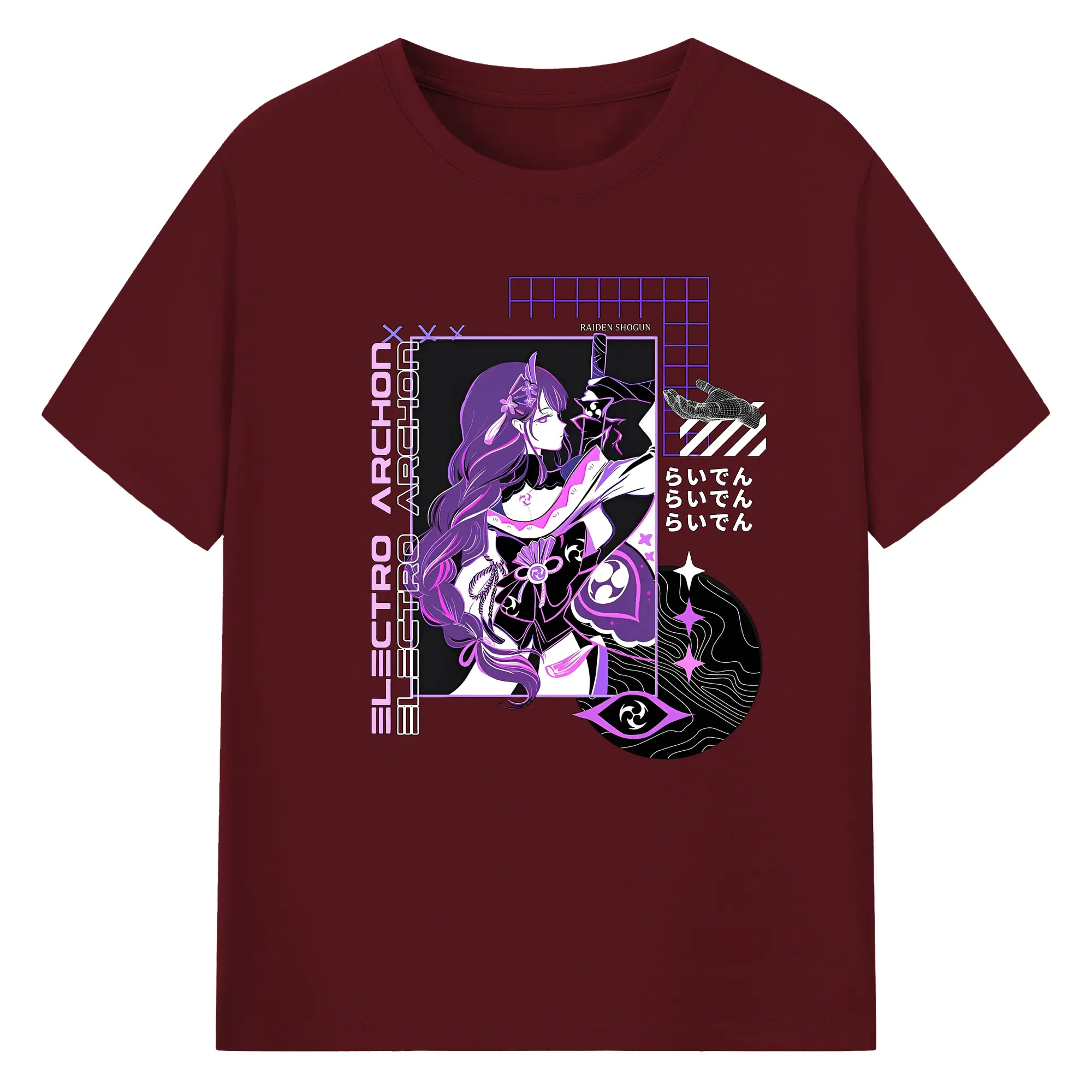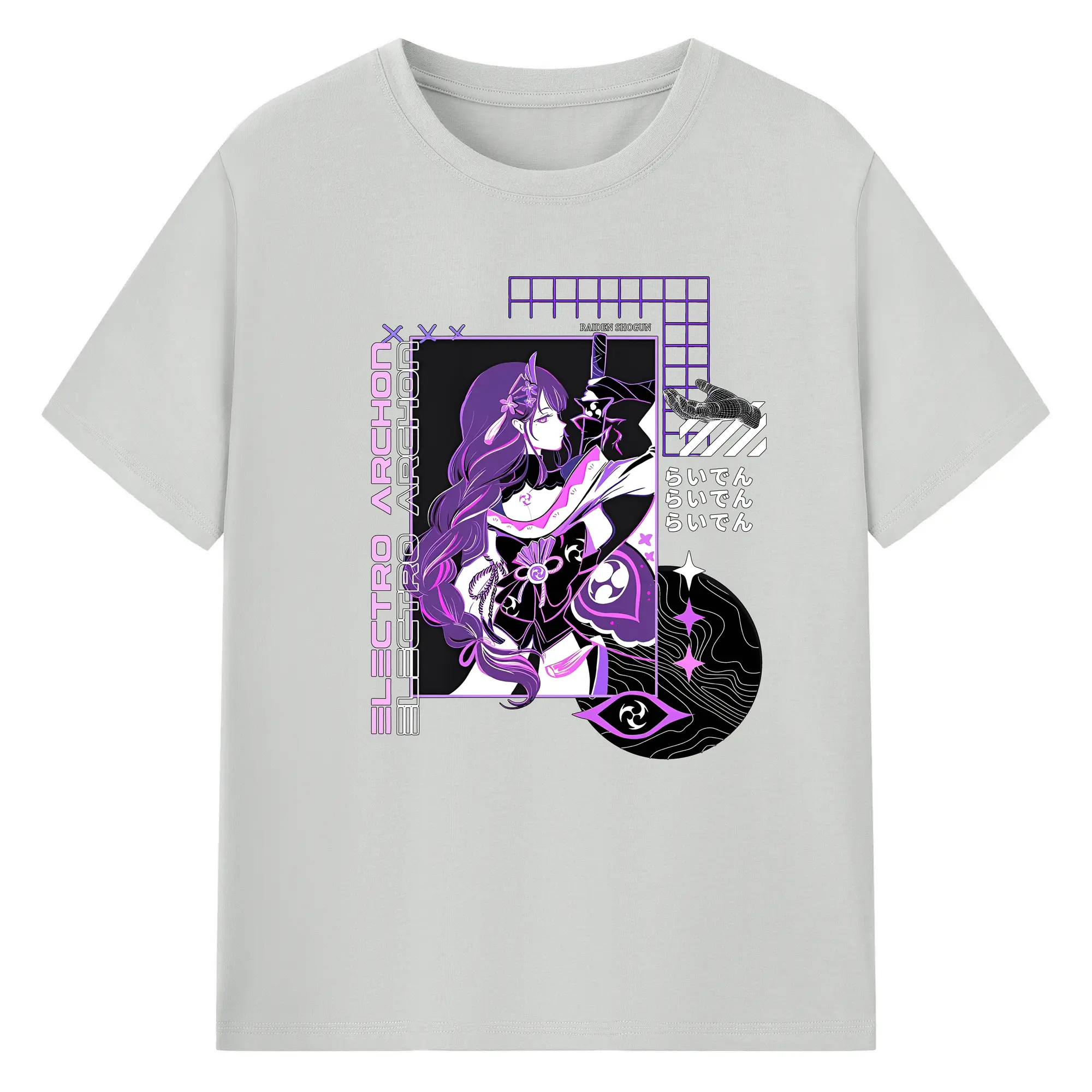 神 Raiden Shogun ファン必見!カッコいいデザイン - 綿100% ヴィンテージ風 半袖Tシャツ ・ フロントプリント ・ 柔らか肌触り ・ 通気性 快適 ・ スポーツ カジュアル 外出用