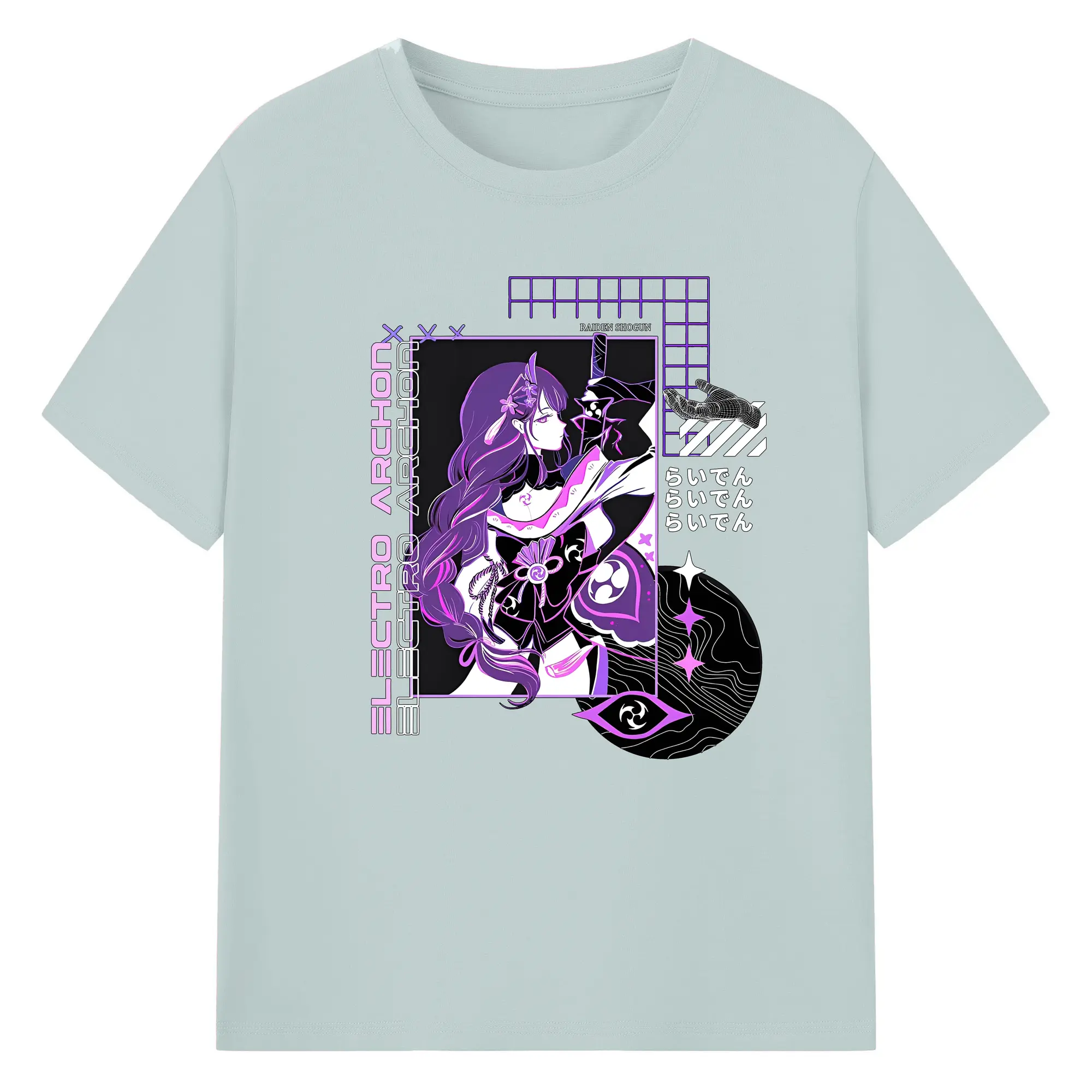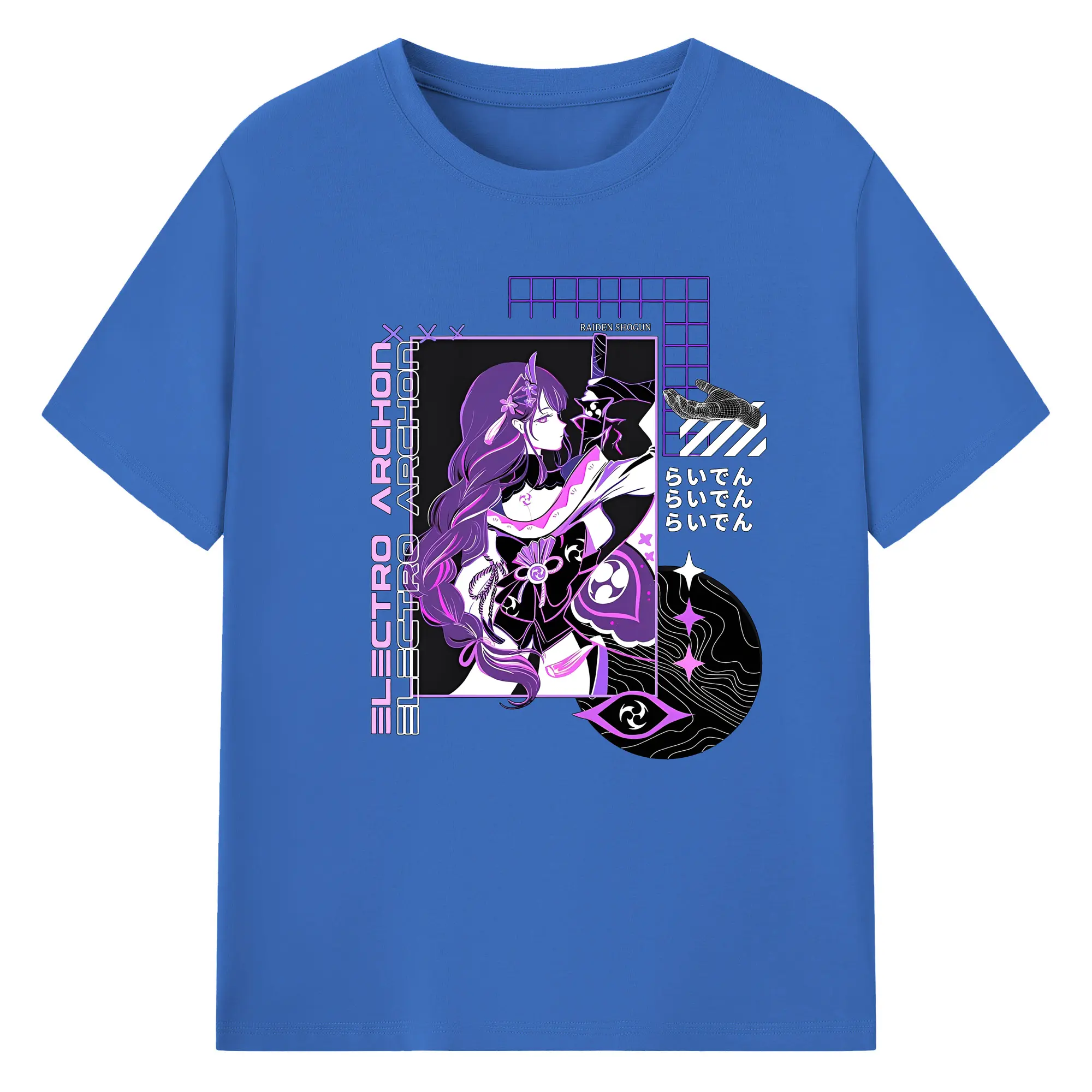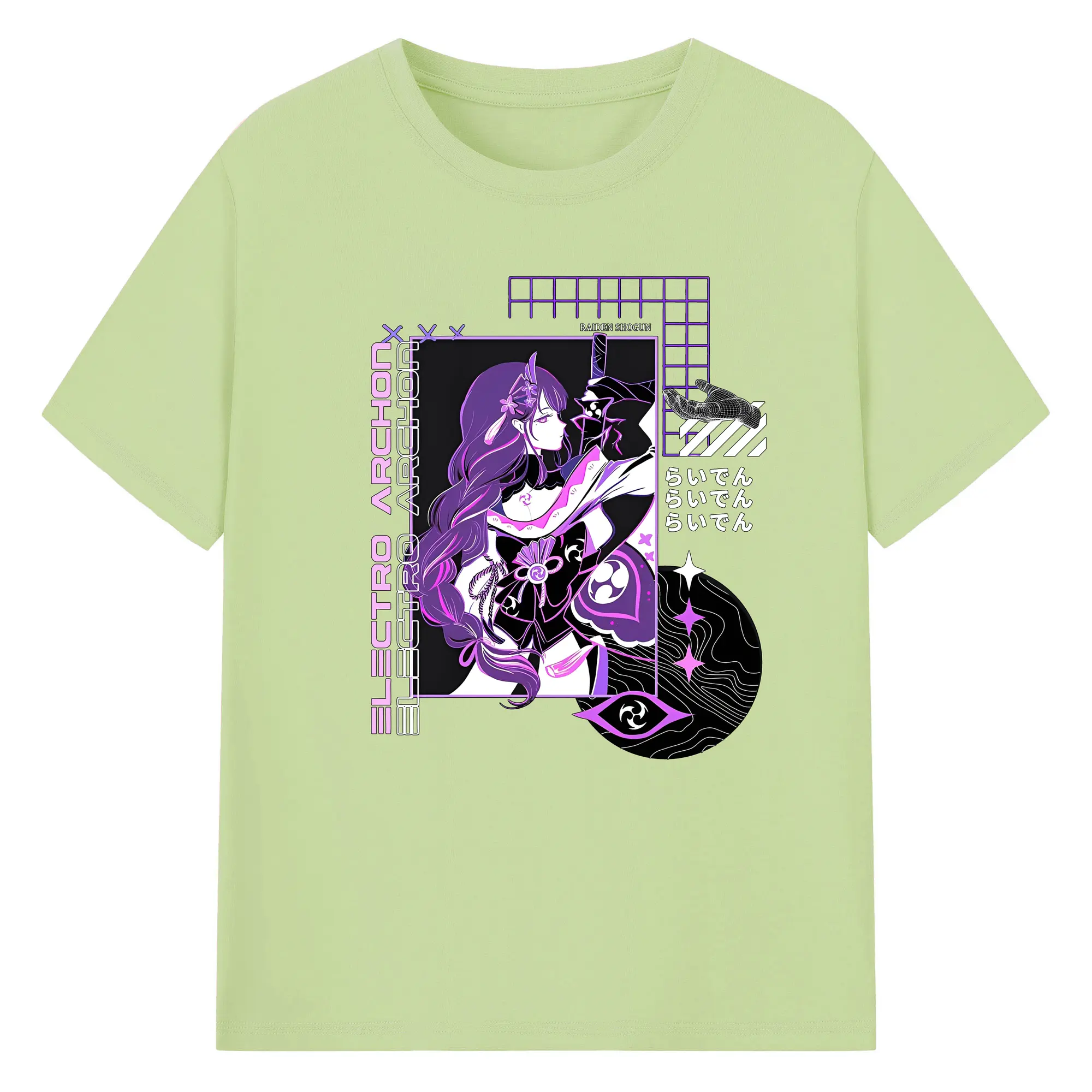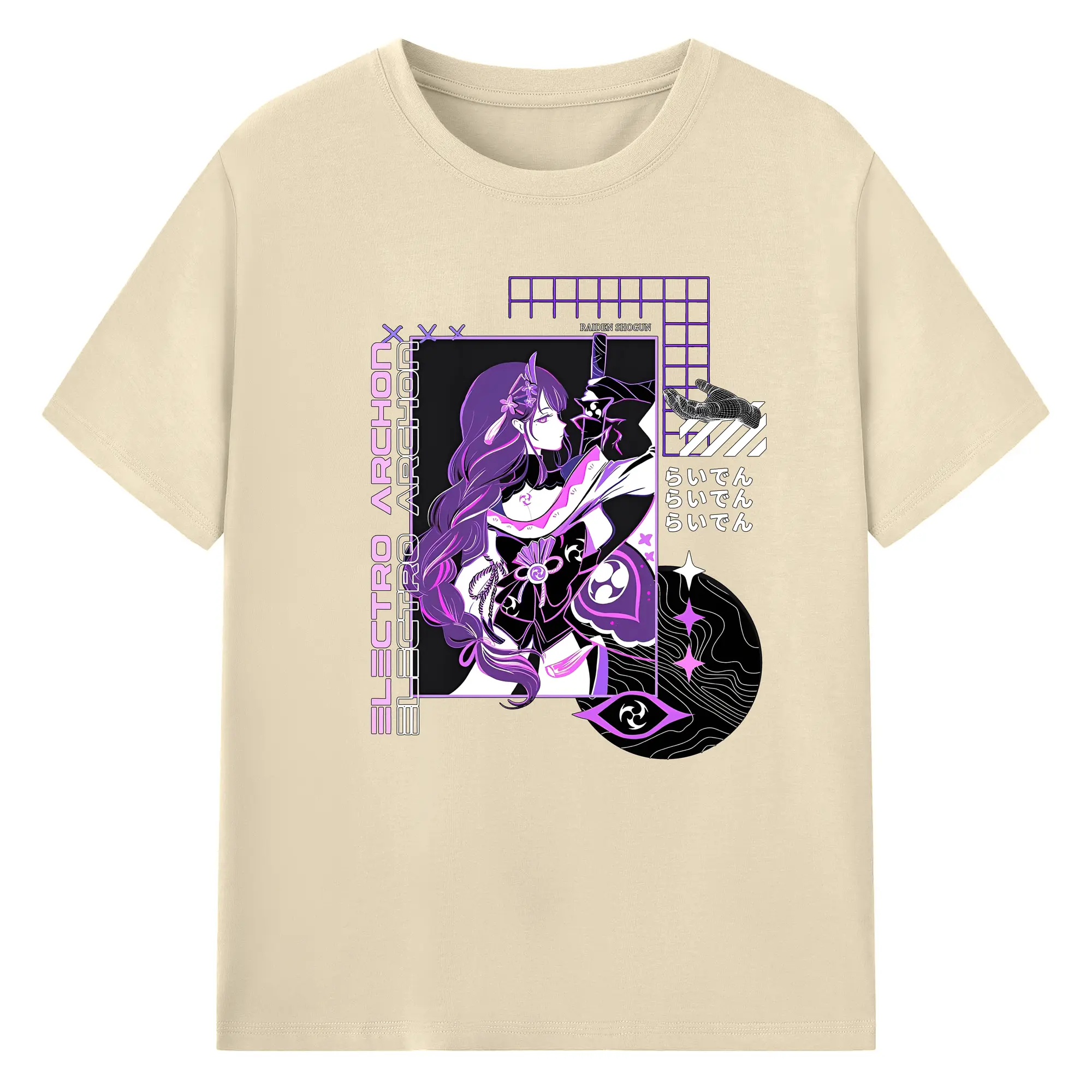 神 Raiden Shogun ファン必見!カッコいいデザイン - 綿100% ヴィンテージ風 半袖Tシャツ ・ フロントプリント ・ 柔らか肌触り ・ 通気性 快適 ・ スポーツ カジュアル 外出用
