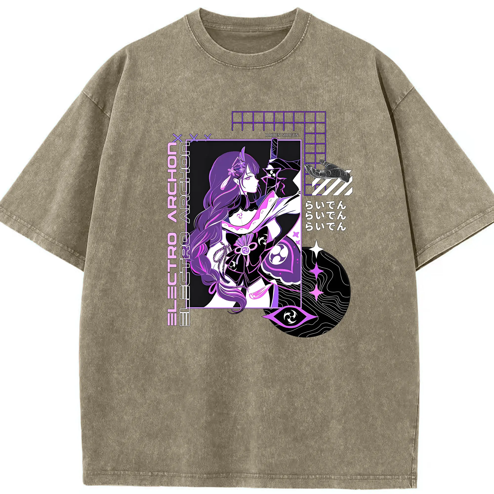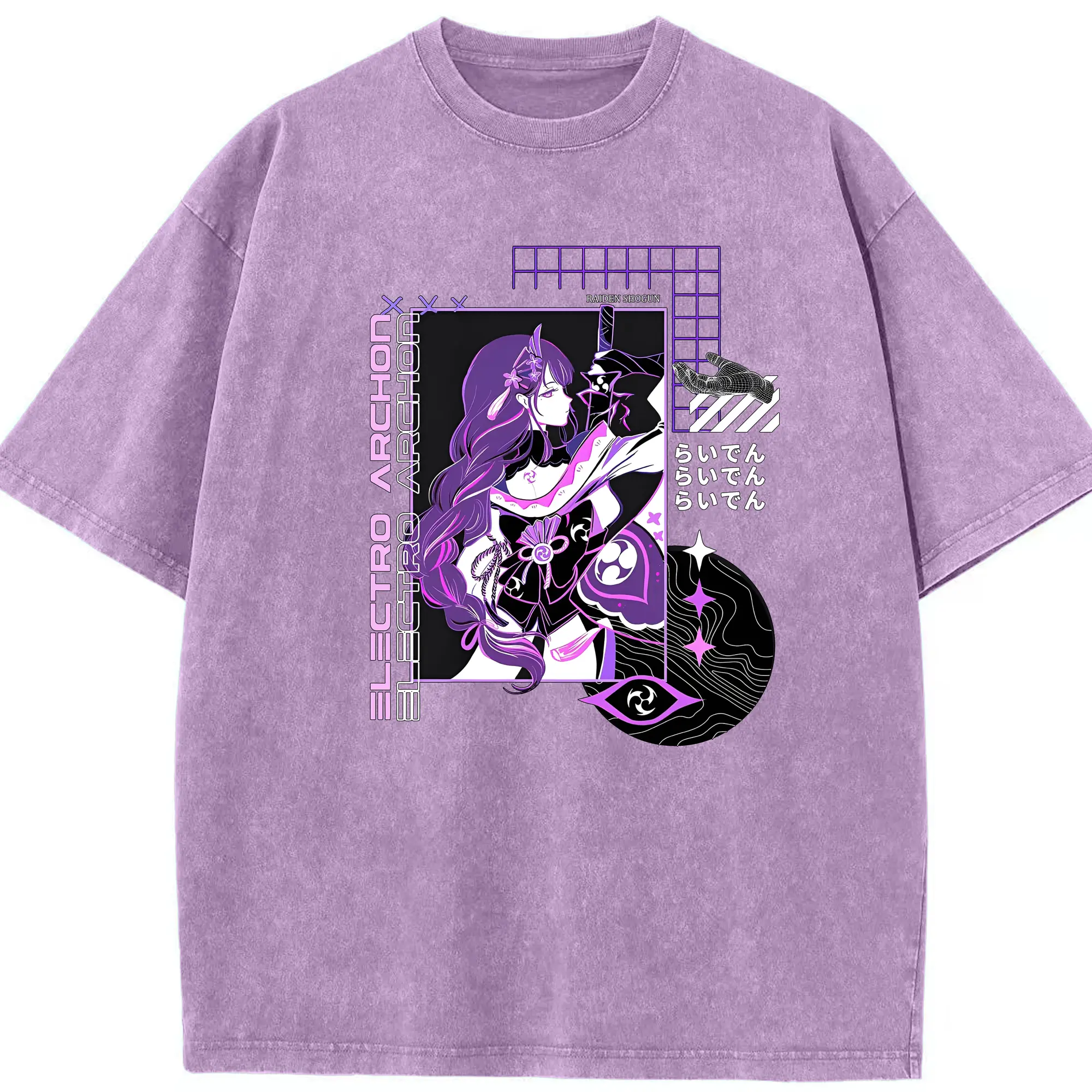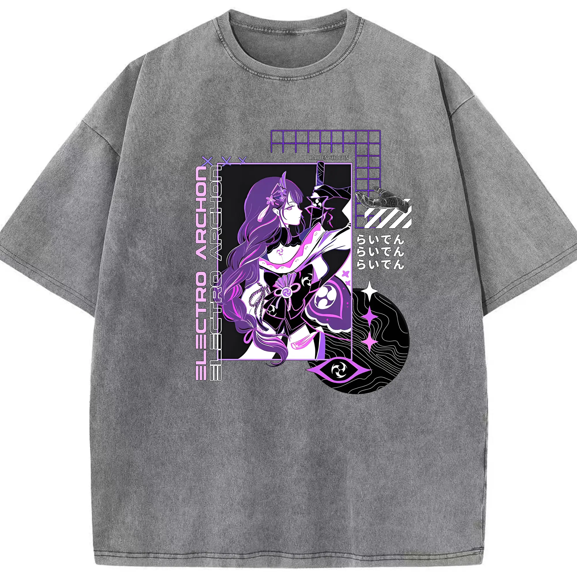 神 Raiden Shogun ファン必見!カッコいいデザイン - 綿100% 半袖Tシャツ ・ フロントプリント ・ 快適 通気性 ・ 日常使い 散歩 スポーツ用