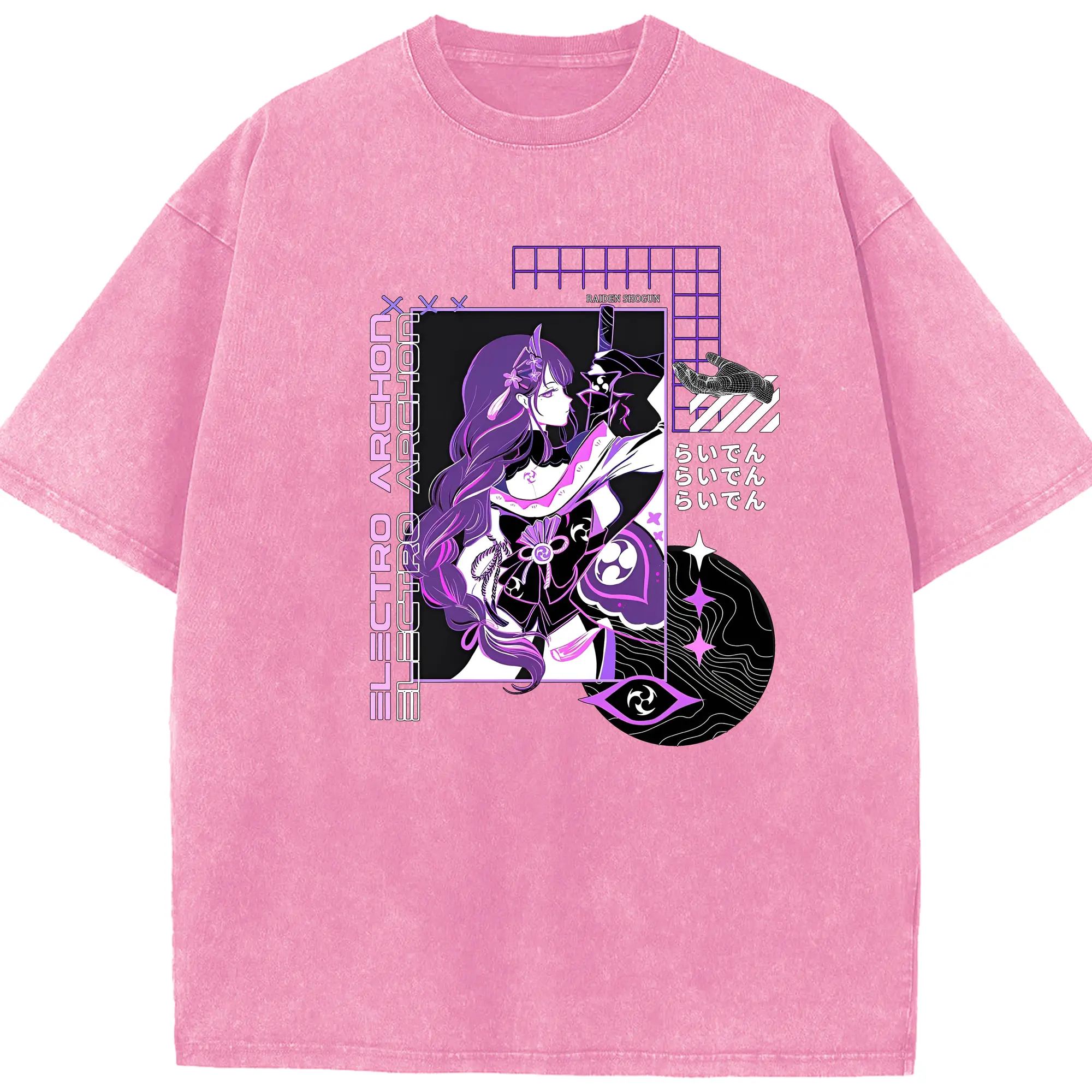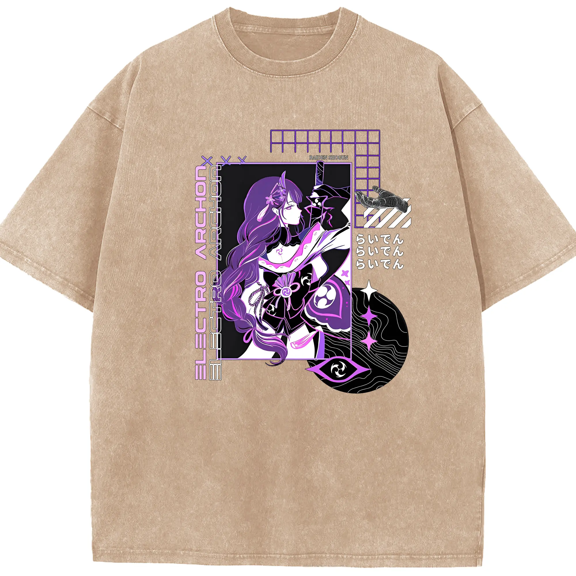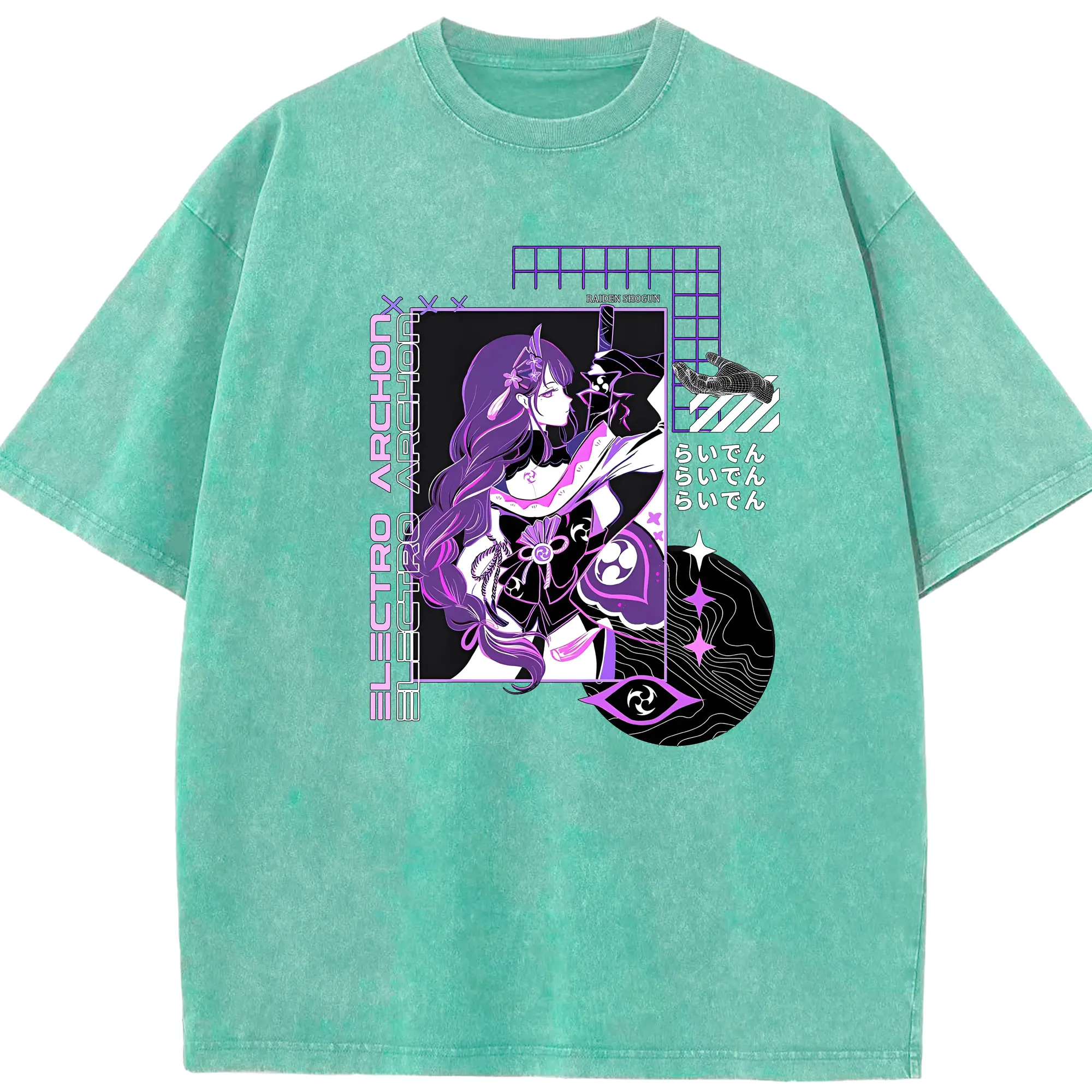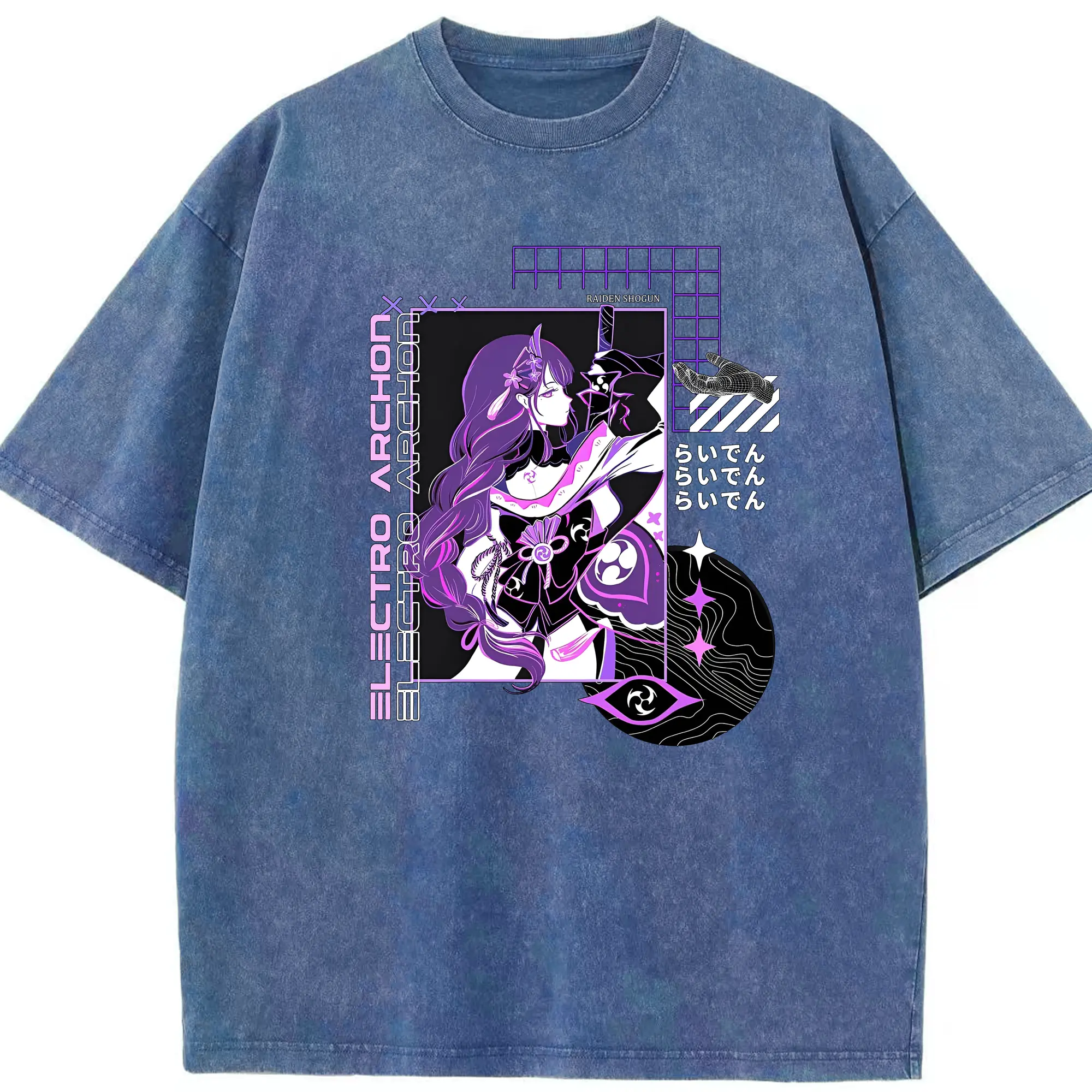 神 Raiden Shogun ファン必見!カッコいいデザイン - 綿100% 半袖Tシャツ ・ フロントプリント ・ 快適 通気性 ・ 日常使い 散歩 スポーツ用