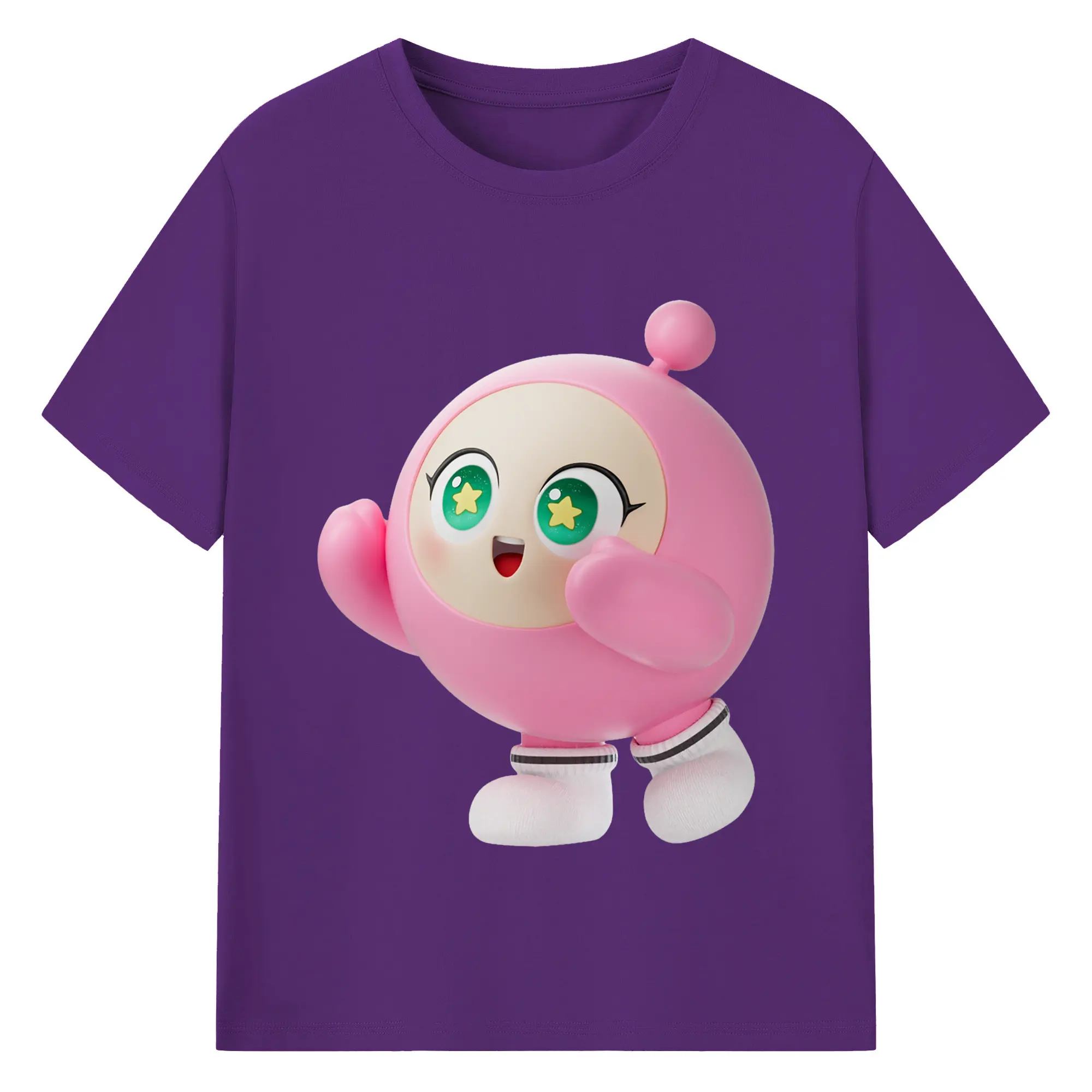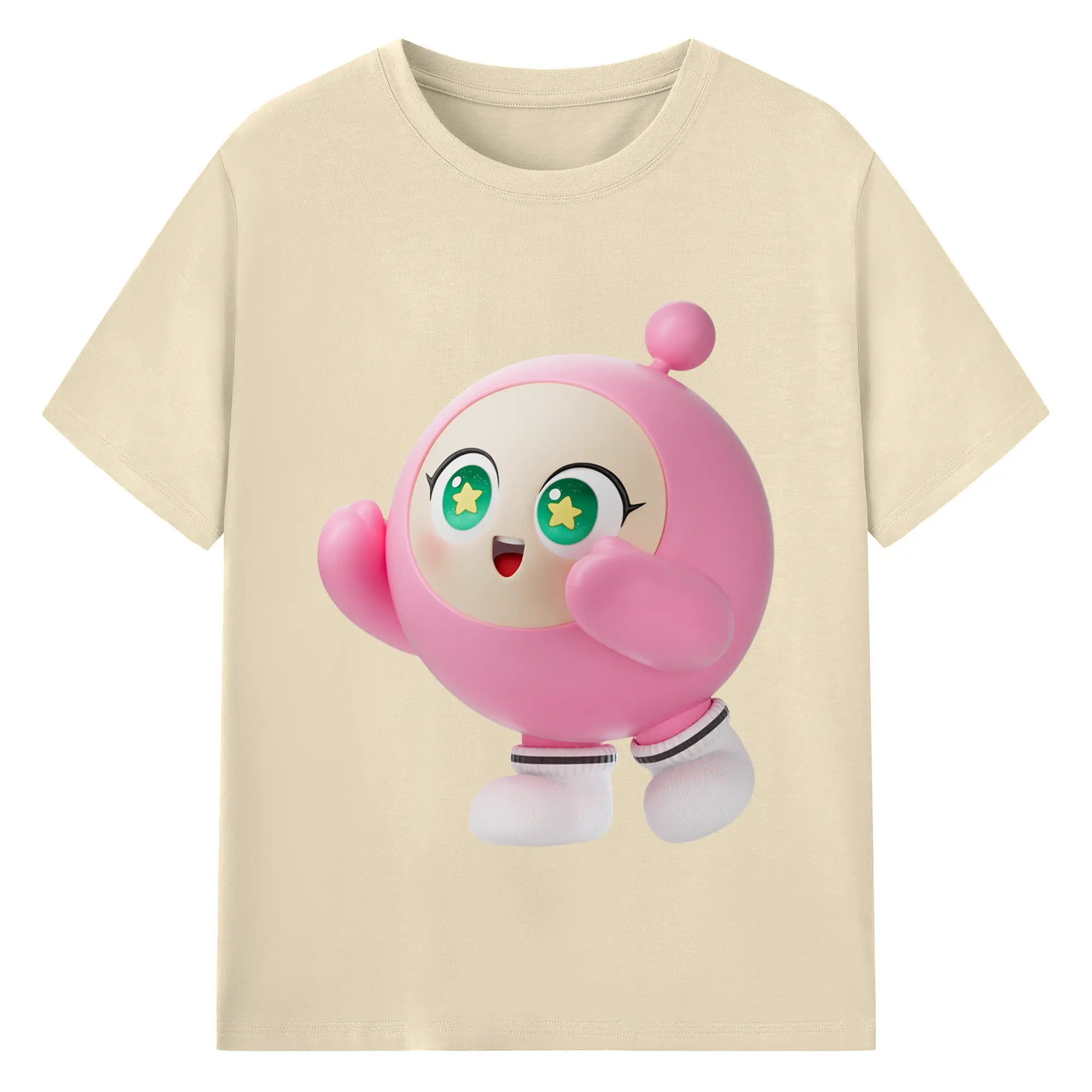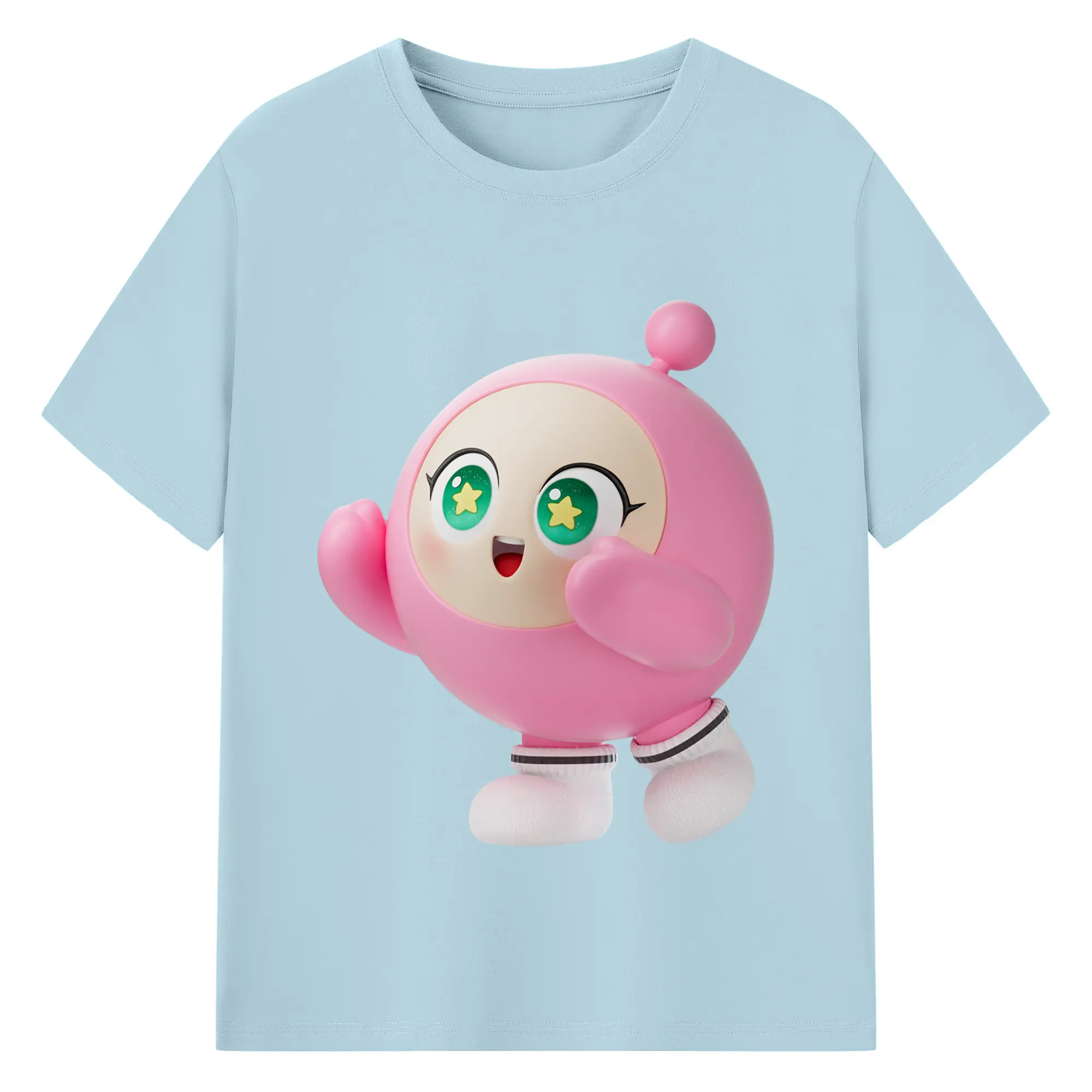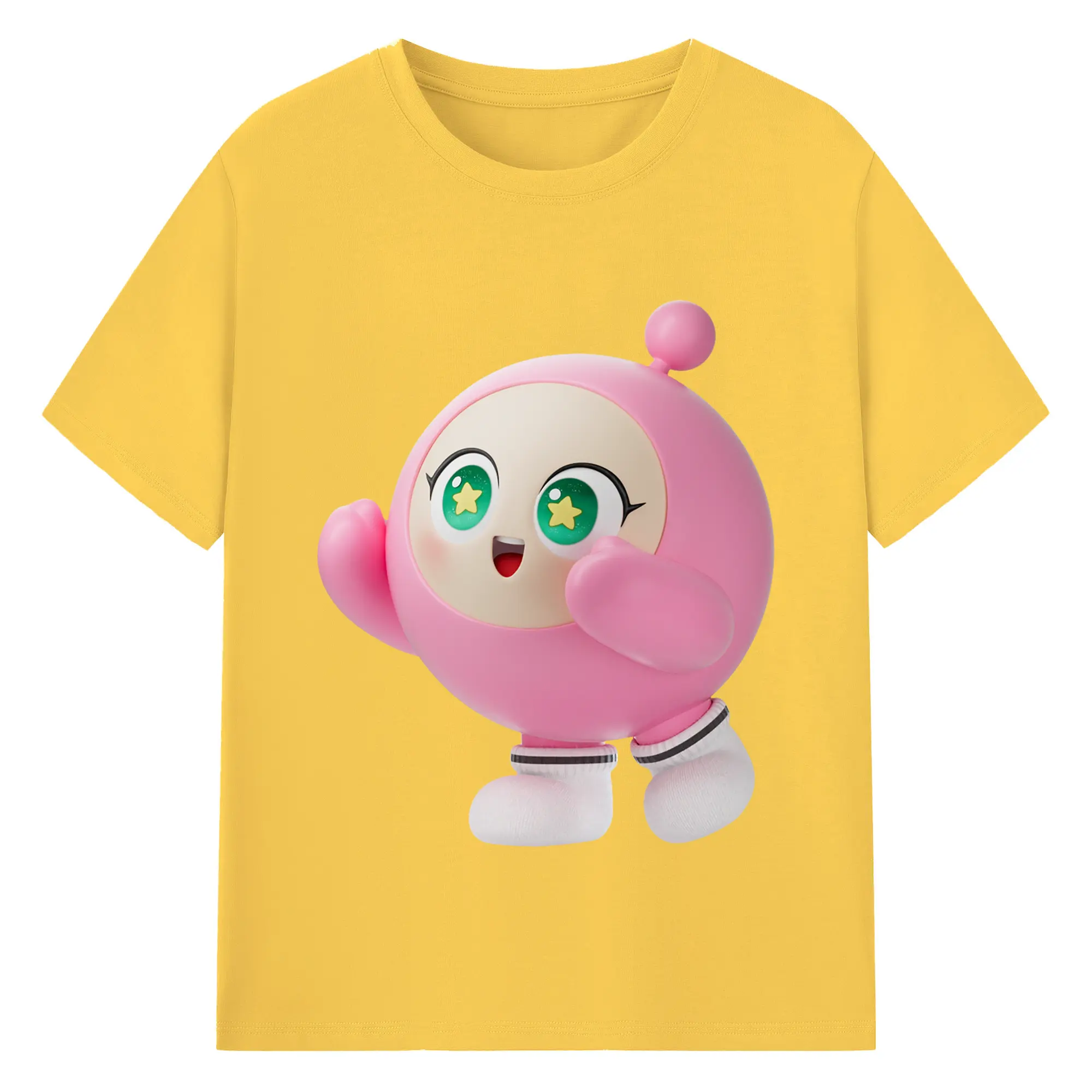 蛋仔パーティー 蛋小粉 キャラクター 可愛いゲームファン向けアイテム - 綿100% ヴィンテージ風 半袖Tシャツ ・ フロントプリント ・ 柔らか肌触り ・ 通気性 快適 ・ スポーツ カジュアル 外出用
