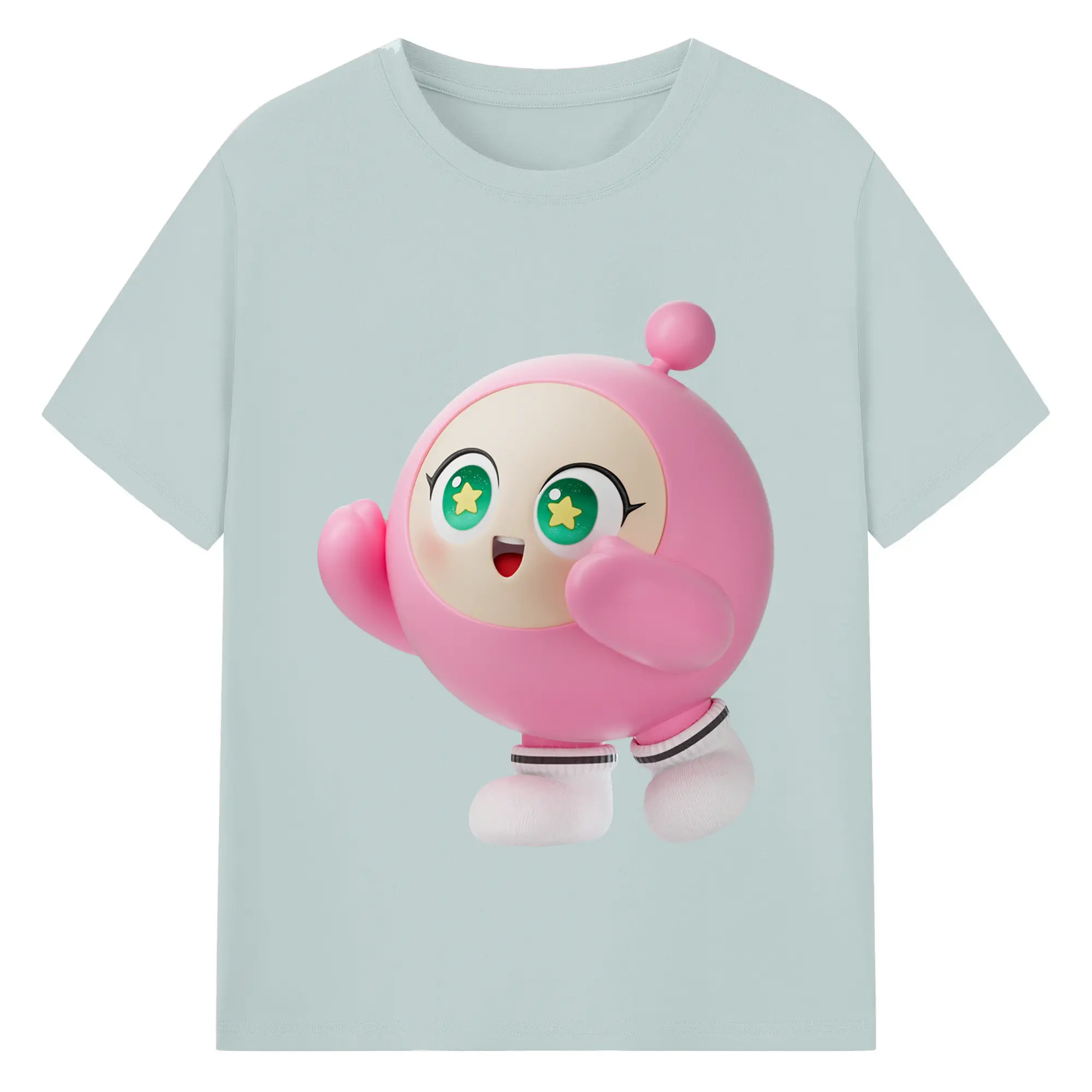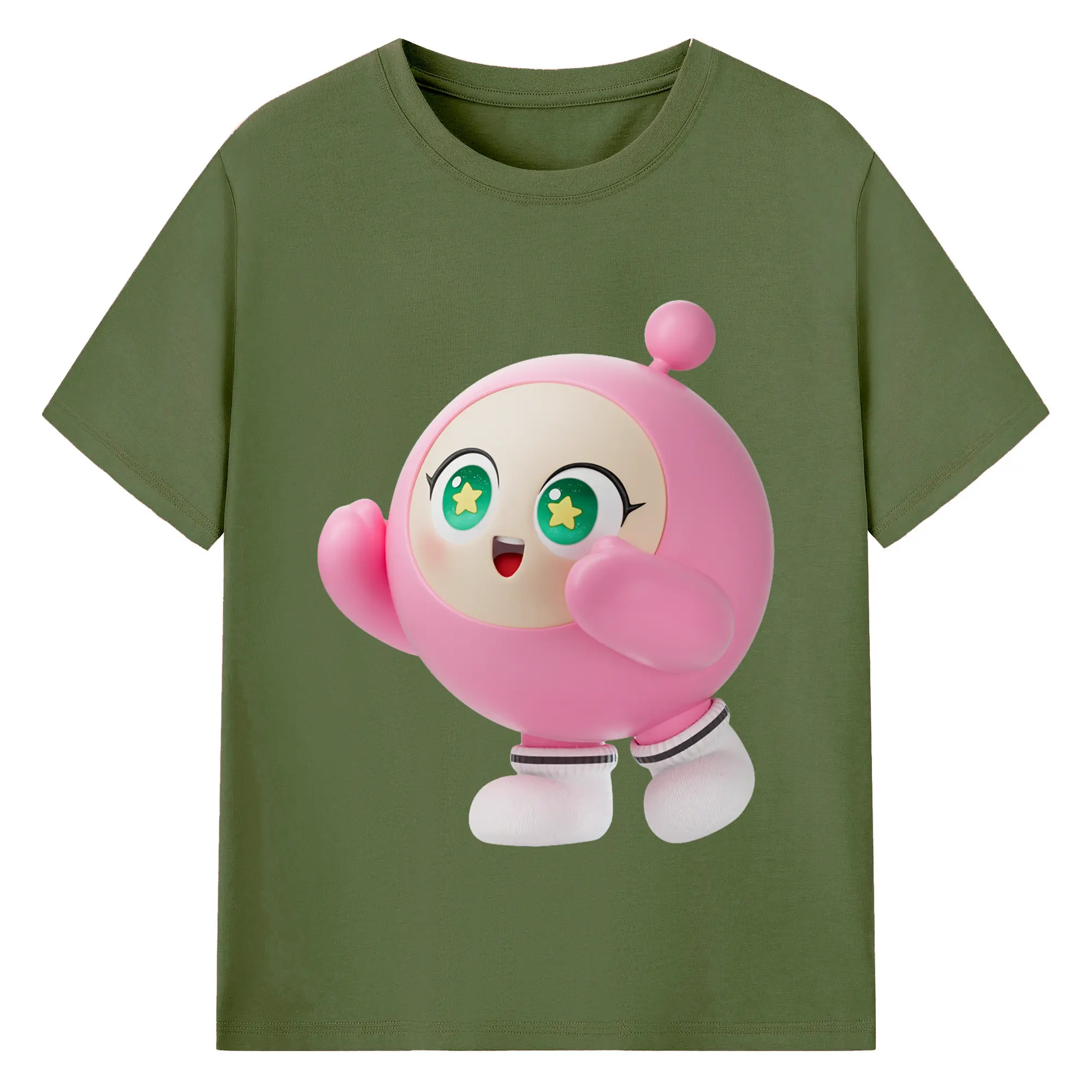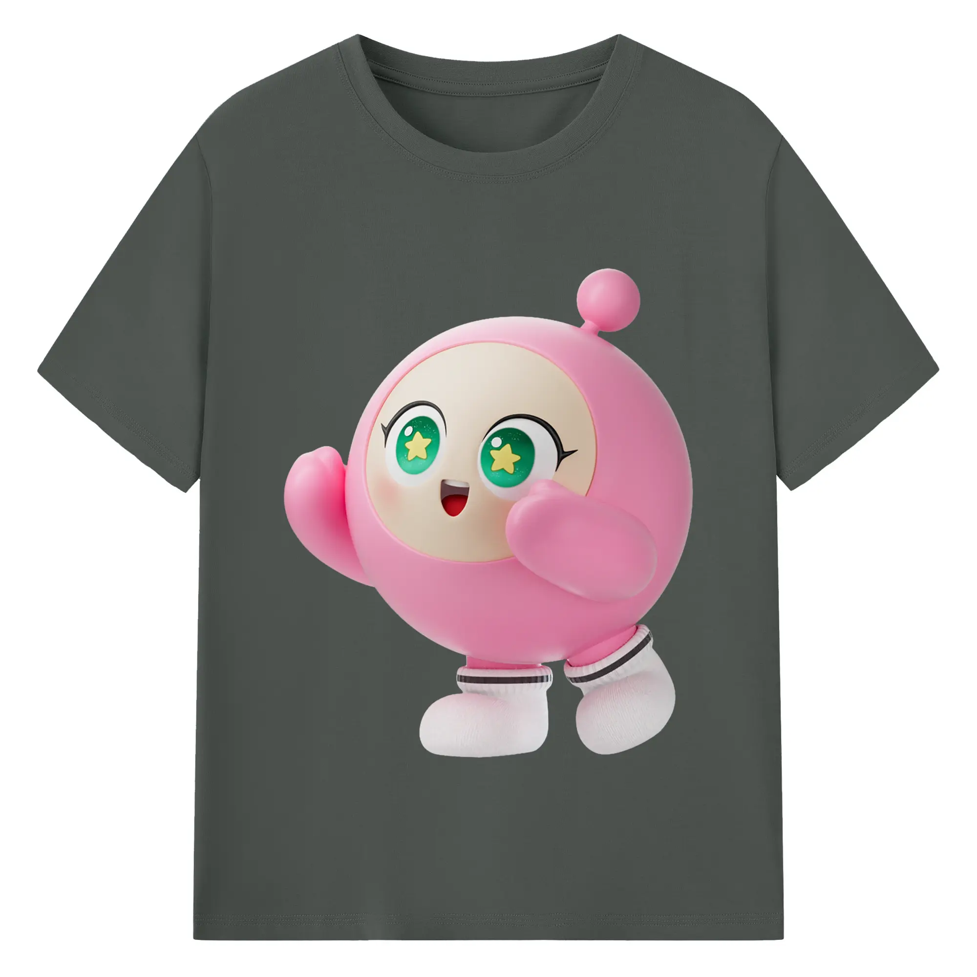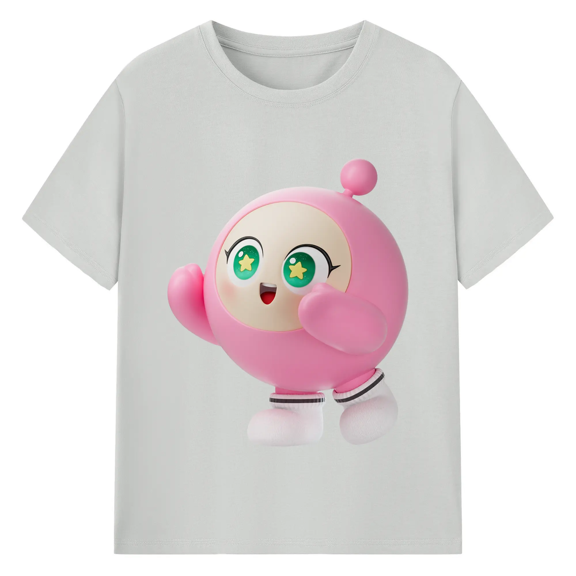 蛋仔パーティー 蛋小粉 キャラクター 可愛いゲームファン向けアイテム - 綿100% ヴィンテージ風 半袖Tシャツ ・ フロントプリント ・ 柔らか肌触り ・ 通気性 快適 ・ スポーツ カジュアル 外出用