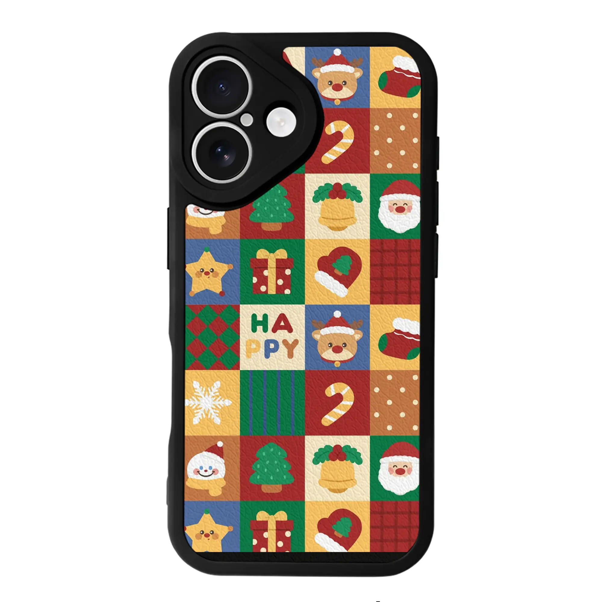 赤チェック柄クリスマス|冬コーデにぴったり - IPhone 16シリーズ対応 ・ シリコンスマホケース ・ レザー調 ・ 高精度フィット ・ 耐衝撃 ・ ワイヤレス充電対応 ・ 精密カット