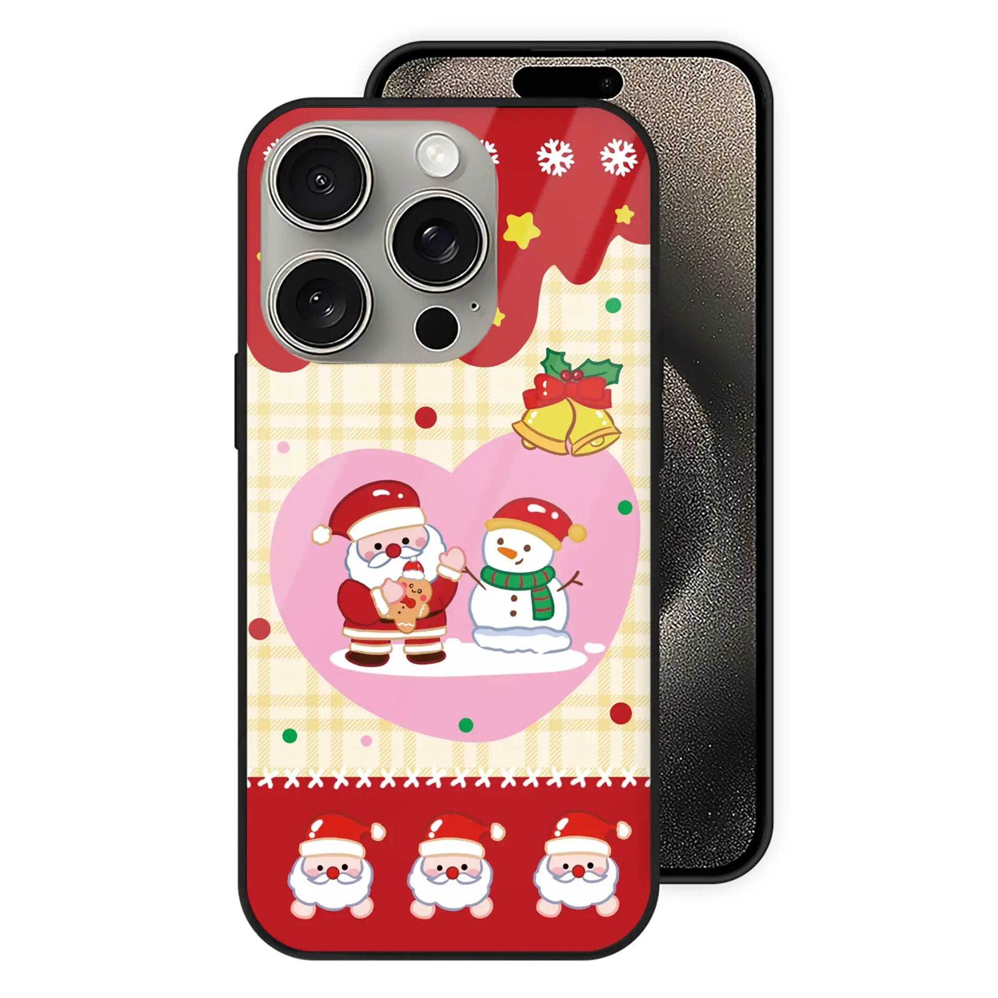 赤×白サンタカラー|クリスマス感UP - IPhone15Pro対応 ・ スマホケース ・ 背面ガラス ・ TPU+強化ガラス ・ 耐衝撃 ・ 黄変防止 ・ ワイヤレス充電対応 ・ 3D立体ボタン