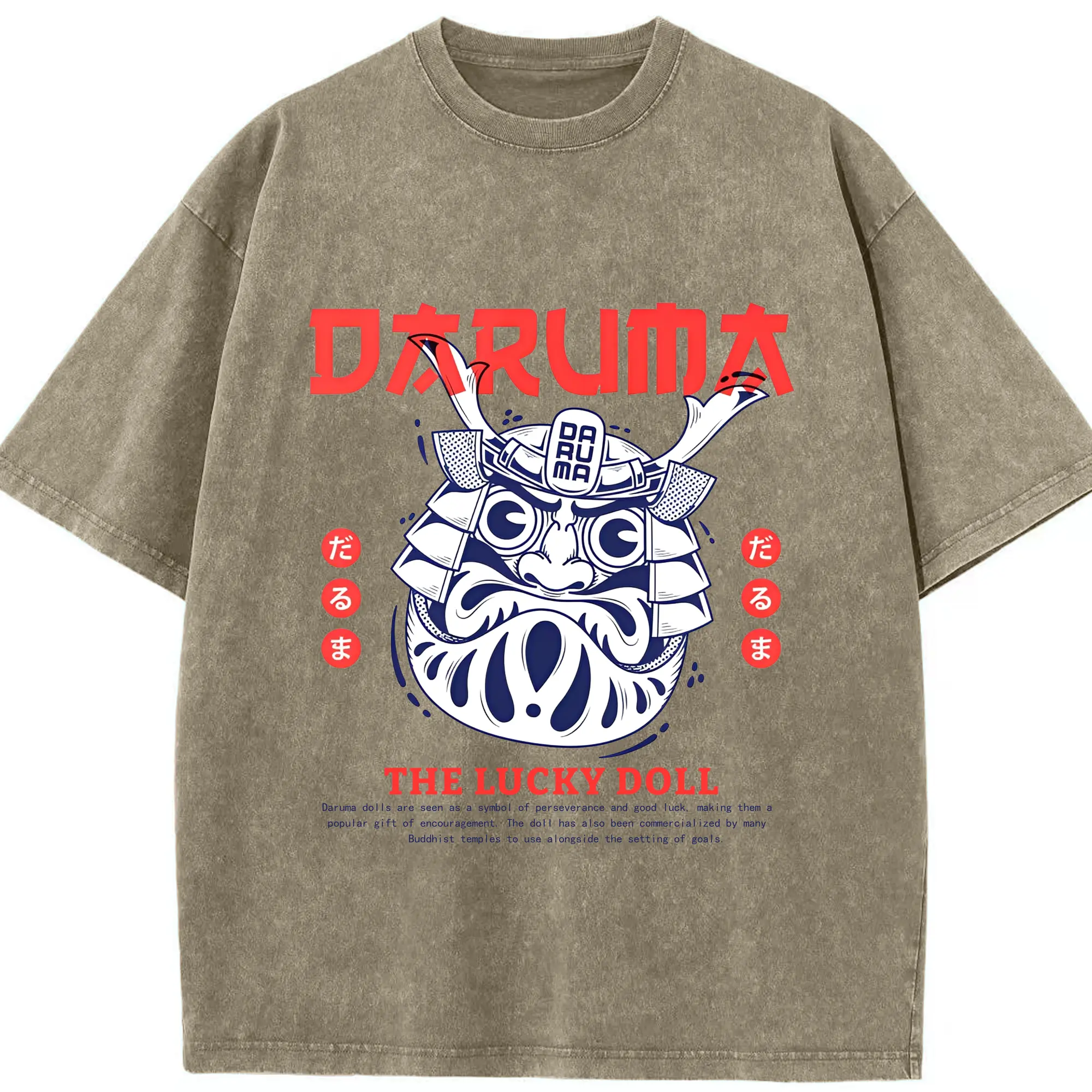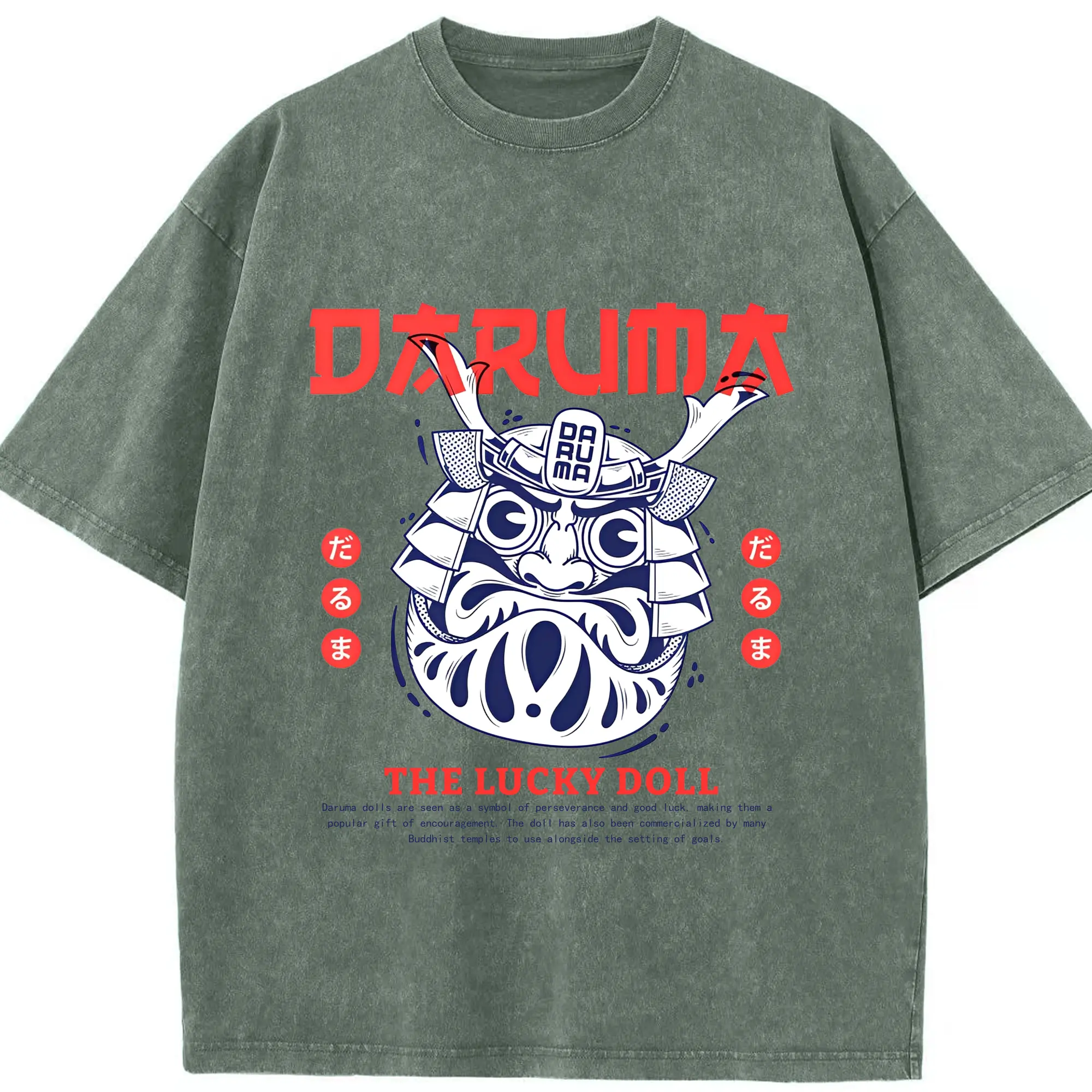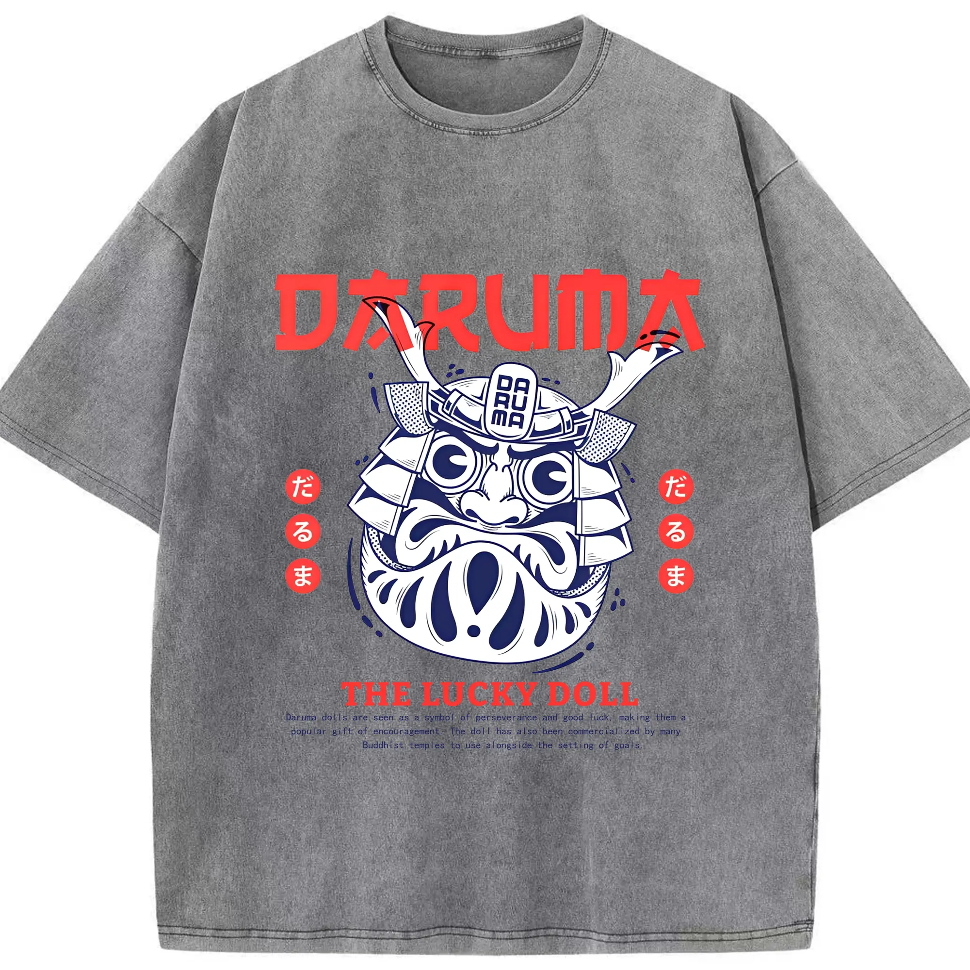 達磨×武士魂 勝負運アップ - 綿100% 半袖Tシャツ ・ フロントプリント ・ 快適 通気性 ・ 日常使い 散歩 スポーツ用