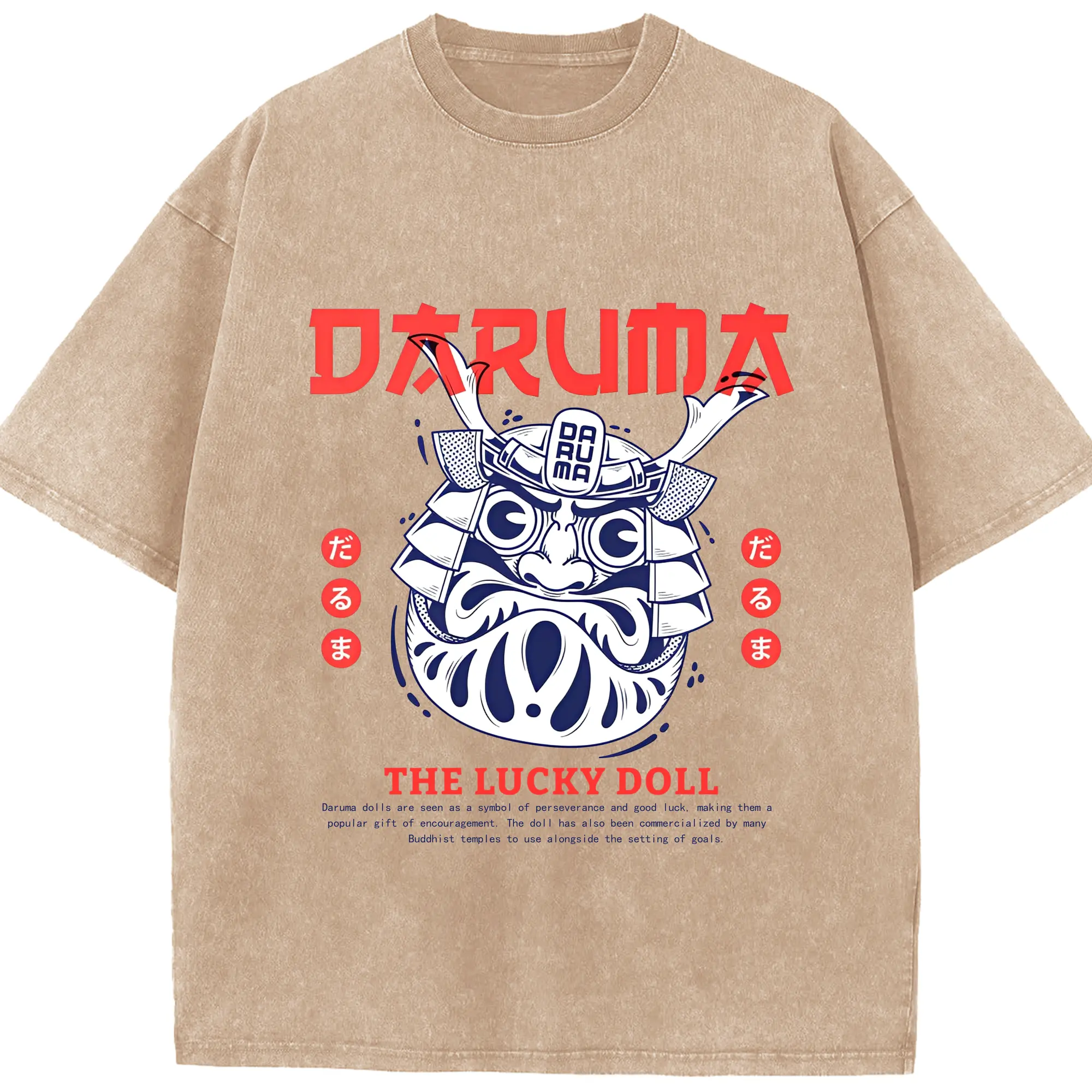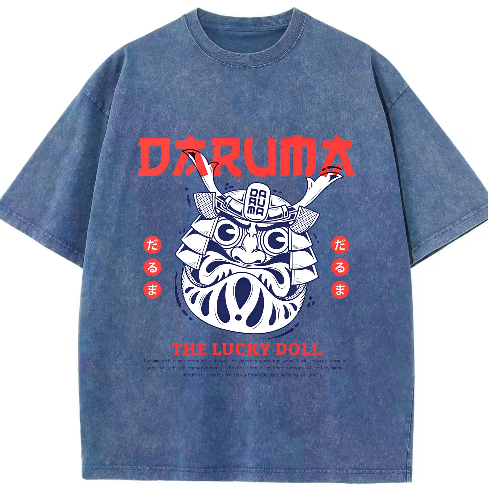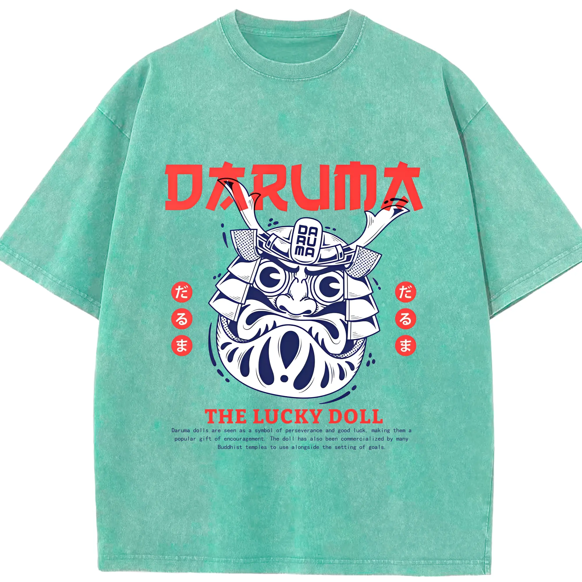 達磨×武士魂 勝負運アップ - 綿100% 半袖Tシャツ ・ フロントプリント ・ 快適 通気性 ・ 日常使い 散歩 スポーツ用
