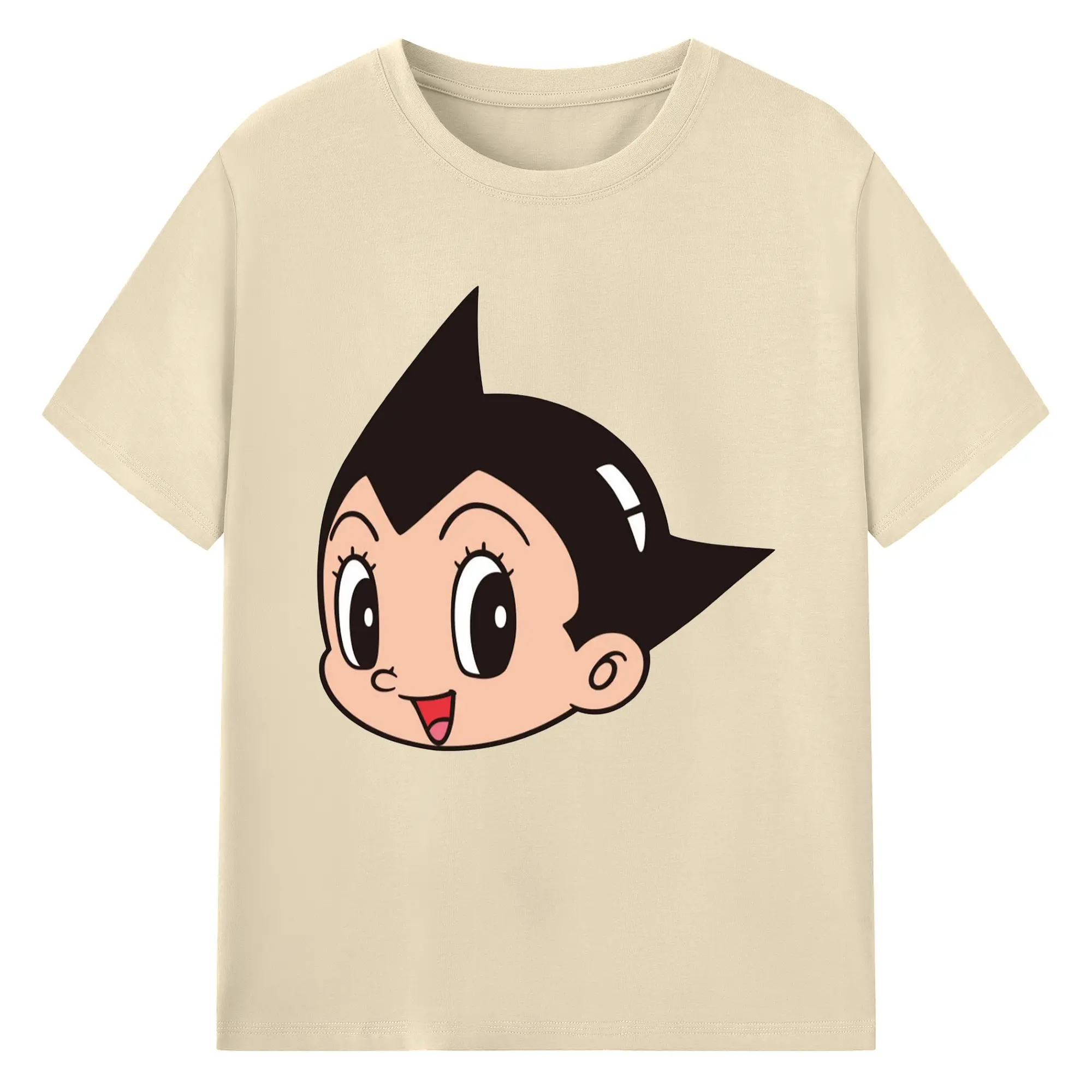 鉄腕アトムビッグフェイス - 綿100% ヴィンテージ風 半袖Tシャツ ・ フロントプリント ・ 柔らか肌触り ・ 通気性 快適 ・ スポーツ カジュアル 外出用