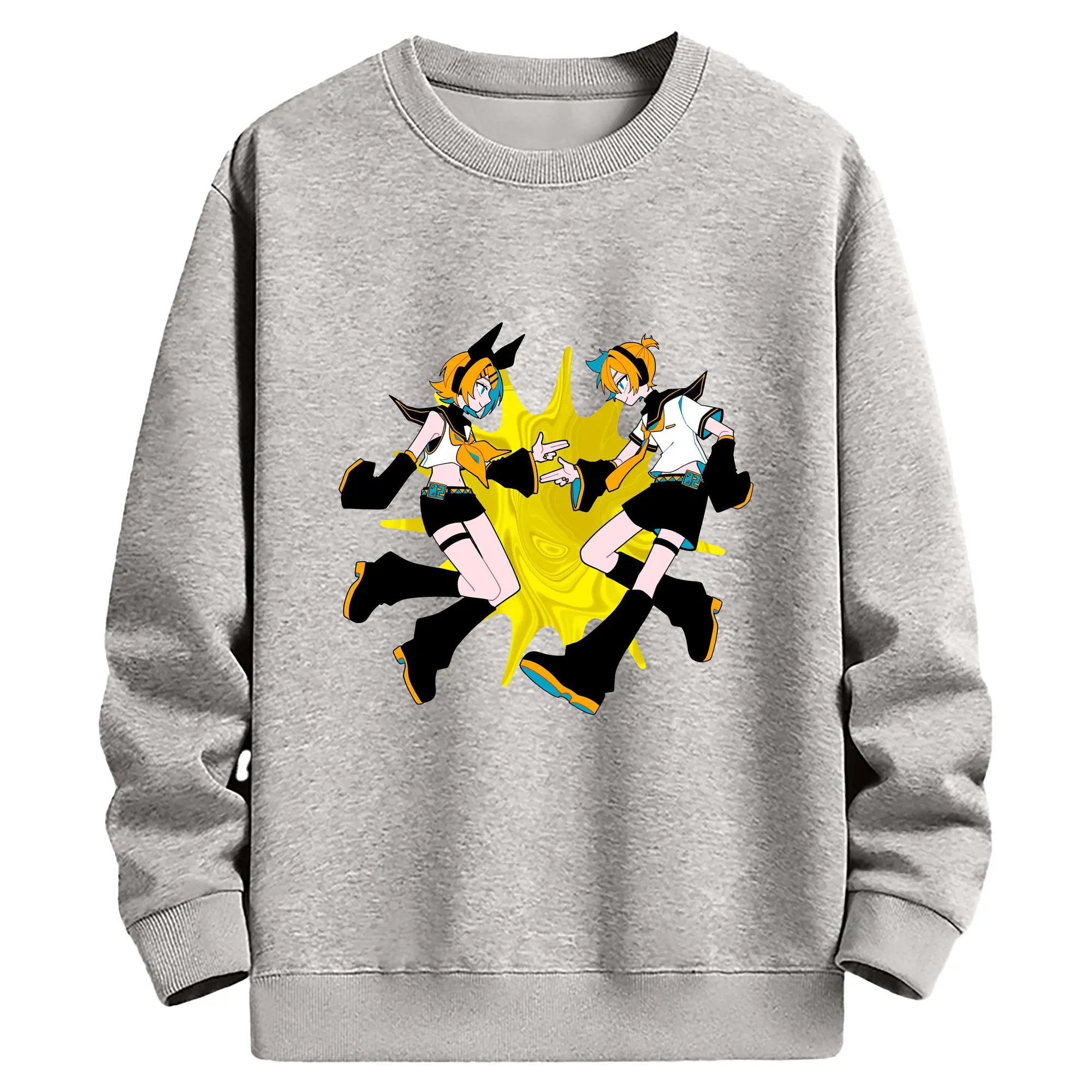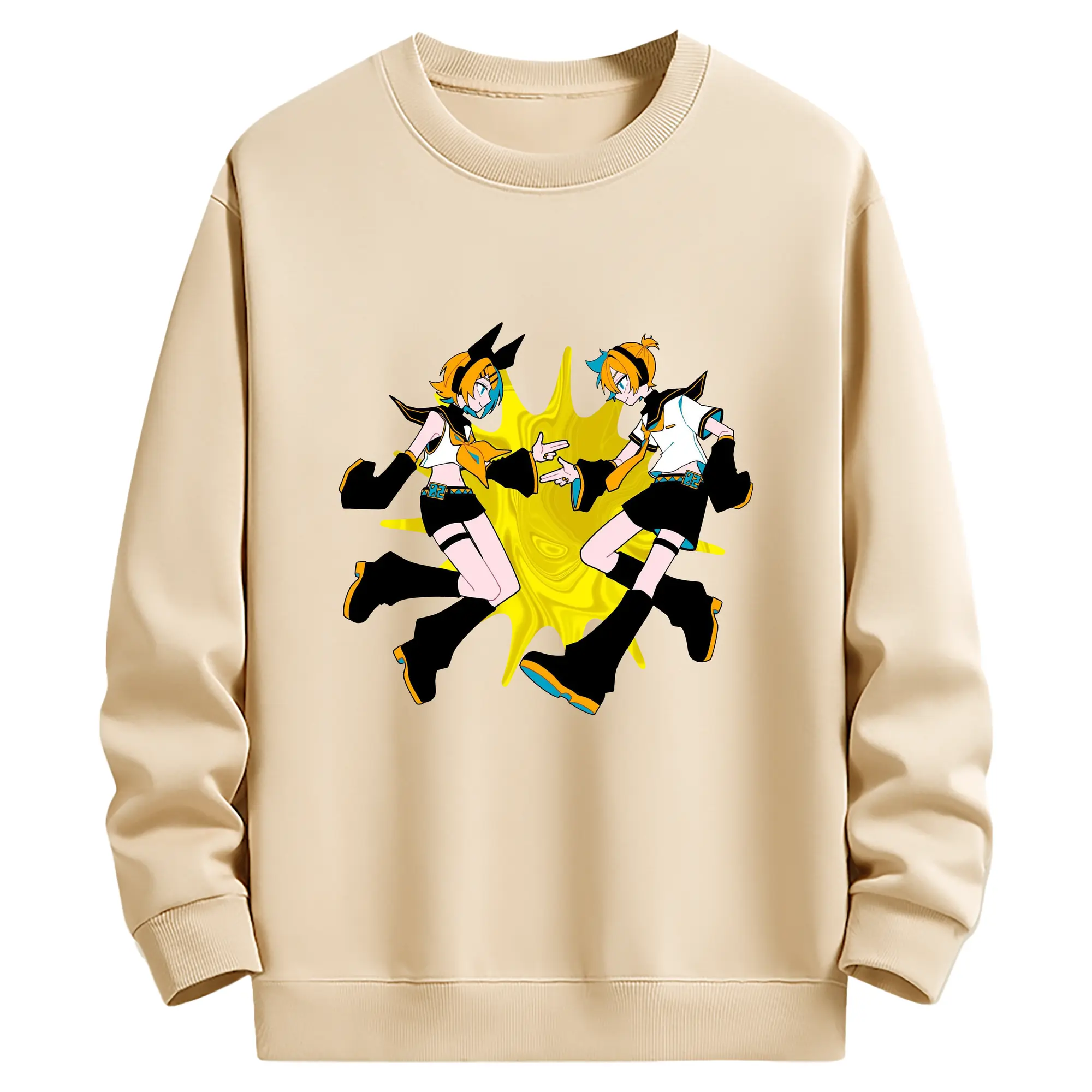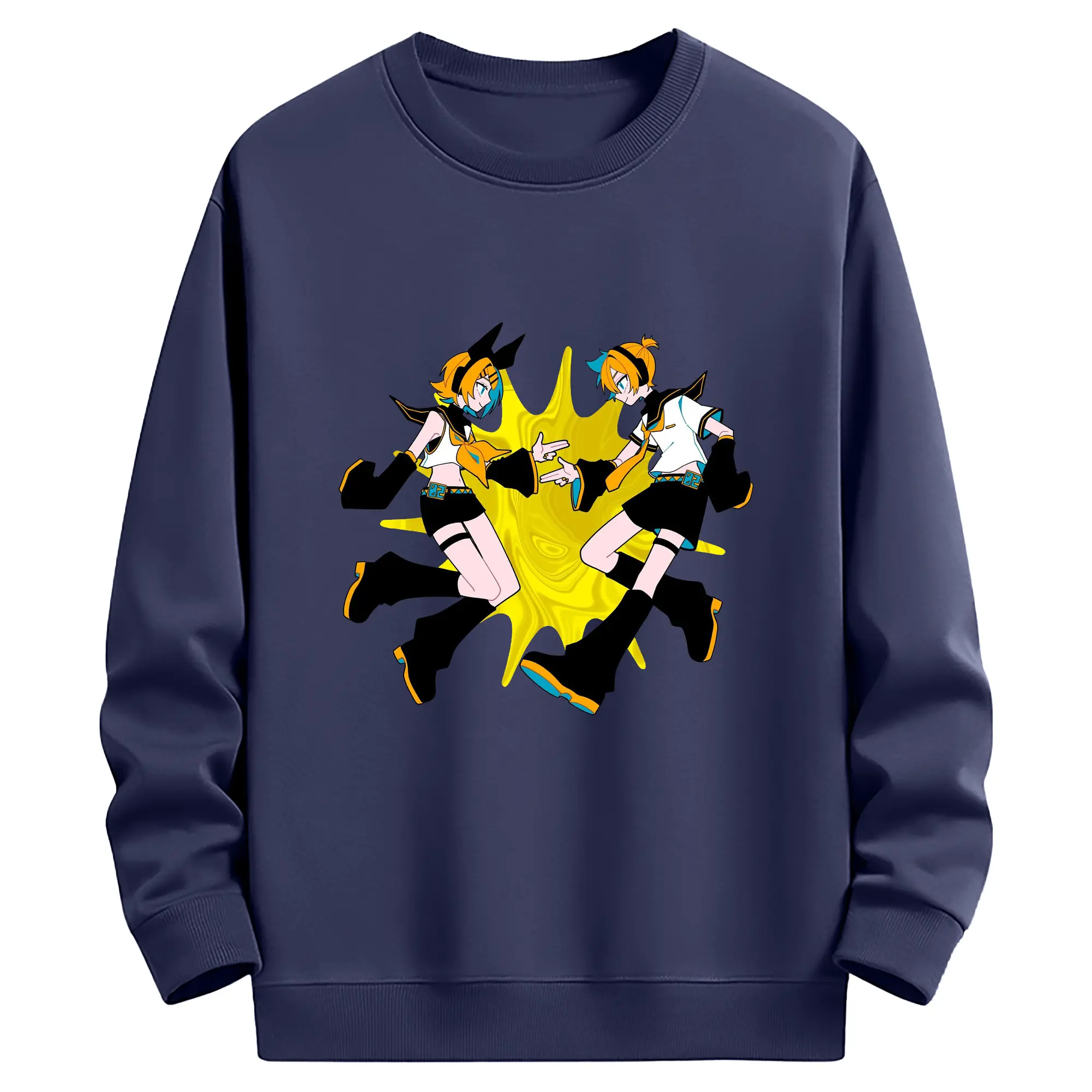 鏡音リン・レン シンプルスタイル - 高品質 クルーネック スウェット ・ コットン59% ポリエステル41% ・ ユニセックス 長袖 トレーナー ・ カジュアル デイリー スポーツ 散歩用