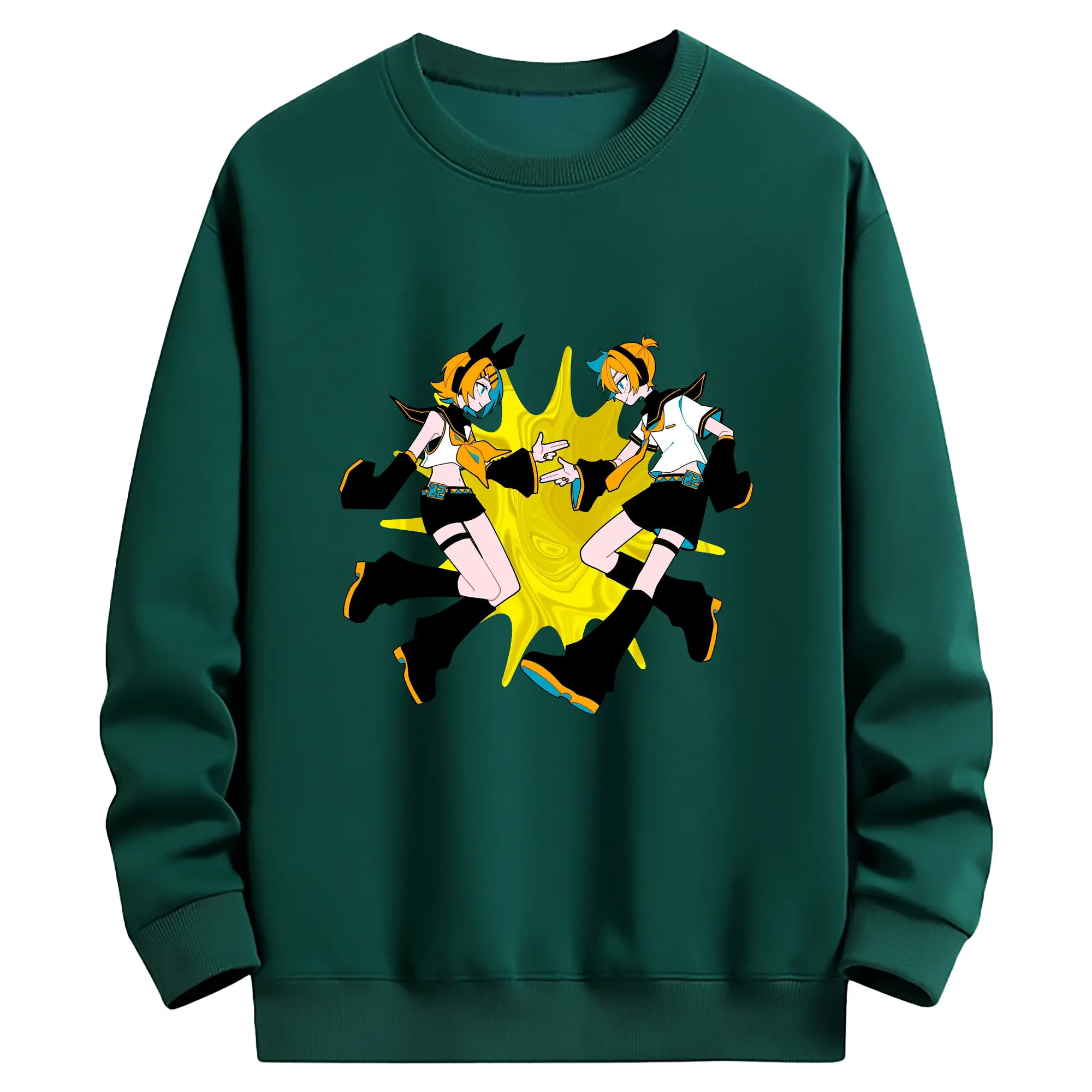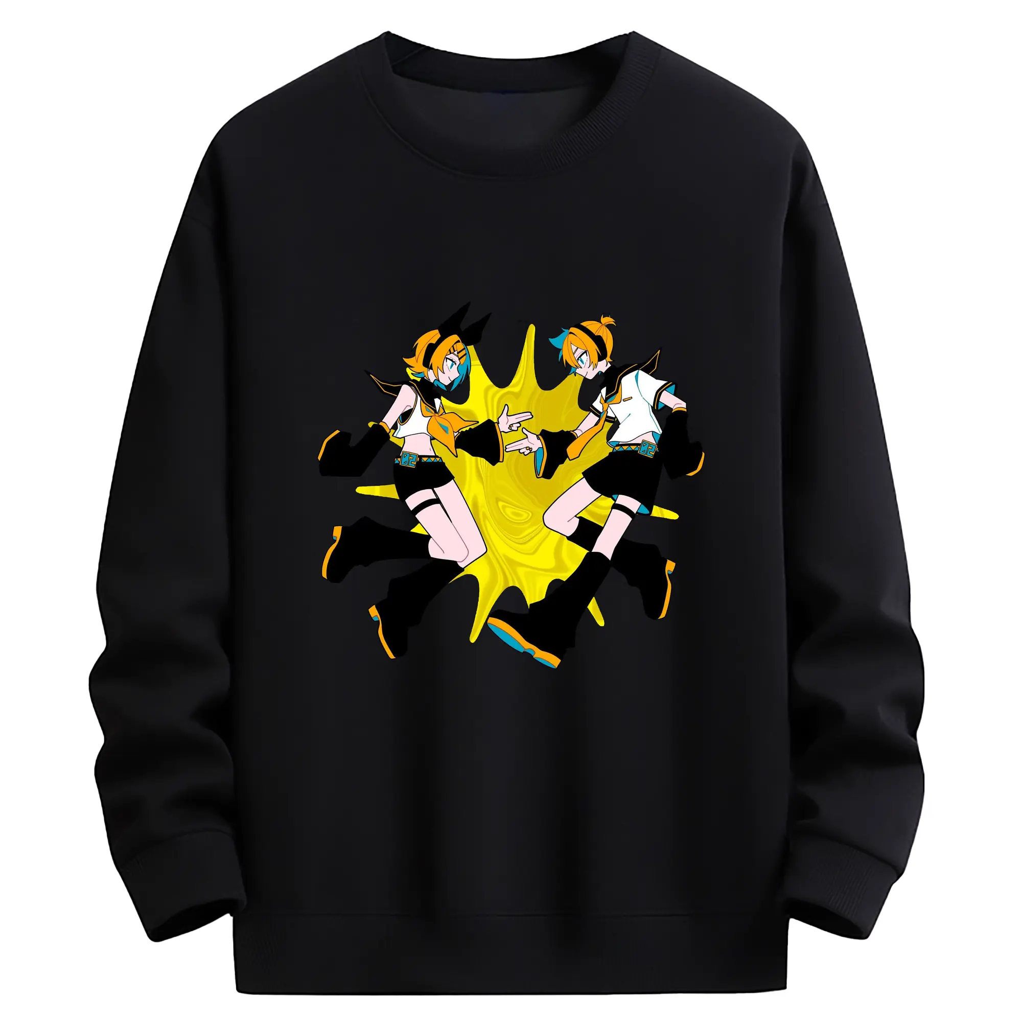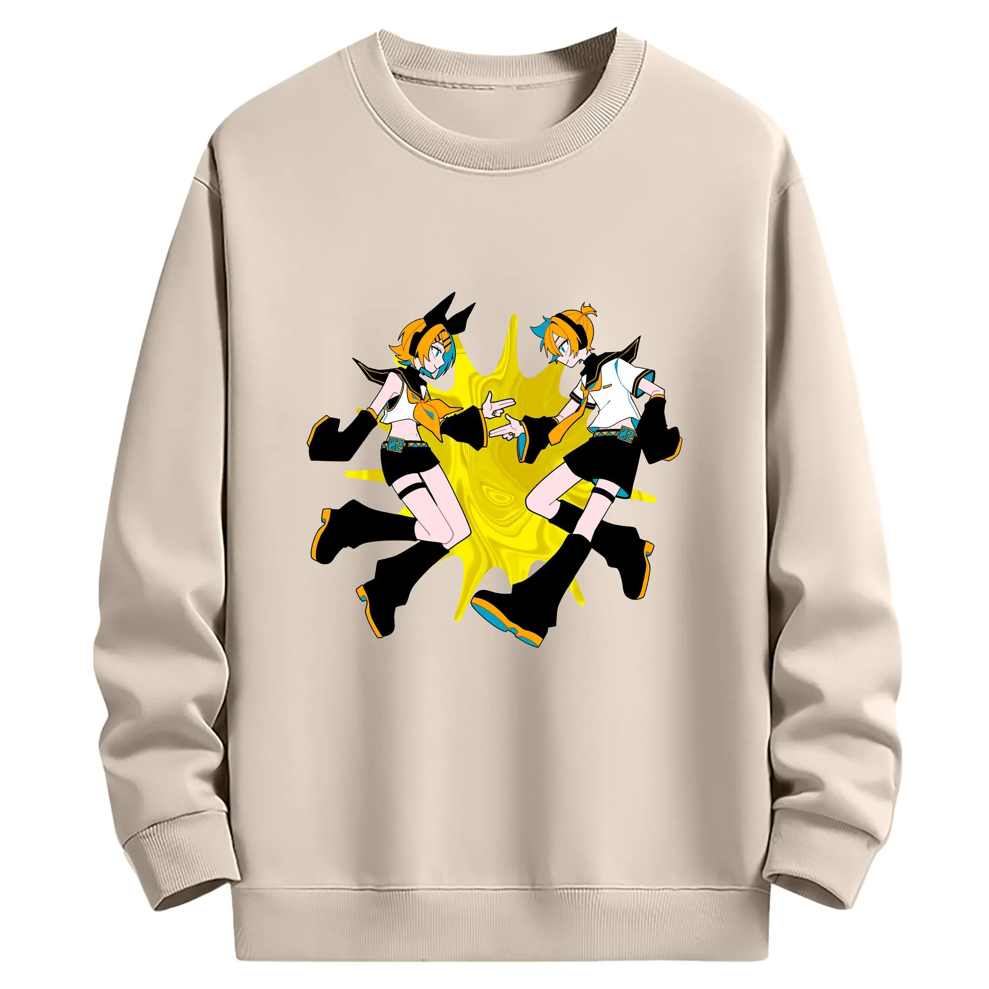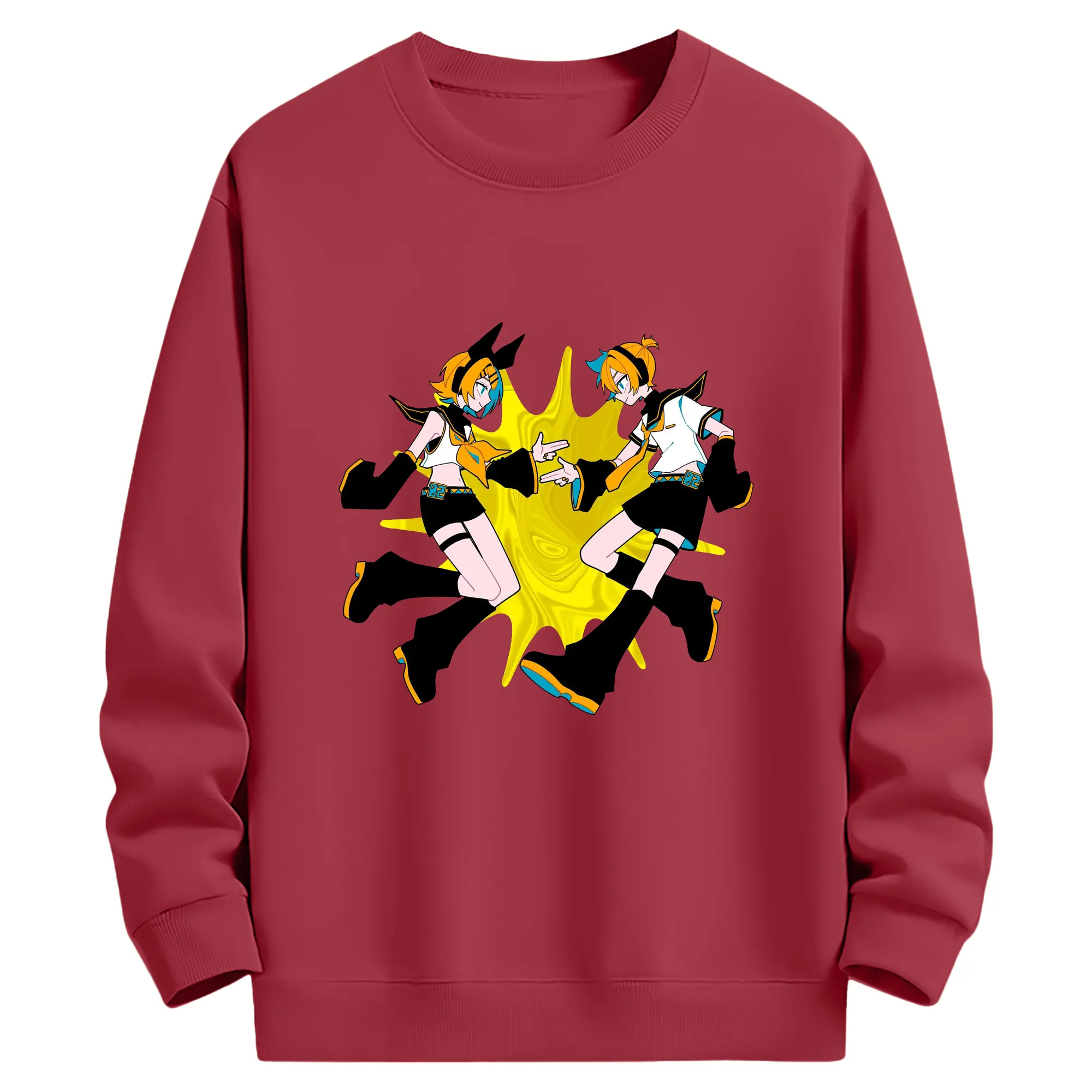 鏡音リン・レン シンプルスタイル - 高品質 クルーネック スウェット ・ コットン59% ポリエステル41% ・ ユニセックス 長袖 トレーナー ・ カジュアル デイリー スポーツ 散歩用