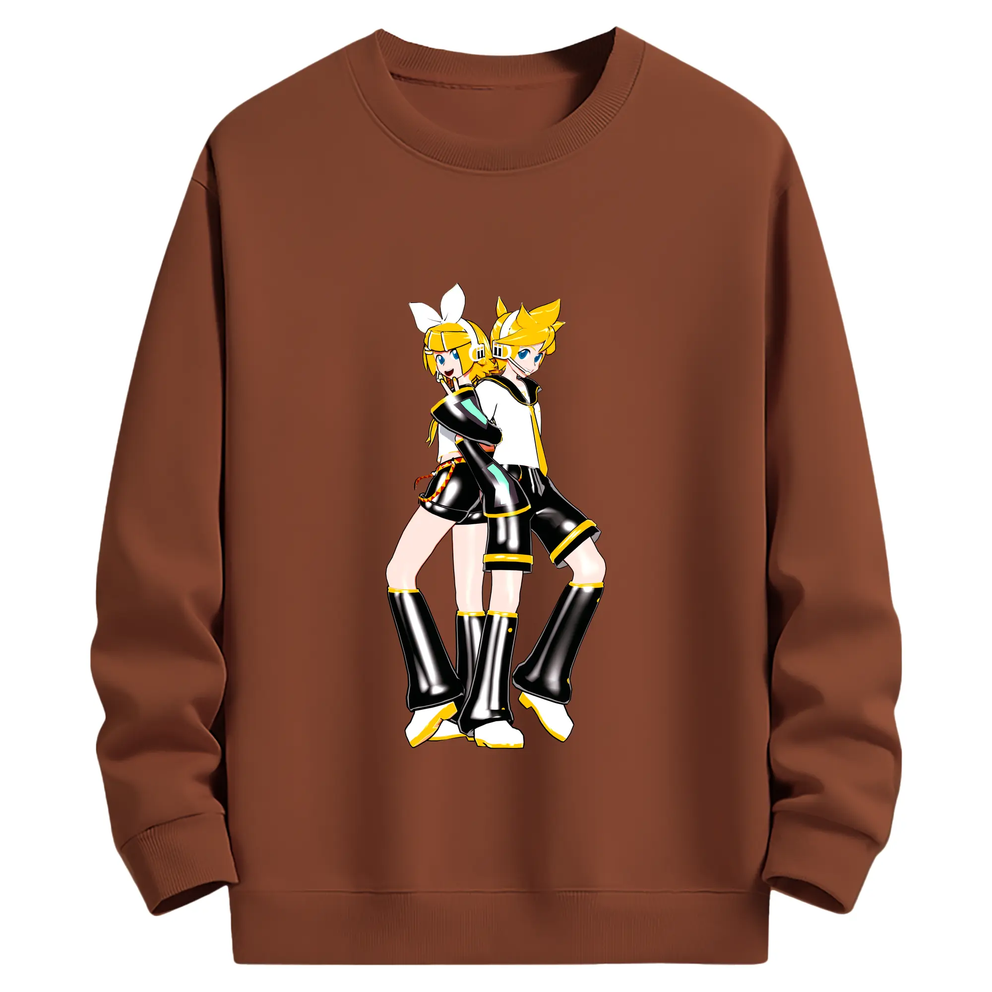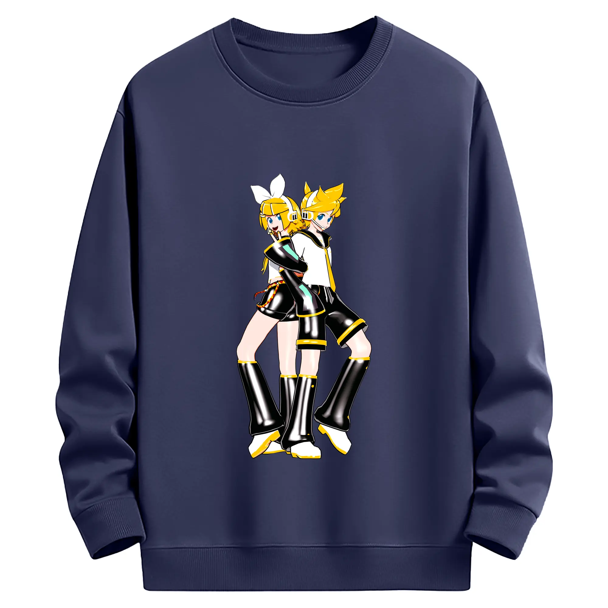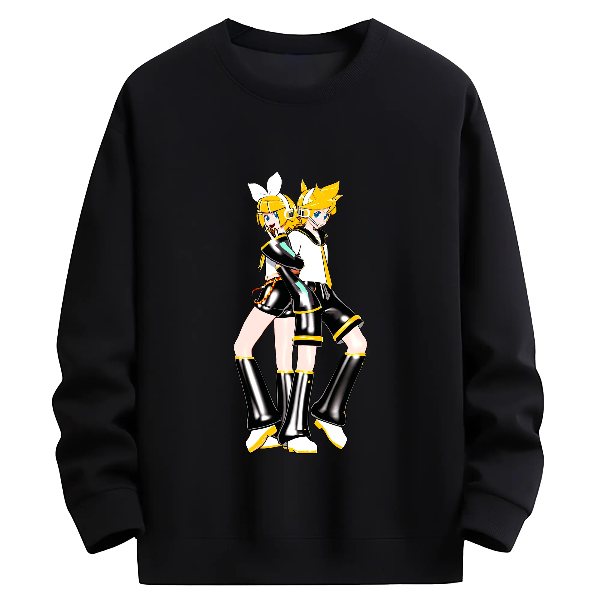 鏡音リン・レン シンプルスタイル - 綿100% 半袖Tシャツ ・ フロントプリント ・ 快適 通気性 ・ 日常使い 散歩 スポーツ用